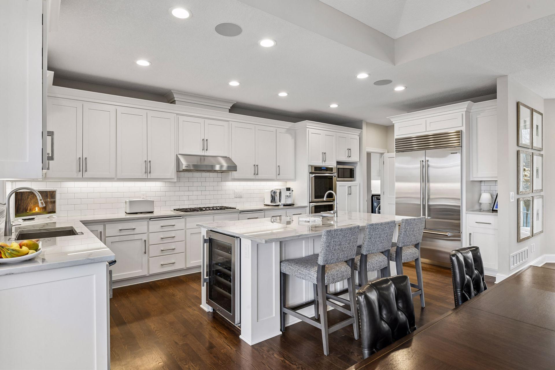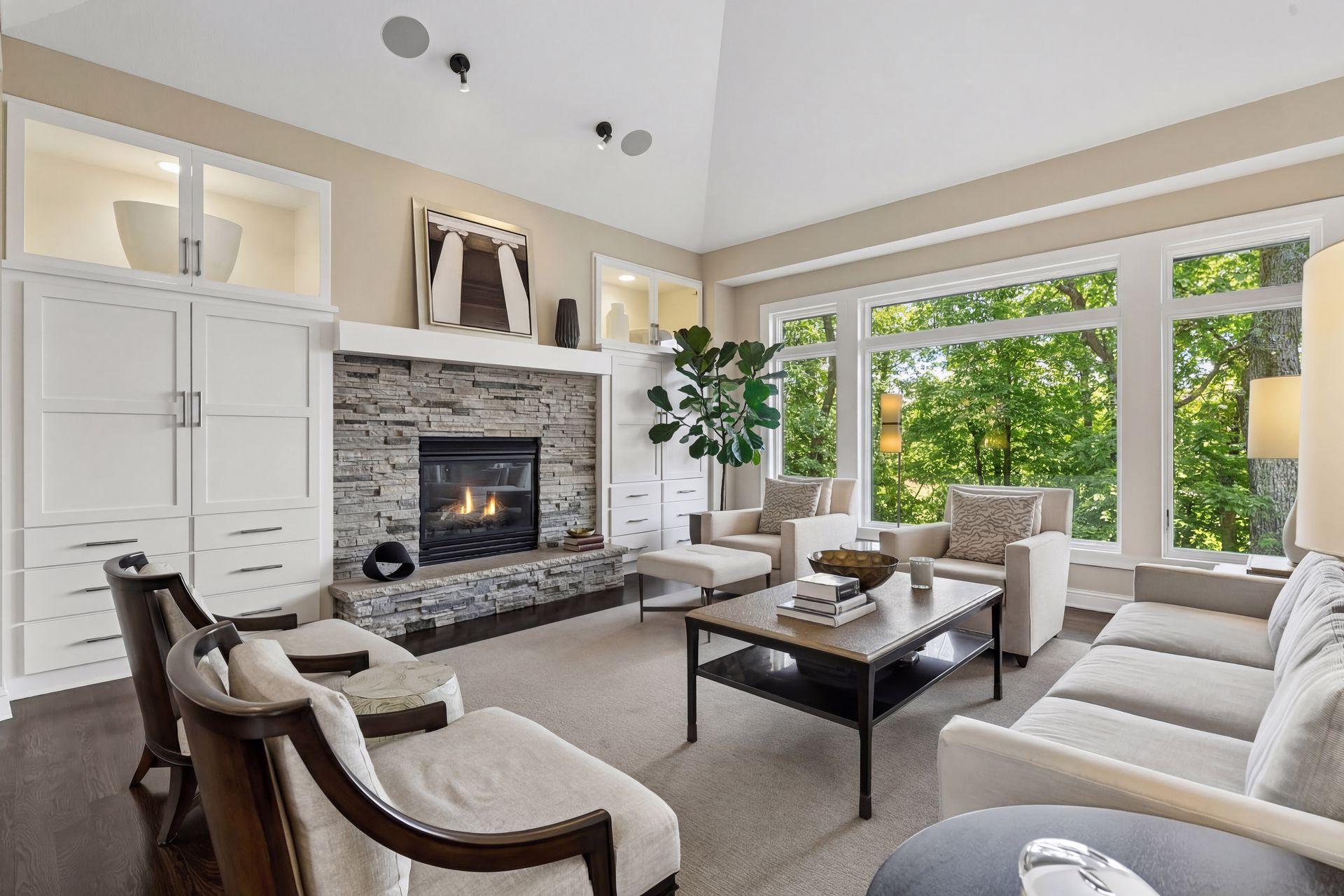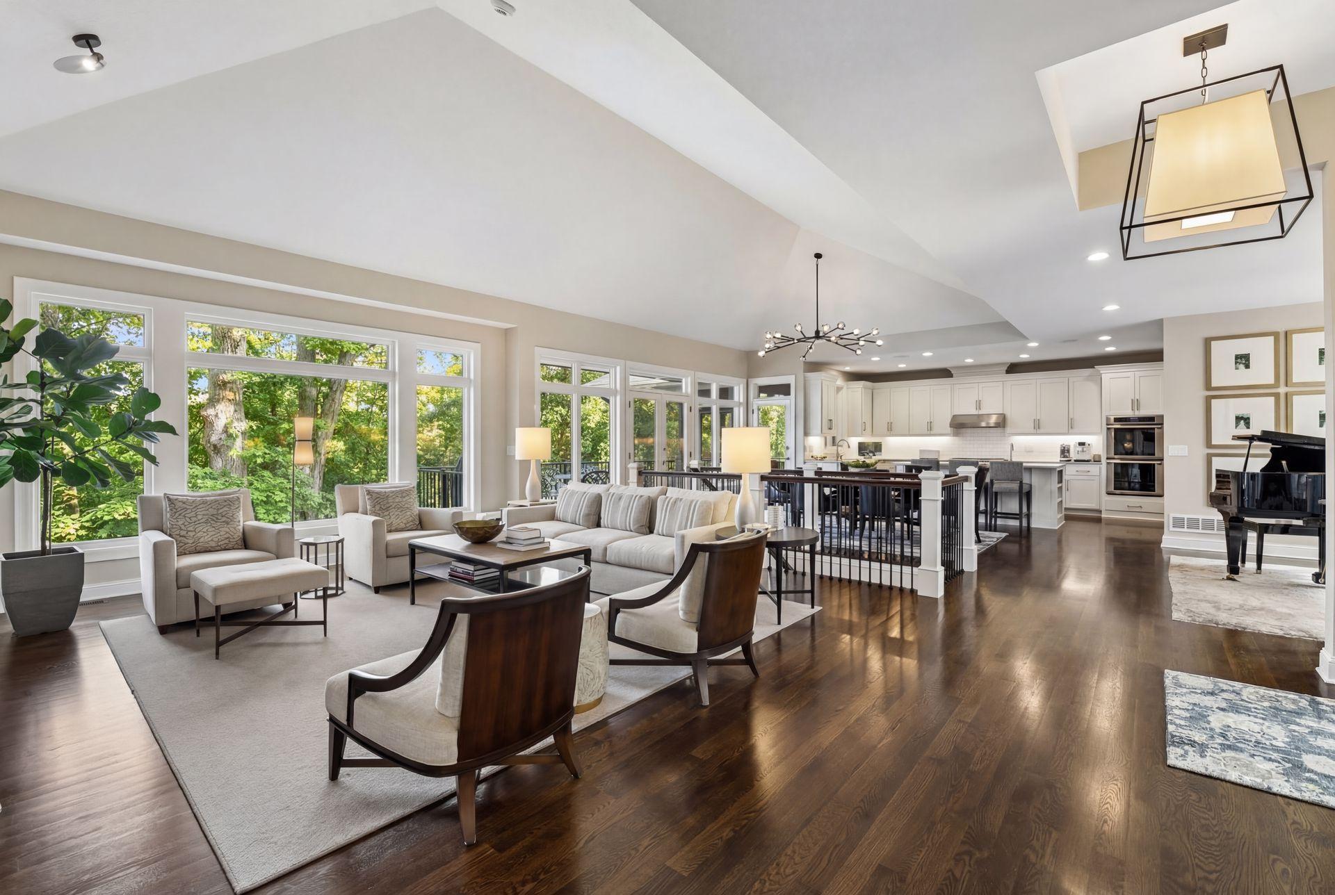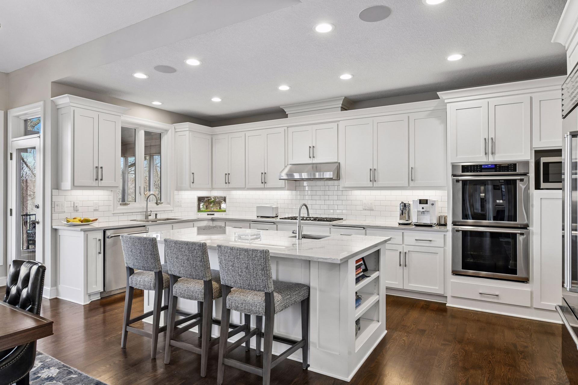Private wooded drive leads to this exquisite home in Orono. Sited on 5+ acres, this property offers privacy and a serene, natural setting. Completely updated and designed for modern, main-level living, this home features an open floor plan with walls of windows that bring the outdoors in. Crisp white interior complemented by vaulted ceilings, hardwood floors and an open gathering space. Stunning center-island kitchen steps out to three-season porch and deck overlooking the lawn and surrounding woods. Primary suite with private lounge, walk-in closet and luxury bath. Walkout lower-level features family room with fireplace, game area, three additional bedrooms with adjacent baths and spacious storage room currently used as an exercise space. Numerous improvements includ new roof, extensive landscaping, updated kitchen, new mechanical systems, heated garage and much more. Tucked at the end of a quiet cul-de-sac, this property offers the perfect blend of privacy and convenience—just minutes to restaurants, shopping, Bederwood Park, Luce Line Trail, Lake Minnetonka, and the Orono School Campus.