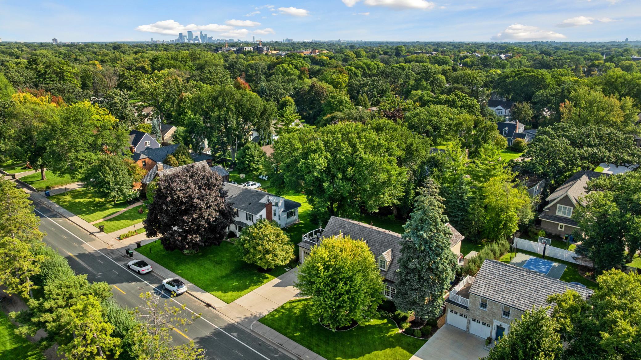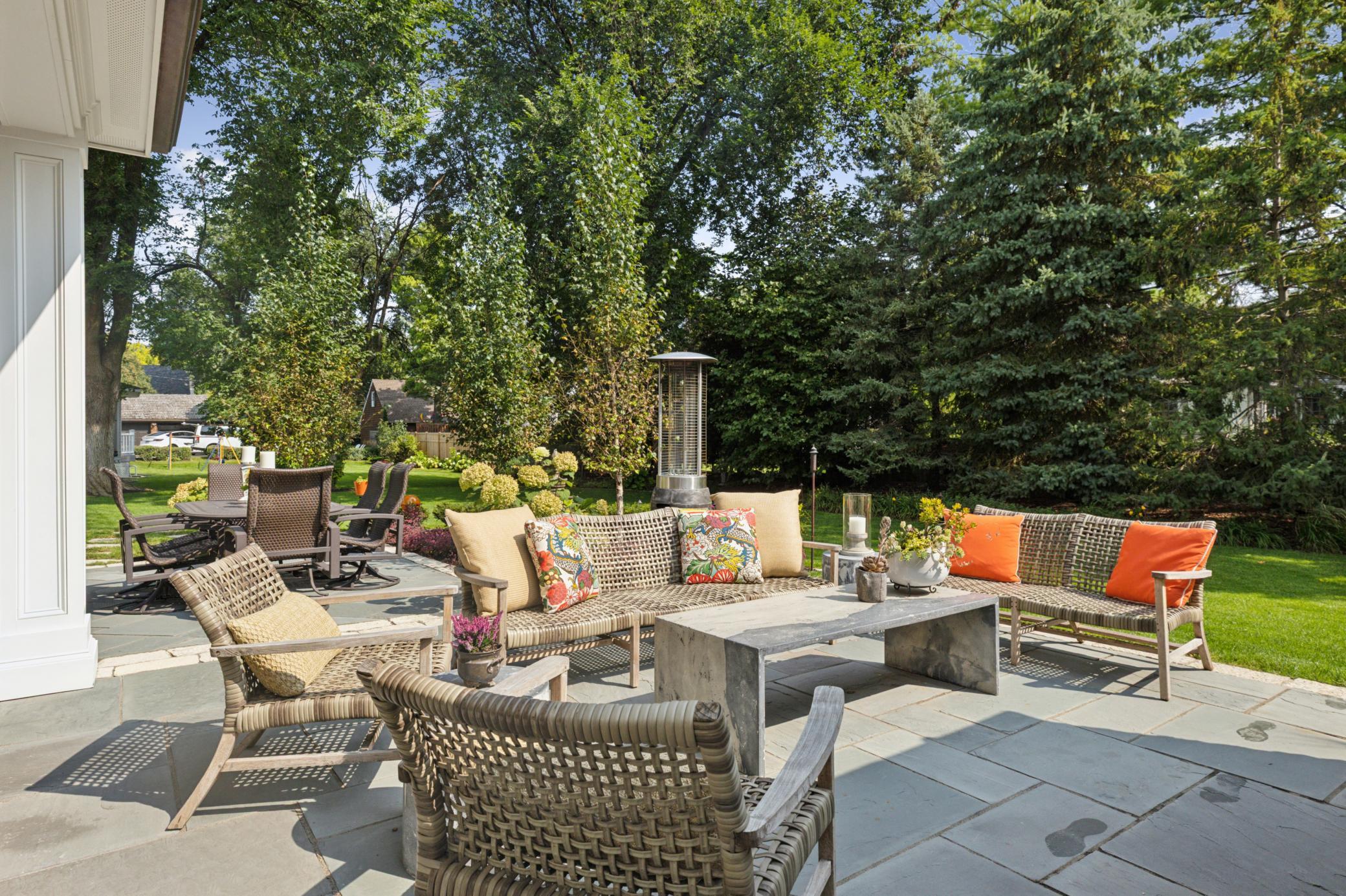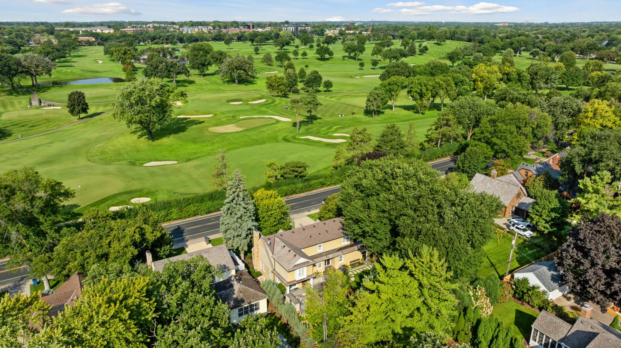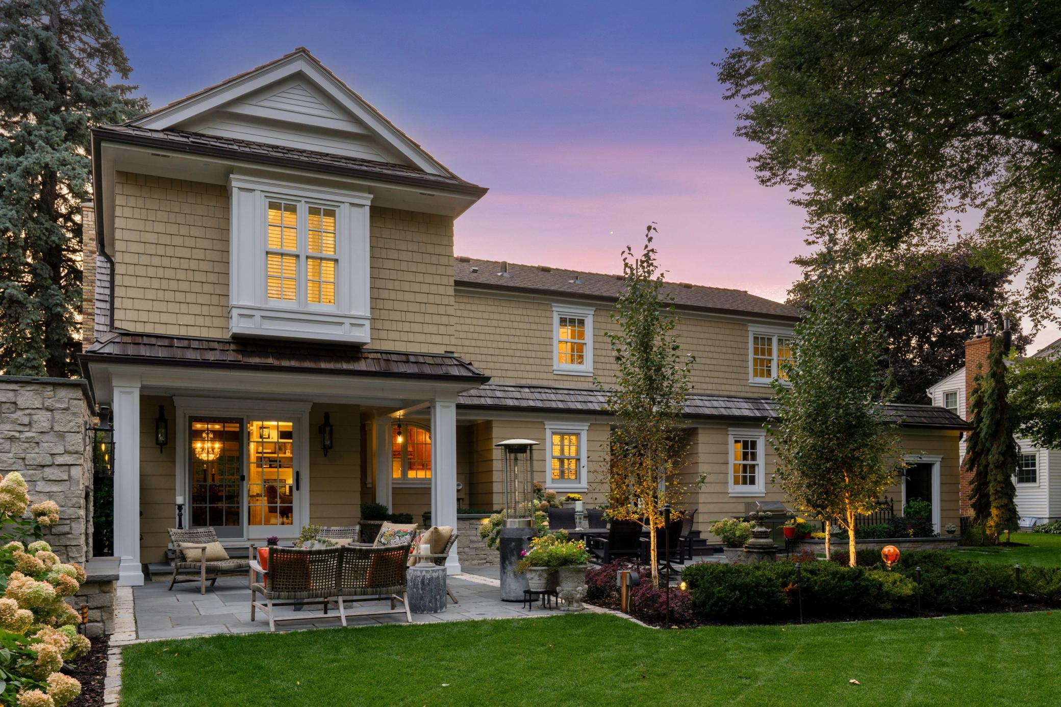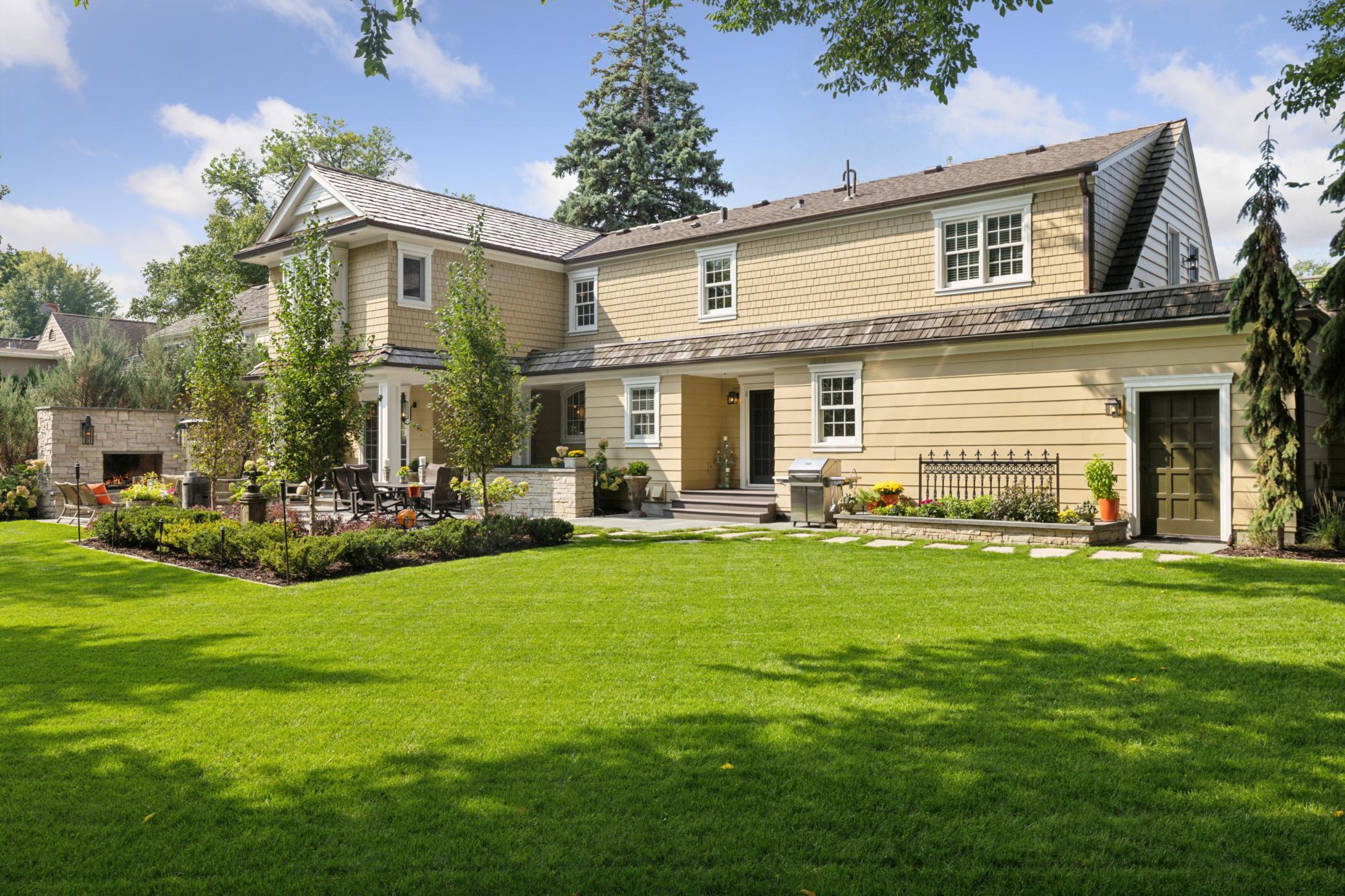 Situated on a premium lot and a half in highly sought-after East Edina, this exceptional two-story home blends timeless charm with high-end craftsmanship and meticulous attention to detail. Now offered at $1,795,000, this is a rare opportunity in a prime location directly across from Edina Country Club and right by Minnehaha Creek. The sun-filled main level showcases gleaming hardwood floors and rich character throughout—from the inviting wood-burning fireplace in the living room to a custom built-in bar hutch. The family room is a true centerpiece, featuring a full wall of exquisite built-ins and a custom entertainment system. The gourmet kitchen is equipped with custom cabinetry and high-end appliances, while the formal dining room with elegant coved ceilings flows seamlessly into a sophisticated office addition with stunning millwork and private backyard views. Enter outside to a beautifully designed bluestone patio complete with a gas fireplace, water feature, professional lighting and landscaping—creating a private oasis ideal for entertaining. Upper level, you’ll find five spacious bedrooms, including a luxurious primary suite with a marble bathroom and expansive walk-in closet. The fifth bedroom offers private access to a large deck with sweeping golf course views and unforgettable sunsets. The lower level is designed for comfort and entertainment, featuring in-floor heating, a full wet bar, and a generous gathering space. Additional highlights include a pristine insulated two-car garage with in-floor heat, built-in storage, and a butcher block workbench. The entire home is equipped with a Control4 AV system, with wired speakers throughout all four levels, the patio, backyard, and garage. Ideally located near top-rated schools and just minutes from the premier shopping and dining at 50th & France, this home truly offers luxury, comfort, and convenience in one extraordinary package.