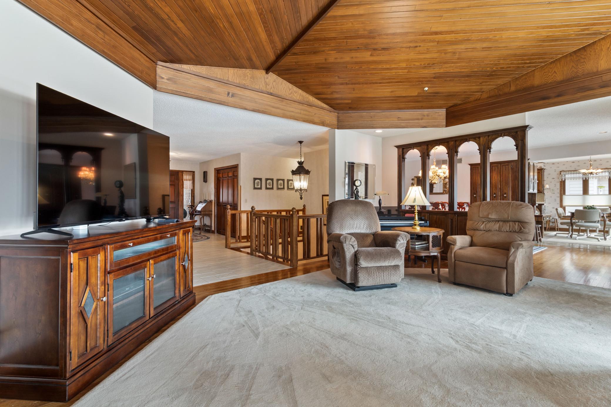 From the moment you arrive, this beautiful custom-built two-story home welcomes you with timeless elegance and a quiet sense of retreat. Framed by stately brick pillars, a private brick fence, and professionally landscaped grounds, the curb appeal sets the tone for what lies beyond. A covered entry invites you and your guests inside, where warmth and comfort unfold effortlessly. Step into the grand foyer, where natural light pours through picturesque windows on every level, drawing your eyes toward the peaceful beauty of the Mississippi River just beyond. Thoughtfully designed for both everyday living and elegant entertaining, the main level offers expansive spaces filled with light and connection to the outdoors. The living room is truly the heart of the home, featuring a majestic tongue-and-groove vaulted ceiling, a cozy gas fireplace, and sweeping windows that frame the ever-changing river views and lush backyard. Just beyond, a formal dining room provides the perfect setting for gatherings both intimate and grand. The kitchen is as inviting as it is functional, with tiled finishes, a charming breakfast area, and direct access to a new deck - an ideal spot to begin your morning with coffee as the river gently flows, or to unwind in the evening surrounded by nature. A mudroom and main-level laundry add everyday convenience, blending practicality with thoughtful design. The owner's suite offers a peaceful sanctuary, complete with a private vanity area, walk-in closet, walk-in tiled shower, and a jetted tub wrapped in tile - creating a spa-like space to relax and recharge. Upstairs, additional bedrooms and baths provide comfort and privacy, while the expansive lower level opens up a world of possibilities. With a walkout to the pool and patio, this level is designed for both relaxation and recreation - featuring a large family room with a wood-burning fireplace, a wet bar and sitting area, office space, exercise or amusement room, hobby or guest areas, and abundant storage. A second laundry area adds even more ease to daily living. Outdoors, the experience becomes truly special. The in-ground heated pool, surrounded by a gated patio and lush landscaping, creates a private oasis for summer days. The gently sloping lot leads you down to the river's edge, where a beautiful stone patio offers a serene place to sit, reflect, and take in the sights and sounds of nature. Each season brings it own beauty - morning sunrises, glowing sunsets, and the quiet rhythm of the water. Located along the recreational stretch of the Mighty Mississippi River, this property offers the rare ability to boat into historic downtown Anoka, where you can dock and enjoy charming shops, dining, and year-round community events or turn right into Champlin for riverfront Char Blu restaurant, year round activities, and docking area. For those who work in the Twin Cities yet long to come home to peace and privacy, this home offers the perfect balance - just a short drive from the city, yet a world away in feel. Here, every day ends in a setting that feels like a getaway, where nature, comfort, and refined living come together in perfect harmony.