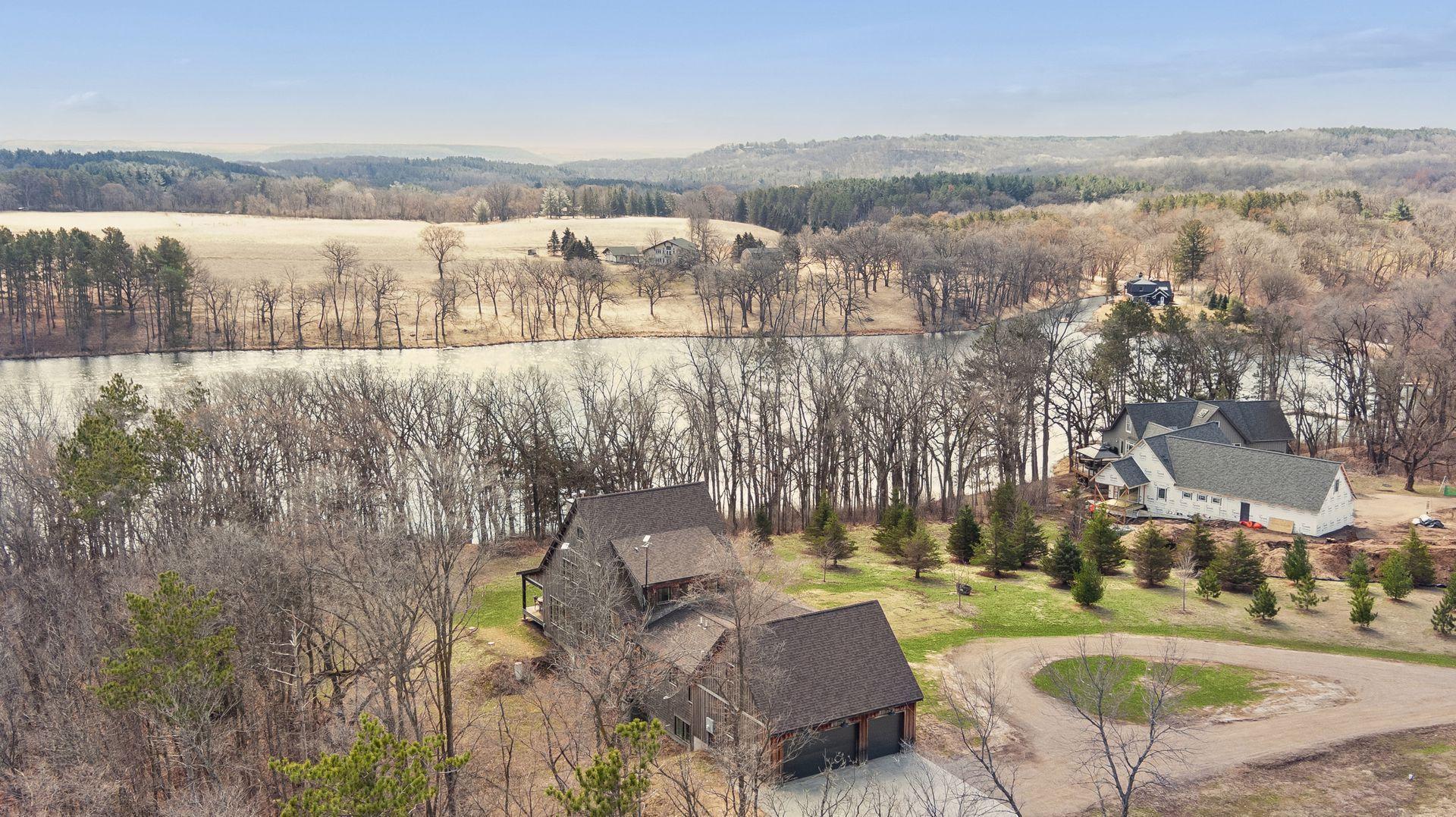 Stunning custom-built home in 2022 on Afton’s only lake. Lake Edith is a nature lovers lake, 81 acres, no public access, spring fed with flowage to a creek - keeping the water clean. Excellent for swimming and fishing - quiet enjoyment of no gas motors. Designed by Rehkamp-Larson Architects, the home blends classic style, with a smart layout and maximizing nature views. Walk into the front foyer with built-in benches and large open entertaining space. Formal dining room with built-in buffet and ample storage. Dream kitchen awaits you, with a massive island, expansive counters and cabinets + a pantry. The kitchen transitions directly to the living room with loads of windows and a stylish wood burning stove. Primary suite is on the main floor and boasts a walk in closet and beautiful full bath with separate tub and shower. Main level also features an office, half bath, mudroom and laundry. Upstairs you’ll find 3 bedrooms (one of which has a private 3/4 bath) a shared full bath and a 2nd laundry. Hike up the stairs to the 3rd floor amusement room (like a tree fort) for entertaining, creative projects or movie night. In the lower level you’ll find a massive family room, great for more entertaining and workout space. There is also a wet bar, ¾ bath, 5th bedroom and room for storage. All tile and concrete floors throughout the home are heated. The massive wraparound deck provides limitless ways to enjoy the outdoors and includes an outdoor kitchen and woodburning stove. There is a heated 3 car garage, a storage shed, wood storage and a lake side storage shed. Enjoy the 6+ acres of open lawn, wooded privacy and nature surrounding you - eagles, cranes, river otters and trophy northerns, bass and crappies.