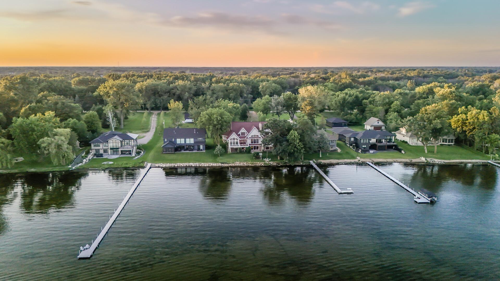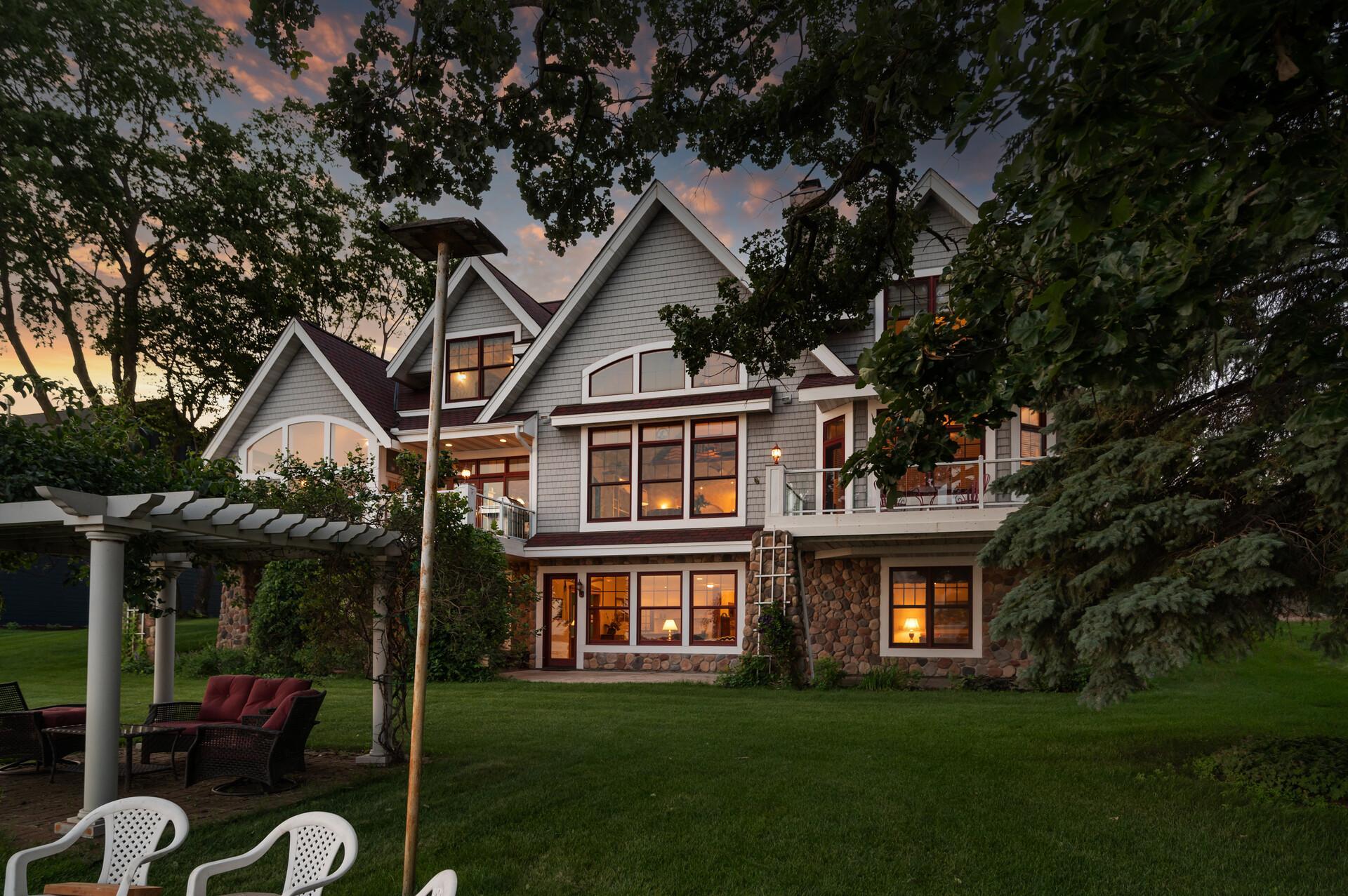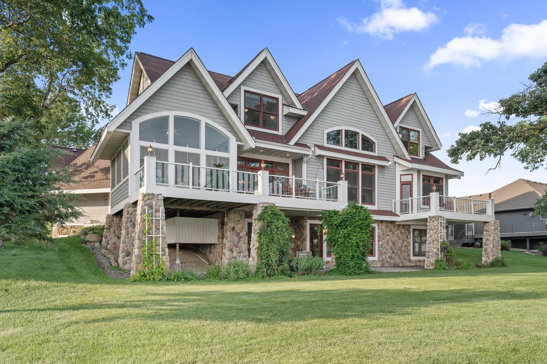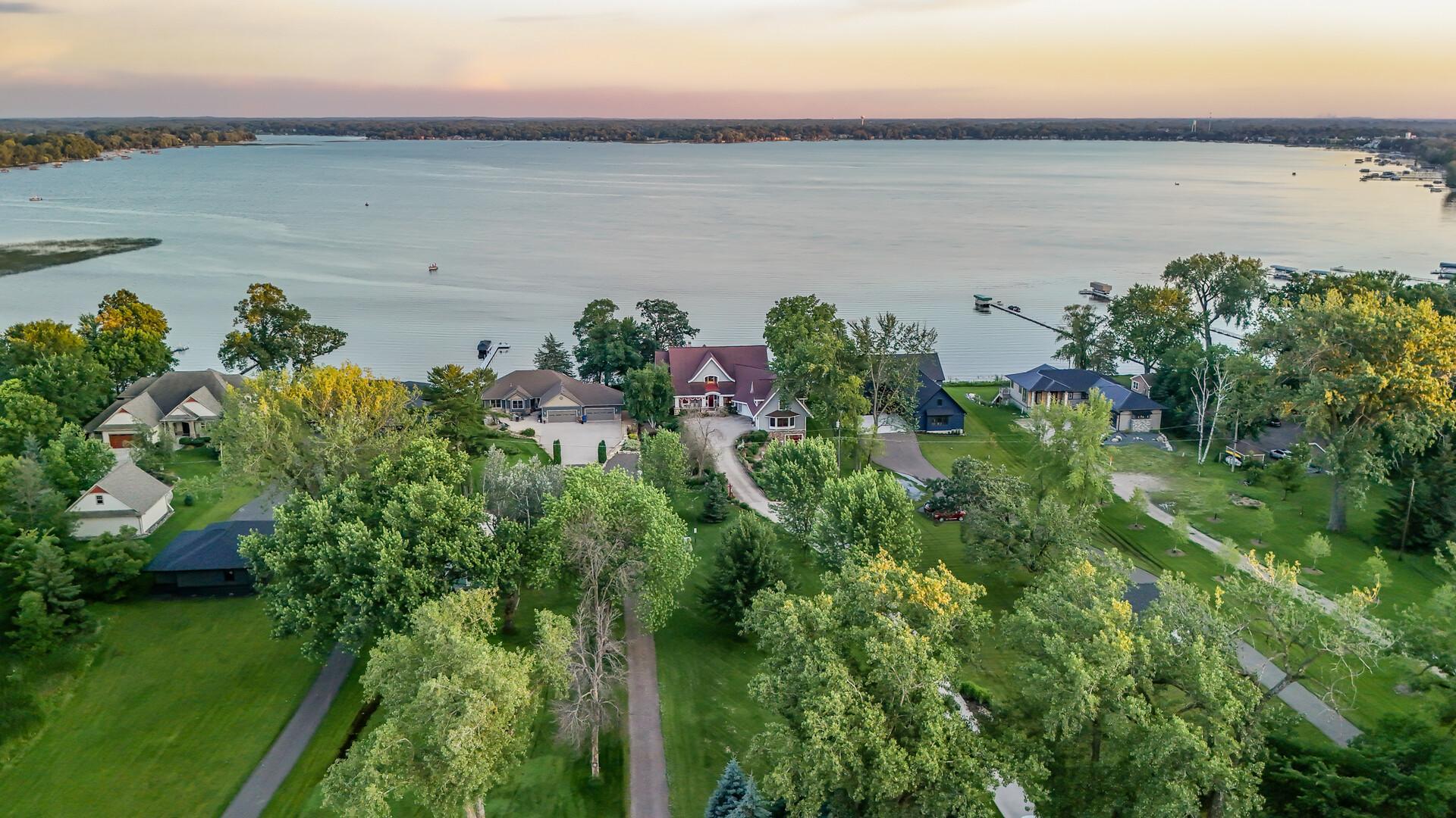 Welcome to a once-in-a-lifetime opportunity on Forest Lake’s coveted “Gold Coast” — a 1 owner, custom built lakeshore estate designed to feel like a timeless 1920s seaside cottage. Crafted in 2005, this one-of-a-kind home rests on a beautifully landscaped 550’ deep lot with 100’ of south-facing sandy shoreline on Forest Lake’s desirable First Lake. Positioned 400 feet from the road, the home offers serenity, abundant natural light & gentle summer breezes—just minutes from local amenities & freeway access, allowing for an easy 35-minute commute to the Twin Cities. Designed by renowned architect Ben Nelson, the home showcases exceptional craftsmanship with 12” precast Spancrete floors, TimberStrand framing & in-floor radiant heat on all three levels (excluding the upper garage & guest apartment). Energy-efficient features include 2x6 construction, Corbond foam insulation, Owens Corning Berkshire shingles & maintenance-free Nailite siding with Azek trim. The property features an impressive, attached garage configuration with a 3+ car upper garage and a 4+ car lower garage—offering exceptional space for vehicles, hobbies & all your recreational equipment, from lake gear to outdoor toys. The lower garage is fully equipped with in-floor heat, a floor drain, insulated walls & a 100-amp subpanel, adding functionality & year-round usability. The home offers 4 bedrooms, a dedicated office & additional flexible spaces perfect for a sewing room, workout room, or creative studio. It also includes a separate living suite—providing versatility for a variety of lifestyles, multi-generational living, or extended guests. There are 3 full baths, 3 three-quarter baths & 1 half baths. Most bedrooms feature beautiful lake views, enhancing the connection to the setting throughout. The spectacular great room features soaring cathedral ceilings, a floor-to-ceiling stone gas fireplace, custom built-ins & panoramic lake views. Majestic eagles often glide across the water, adding to the peaceful, scenic setting. The home also features a dedicated 13-seat theater room—perfect for movie nights, entertaining, or enjoying the big game in comfort. The main-floor primary suite offers a private lakeview balcony, a marble fireplace, a jetted tub, a rain shower, dual marble sinks, a walk-in closet & a charming nautical porthole window with patio seating. The chef’s kitchen is thoughtfully designed with a 6-burner Viking range, double wall oven, Miele panel-front dishwasher, granite island, copper ceiling & custom cabinetry. Adjacent are a formal dining room & an inviting breakfast space. The main-floor laundry features Zodiac blue quartz counters, a washer/dryer, a sink & a convenient laundry chute. Enjoy year-round lakeside living in the 3-season porch, which features a vaulted ceiling & E-Z Breeze window system, along with a maintenance-free Azek deck added in 2023. Every space reflects thoughtful design, comfort & timeless character. The private guest apartment above the garage offers access from the loft & a separate entrance from the main-level garage, providing excellent flexibility & privacy. This space includes a full kitchen, dining area, bedroom, three-quarter bath with a fully tiled shower, hickory floors, skylight & baseboard heat—ideal for guests, extended family, or independent living.