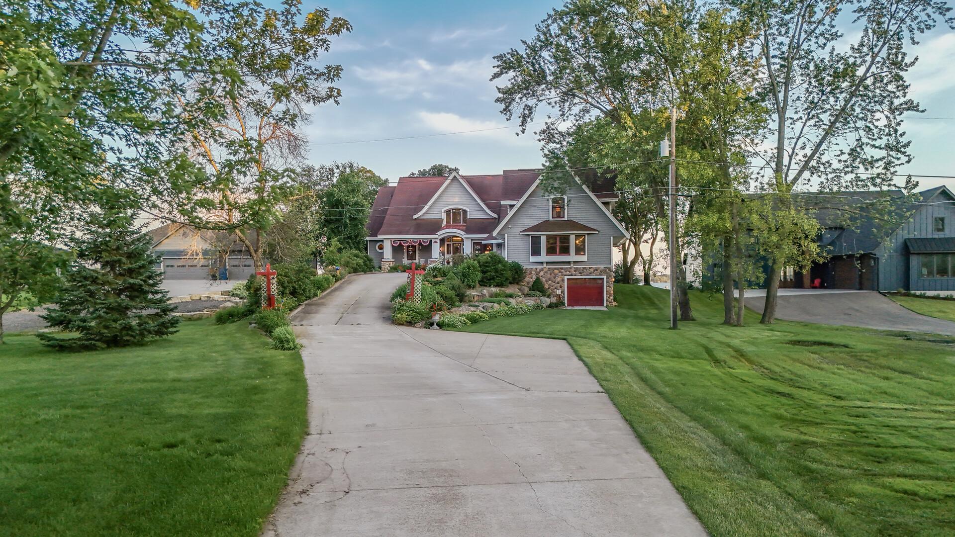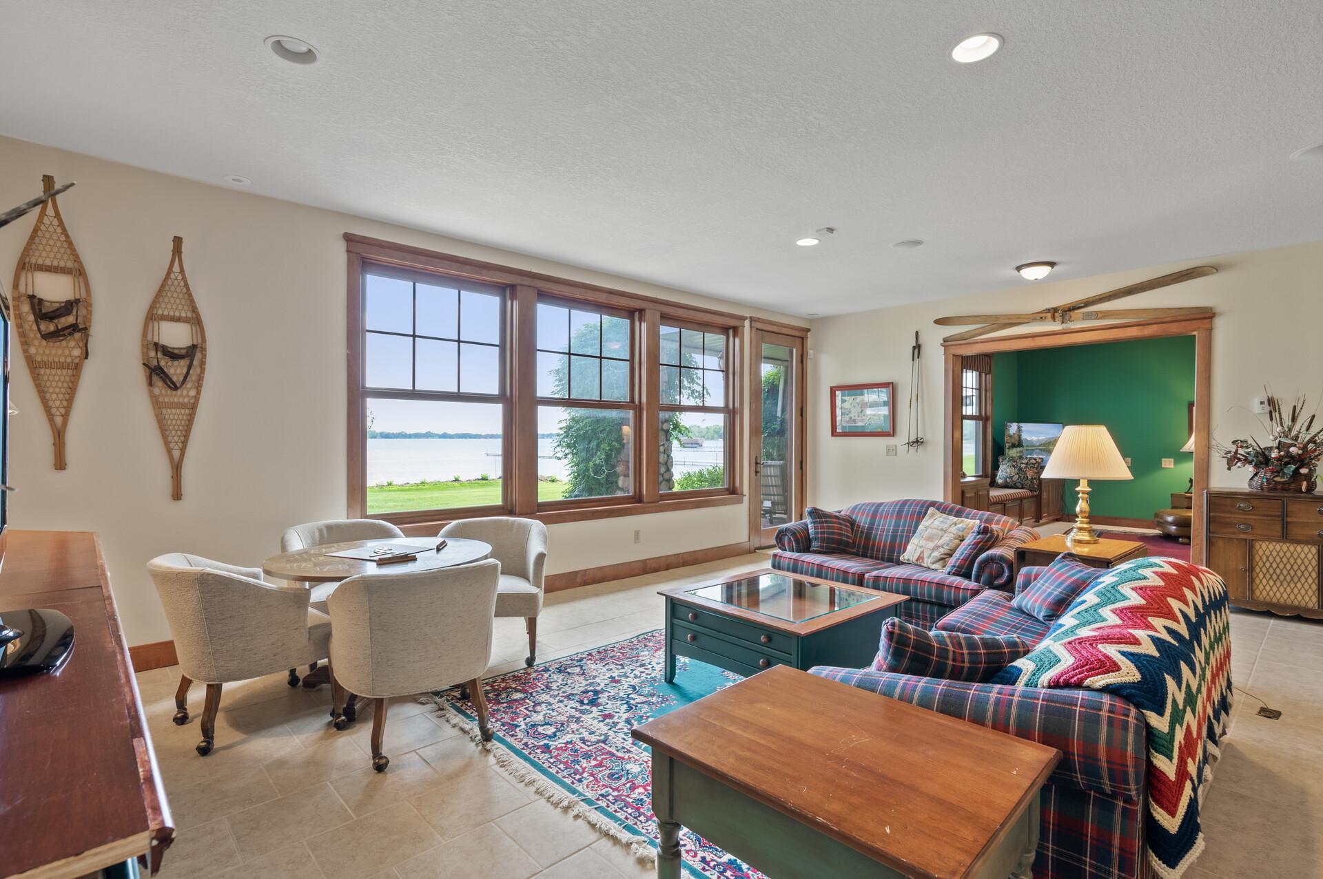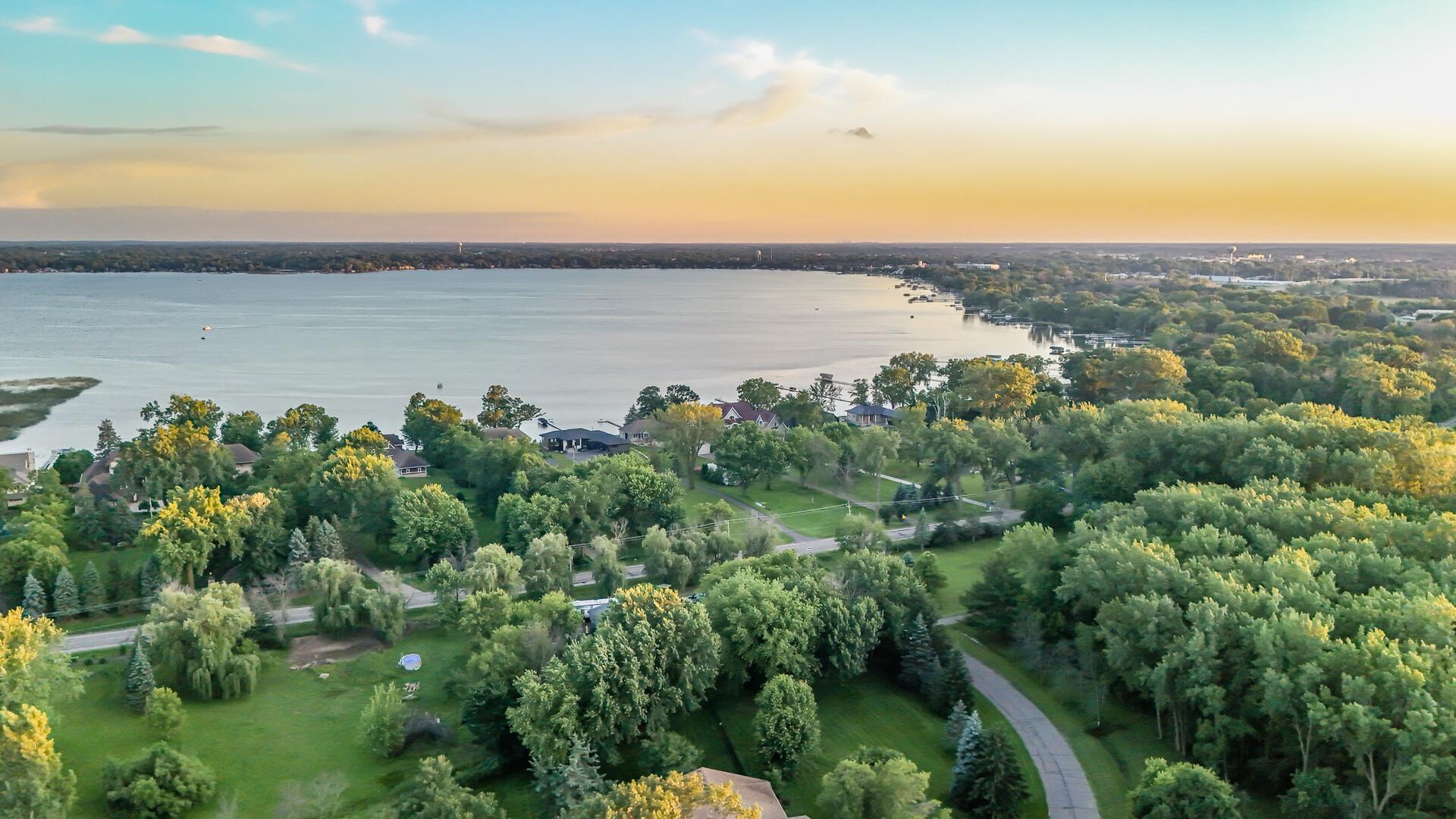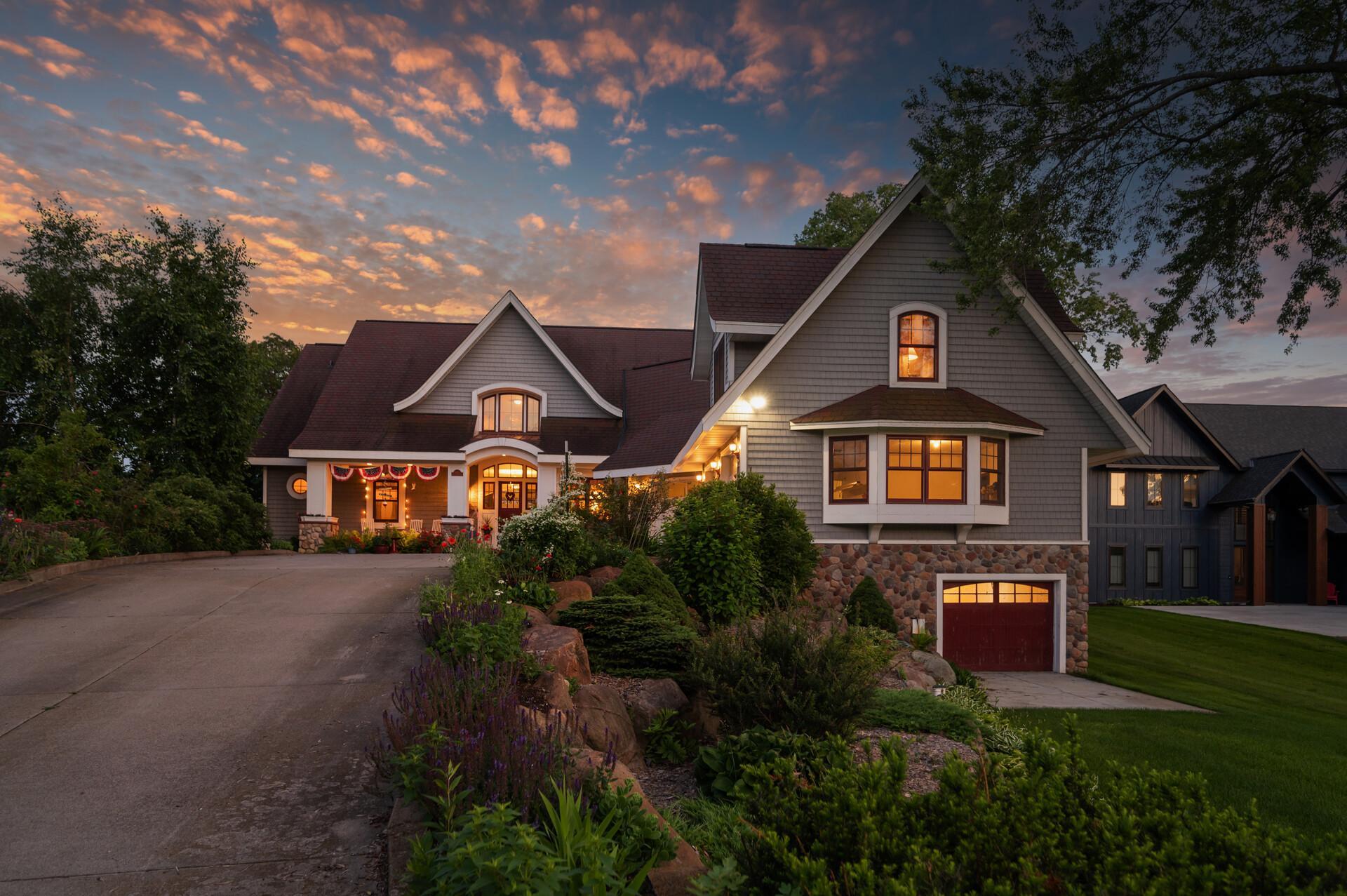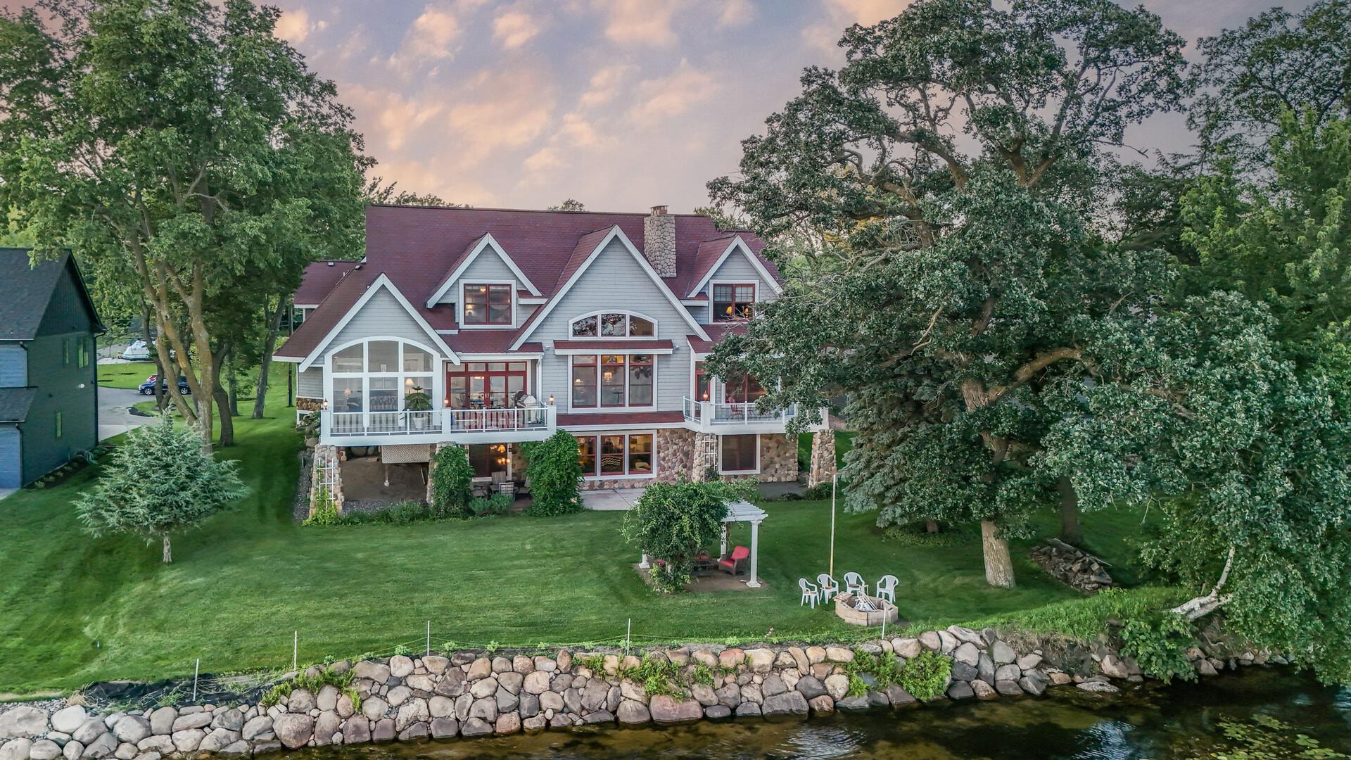 Welcome to a once-in-a-lifetime opportunity on Forest Lake’s coveted “Gold Coast” — a 1 owner, custom built lakeshore estate designed to feel like a timeless 1920s seaside cottage. Crafted in 2005, this one-of-a-kind home rests on a beautifully landscaped 550’ deep lot with 100’ of south-facing sandy shoreline on Forest Lake’s desirable First Lake. Positioned 400 feet from the road, the home offers serenity, abundant natural light & gentle summer breezes—just minutes from local amenities & freeway access, allowing for an easy 35-minute commute to the Twin Cities. Designed by renowned architect Ben Nelson, the home showcases exceptional craftsmanship with 12” precast Spancrete floors, TimberStrand framing & in-floor radiant heat on all three levels (excluding the upper garage & guest apartment). Energy-efficient features include 2x6 construction, Corbond foam insulation, Owens Corning Berkshire shingles & maintenance-free Nailite siding with Azek trim. The property features an impressive, attached garage configuration with a 3+ car upper garage and a 4+ car lower garage—offering exceptional space for vehicles, hobbies & all your recreational equipment, from lake gear to outdoor toys. The lower garage is fully equipped with in-floor heat, a floor drain, insulated walls & a 100-amp subpanel, adding functionality & year-round usability. The home offers 4 bedrooms, a dedicated office & additional flexible spaces perfect for a sewing room, workout room, or creative studio. It also includes a separate living suite—providing versatility for a variety of lifestyles, multi-generational living, or extended guests. There are 3 full baths, 3 three-quarter baths & 1 half baths. Most bedrooms feature beautiful lake views, enhancing the connection to the setting throughout. The spectacular great room features soaring cathedral ceilings, a floor-to-ceiling stone gas fireplace, custom built-ins & panoramic lake views. Majestic eagles often glide across the water, adding to the peaceful, scenic setting. The home also features a dedicated 13-seat theater room—perfect for movie nights, entertaining, or enjoying the big game in comfort. The main-floor primary suite offers a private lakeview balcony, a marble fireplace, a jetted tub, a rain shower, dual marble sinks, a walk-in closet & a charming nautical porthole window with patio seating. The chef’s kitchen is thoughtfully designed with a 6-burner Viking range, double wall oven, Miele panel-front dishwasher, granite island, copper ceiling & custom cabinetry. Adjacent are a formal dining room & an inviting breakfast space. The main-floor laundry features Zodiac blue quartz counters, a washer/dryer, a sink & a convenient laundry chute. Enjoy year-round lakeside living in the 3-season porch, which features a vaulted ceiling & E-Z Breeze window system, along with a maintenance-free Azek deck added in 2023. Every space reflects thoughtful design, comfort & timeless character. The private guest apartment above the garage offers access from the loft & a separate entrance from the main-level garage, providing excellent flexibility & privacy. This space includes a full kitchen, dining area, bedroom, three-quarter bath with a fully tiled shower, hickory floors, skylight & baseboard heat—ideal for guests, extended family, or independent living.