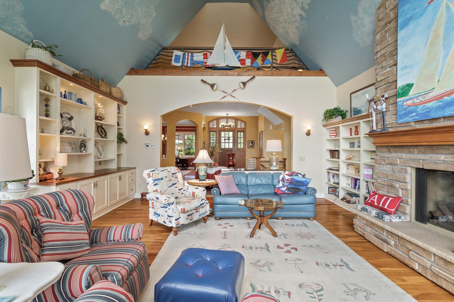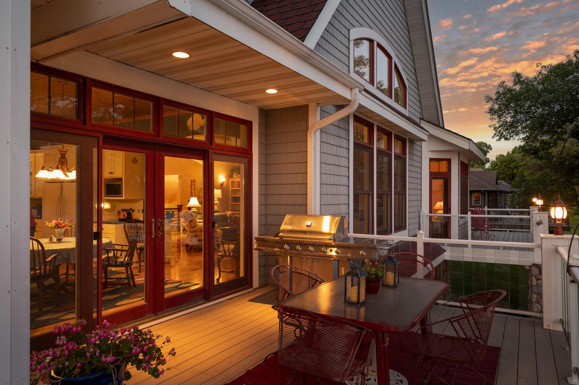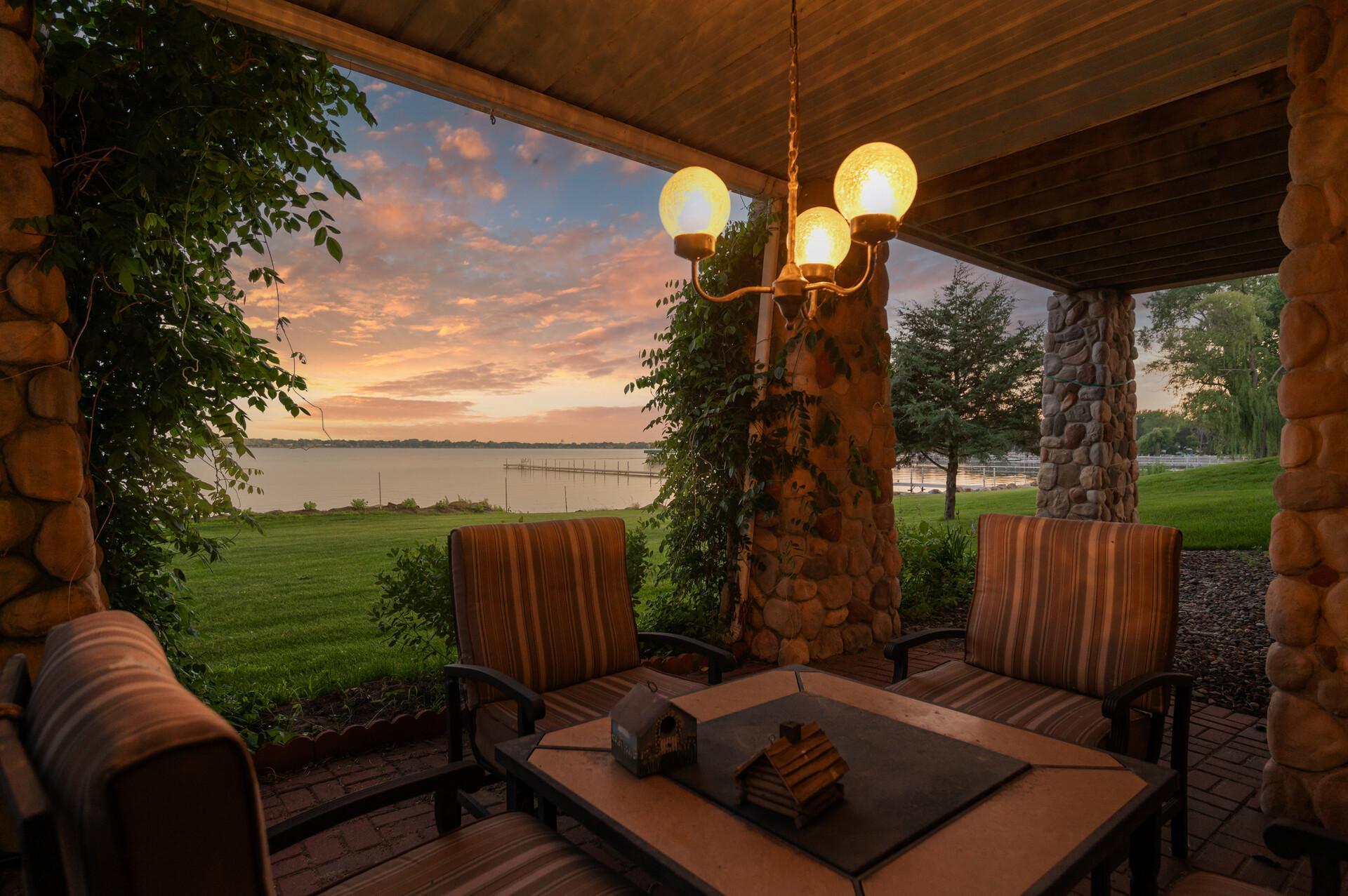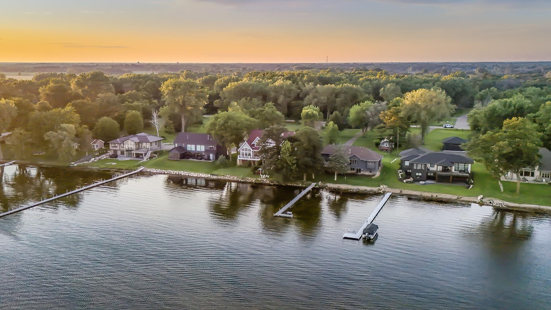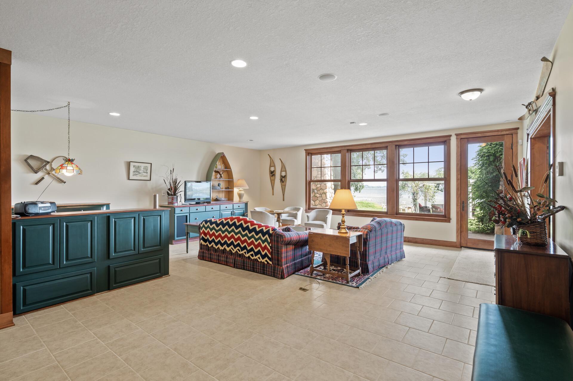 Welcome to a once-in-a-lifetime opportunity on Forest Lake’s coveted “Gold Coast” — a 1 owner, custom built lakeshore estate designed to feel like a timeless 1920s seaside cottage. Crafted in 2005, this one-of-a-kind home rests on a beautifully landscaped 550’ deep lot with 100’ of south-facing sandy shoreline on Forest Lake’s desirable First Lake. Positioned 400 feet from the road, the home offers serenity, abundant natural light & gentle summer breezes—just minutes from local amenities & freeway access, allowing for an easy 35-minute commute to the Twin Cities. Designed by renowned architect Ben Nelson, the home showcases exceptional craftsmanship with 12” precast Spancrete floors, TimberStrand framing & in-floor radiant heat on all three levels (excluding the upper garage & guest apartment). Energy-efficient features include 2x6 construction, Corbond foam insulation, Owens Corning Berkshire shingles & maintenance-free Nailite siding with Azek trim. The property features an impressive, attached garage configuration with a 3+ car upper garage and a 4+ car lower garage—offering exceptional space for vehicles, hobbies & all your recreational equipment, from lake gear to outdoor toys. The lower garage is fully equipped with in-floor heat, a floor drain, insulated walls & a 100-amp subpanel, adding functionality & year-round usability. The home offers 4 bedrooms, a dedicated office & additional flexible spaces perfect for a sewing room, workout room, or creative studio. It also includes a separate living suite—providing versatility for a variety of lifestyles, multi-generational living, or extended guests. There are 3 full baths, 3 three-quarter baths & 1 half baths. Most bedrooms feature beautiful lake views, enhancing the connection to the setting throughout. The spectacular great room features soaring cathedral ceilings, a floor-to-ceiling stone gas fireplace, custom built-ins & panoramic lake views. Majestic eagles often glide across the water, adding to the peaceful, scenic setting. The home also features a dedicated 13-seat theater room—perfect for movie nights, entertaining, or enjoying the big game in comfort. The main-floor primary suite offers a private lakeview balcony, a marble fireplace, a jetted tub, a rain shower, dual marble sinks, a walk-in closet & a charming nautical porthole window with patio seating. The chef’s kitchen is thoughtfully designed with a 6-burner Viking range, double wall oven, Miele panel-front dishwasher, granite island, copper ceiling & custom cabinetry. Adjacent are a formal dining room & an inviting breakfast space. The main-floor laundry features Zodiac blue quartz counters, a washer/dryer, a sink & a convenient laundry chute. Enjoy year-round lakeside living in the 3-season porch, which features a vaulted ceiling & E-Z Breeze window system, along with a maintenance-free Azek deck added in 2023. Every space reflects thoughtful design, comfort & timeless character. The private guest apartment above the garage offers access from the loft & a separate entrance from the main-level garage, providing excellent flexibility & privacy. This space includes a full kitchen, dining area, bedroom, three-quarter bath with a fully tiled shower, hickory floors, skylight & baseboard heat—ideal for guests, extended family, or independent living.