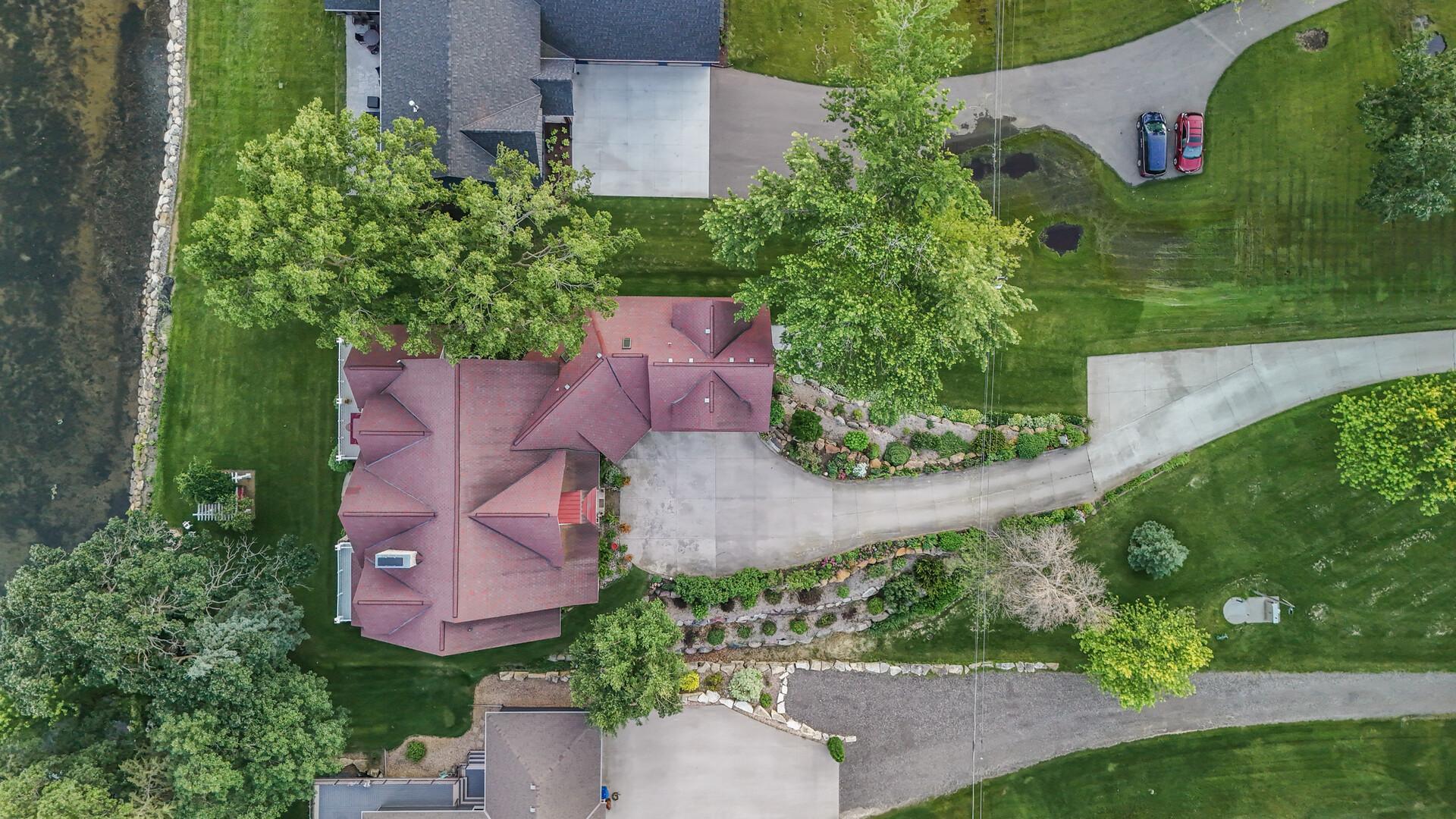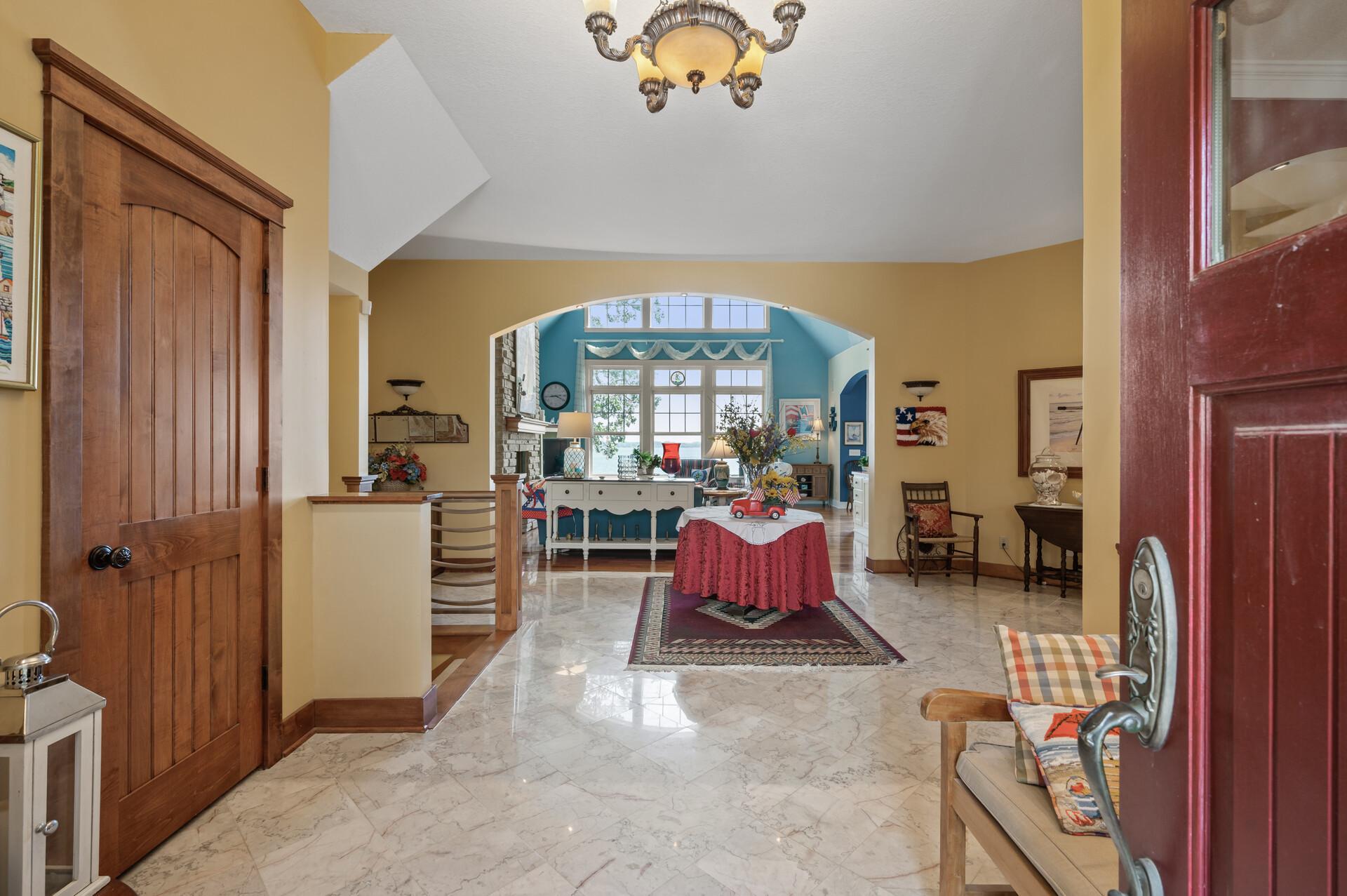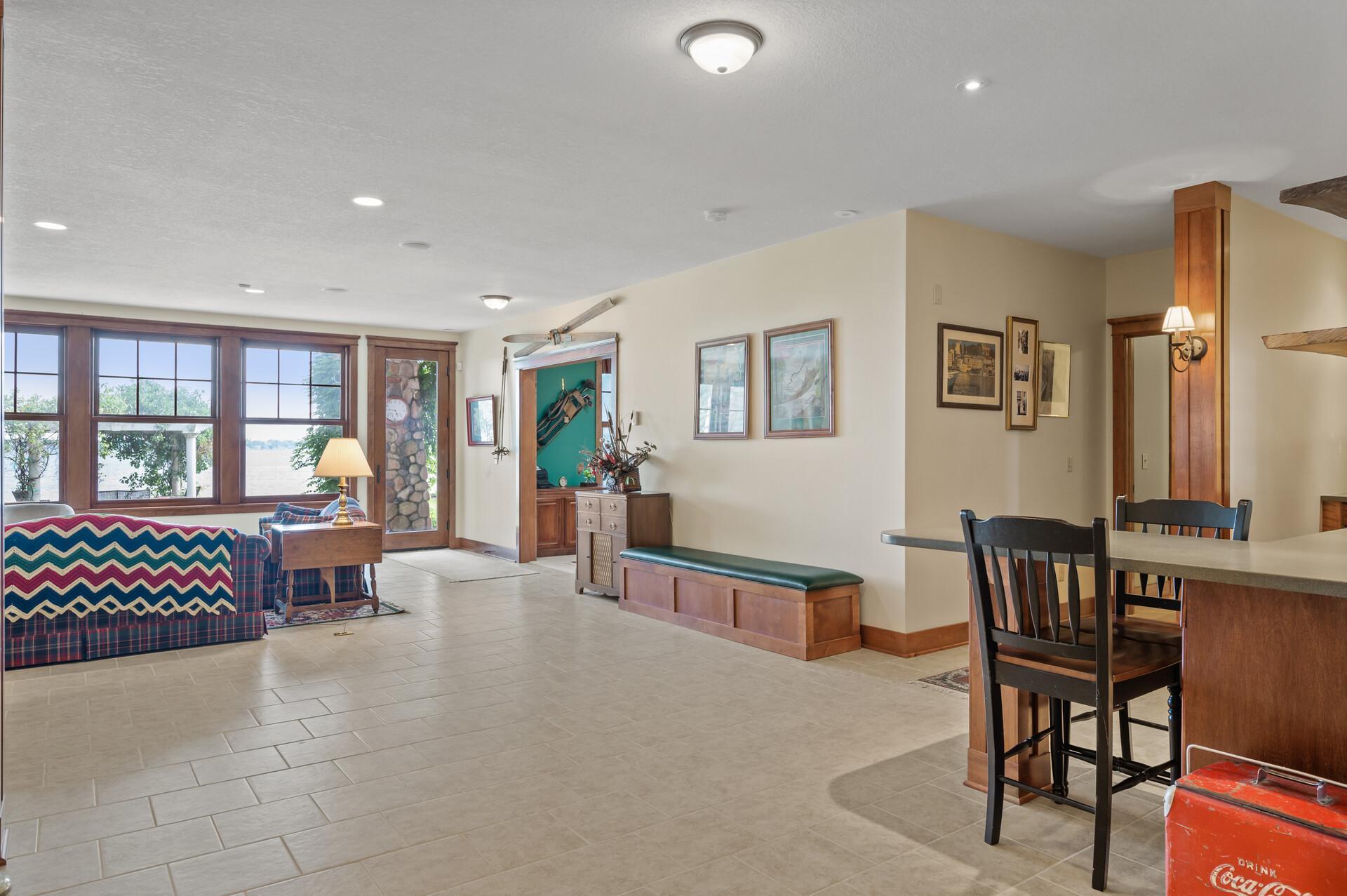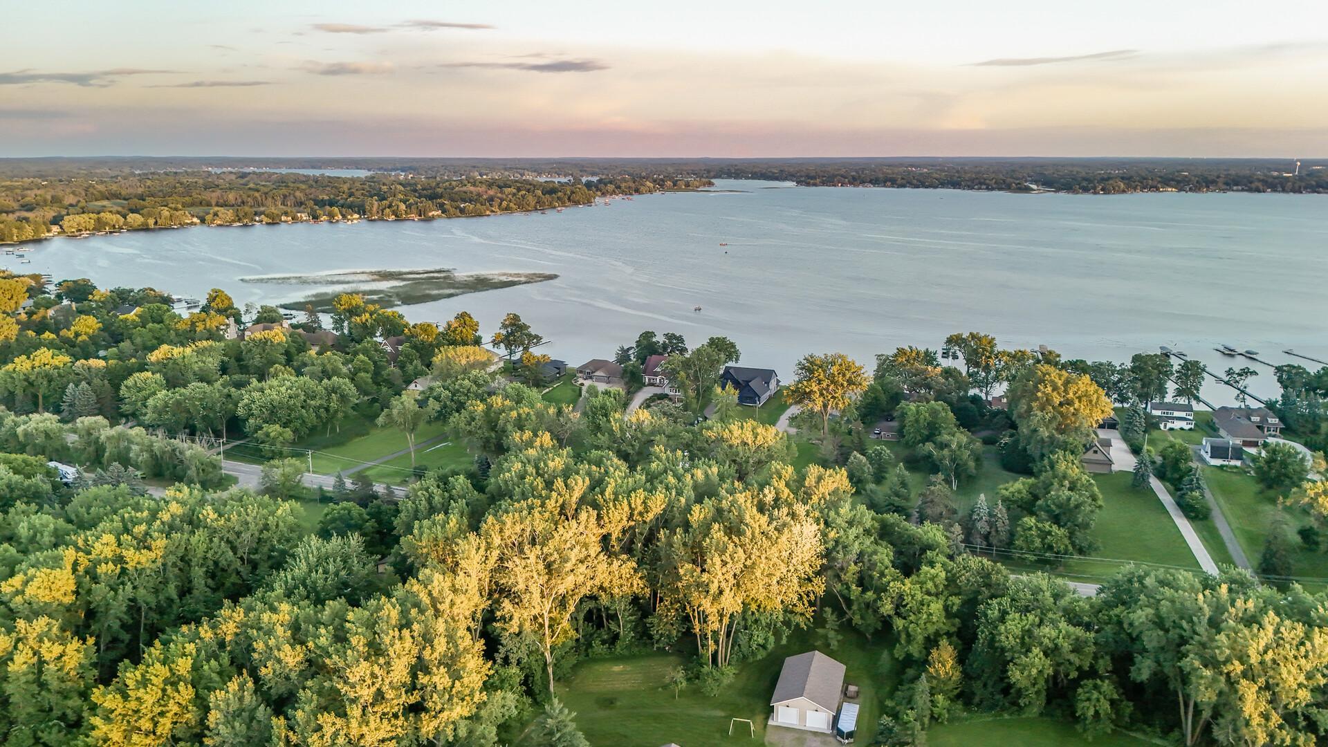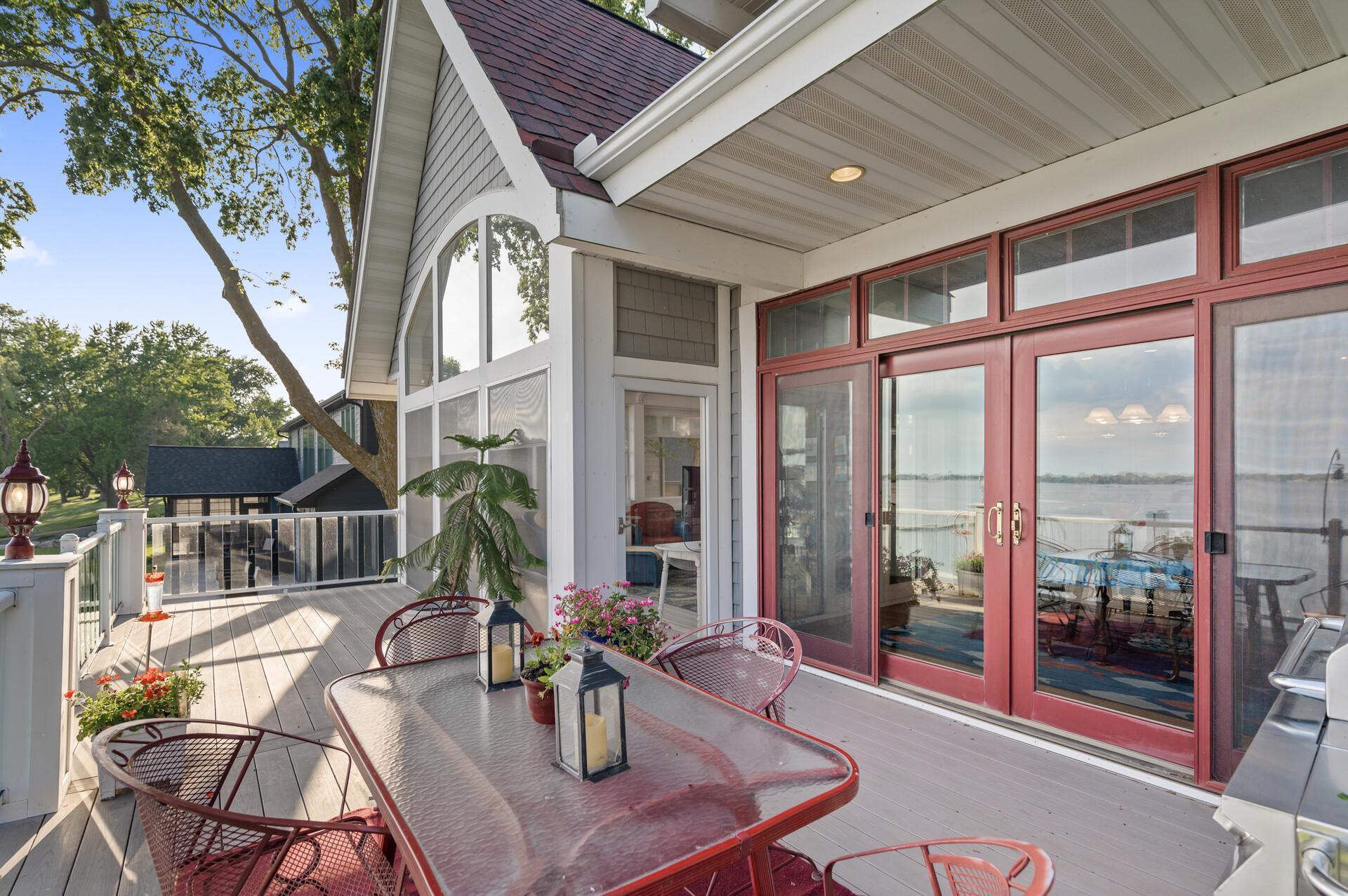 Welcome to a once-in-a-lifetime opportunity on Forest Lake’s coveted “Gold Coast” — a 1 owner, custom built lakeshore estate designed to feel like a timeless 1920s seaside cottage. Crafted in 2005, this one-of-a-kind home rests on a beautifully landscaped 550’ deep lot with 100’ of south-facing sandy shoreline on Forest Lake’s desirable First Lake. Positioned 400 feet from the road, the home offers serenity, abundant natural light & gentle summer breezes—just minutes from local amenities & freeway access, allowing for an easy 35-minute commute to the Twin Cities. Designed by renowned architect Ben Nelson, the home showcases exceptional craftsmanship with 12” precast Spancrete floors, TimberStrand framing & in-floor radiant heat on all three levels (excluding the upper garage & guest apartment). Energy-efficient features include 2x6 construction, Corbond foam insulation, Owens Corning Berkshire shingles & maintenance-free Nailite siding with Azek trim. The property features an impressive, attached garage configuration with a 3+ car upper garage and a 4+ car lower garage—offering exceptional space for vehicles, hobbies & all your recreational equipment, from lake gear to outdoor toys. The lower garage is fully equipped with in-floor heat, a floor drain, insulated walls & a 100-amp subpanel, adding functionality & year-round usability. The home offers 4 bedrooms, a dedicated office & additional flexible spaces perfect for a sewing room, workout room, or creative studio. It also includes a separate living suite—providing versatility for a variety of lifestyles, multi-generational living, or extended guests. There are 3 full baths, 3 three-quarter baths & 1 half baths. Most bedrooms feature beautiful lake views, enhancing the connection to the setting throughout. The spectacular great room features soaring cathedral ceilings, a floor-to-ceiling stone gas fireplace, custom built-ins & panoramic lake views. Majestic eagles often glide across the water, adding to the peaceful, scenic setting. The home also features a dedicated 13-seat theater room—perfect for movie nights, entertaining, or enjoying the big game in comfort. The main-floor primary suite offers a private lakeview balcony, a marble fireplace, a jetted tub, a rain shower, dual marble sinks, a walk-in closet & a charming nautical porthole window with patio seating. The chef’s kitchen is thoughtfully designed with a 6-burner Viking range, double wall oven, Miele panel-front dishwasher, granite island, copper ceiling & custom cabinetry. Adjacent are a formal dining room & an inviting breakfast space. The main-floor laundry features Zodiac blue quartz counters, a washer/dryer, a sink & a convenient laundry chute. Enjoy year-round lakeside living in the 3-season porch, which features a vaulted ceiling & E-Z Breeze window system, along with a maintenance-free Azek deck added in 2023. Every space reflects thoughtful design, comfort & timeless character. The private guest apartment above the garage offers access from the loft & a separate entrance from the main-level garage, providing excellent flexibility & privacy. This space includes a full kitchen, dining area, bedroom, three-quarter bath with a fully tiled shower, hickory floors, skylight & baseboard heat—ideal for guests, extended family, or independent living.