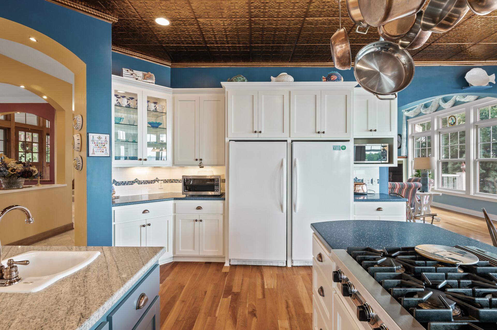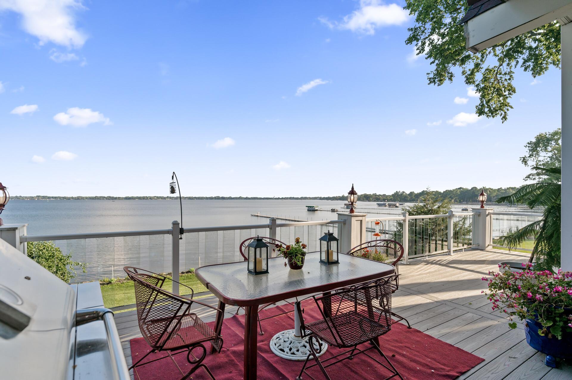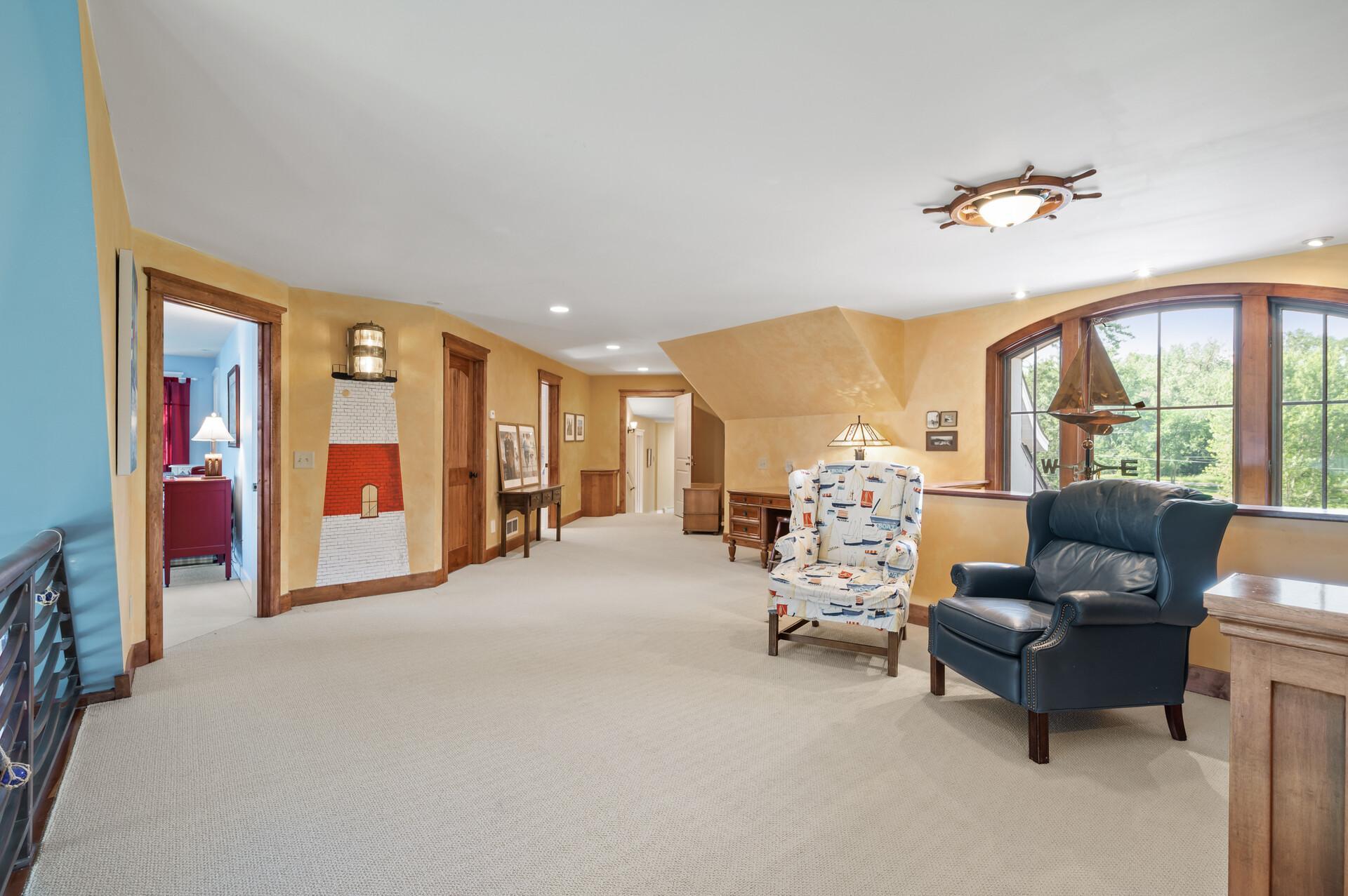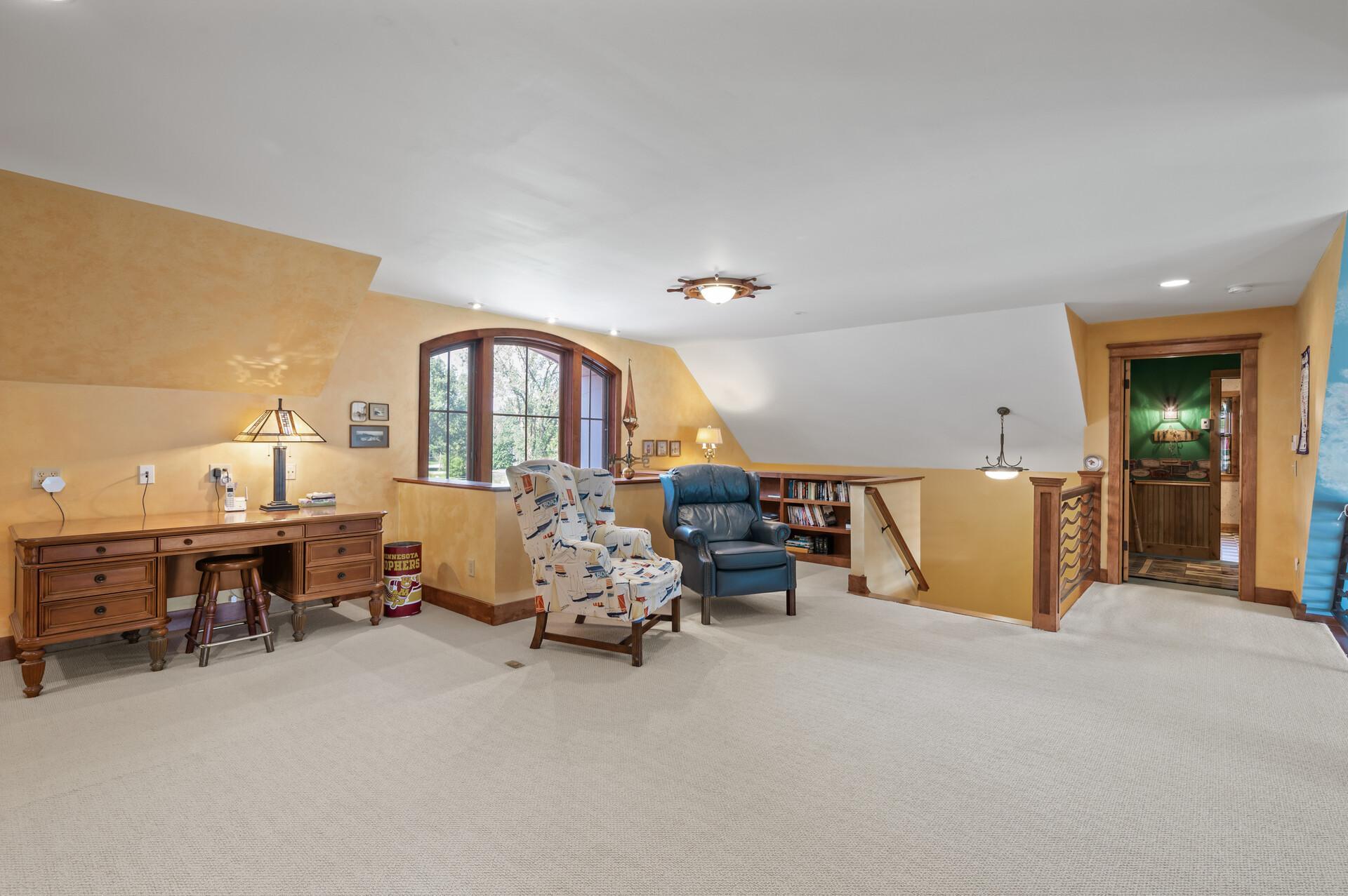 Welcome to a once-in-a-lifetime opportunity on Forest Lake’s coveted “Gold Coast” — a 1 owner, custom built lakeshore estate designed to feel like a timeless 1920s seaside cottage. Crafted in 2005, this one-of-a-kind home rests on a beautifully landscaped 550’ deep lot with 100’ of south-facing sandy shoreline on Forest Lake’s desirable First Lake. Positioned 400 feet from the road, the home offers serenity, abundant natural light & gentle summer breezes—just minutes from local amenities & freeway access, allowing for an easy 35-minute commute to the Twin Cities. Designed by renowned architect Ben Nelson, the home showcases exceptional craftsmanship with 12” precast Spancrete floors, TimberStrand framing & in-floor radiant heat on all three levels (excluding the upper garage & guest apartment). Energy-efficient features include 2x6 construction, Corbond foam insulation, Owens Corning Berkshire shingles & maintenance-free Nailite siding with Azek trim. The property features an impressive, attached garage configuration with a 3+ car upper garage and a 4+ car lower garage—offering exceptional space for vehicles, hobbies & all your recreational equipment, from lake gear to outdoor toys. The lower garage is fully equipped with in-floor heat, a floor drain, insulated walls & a 100-amp subpanel, adding functionality & year-round usability. The home offers 4 bedrooms, a dedicated office & additional flexible spaces perfect for a sewing room, workout room, or creative studio. It also includes a separate living suite—providing versatility for a variety of lifestyles, multi-generational living, or extended guests. There are 3 full baths, 3 three-quarter baths & 1 half baths. Most bedrooms feature beautiful lake views, enhancing the connection to the setting throughout. The spectacular great room features soaring cathedral ceilings, a floor-to-ceiling stone gas fireplace, custom built-ins & panoramic lake views. Majestic eagles often glide across the water, adding to the peaceful, scenic setting. The home also features a dedicated 13-seat theater room—perfect for movie nights, entertaining, or enjoying the big game in comfort. The main-floor primary suite offers a private lakeview balcony, a marble fireplace, a jetted tub, a rain shower, dual marble sinks, a walk-in closet & a charming nautical porthole window with patio seating. The chef’s kitchen is thoughtfully designed with a 6-burner Viking range, double wall oven, Miele panel-front dishwasher, granite island, copper ceiling & custom cabinetry. Adjacent are a formal dining room & an inviting breakfast space. The main-floor laundry features Zodiac blue quartz counters, a washer/dryer, a sink & a convenient laundry chute. Enjoy year-round lakeside living in the 3-season porch, which features a vaulted ceiling & E-Z Breeze window system, along with a maintenance-free Azek deck added in 2023. Every space reflects thoughtful design, comfort & timeless character. The private guest apartment above the garage offers access from the loft & a separate entrance from the main-level garage, providing excellent flexibility & privacy. This space includes a full kitchen, dining area, bedroom, three-quarter bath with a fully tiled shower, hickory floors, skylight & baseboard heat—ideal for guests, extended family, or independent living.