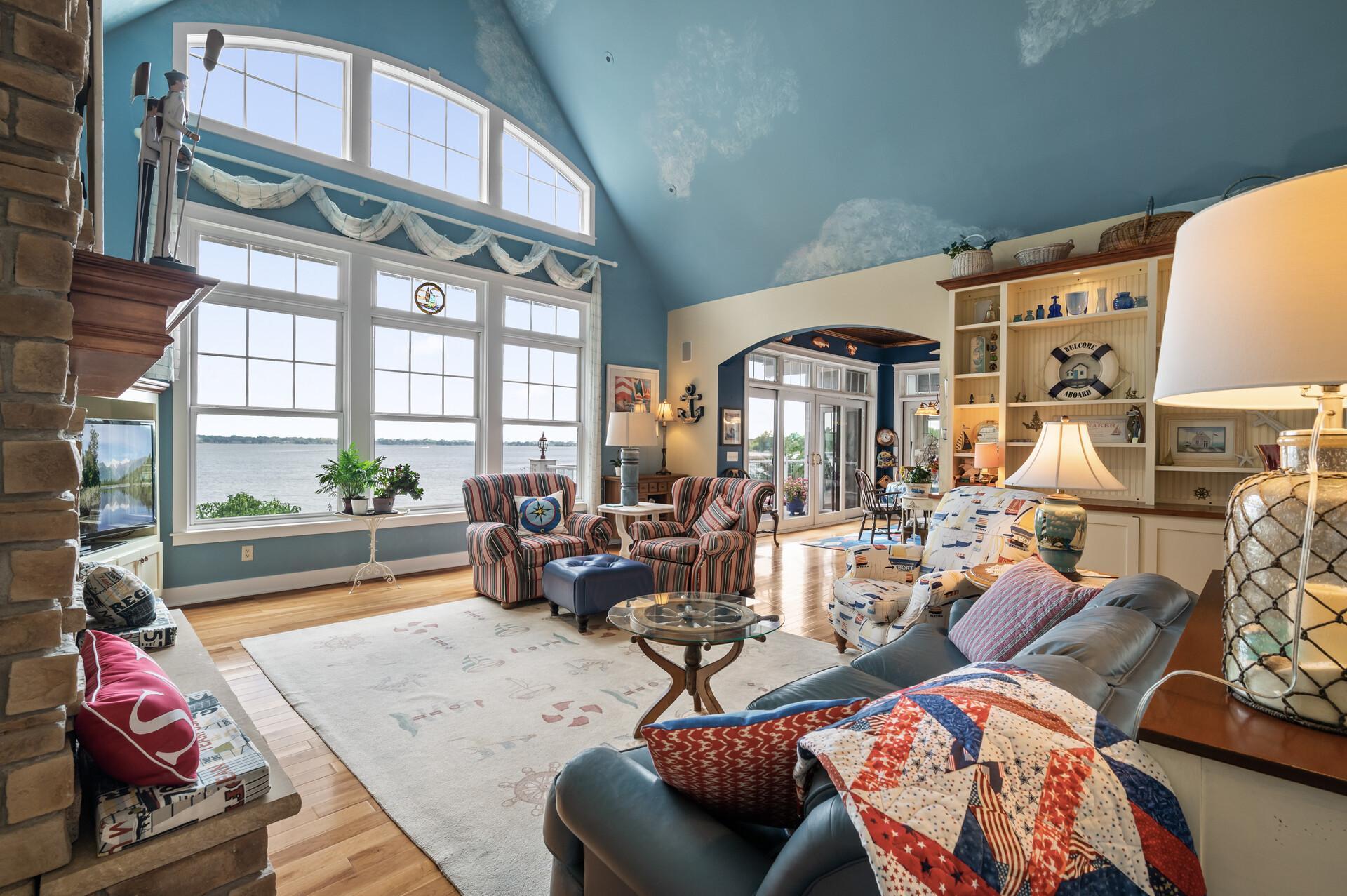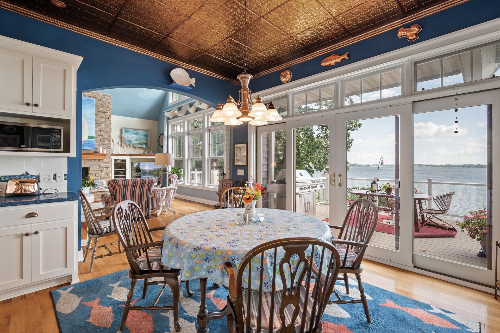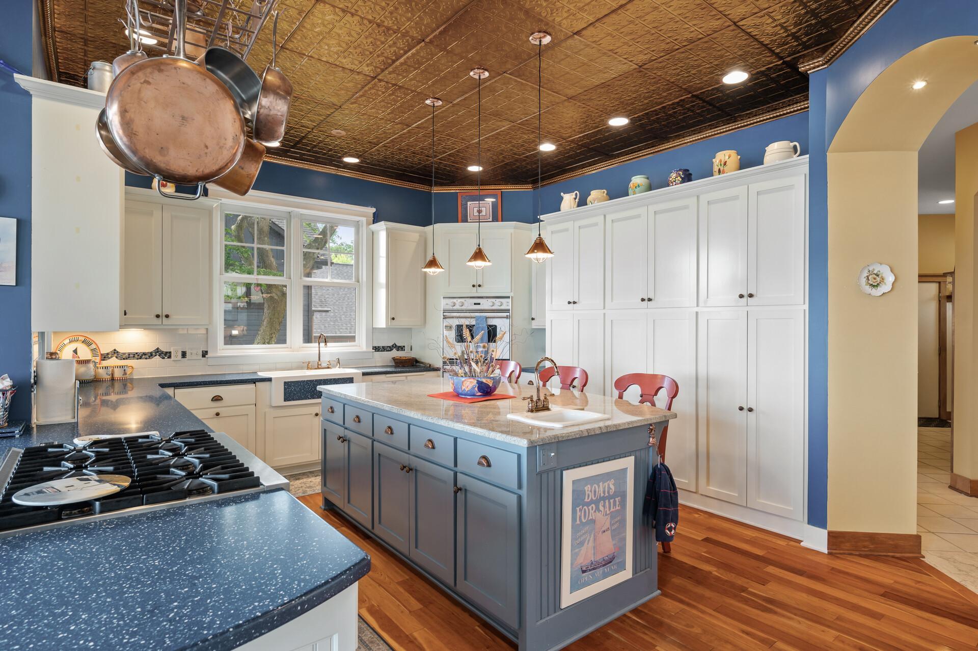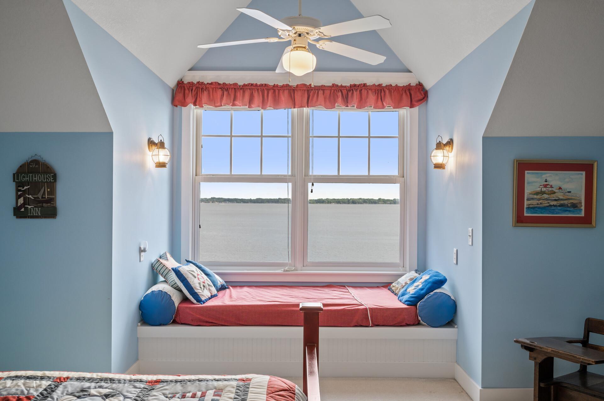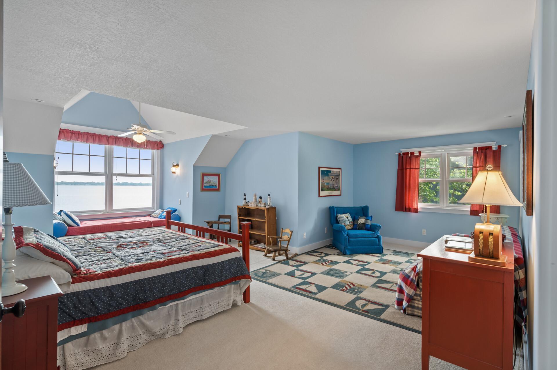 Welcome to a once-in-a-lifetime opportunity on Forest Lake’s coveted “Gold Coast” — a 1 owner, custom built lakeshore estate designed to feel like a timeless 1920s seaside cottage. Crafted in 2005, this one-of-a-kind home rests on a beautifully landscaped 550’ deep lot with 100’ of south-facing sandy shoreline on Forest Lake’s desirable First Lake. Positioned 400 feet from the road, the home offers serenity, abundant natural light & gentle summer breezes—just minutes from local amenities & freeway access, allowing for an easy 35-minute commute to the Twin Cities. Designed by renowned architect Ben Nelson, the home showcases exceptional craftsmanship with 12” precast Spancrete floors, TimberStrand framing & in-floor radiant heat on all three levels (excluding the upper garage & guest apartment). Energy-efficient features include 2x6 construction, Corbond foam insulation, Owens Corning Berkshire shingles & maintenance-free Nailite siding with Azek trim. The property features an impressive, attached garage configuration with a 3+ car upper garage and a 4+ car lower garage—offering exceptional space for vehicles, hobbies & all your recreational equipment, from lake gear to outdoor toys. The lower garage is fully equipped with in-floor heat, a floor drain, insulated walls & a 100-amp subpanel, adding functionality & year-round usability. The home offers 4 bedrooms, a dedicated office & additional flexible spaces perfect for a sewing room, workout room, or creative studio. It also includes a separate living suite—providing versatility for a variety of lifestyles, multi-generational living, or extended guests. There are 3 full baths, 3 three-quarter baths & 1 half baths. Most bedrooms feature beautiful lake views, enhancing the connection to the setting throughout. The spectacular great room features soaring cathedral ceilings, a floor-to-ceiling stone gas fireplace, custom built-ins & panoramic lake views. Majestic eagles often glide across the water, adding to the peaceful, scenic setting. The home also features a dedicated 13-seat theater room—perfect for movie nights, entertaining, or enjoying the big game in comfort. The main-floor primary suite offers a private lakeview balcony, a marble fireplace, a jetted tub, a rain shower, dual marble sinks, a walk-in closet & a charming nautical porthole window with patio seating. The chef’s kitchen is thoughtfully designed with a 6-burner Viking range, double wall oven, Miele panel-front dishwasher, granite island, copper ceiling & custom cabinetry. Adjacent are a formal dining room & an inviting breakfast space. The main-floor laundry features Zodiac blue quartz counters, a washer/dryer, a sink & a convenient laundry chute. Enjoy year-round lakeside living in the 3-season porch, which features a vaulted ceiling & E-Z Breeze window system, along with a maintenance-free Azek deck added in 2023. Every space reflects thoughtful design, comfort & timeless character. The private guest apartment above the garage offers access from the loft & a separate entrance from the main-level garage, providing excellent flexibility & privacy. This space includes a full kitchen, dining area, bedroom, three-quarter bath with a fully tiled shower, hickory floors, skylight & baseboard heat—ideal for guests, extended family, or independent living.