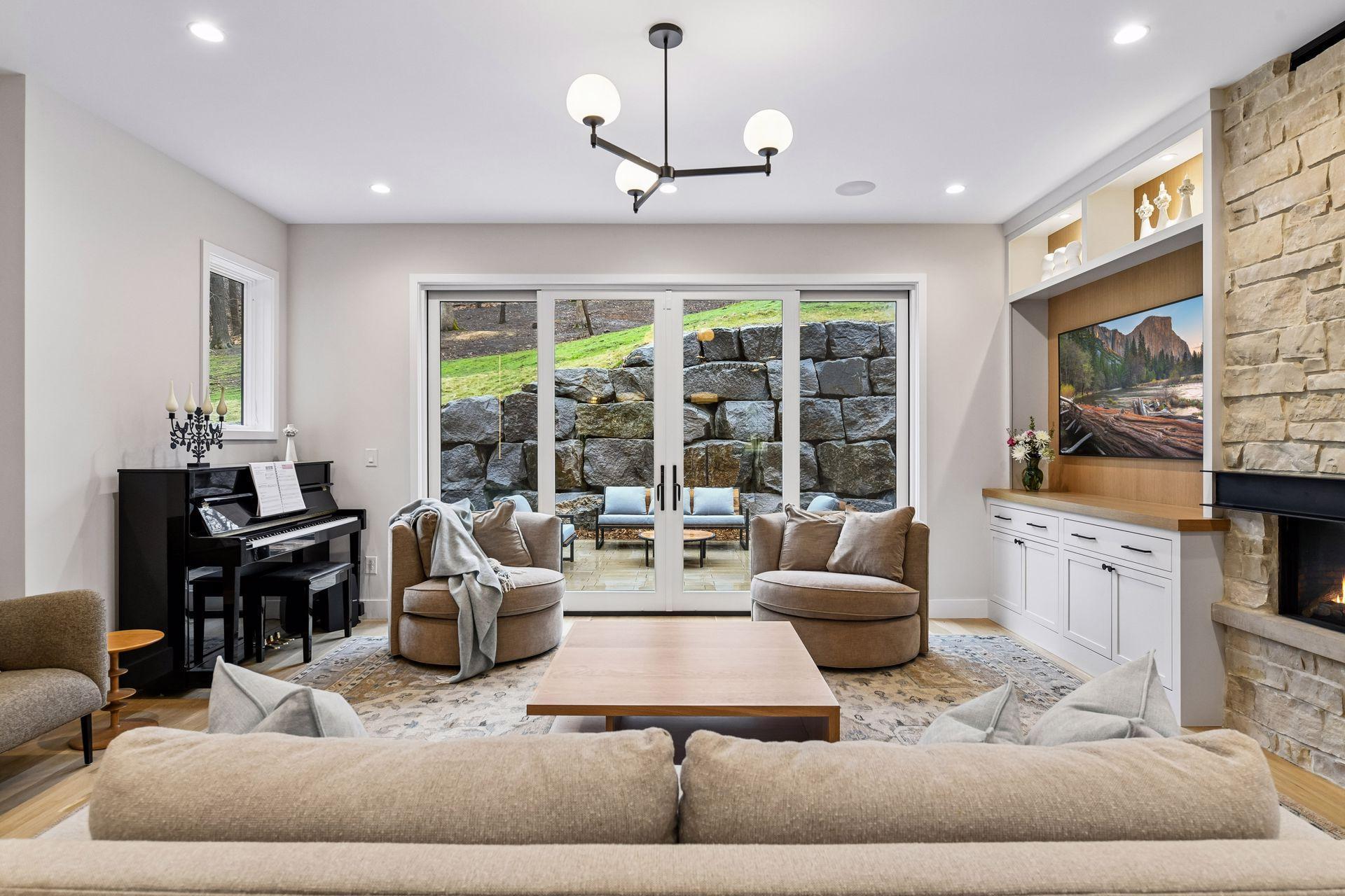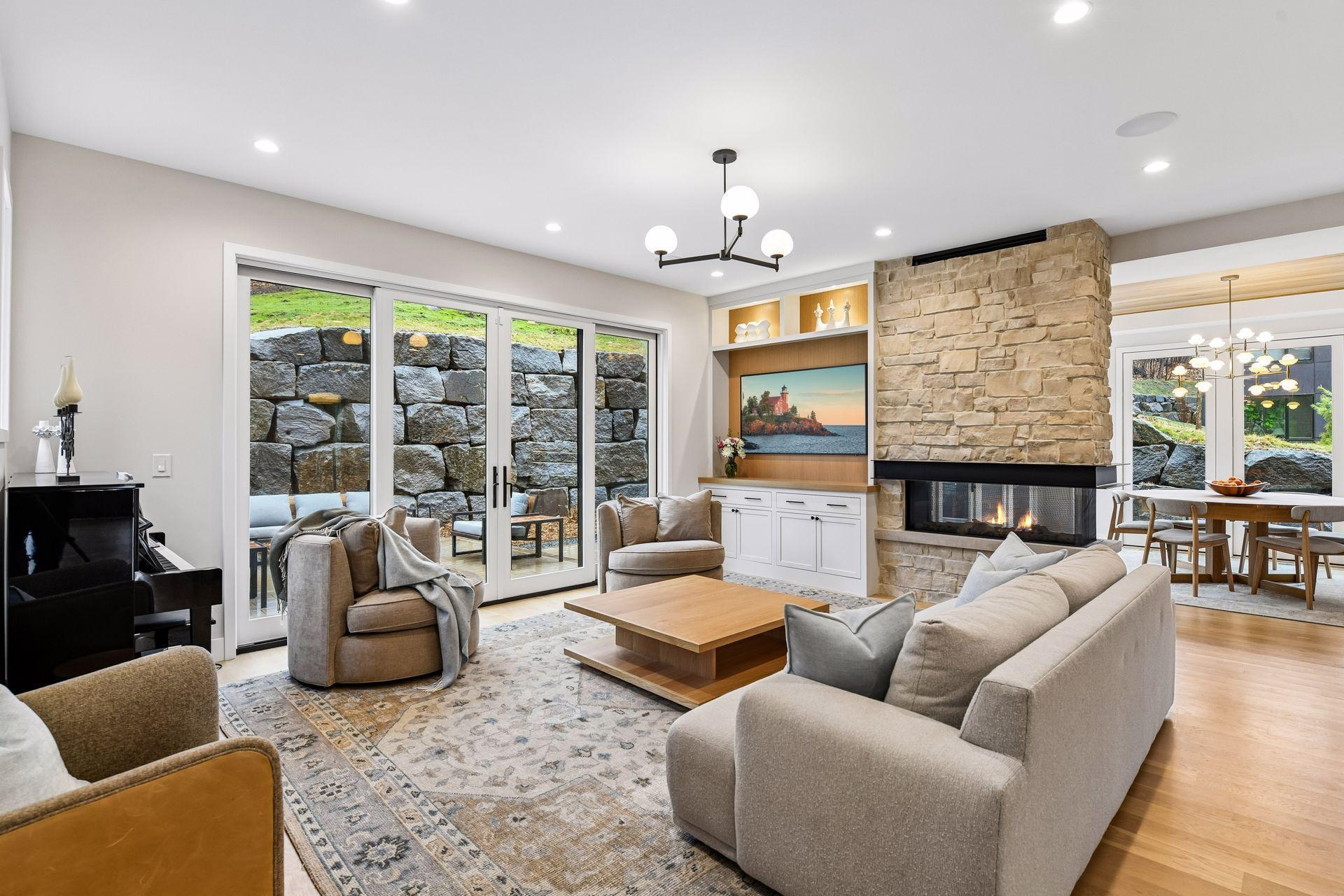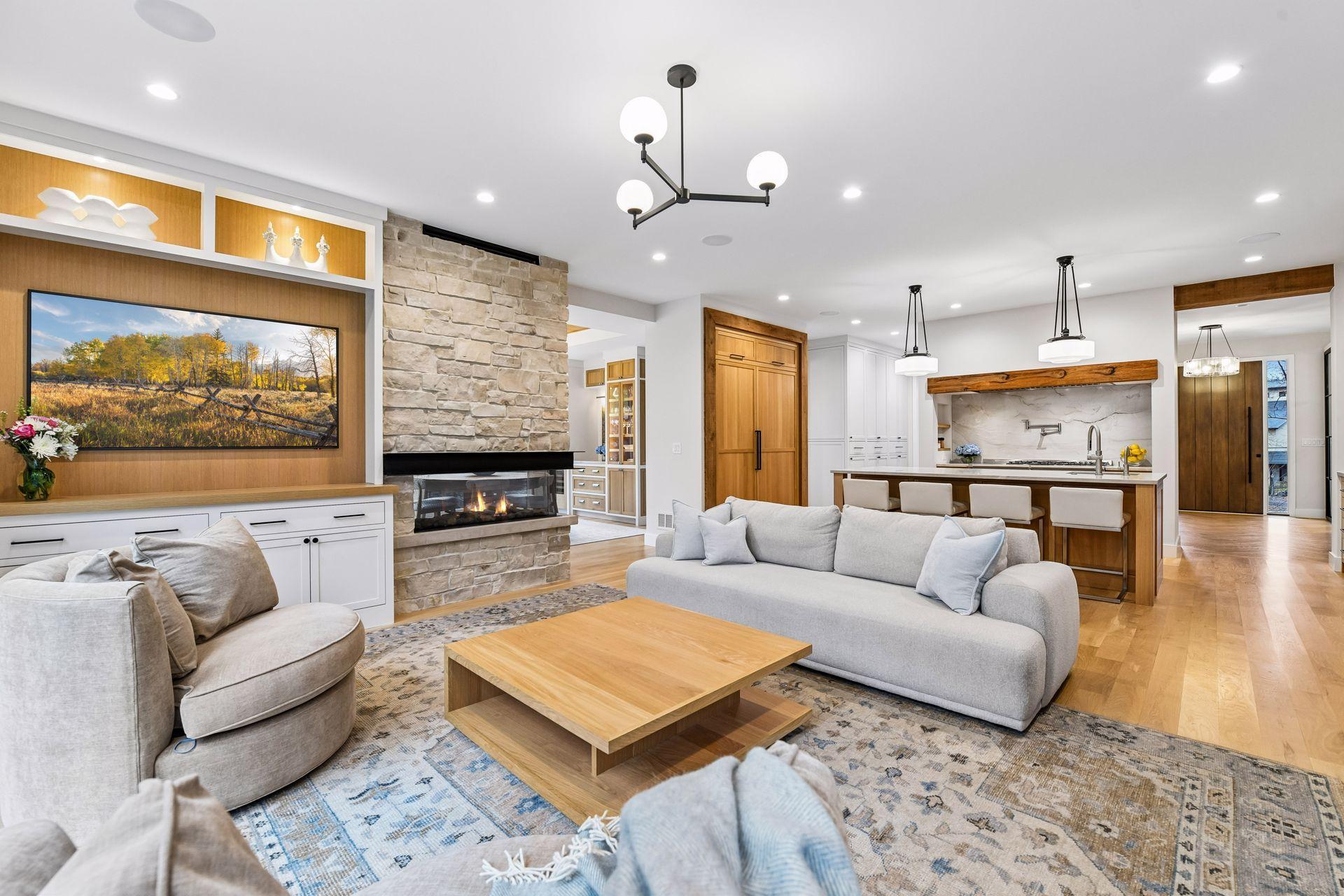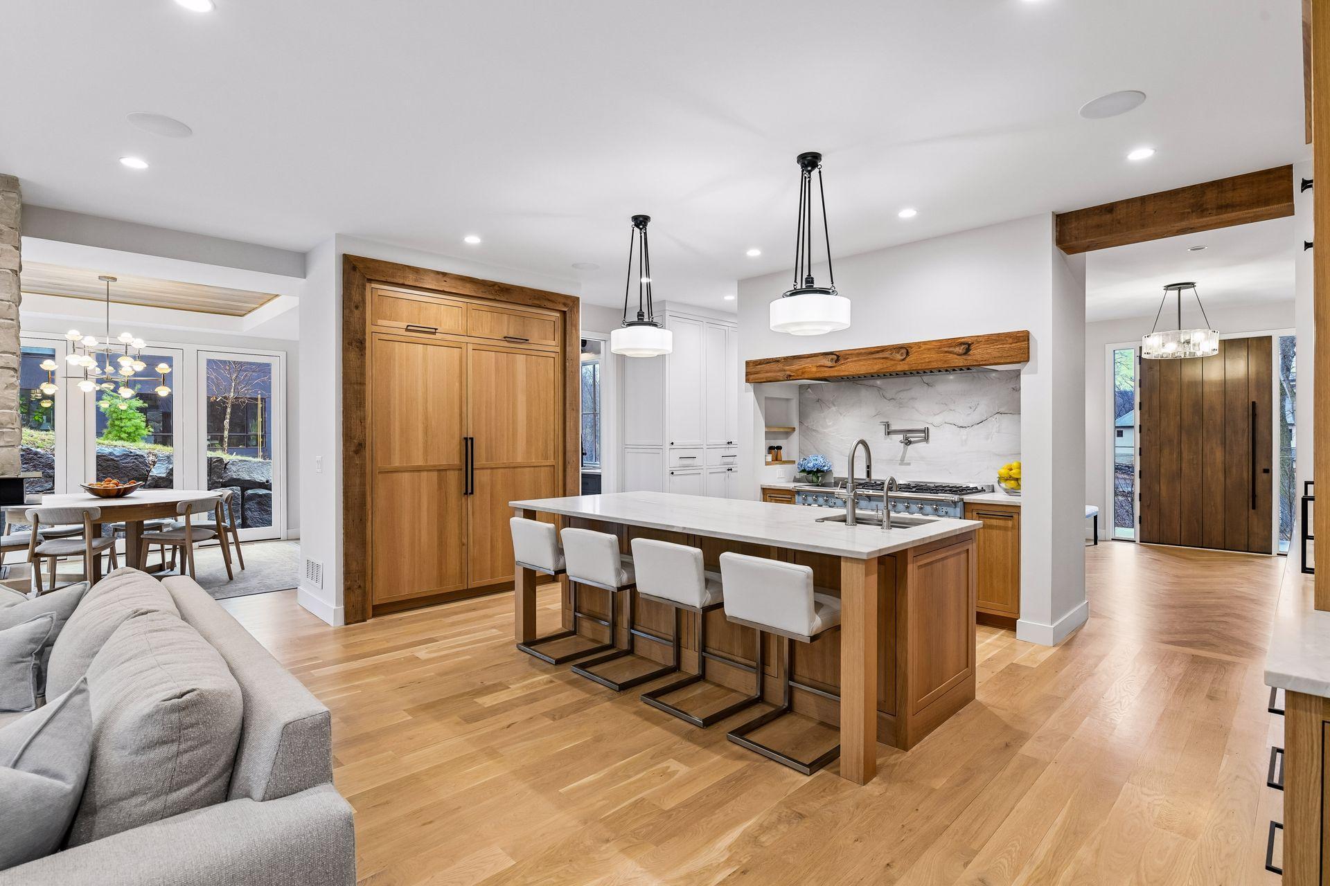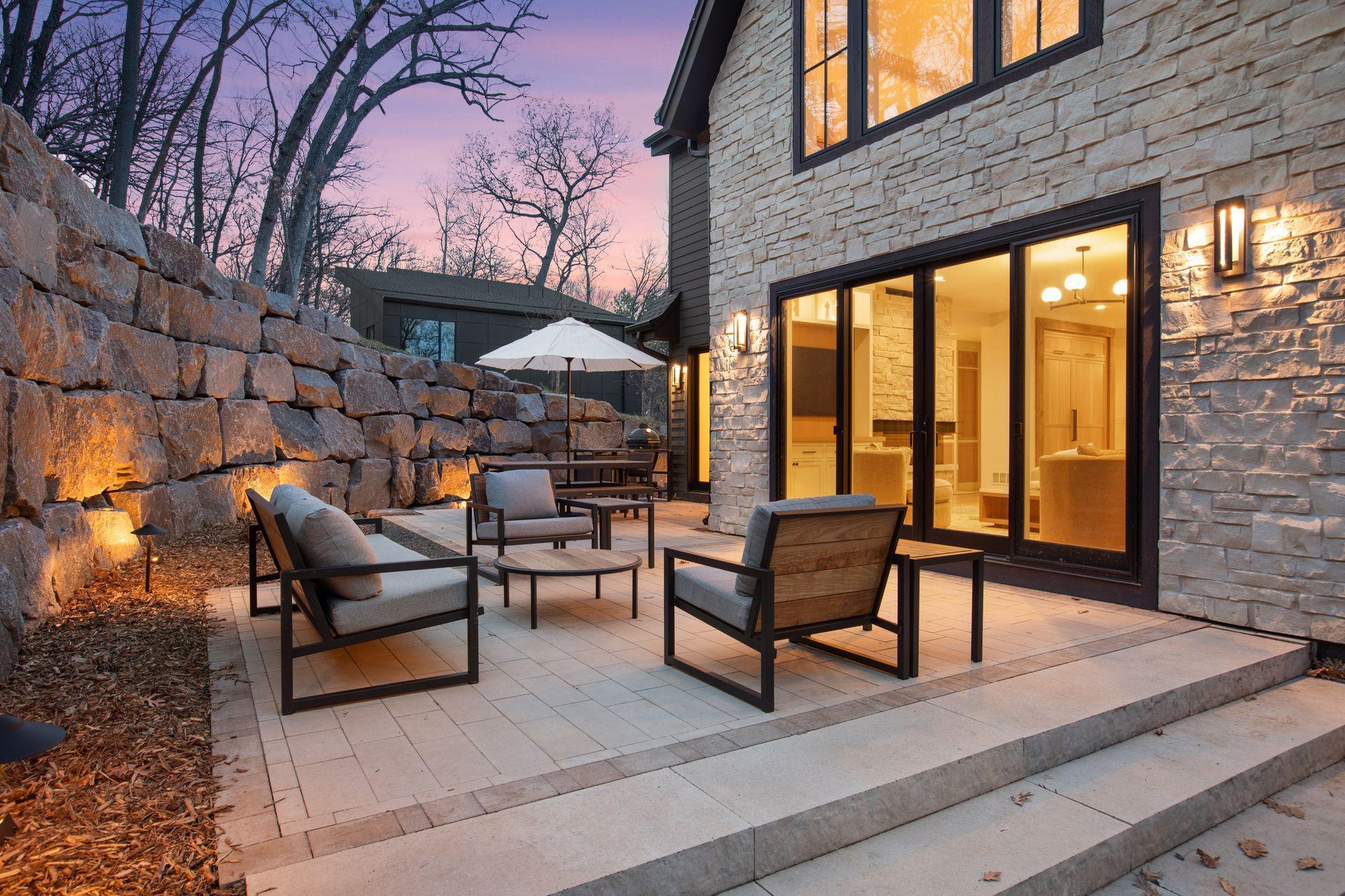 Available only due to relocation, this bespoke residence in Edina's prestigious Indian Hills neighborhood was masterfully designed by Alexander Design Group and built by Ador Homes. Blending timeless craftsmanship with modern sophistication, every detail has been thoughtfully curated to create an unparalleled living experience. The exterior sets an elegant tone with hand-laid stonework and reclaimed wood accents, opening into a deeply customized interior featuring custom cast iron details and artisan hand-blown glass fixtures. The heart of the main level is a culinary masterpiece anchored by a statement Lacanche range, supported by a fully equipped butler's kitchen, dual dishwashers, and a spacious pantry perfectly designed for seamless entertaining. The living spaces flow effortlessly, with a formal dining room and a stunning living area that opens directly onto a sprawling paver patio for refined indoor-outdoor living. The main floor also hosts a dedicated, professional-grade fitness studio and a highly functional mudroom complete with a secondary laundry station. Upstairs, you will find four generously appointed bedrooms and the primary laundry suite, giving this home the ultimate convenience of two full sets of washers and dryers. The primary suite serves as a true private sanctuary, showcasing a spa-inspired ensuite bath with radiant heated floors and a custom towel-warming rack. The lower level is an entertainer's haven. It features a spacious family and media room, a custom wet bar, a fifth bedroom suite, and a captivating hidden room cleverly concealed behind a bookcase door. With uncompromising attention to detail and abundant storage throughout, this home stands apart as a rare architectural achievement in one of Edina's most sought-after enclaves.