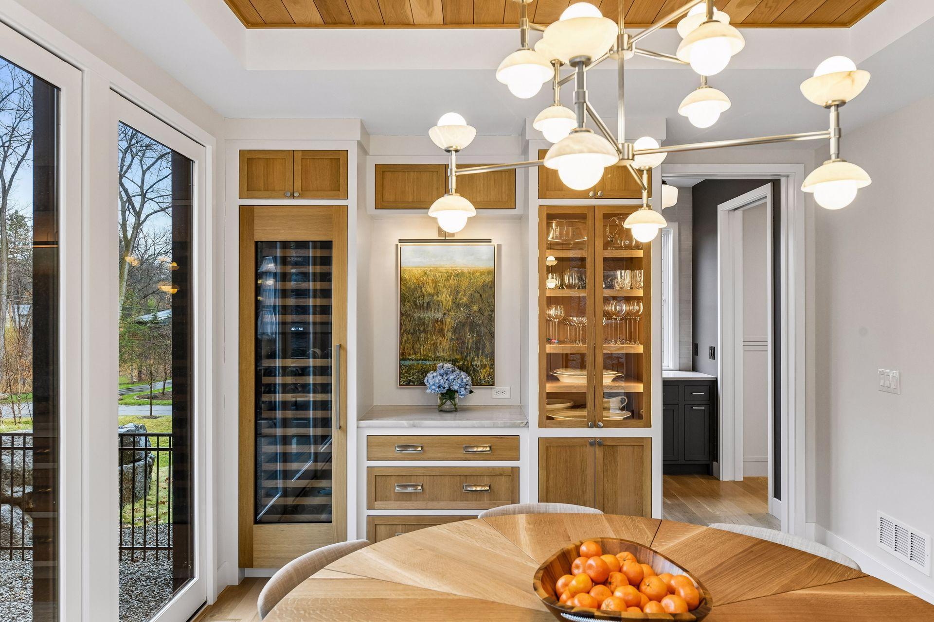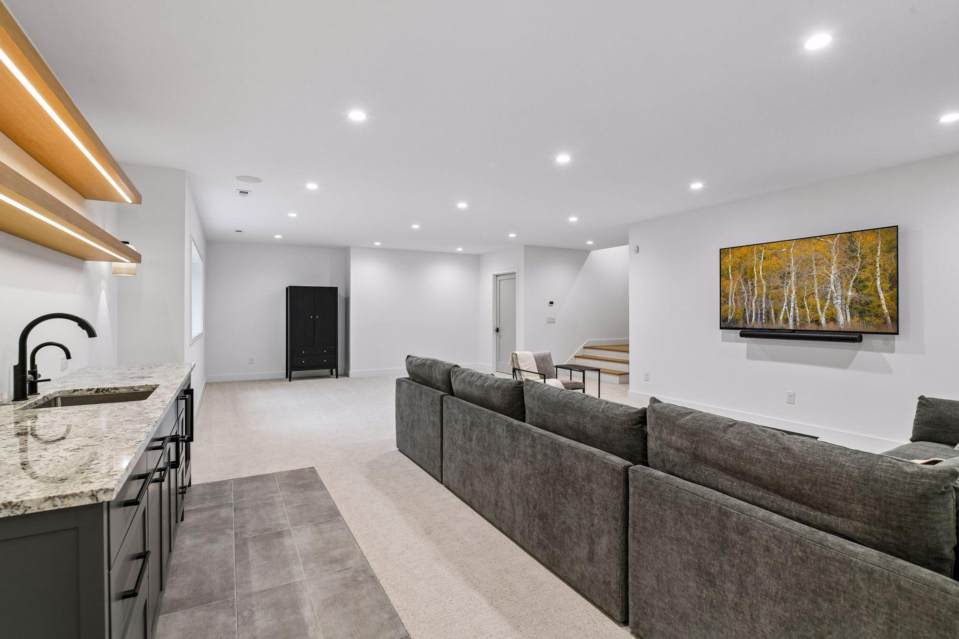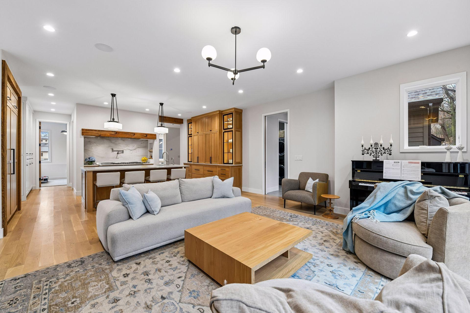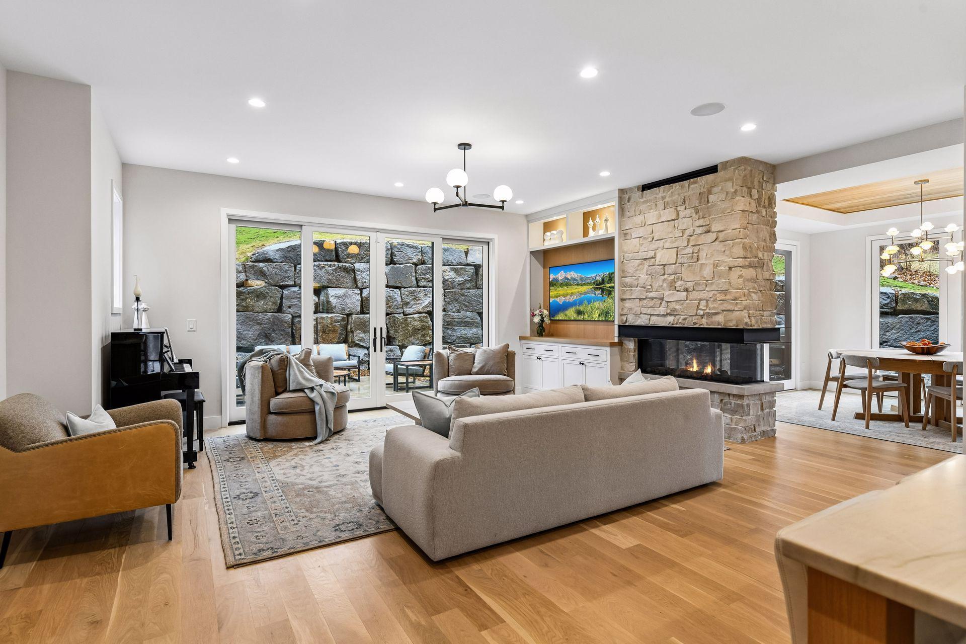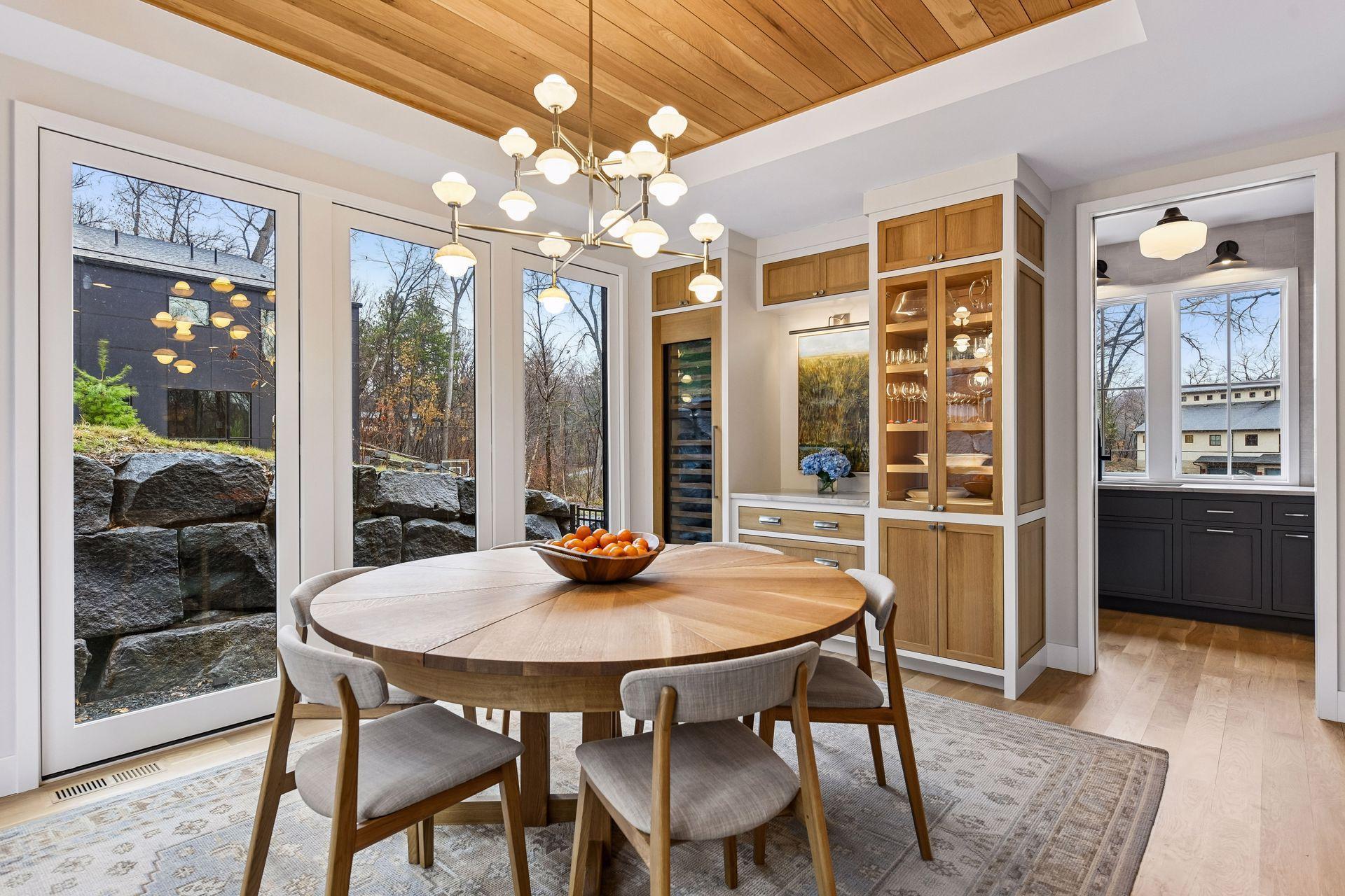 Available only due to relocation, this bespoke residence in Edina's prestigious Indian Hills neighborhood was masterfully designed by Alexander Design Group and built by Ador Homes. Blending timeless craftsmanship with modern sophistication, every detail has been thoughtfully curated to create an unparalleled living experience. The exterior sets an elegant tone with hand-laid stonework and reclaimed wood accents, opening into a deeply customized interior featuring custom cast iron details and artisan hand-blown glass fixtures. The heart of the main level is a culinary masterpiece anchored by a statement Lacanche range, supported by a fully equipped butler's kitchen, dual dishwashers, and a spacious pantry perfectly designed for seamless entertaining. The living spaces flow effortlessly, with a formal dining room and a stunning living area that opens directly onto a sprawling paver patio for refined indoor-outdoor living. The main floor also hosts a dedicated, professional-grade fitness studio and a highly functional mudroom complete with a secondary laundry station. Upstairs, you will find four generously appointed bedrooms and the primary laundry suite, giving this home the ultimate convenience of two full sets of washers and dryers. The primary suite serves as a true private sanctuary, showcasing a spa-inspired ensuite bath with radiant heated floors and a custom towel-warming rack. The lower level is an entertainer's haven. It features a spacious family and media room, a custom wet bar, a fifth bedroom suite, and a captivating hidden room cleverly concealed behind a bookcase door. With uncompromising attention to detail and abundant storage throughout, this home stands apart as a rare architectural achievement in one of Edina's most sought-after enclaves.
