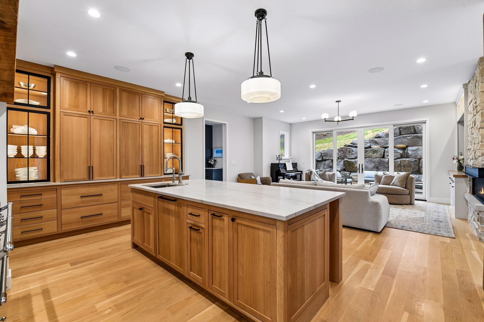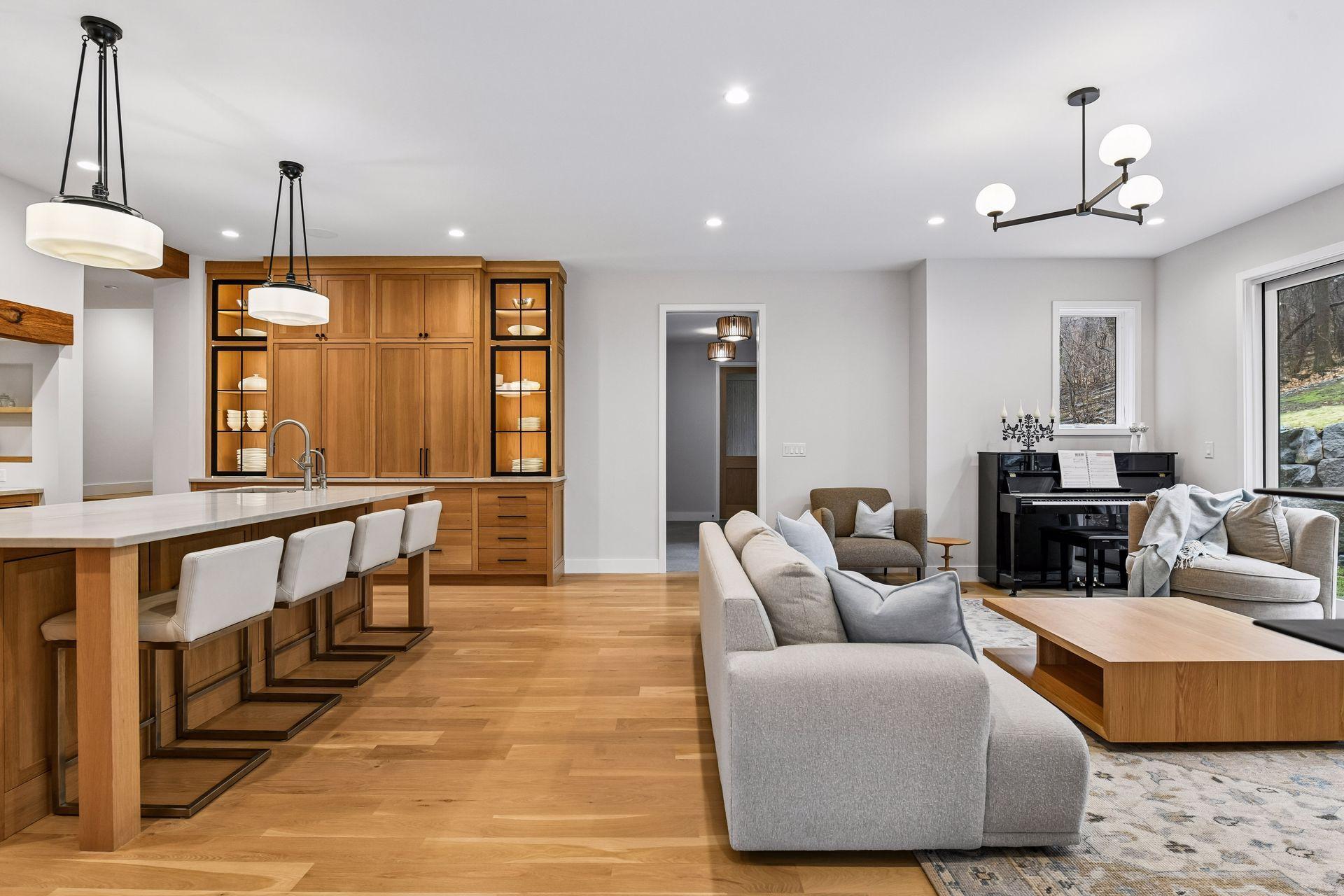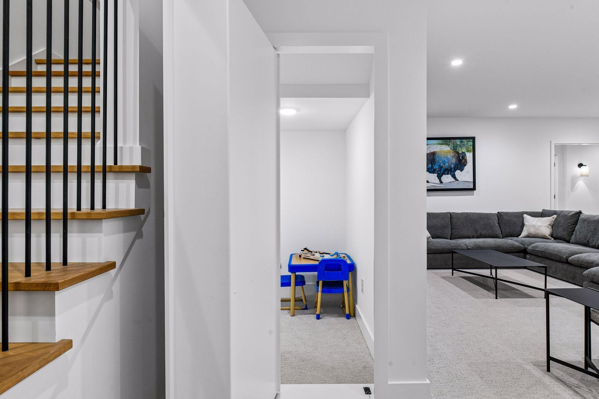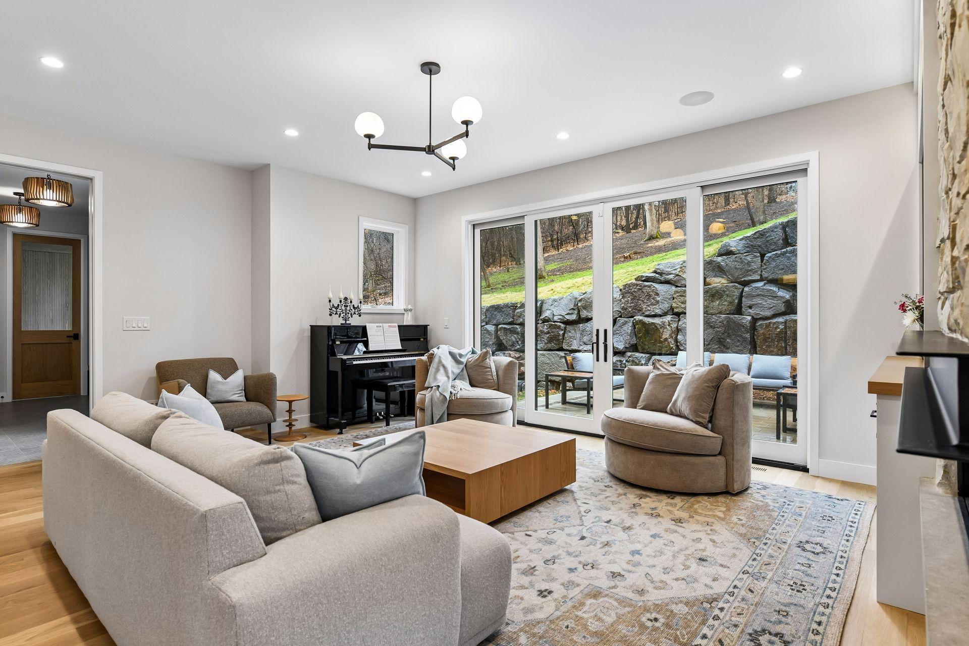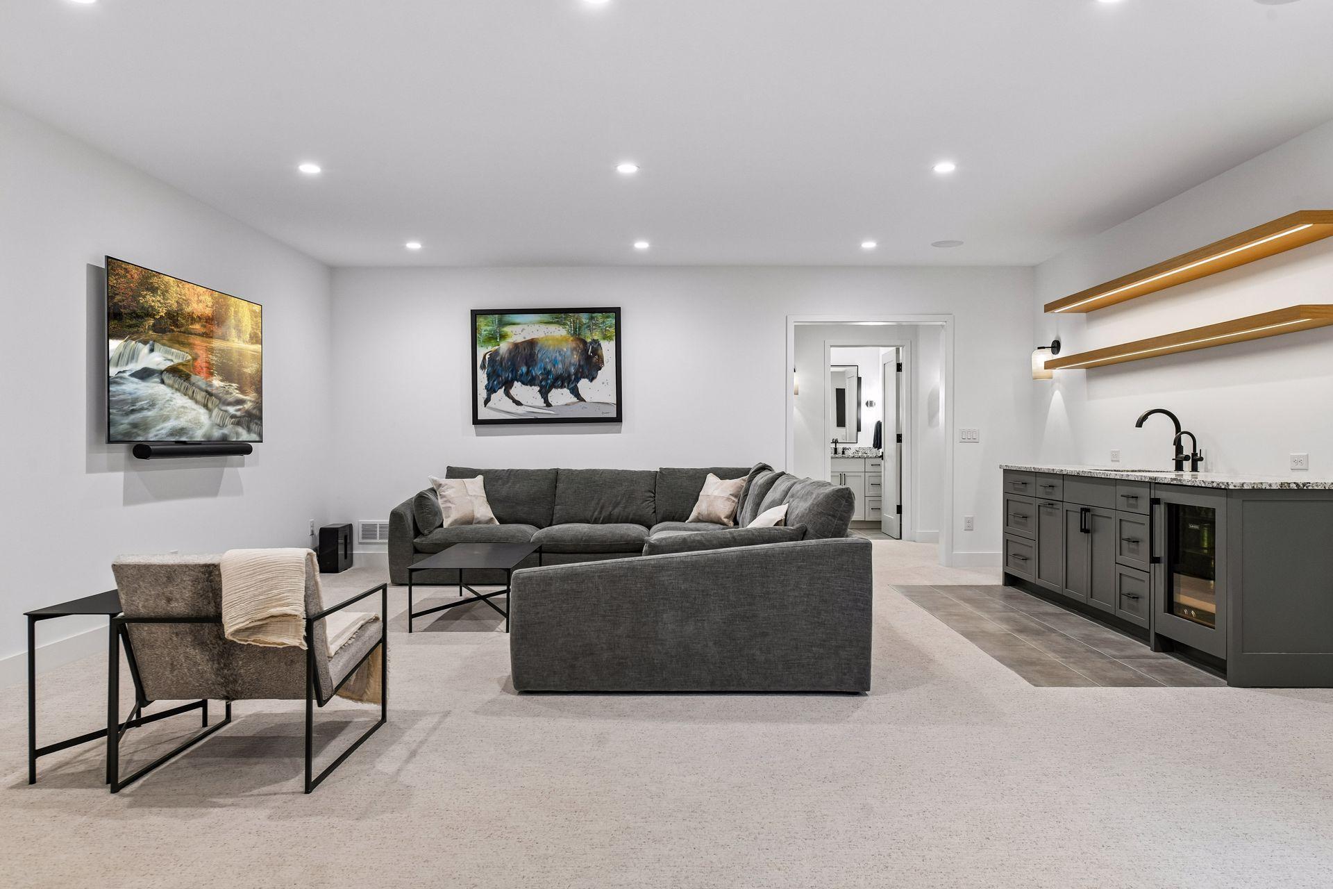 Available only due to relocation, this bespoke residence in Edina's prestigious Indian Hills neighborhood was masterfully designed by Alexander Design Group and built by Ador Homes. Blending timeless craftsmanship with modern sophistication, every detail has been thoughtfully curated to create an unparalleled living experience. The exterior sets an elegant tone with hand-laid stonework and reclaimed wood accents, opening into a deeply customized interior featuring custom cast iron details and artisan hand-blown glass fixtures. The heart of the main level is a culinary masterpiece anchored by a statement Lacanche range, supported by a fully equipped butler's kitchen, dual dishwashers, and a spacious pantry perfectly designed for seamless entertaining. The living spaces flow effortlessly, with a formal dining room and a stunning living area that opens directly onto a sprawling paver patio for refined indoor-outdoor living. The main floor also hosts a dedicated, professional-grade fitness studio and a highly functional mudroom complete with a secondary laundry station. Upstairs, you will find four generously appointed bedrooms and the primary laundry suite, giving this home the ultimate convenience of two full sets of washers and dryers. The primary suite serves as a true private sanctuary, showcasing a spa-inspired ensuite bath with radiant heated floors and a custom towel-warming rack. The lower level is an entertainer's haven. It features a spacious family and media room, a custom wet bar, a fifth bedroom suite, and a captivating hidden room cleverly concealed behind a bookcase door. With uncompromising attention to detail and abundant storage throughout, this home stands apart as a rare architectural achievement in one of Edina's most sought-after enclaves.