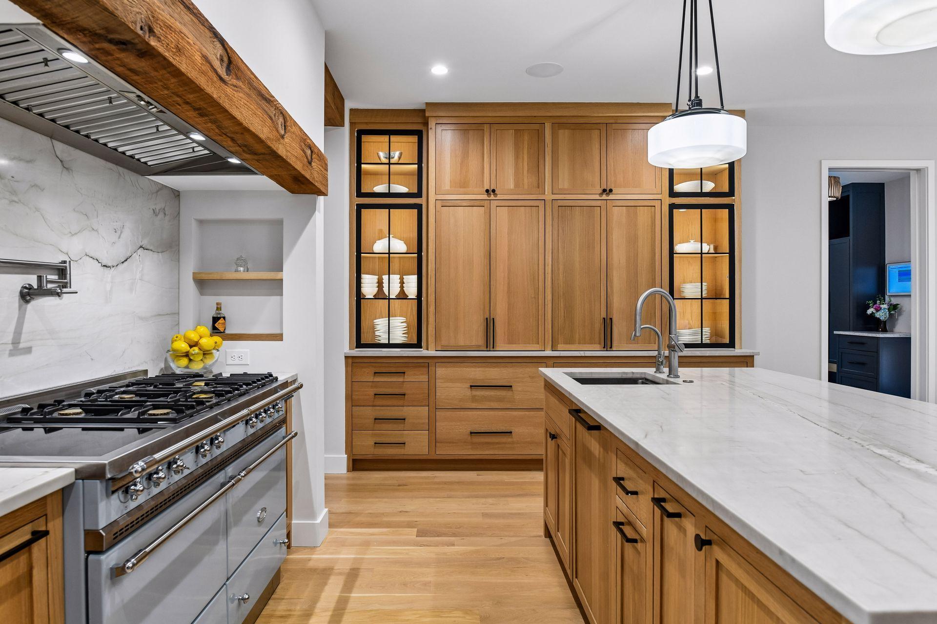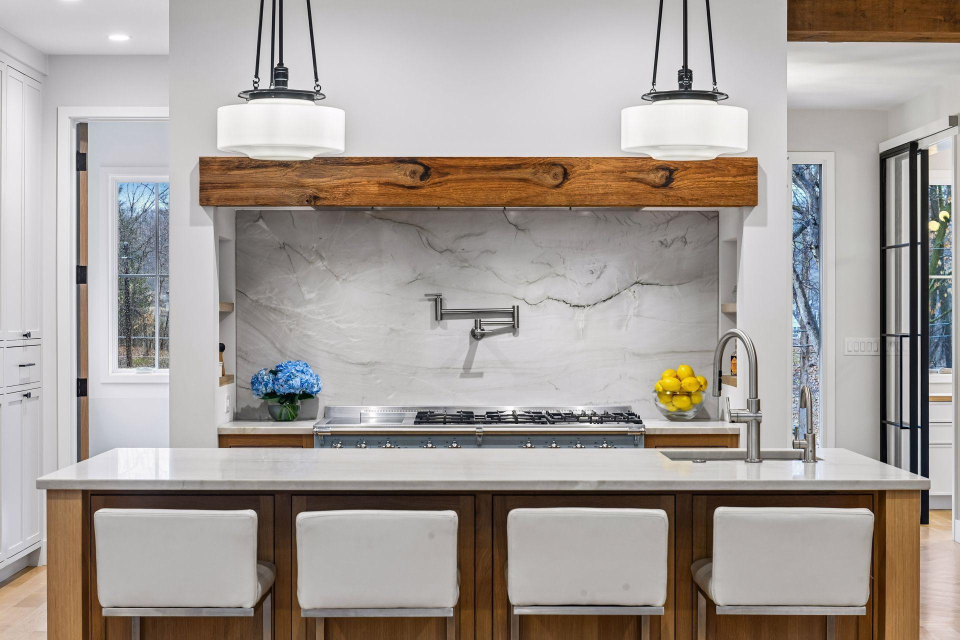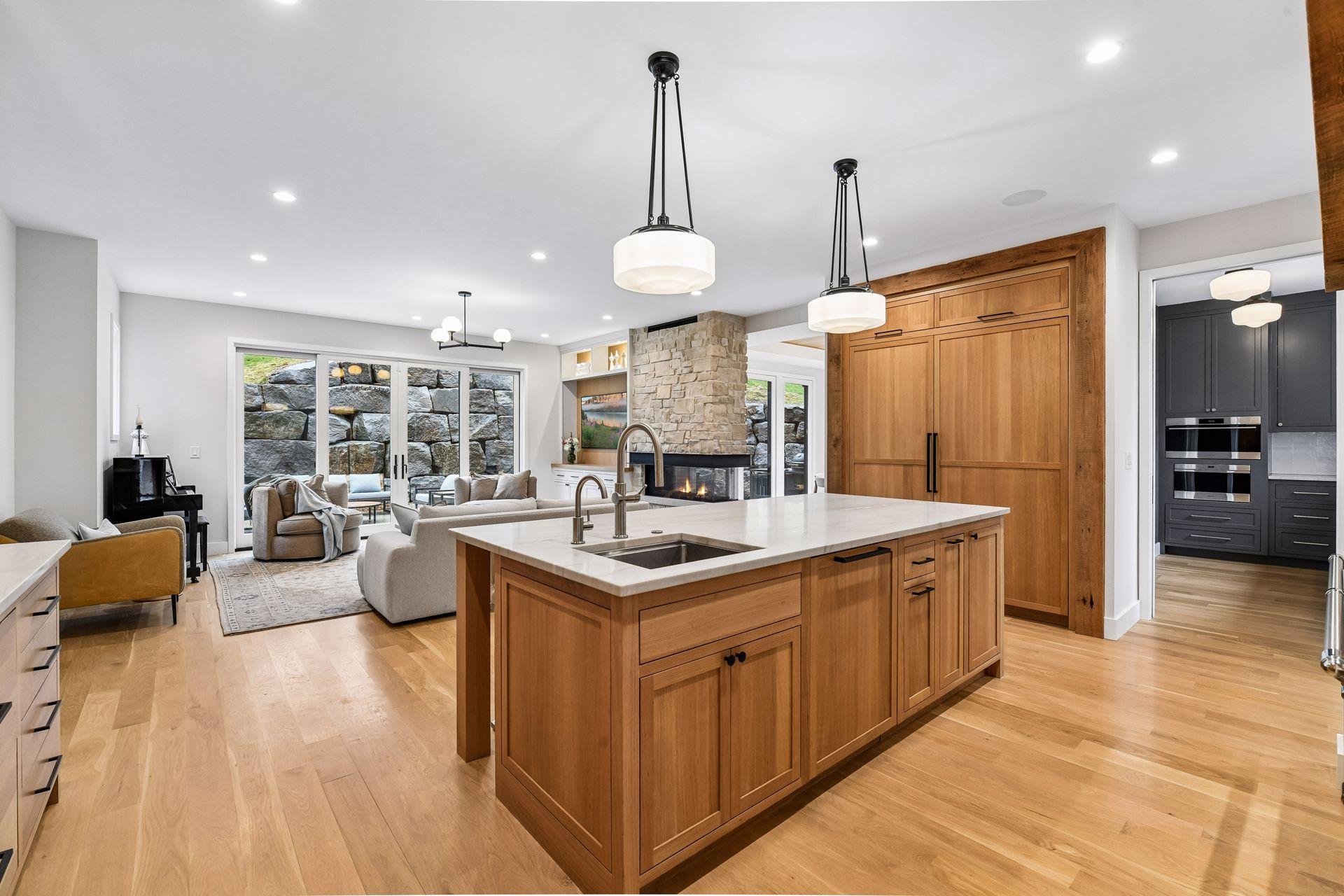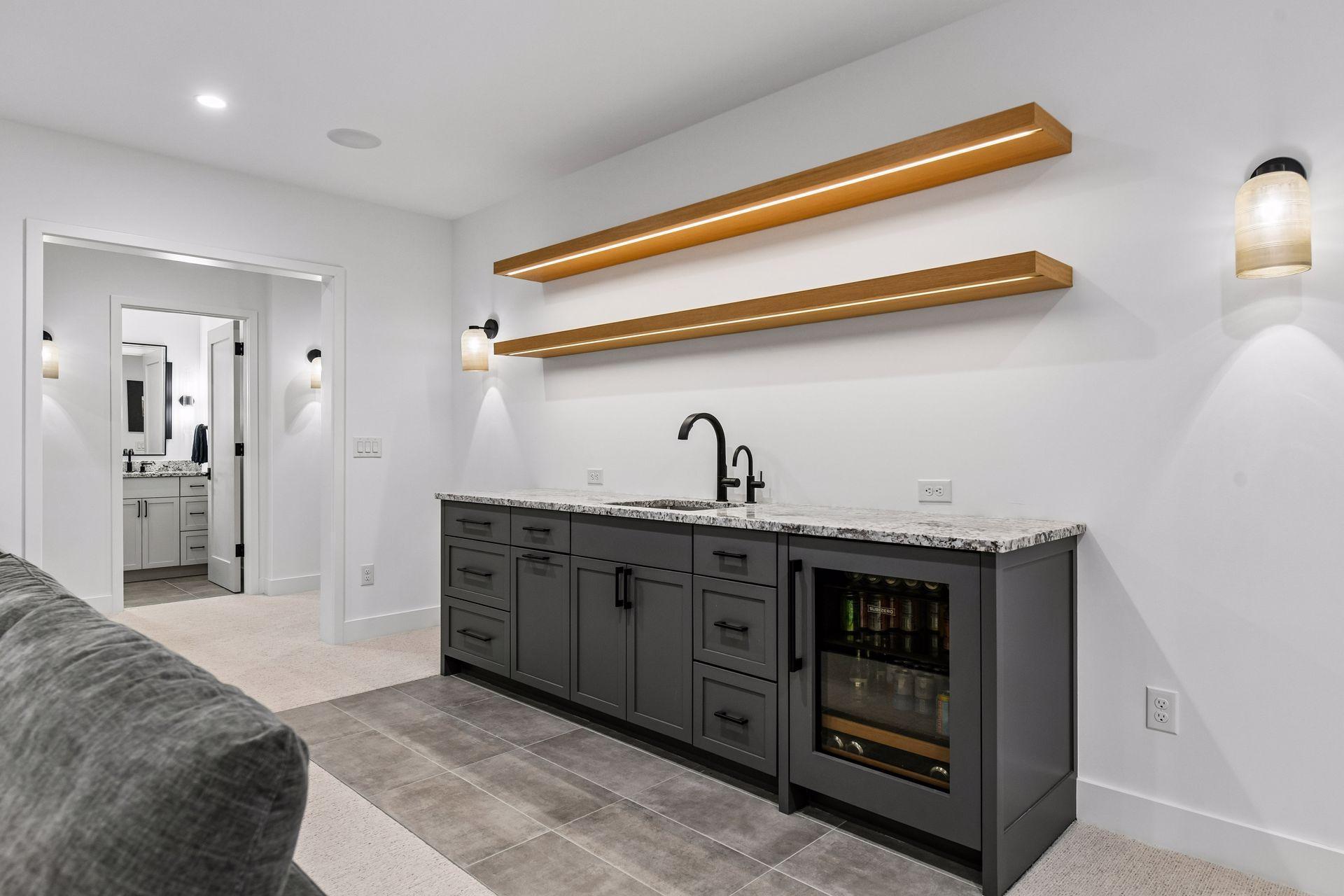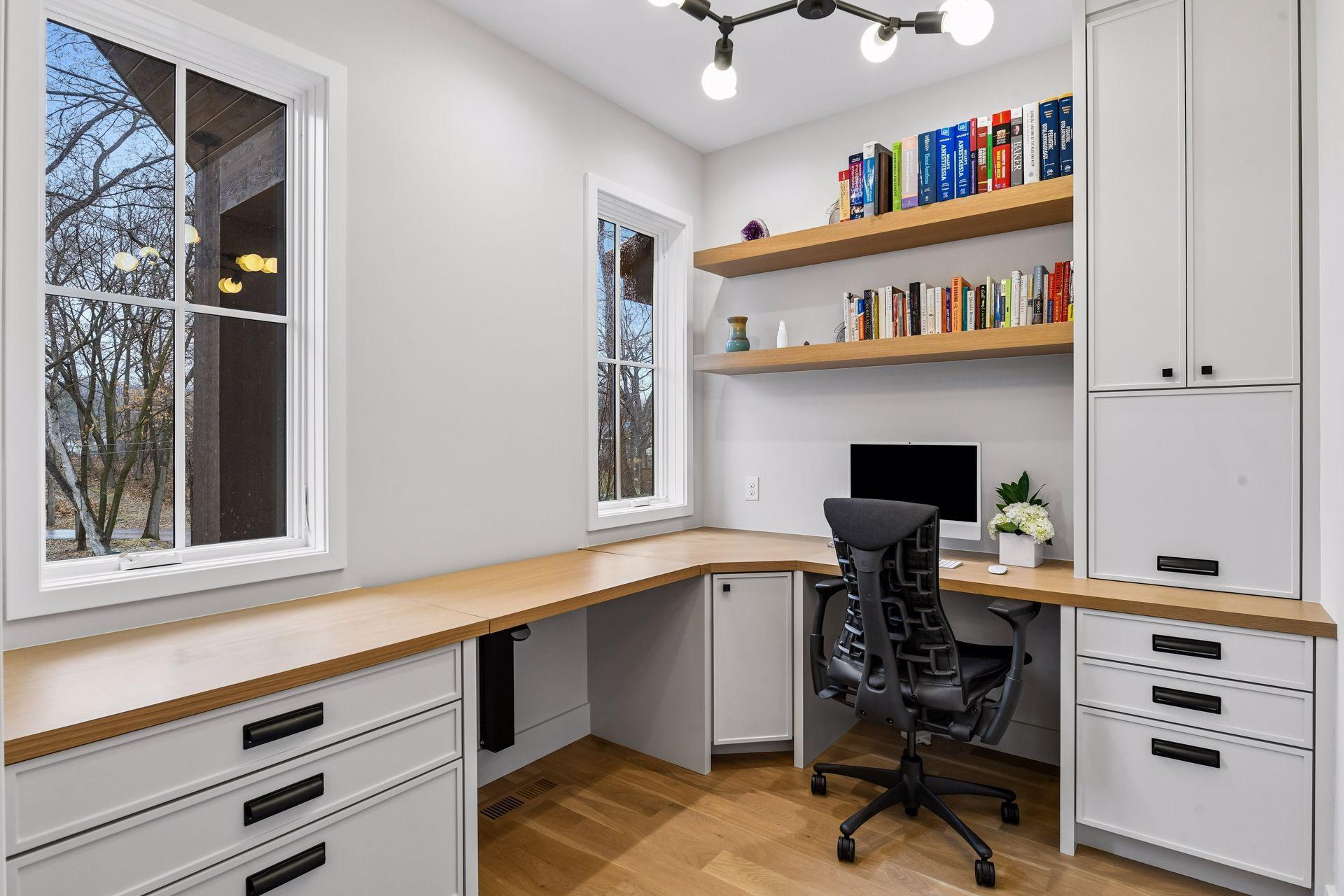 Available only due to relocation, this bespoke residence in Edina's prestigious Indian Hills neighborhood was masterfully designed by Alexander Design Group and built by Ador Homes. Blending timeless craftsmanship with modern sophistication, every detail has been thoughtfully curated to create an unparalleled living experience. The exterior sets an elegant tone with hand-laid stonework and reclaimed wood accents, opening into a deeply customized interior featuring custom cast iron details and artisan hand-blown glass fixtures. The heart of the main level is a culinary masterpiece anchored by a statement Lacanche range, supported by a fully equipped butler's kitchen, dual dishwashers, and a spacious pantry perfectly designed for seamless entertaining. The living spaces flow effortlessly, with a formal dining room and a stunning living area that opens directly onto a sprawling paver patio for refined indoor-outdoor living. The main floor also hosts a dedicated, professional-grade fitness studio and a highly functional mudroom complete with a secondary laundry station. Upstairs, you will find four generously appointed bedrooms and the primary laundry suite, giving this home the ultimate convenience of two full sets of washers and dryers. The primary suite serves as a true private sanctuary, showcasing a spa-inspired ensuite bath with radiant heated floors and a custom towel-warming rack. The lower level is an entertainer's haven. It features a spacious family and media room, a custom wet bar, a fifth bedroom suite, and a captivating hidden room cleverly concealed behind a bookcase door. With uncompromising attention to detail and abundant storage throughout, this home stands apart as a rare architectural achievement in one of Edina's most sought-after enclaves.