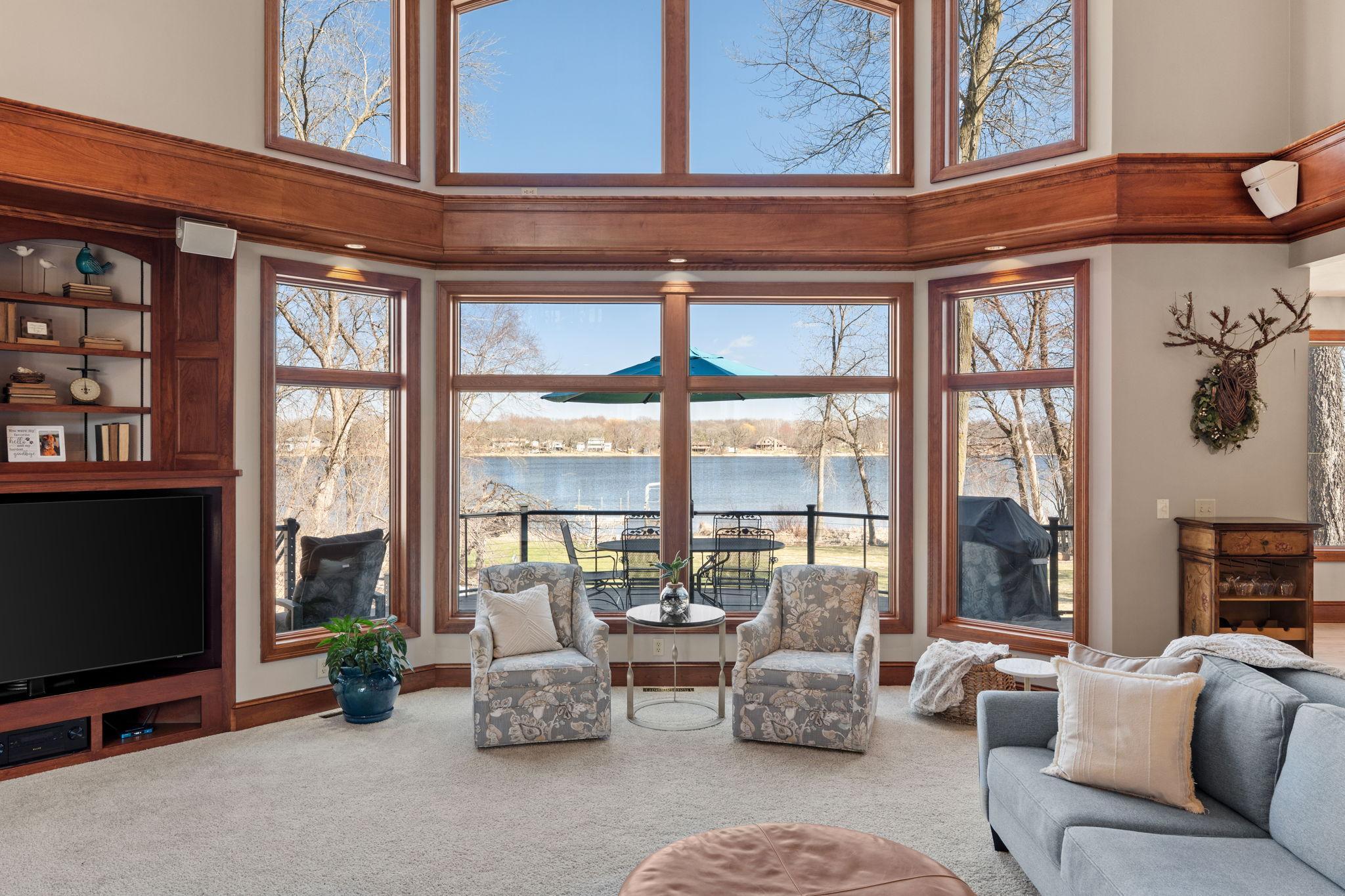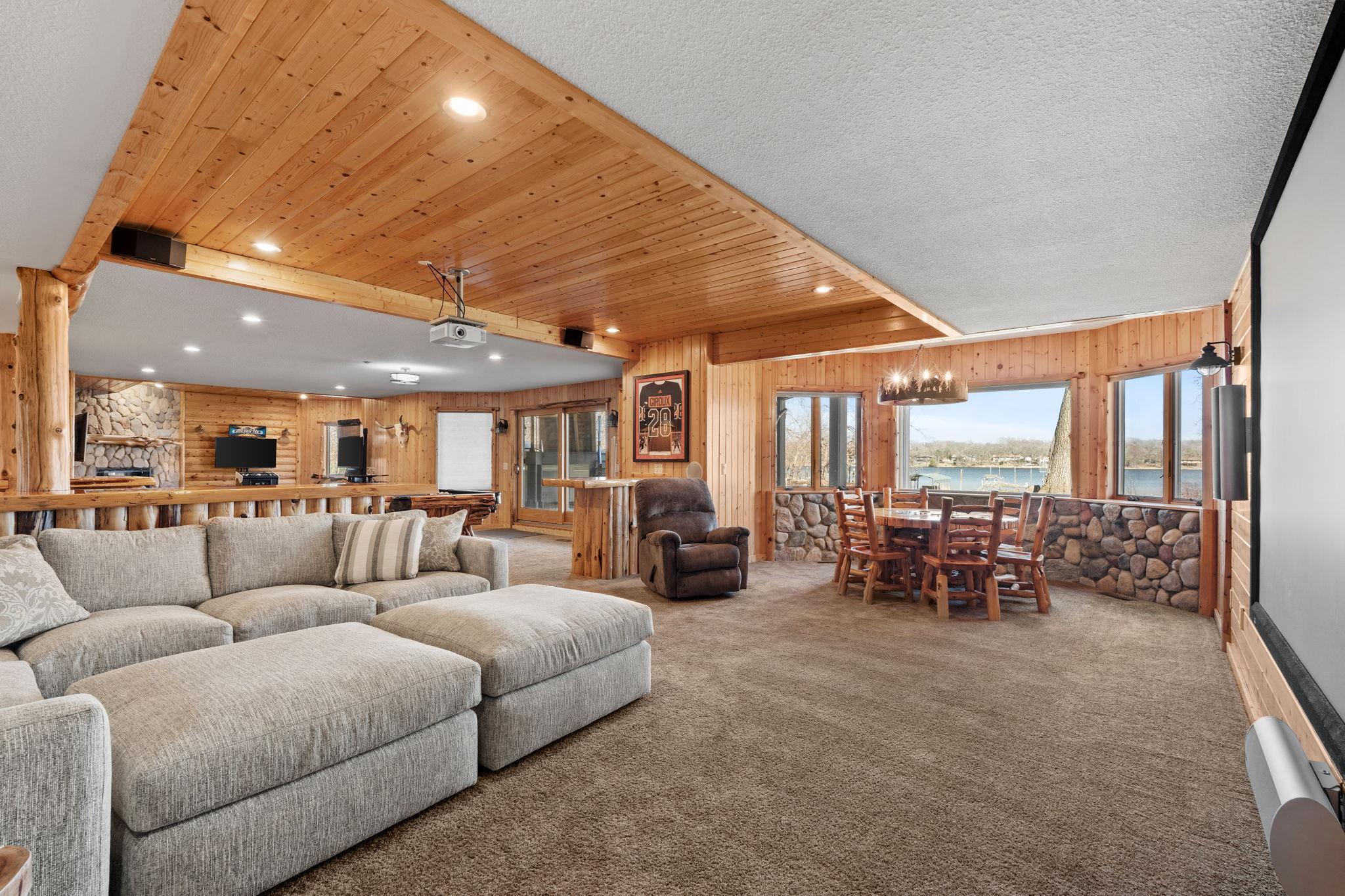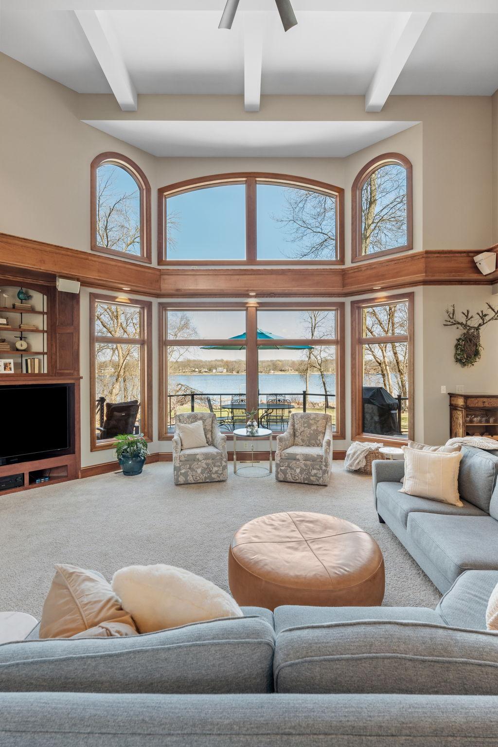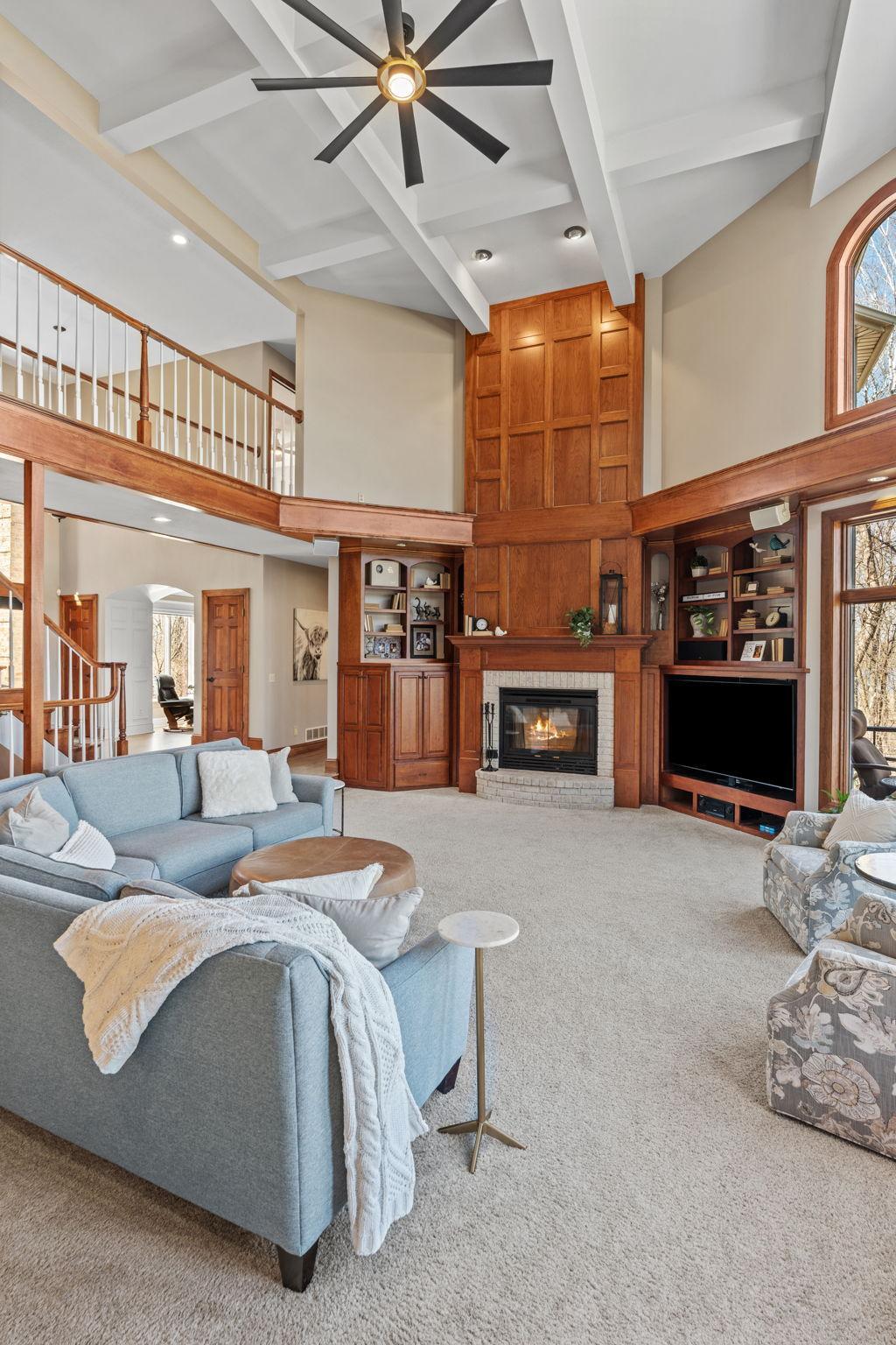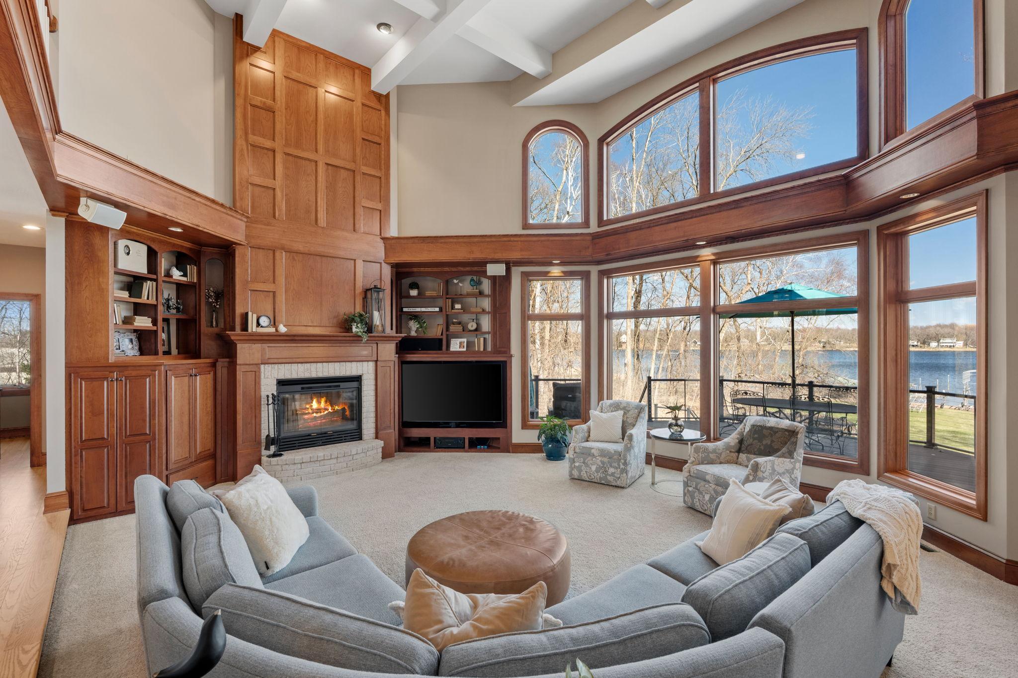 Stately and timeless, this full brick-front estate is gracefully set on 2.6 park-like acres with premier frontage on Comfort Lake a full recreational lake offering year-round enjoyment. Surrounded by mature trees and lush perennials, the setting is both private and picturesque, creating a true retreat. Upon entry, you are immediately drawn to breathtaking lake views framed by soaring ceilings and expansive windows that flood the home with natural light. Rich in character and craftsmanship, the home showcases stunning cherry and oak woodwork, with custom trim and flooring milled from trees harvested right from the property an exceptional and rare detail. The main level offers an open-concept design with refined finishes throughout. The gourmet kitchen has been thoughtfully updated with new quartz countertops, high-end appliances, and generous workspace perfect for both everyday living and entertaining. A beautifully appointed main floor office features exquisite wood detailing, while the spacious laundry room is designed for function and convenience with dual washers, dual dryers, and abundant storage. The lake-facing primary suite is a private retreat, complete with its own fireplace, access to a private deck, and serene water views. The spacious en-suite bath and generous walk-in closet complete this luxurious sanctuary. The walkout lower level delivers a true lodge feeling with Yellowstone wood, rich wood finishes create a Northwoods retreat feel, anchored by a full bar and expansive gathering spaces ideal for hosting. A dedicated theater area elevates the experience, offering the perfect setting for movie nights or game-day events. Whether entertaining a crowd or enjoying a quiet evening, this level offers a completely distinct and inviting atmosphere. With 5 bedrooms and 6 bathrooms, this home offers exceptional space and flexibility. The attached 4-car garage is complemented by an additional 30x60 heated detached garage and four stalls ideal for car enthusiasts, hobbyists, or additional storage. The upstairs is ready for finishing touches. A rare opportunity to own a one-of-a-kind lakefront estate where craftsmanship, privacy, and lifestyle come together.