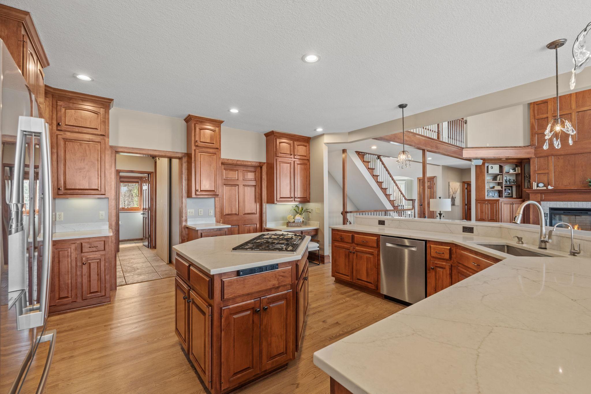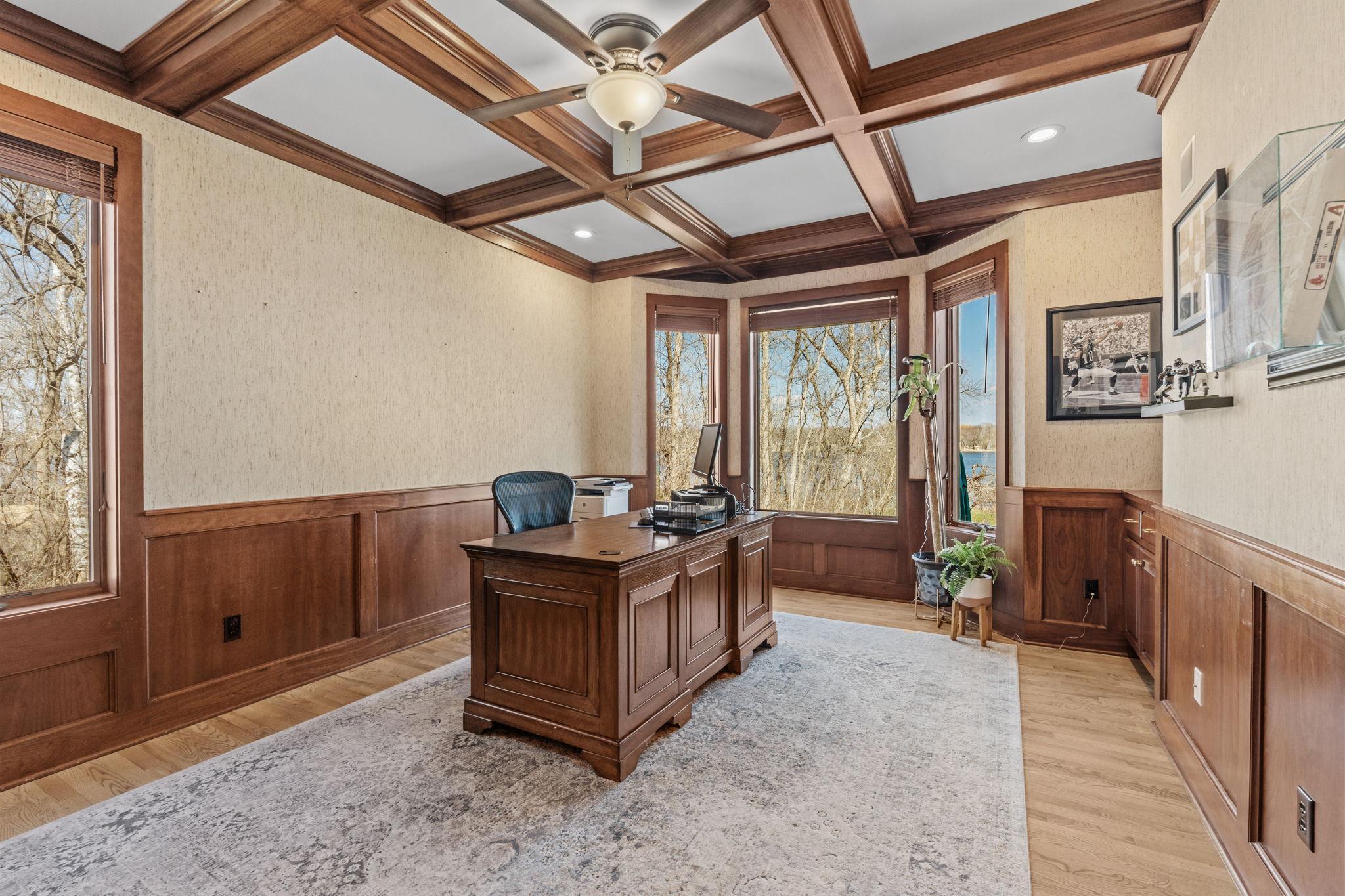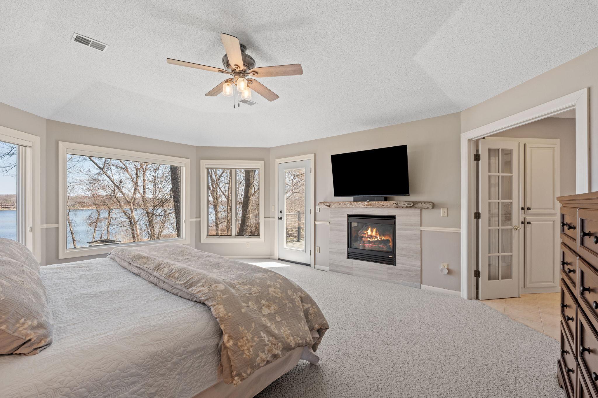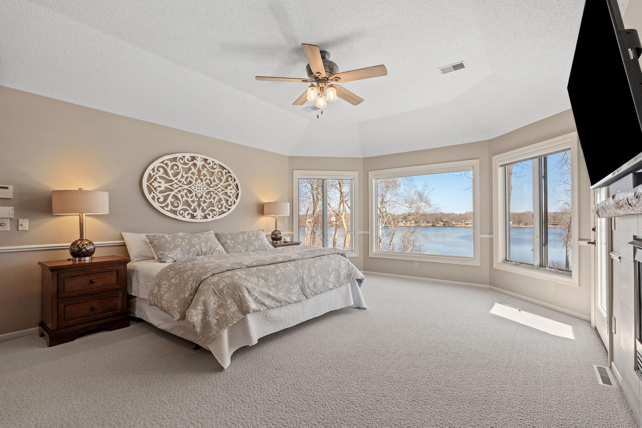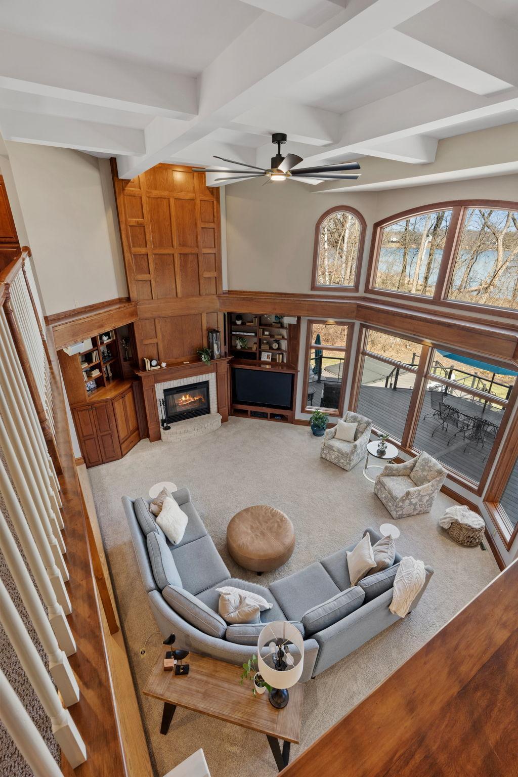 Stately and timeless, this full brick-front estate is gracefully set on 2.6 park-like acres with premier frontage on Comfort Lake a full recreational lake offering year-round enjoyment. Surrounded by mature trees and lush perennials, the setting is both private and picturesque, creating a true retreat. Upon entry, you are immediately drawn to breathtaking lake views framed by soaring ceilings and expansive windows that flood the home with natural light. Rich in character and craftsmanship, the home showcases stunning cherry and oak woodwork, with custom trim and flooring milled from trees harvested right from the property an exceptional and rare detail. The main level offers an open-concept design with refined finishes throughout. The gourmet kitchen has been thoughtfully updated with new quartz countertops, high-end appliances, and generous workspace perfect for both everyday living and entertaining. A beautifully appointed main floor office features exquisite wood detailing, while the spacious laundry room is designed for function and convenience with dual washers, dual dryers, and abundant storage. The lake-facing primary suite is a private retreat, complete with its own fireplace, access to a private deck, and serene water views. The spacious en-suite bath and generous walk-in closet complete this luxurious sanctuary. The walkout lower level delivers a true lodge feeling with Yellowstone wood, rich wood finishes create a Northwoods retreat feel, anchored by a full bar and expansive gathering spaces ideal for hosting. A dedicated theater area elevates the experience, offering the perfect setting for movie nights or game-day events. Whether entertaining a crowd or enjoying a quiet evening, this level offers a completely distinct and inviting atmosphere. With 5 bedrooms and 6 bathrooms, this home offers exceptional space and flexibility. The attached 4-car garage is complemented by an additional 30x60 heated detached garage and four stalls ideal for car enthusiasts, hobbyists, or additional storage. The upstairs is ready for finishing touches. A rare opportunity to own a one-of-a-kind lakefront estate where craftsmanship, privacy, and lifestyle come together.