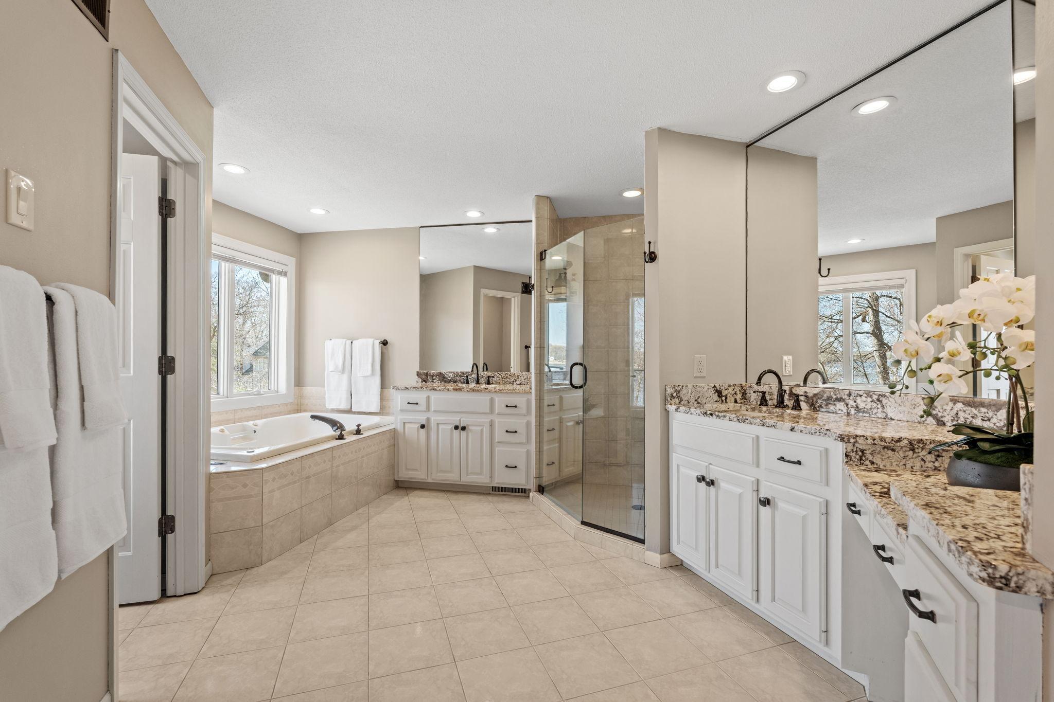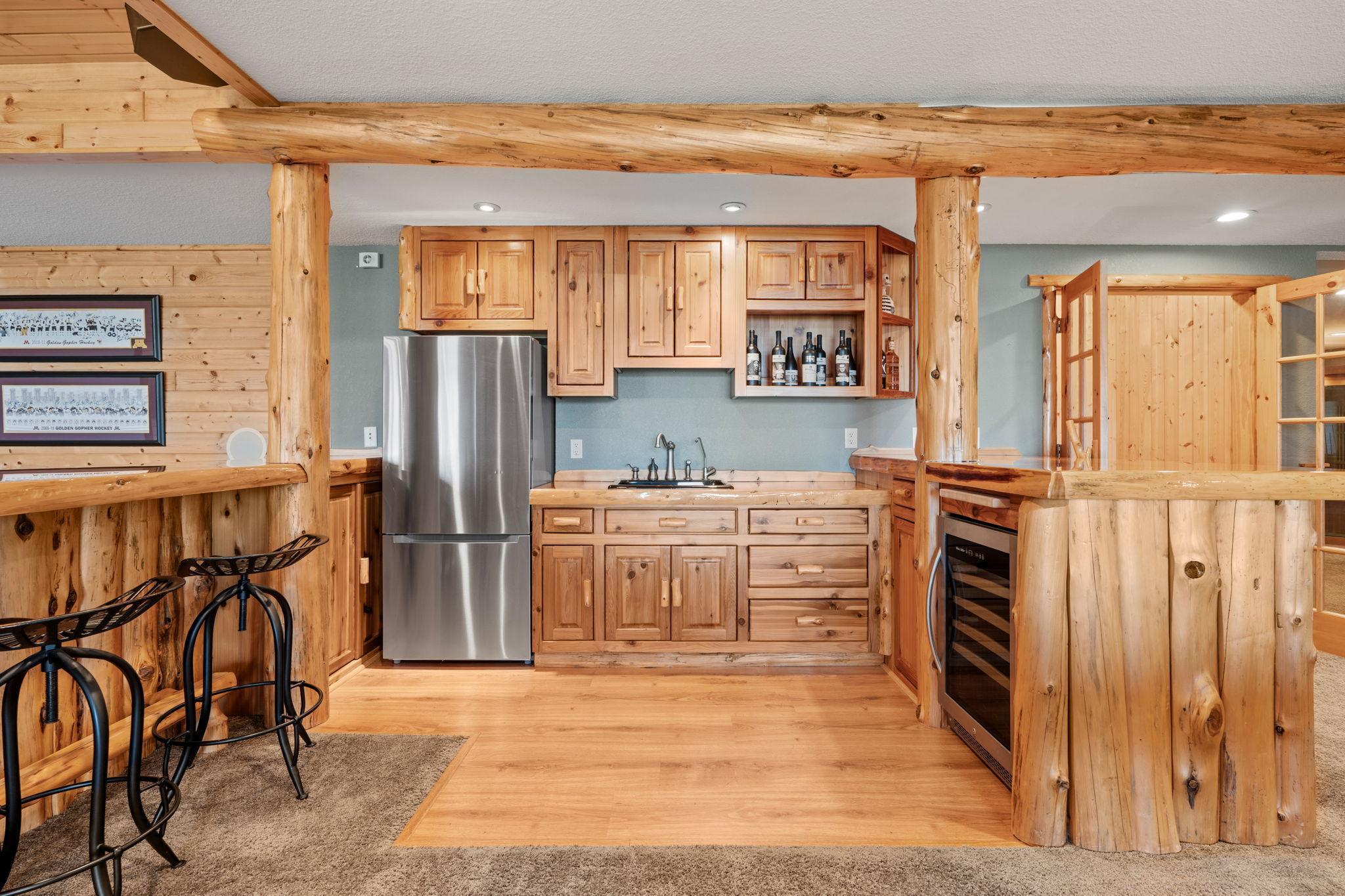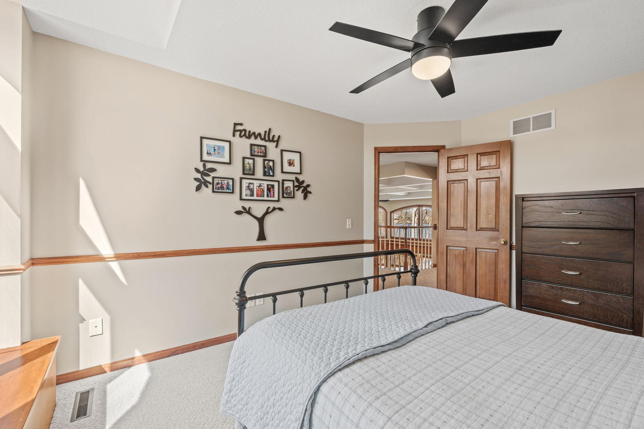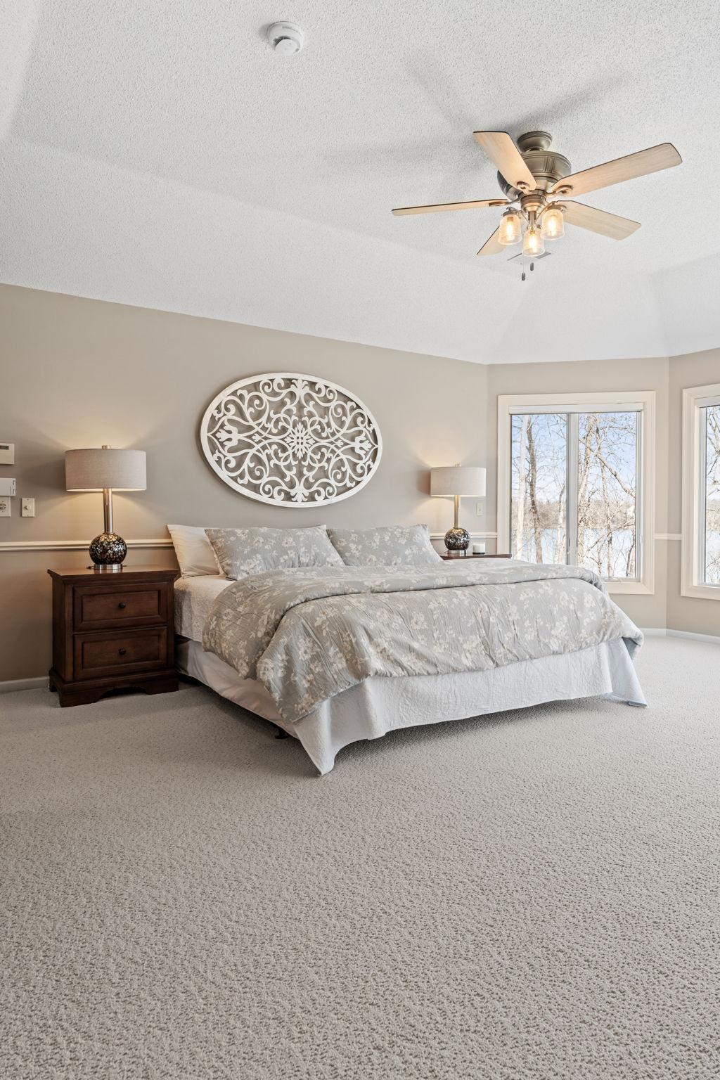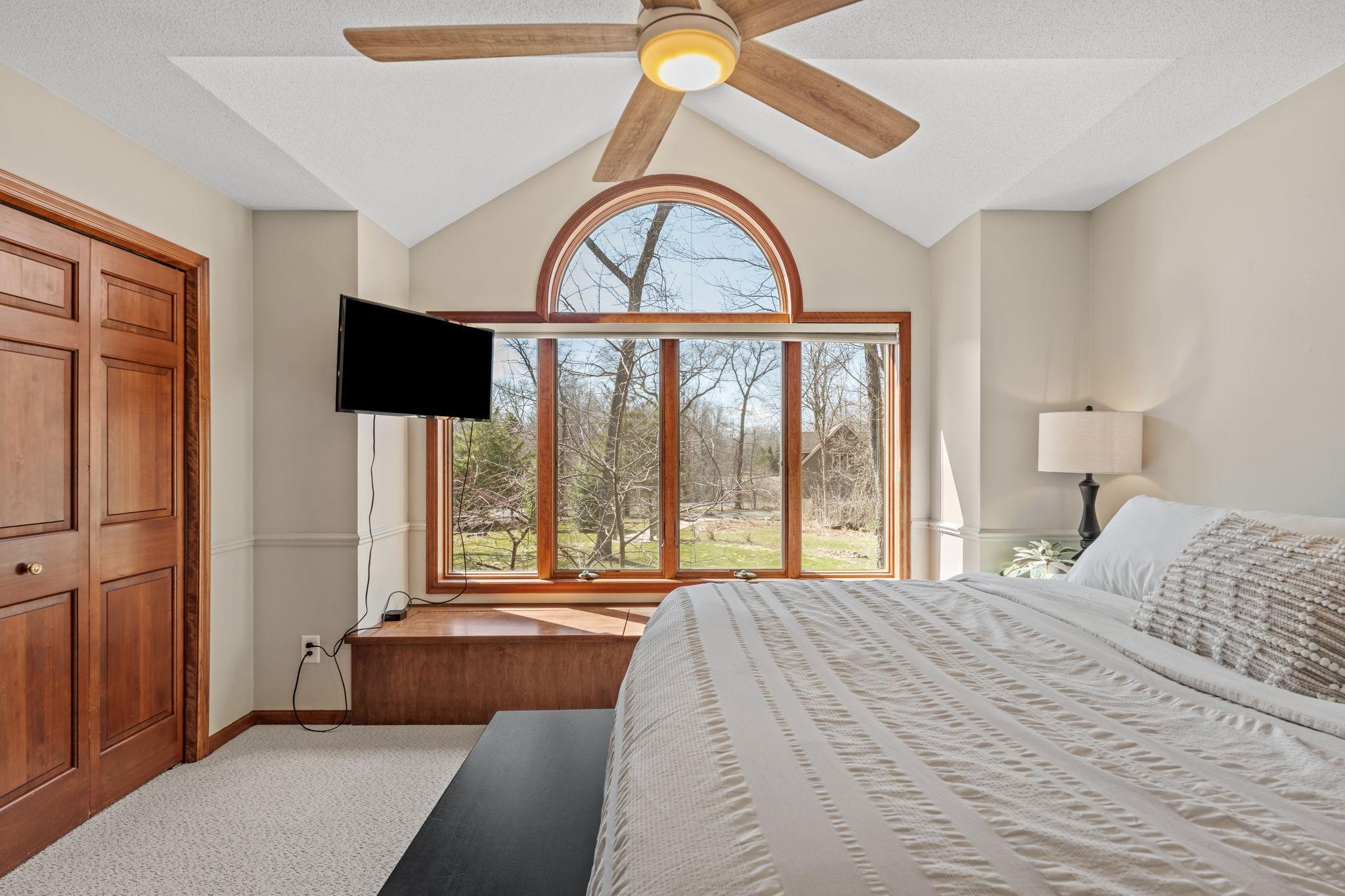 Stately and timeless, this full brick-front estate is gracefully set on 2.6 park-like acres with premier frontage on Comfort Lake a full recreational lake offering year-round enjoyment. Surrounded by mature trees and lush perennials, the setting is both private and picturesque, creating a true retreat. Upon entry, you are immediately drawn to breathtaking lake views framed by soaring ceilings and expansive windows that flood the home with natural light. Rich in character and craftsmanship, the home showcases stunning cherry and oak woodwork, with custom trim and flooring milled from trees harvested right from the property an exceptional and rare detail. The main level offers an open-concept design with refined finishes throughout. The gourmet kitchen has been thoughtfully updated with new quartz countertops, high-end appliances, and generous workspace perfect for both everyday living and entertaining. A beautifully appointed main floor office features exquisite wood detailing, while the spacious laundry room is designed for function and convenience with dual washers, dual dryers, and abundant storage. The lake-facing primary suite is a private retreat, complete with its own fireplace, access to a private deck, and serene water views. The spacious en-suite bath and generous walk-in closet complete this luxurious sanctuary. The walkout lower level delivers a true lodge feeling with Yellowstone wood, rich wood finishes create a Northwoods retreat feel, anchored by a full bar and expansive gathering spaces ideal for hosting. A dedicated theater area elevates the experience, offering the perfect setting for movie nights or game-day events. Whether entertaining a crowd or enjoying a quiet evening, this level offers a completely distinct and inviting atmosphere. With 5 bedrooms and 6 bathrooms, this home offers exceptional space and flexibility. The attached 4-car garage is complemented by an additional 30x60 heated detached garage and four stalls ideal for car enthusiasts, hobbyists, or additional storage. The upstairs is ready for finishing touches. A rare opportunity to own a one-of-a-kind lakefront estate where craftsmanship, privacy, and lifestyle come together.
