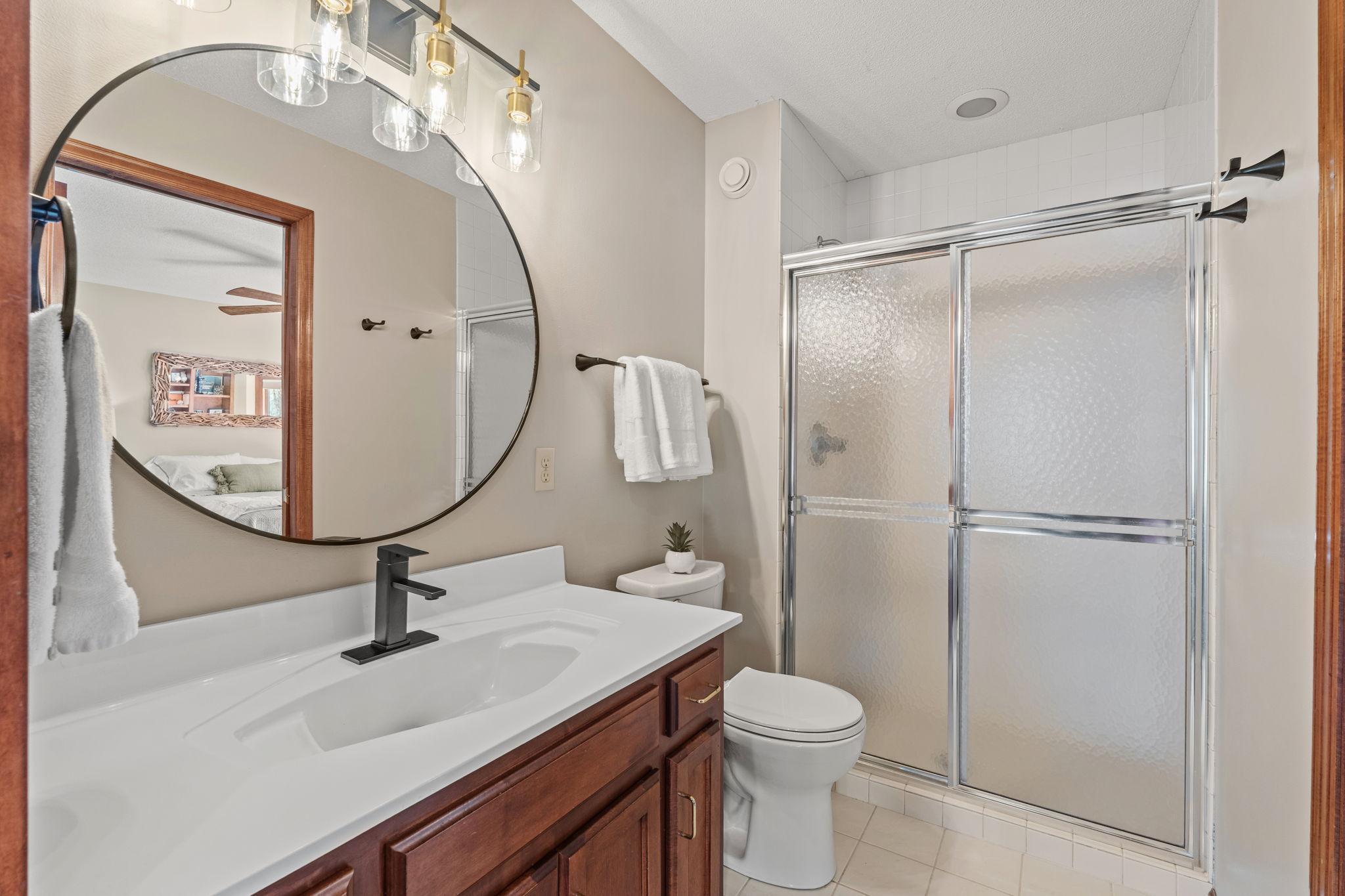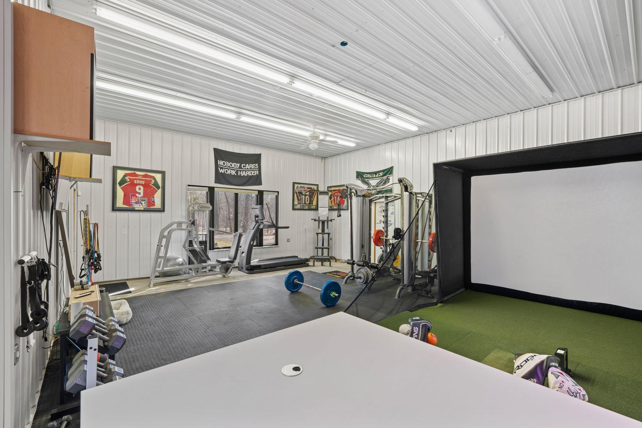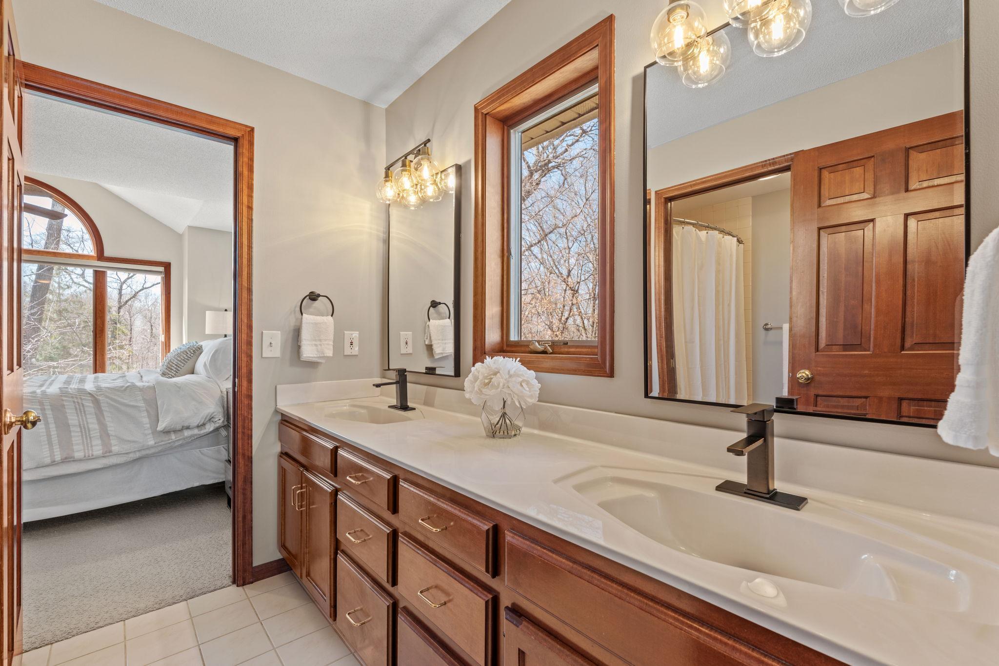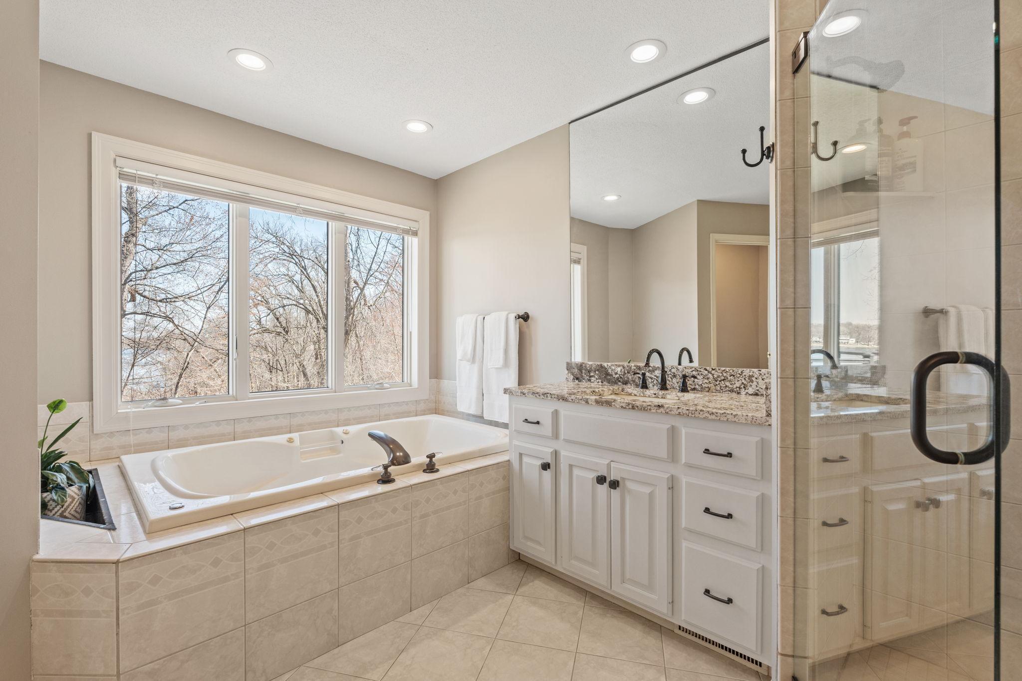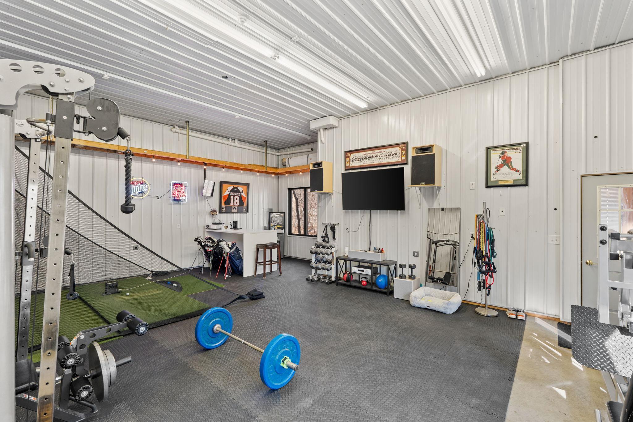 Stately and timeless, this full brick-front estate is gracefully set on 2.6 park-like acres with premier frontage on Comfort Lake a full recreational lake offering year-round enjoyment. Surrounded by mature trees and lush perennials, the setting is both private and picturesque, creating a true retreat. Upon entry, you are immediately drawn to breathtaking lake views framed by soaring ceilings and expansive windows that flood the home with natural light. Rich in character and craftsmanship, the home showcases stunning cherry and oak woodwork, with custom trim and flooring milled from trees harvested right from the property an exceptional and rare detail. The main level offers an open-concept design with refined finishes throughout. The gourmet kitchen has been thoughtfully updated with new quartz countertops, high-end appliances, and generous workspace perfect for both everyday living and entertaining. A beautifully appointed main floor office features exquisite wood detailing, while the spacious laundry room is designed for function and convenience with dual washers, dual dryers, and abundant storage. The lake-facing primary suite is a private retreat, complete with its own fireplace, access to a private deck, and serene water views. The spacious en-suite bath and generous walk-in closet complete this luxurious sanctuary. The walkout lower level delivers a true lodge feeling with Yellowstone wood, rich wood finishes create a Northwoods retreat feel, anchored by a full bar and expansive gathering spaces ideal for hosting. A dedicated theater area elevates the experience, offering the perfect setting for movie nights or game-day events. Whether entertaining a crowd or enjoying a quiet evening, this level offers a completely distinct and inviting atmosphere. With 5 bedrooms and 6 bathrooms, this home offers exceptional space and flexibility. The attached 4-car garage is complemented by an additional 30x60 heated detached garage and four stalls ideal for car enthusiasts, hobbyists, or additional storage. The upstairs is ready for finishing touches. A rare opportunity to own a one-of-a-kind lakefront estate where craftsmanship, privacy, and lifestyle come together.
