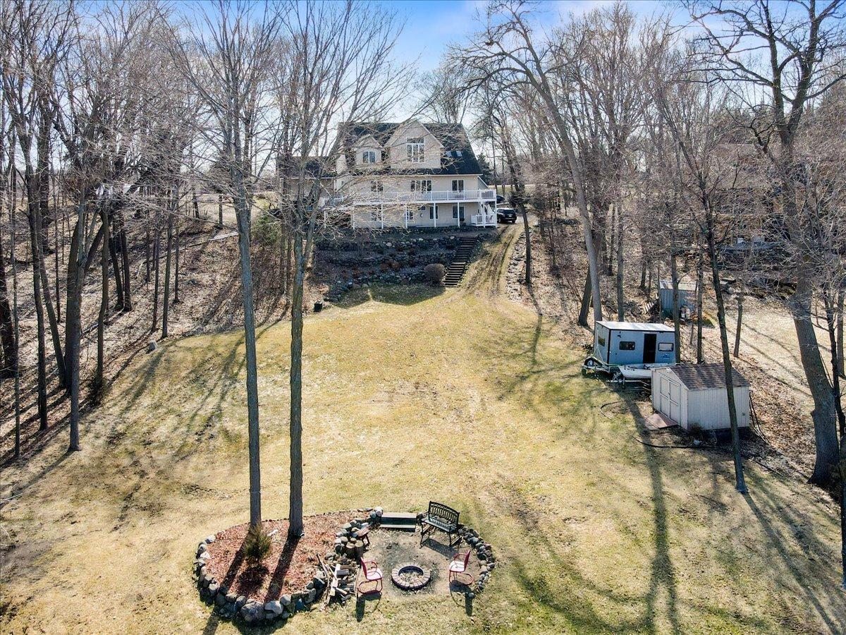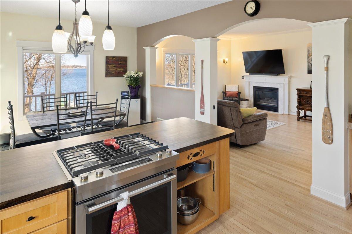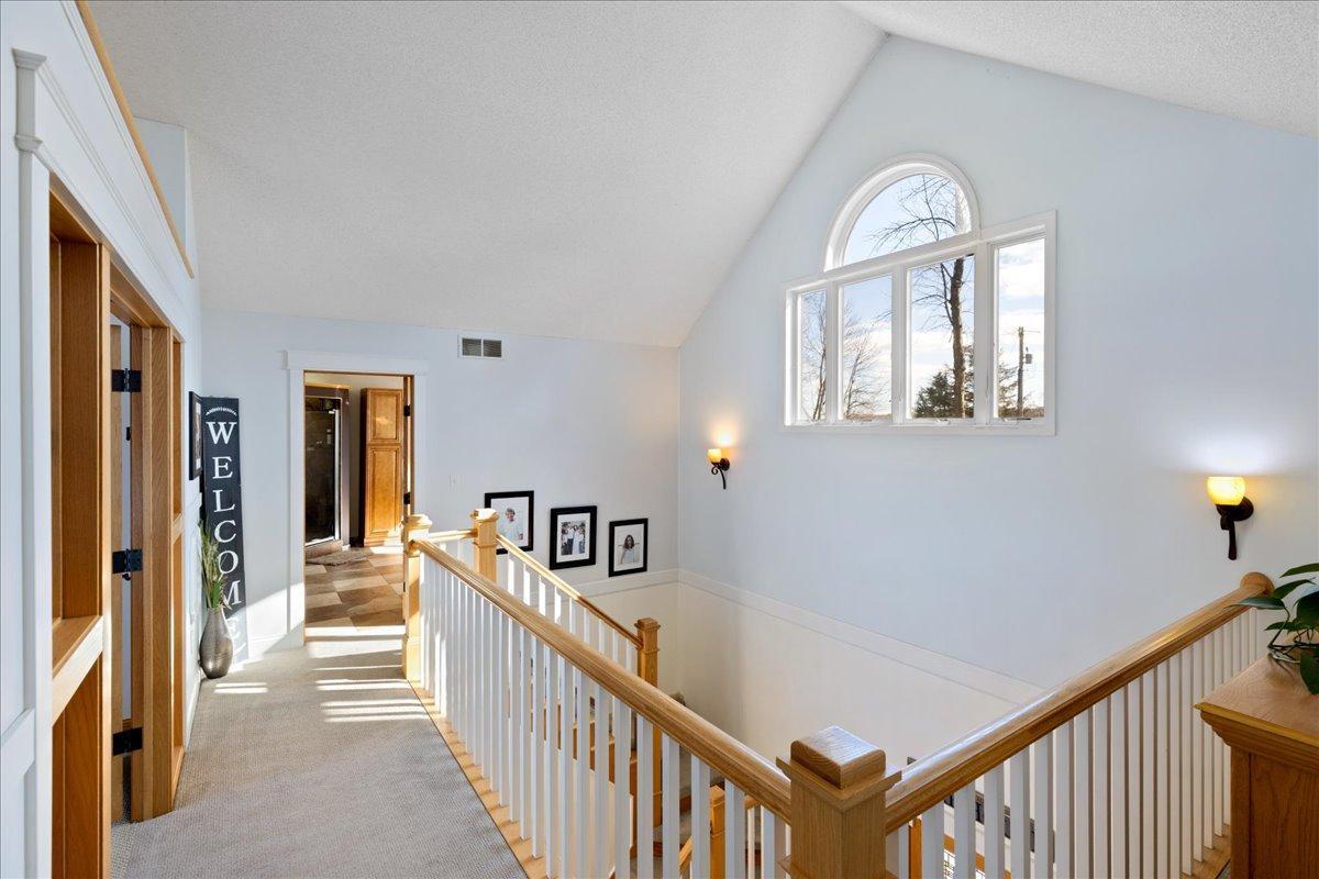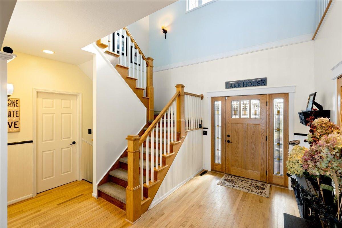 Majestic 2-story lakeside home offering the ultimate in waterfront living. This beautifully maintained 1997-built residence sits on 1.34+ acres of tastefully landscaped grounds with over 110 feet of sandy lakeshore on pristine South Center Lake — part of the renowned Chisago Lakes chain. Boaters will love the direct navigable access to North Center Lake, where you can cruise to waterfront restaurants and bars, with potential (depending on water levels) to explore even further into North and South Lindstrom Lakes and Chisago Lake — giving you access to the second-largest chain of lakes in the greater Twin Cities metro area after Lake Minnetonka. South Center offers 835-acres and North Center offers an additional 749 acres. This recreational gem is known for its clear waters, maximum depth of 109 feet, and excellent fishing for northern pike, walleye, largemouth bass, black crappie, and bluegill. Enjoy year-round recreation right from your private sandy shoreline, including boating, swimming, fishing, and breathtaking sunset views. Step inside to discover soaring vaulted ceilings, rich maple cabinetry, a spacious loft, and two fireplaces that create warm, inviting spaces for relaxing or entertaining. The open layout flows effortlessly, while the beautifully finished walk-out lower level includes a versatile existing apartment with separate entrance — ideal for guests, extended family, or income potential — complete with its own updated kitchen (new floors, countertops, appliances, and washer/dryer in 2019) and bathroom (updated 2021). This home has it all, including a rare indoor exercise pool (new liner and swimspa motor in 2026, new cover in 2023, new electric pool heater in 2023, new pool pump in 2020, and new heater in pool room in 2013). Additional highlights include: * Major mechanical & utility updates: New furnace and A/C (2019), new water heater (2024), new Kinnetico water softener (2020), city sewer installed (2024), and comprehensive water drainage system with pond (2023) to manage hillside runoff. * Gourmet kitchen upgrades: New JennAir downdraft dual-heat stove, KitchenAid refrigerator, and Bosch dishwasher (all 2025). * Laundry & convenience: New Samsung all-in-one washer and vented dryer (2025). * Energy & EV ready: Tesla EV charging station (2019), ChargePoint electric station for a second EV (2025), 200-amp house service plus new 100-amp panel to the garage (2019). * Garage & exterior: Insulated and heated 3-car garage (heater installed 2019), new front porch decking and railings (2019), new back decking and railings (2025), added stairs to deck and garage service door (2023), skylights replaced (2014), office window replaced (2025), main floor floors redone (2023), main bathroom updated (2018), leaf guards installed over gutters, and invisible fence for dogs. Whether you're looking for a primary residence or a spectacular weekend retreat, this turnkey lake home delivers comfort, quality, and countless modern conveniences in one of Chisago County's most desirable waterfront locations. Families will appreciate the highly rated Chisago Lakes School District, known for its strong academics and well-regarded schools including Chisago Lakes Elementary, Middle, and High School. Easy access to Lindstrom's charming downtown, local amenities, and the Twin Cities metro makes this the perfect blend of peaceful lakeside living and convenient location. Don't miss this rare opportunity to own a piece of South Center Lake paradise — a true move-in-ready gem with extensive recent updates throughout and unmatched boating access across the Chisago Lakes chain!