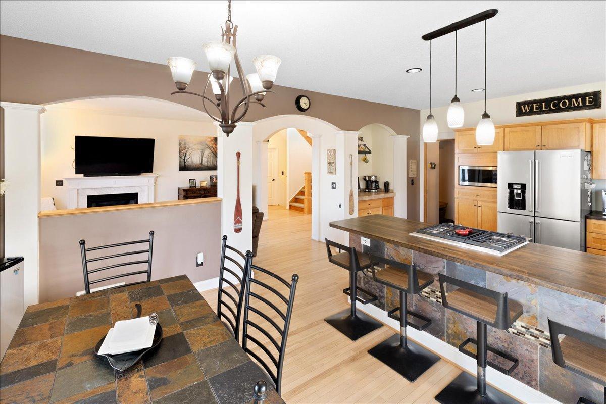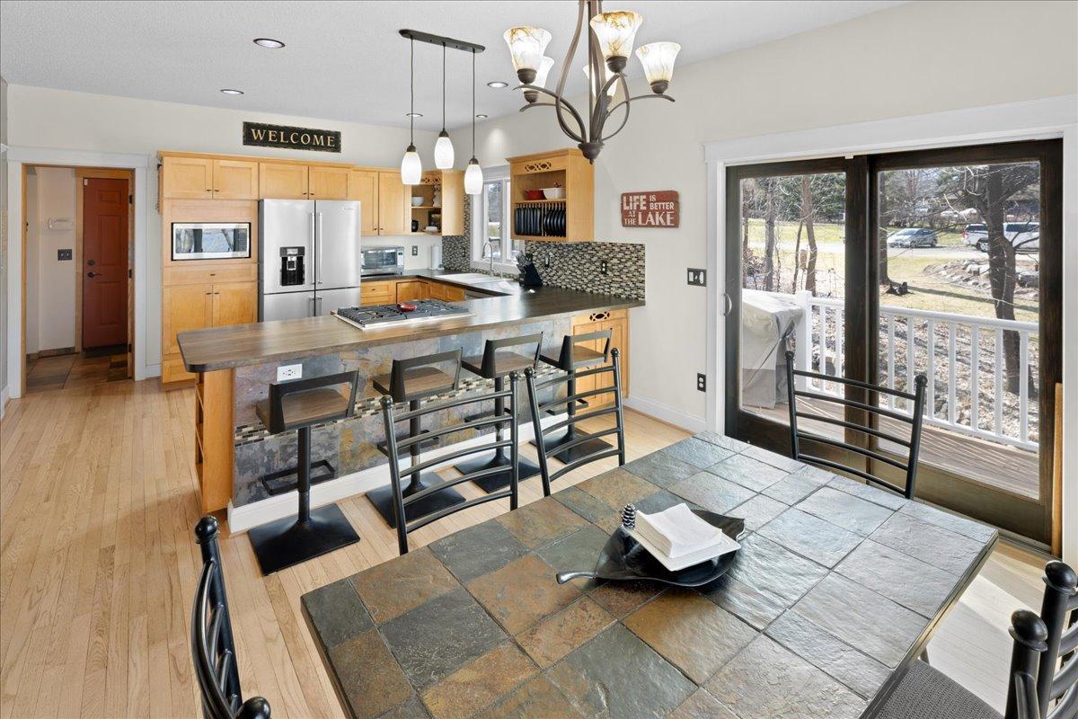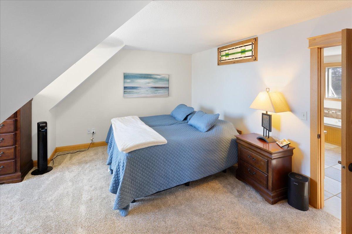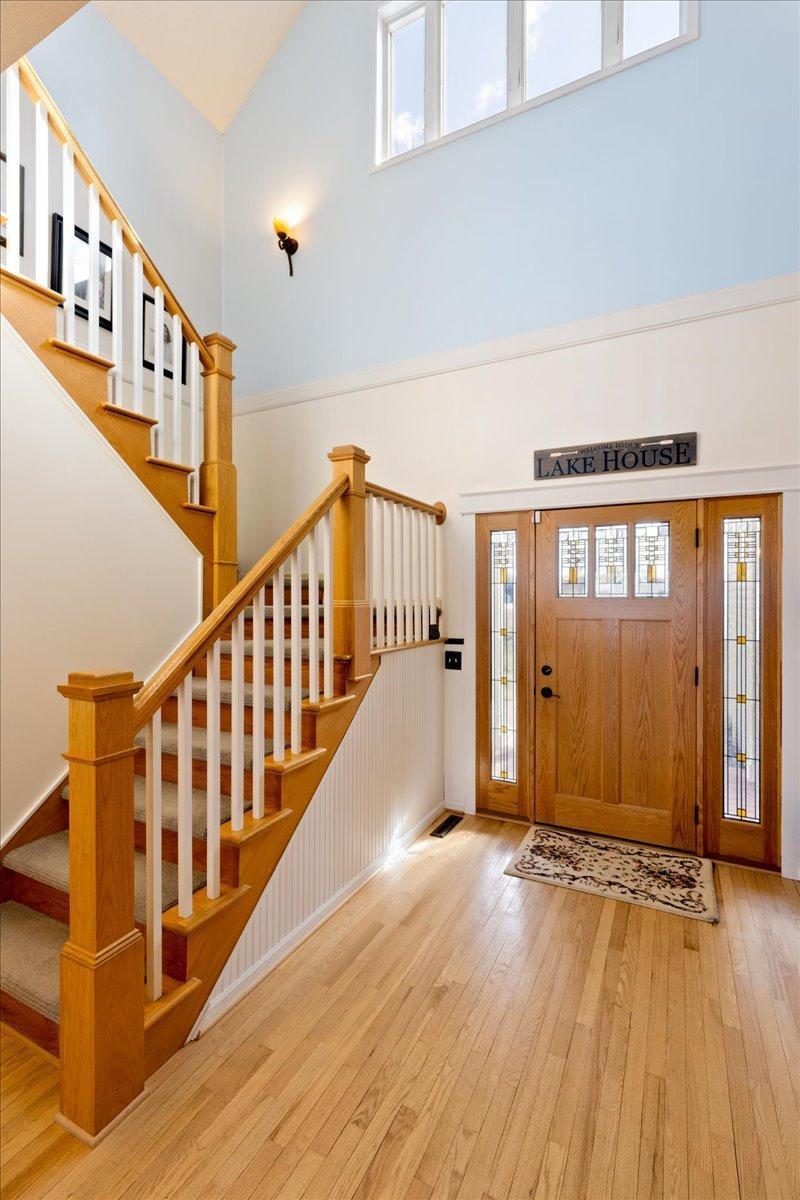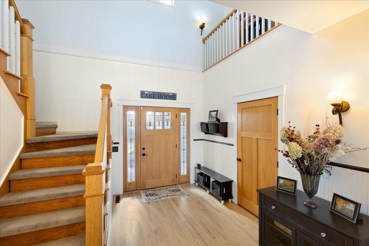 Majestic 2-story lakeside home offering the ultimate in waterfront living. This beautifully maintained 1997-built residence sits on 1.34+ acres of tastefully landscaped grounds with over 110 feet of sandy lakeshore on pristine South Center Lake — part of the renowned Chisago Lakes chain. Boaters will love the direct navigable access to North Center Lake, where you can cruise to waterfront restaurants and bars, with potential (depending on water levels) to explore even further into North and South Lindstrom Lakes and Chisago Lake — giving you access to the second-largest chain of lakes in the greater Twin Cities metro area after Lake Minnetonka. South Center offers 835-acres and North Center offers an additional 749 acres. This recreational gem is known for its clear waters, maximum depth of 109 feet, and excellent fishing for northern pike, walleye, largemouth bass, black crappie, and bluegill. Enjoy year-round recreation right from your private sandy shoreline, including boating, swimming, fishing, and breathtaking sunset views. Step inside to discover soaring vaulted ceilings, rich maple cabinetry, a spacious loft, and two fireplaces that create warm, inviting spaces for relaxing or entertaining. The open layout flows effortlessly, while the beautifully finished walk-out lower level includes a versatile existing apartment with separate entrance — ideal for guests, extended family, or income potential — complete with its own updated kitchen (new floors, countertops, appliances, and washer/dryer in 2019) and bathroom (updated 2021). This home has it all, including a rare indoor exercise pool (new liner and swimspa motor in 2026, new cover in 2023, new electric pool heater in 2023, new pool pump in 2020, and new heater in pool room in 2013). Additional highlights include: * Major mechanical & utility updates: New furnace and A/C (2019), new water heater (2024), new Kinnetico water softener (2020), city sewer installed (2024), and comprehensive water drainage system with pond (2023) to manage hillside runoff. * Gourmet kitchen upgrades: New JennAir downdraft dual-heat stove, KitchenAid refrigerator, and Bosch dishwasher (all 2025). * Laundry & convenience: New Samsung all-in-one washer and vented dryer (2025). * Energy & EV ready: Tesla EV charging station (2019), ChargePoint electric station for a second EV (2025), 200-amp house service plus new 100-amp panel to the garage (2019). * Garage & exterior: Insulated and heated 3-car garage (heater installed 2019), new front porch decking and railings (2019), new back decking and railings (2025), added stairs to deck and garage service door (2023), skylights replaced (2014), office window replaced (2025), main floor floors redone (2023), main bathroom updated (2018), leaf guards installed over gutters, and invisible fence for dogs. Whether you're looking for a primary residence or a spectacular weekend retreat, this turnkey lake home delivers comfort, quality, and countless modern conveniences in one of Chisago County's most desirable waterfront locations. Families will appreciate the highly rated Chisago Lakes School District, known for its strong academics and well-regarded schools including Chisago Lakes Elementary, Middle, and High School. Easy access to Lindstrom's charming downtown, local amenities, and the Twin Cities metro makes this the perfect blend of peaceful lakeside living and convenient location. Don't miss this rare opportunity to own a piece of South Center Lake paradise — a true move-in-ready gem with extensive recent updates throughout and unmatched boating access across the Chisago Lakes chain!