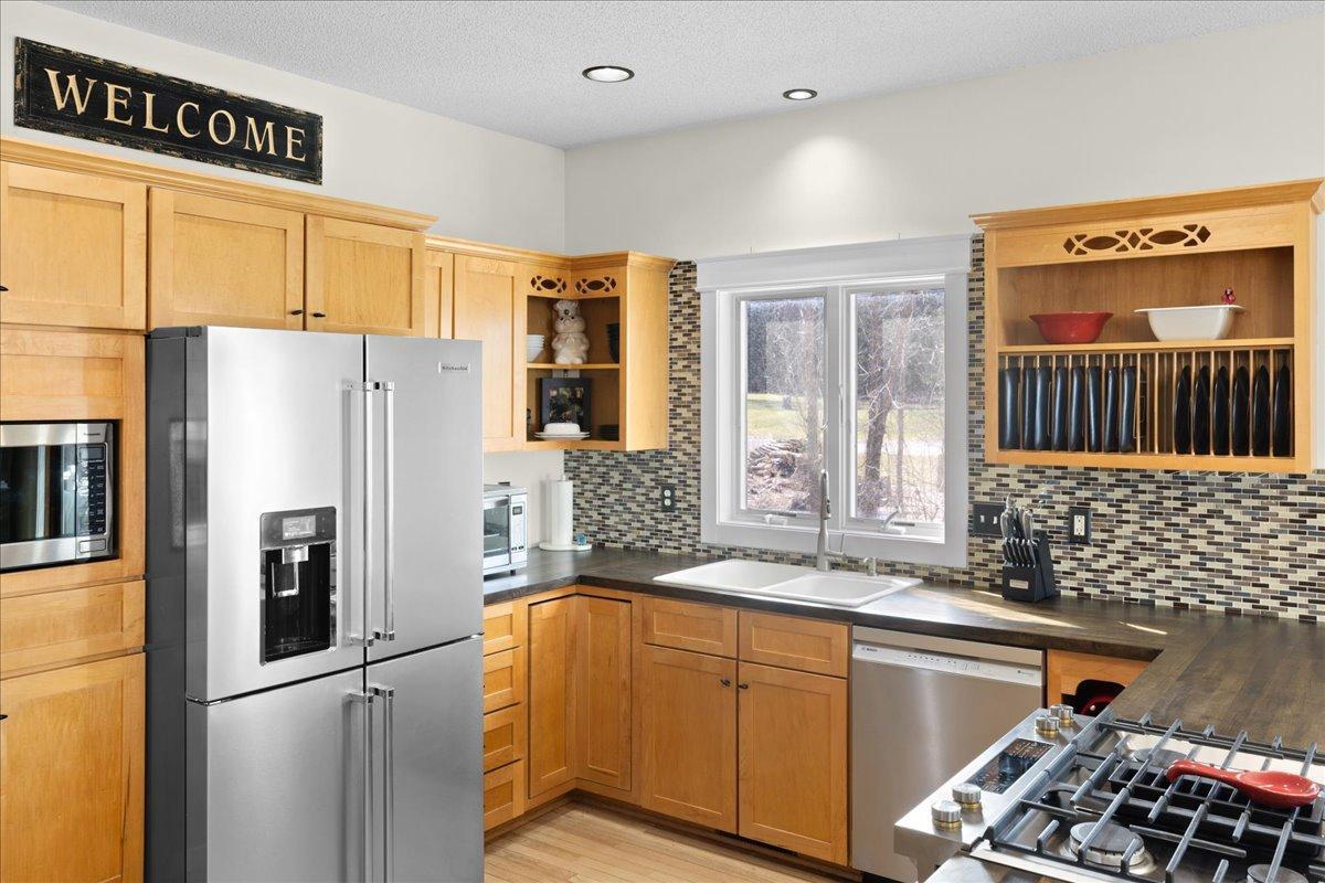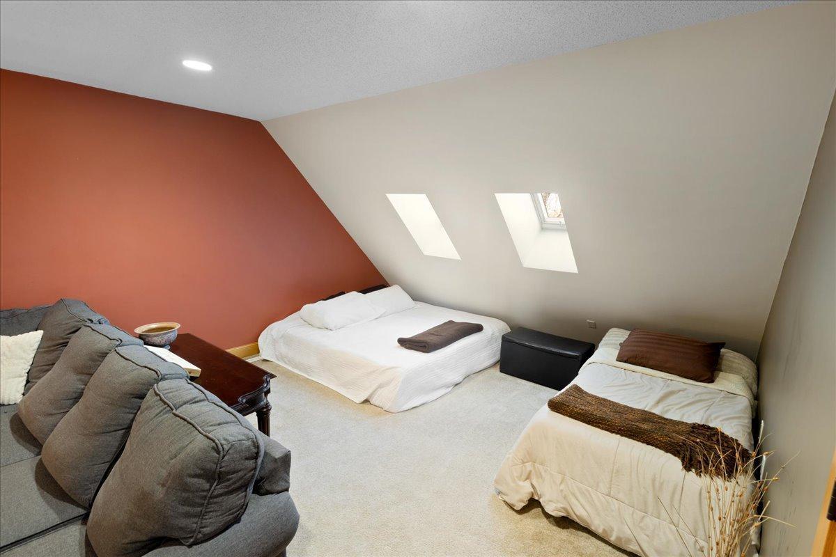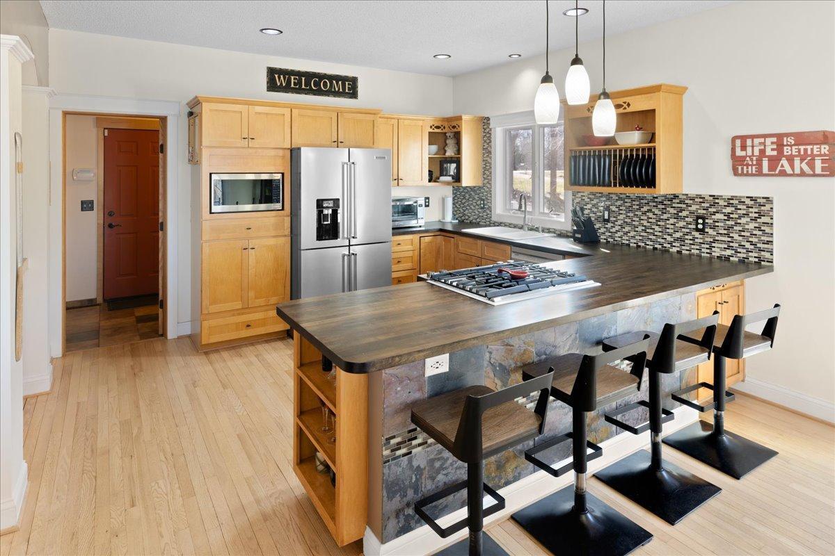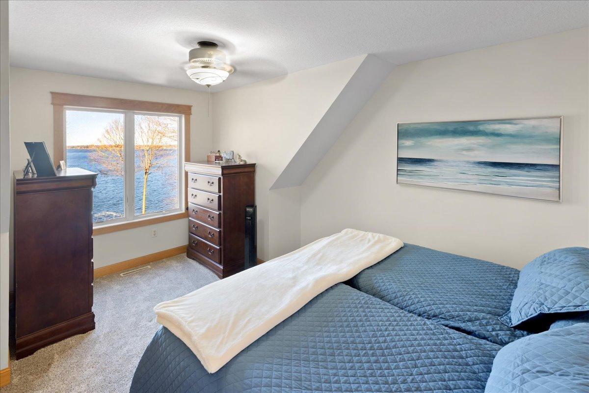 Majestic 2-story lakeside home offering the ultimate in waterfront living. This beautifully maintained 1997-built residence sits on 1.34+ acres of tastefully landscaped grounds with over 110 feet of sandy lakeshore on pristine South Center Lake — part of the renowned Chisago Lakes chain. Boaters will love the direct navigable access to North Center Lake, where you can cruise to waterfront restaurants and bars, with potential (depending on water levels) to explore even further into North and South Lindstrom Lakes and Chisago Lake — giving you access to the second-largest chain of lakes in the greater Twin Cities metro area after Lake Minnetonka. South Center offers 835-acres and North Center offers an additional 749 acres. This recreational gem is known for its clear waters, maximum depth of 109 feet, and excellent fishing for northern pike, walleye, largemouth bass, black crappie, and bluegill. Enjoy year-round recreation right from your private sandy shoreline, including boating, swimming, fishing, and breathtaking sunset views. Step inside to discover soaring vaulted ceilings, rich maple cabinetry, a spacious loft, and two fireplaces that create warm, inviting spaces for relaxing or entertaining. The open layout flows effortlessly, while the beautifully finished walk-out lower level includes a versatile existing apartment with separate entrance — ideal for guests, extended family, or income potential — complete with its own updated kitchen (new floors, countertops, appliances, and washer/dryer in 2019) and bathroom (updated 2021). This home has it all, including a rare indoor exercise pool (new liner and swimspa motor in 2026, new cover in 2023, new electric pool heater in 2023, new pool pump in 2020, and new heater in pool room in 2013). Additional highlights include: * Major mechanical & utility updates: New furnace and A/C (2019), new water heater (2024), new Kinnetico water softener (2020), city sewer installed (2024), and comprehensive water drainage system with pond (2023) to manage hillside runoff. * Gourmet kitchen upgrades: New JennAir downdraft dual-heat stove, KitchenAid refrigerator, and Bosch dishwasher (all 2025). * Laundry & convenience: New Samsung all-in-one washer and vented dryer (2025). * Energy & EV ready: Tesla EV charging station (2019), ChargePoint electric station for a second EV (2025), 200-amp house service plus new 100-amp panel to the garage (2019). * Garage & exterior: Insulated and heated 3-car garage (heater installed 2019), new front porch decking and railings (2019), new back decking and railings (2025), added stairs to deck and garage service door (2023), skylights replaced (2014), office window replaced (2025), main floor floors redone (2023), main bathroom updated (2018), leaf guards installed over gutters, and invisible fence for dogs. Whether you're looking for a primary residence or a spectacular weekend retreat, this turnkey lake home delivers comfort, quality, and countless modern conveniences in one of Chisago County's most desirable waterfront locations. Families will appreciate the highly rated Chisago Lakes School District, known for its strong academics and well-regarded schools including Chisago Lakes Elementary, Middle, and High School. Easy access to Lindstrom's charming downtown, local amenities, and the Twin Cities metro makes this the perfect blend of peaceful lakeside living and convenient location. Don't miss this rare opportunity to own a piece of South Center Lake paradise — a true move-in-ready gem with extensive recent updates throughout and unmatched boating access across the Chisago Lakes chain!