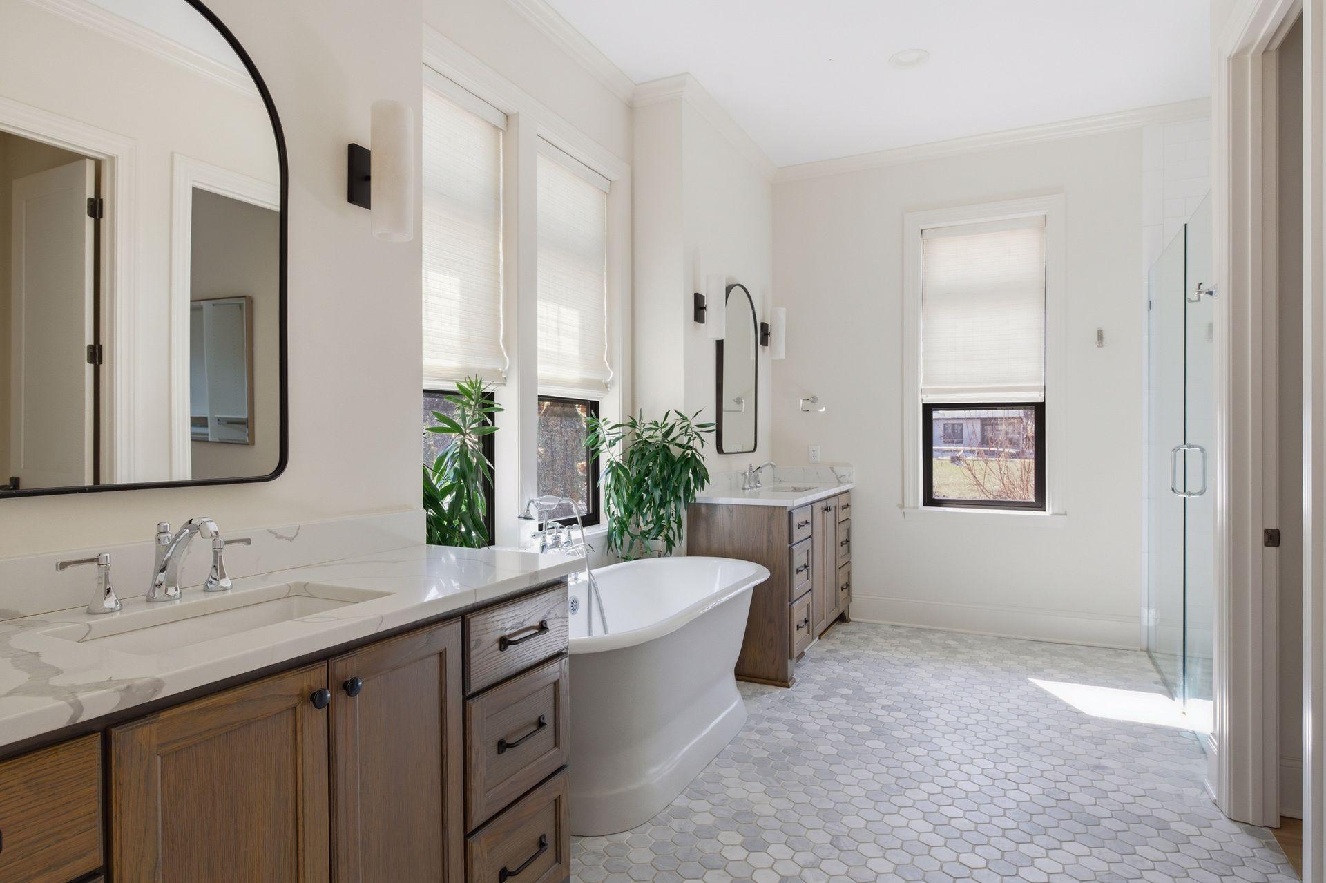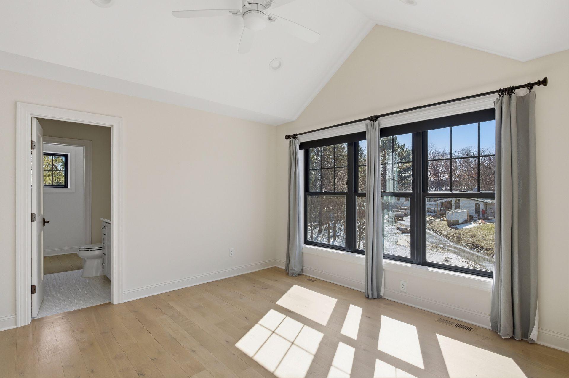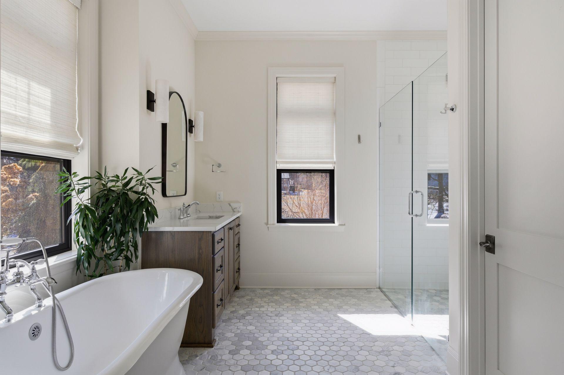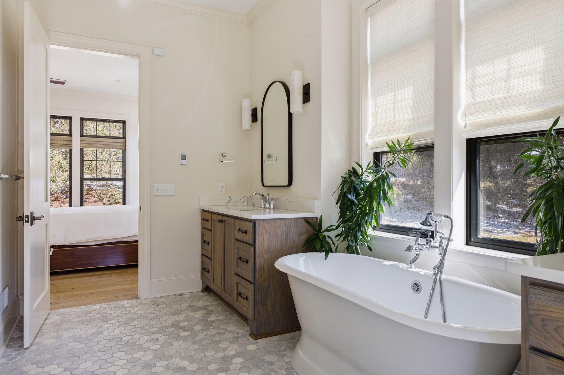 closet and a spa-like bath with heated floors, tiled shower, and soaking tub. A 3-season porch with