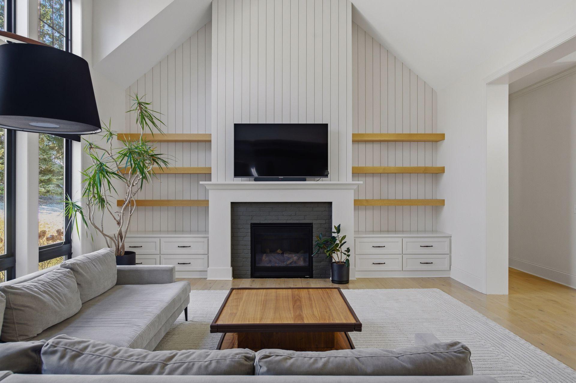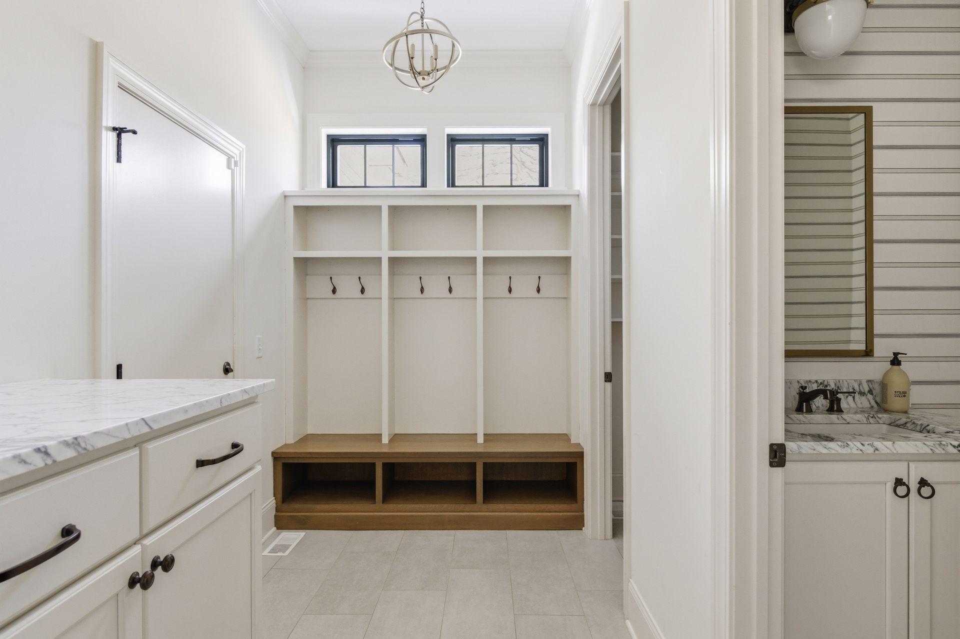 great room, and a warm mix of painted and natural wood finishes.