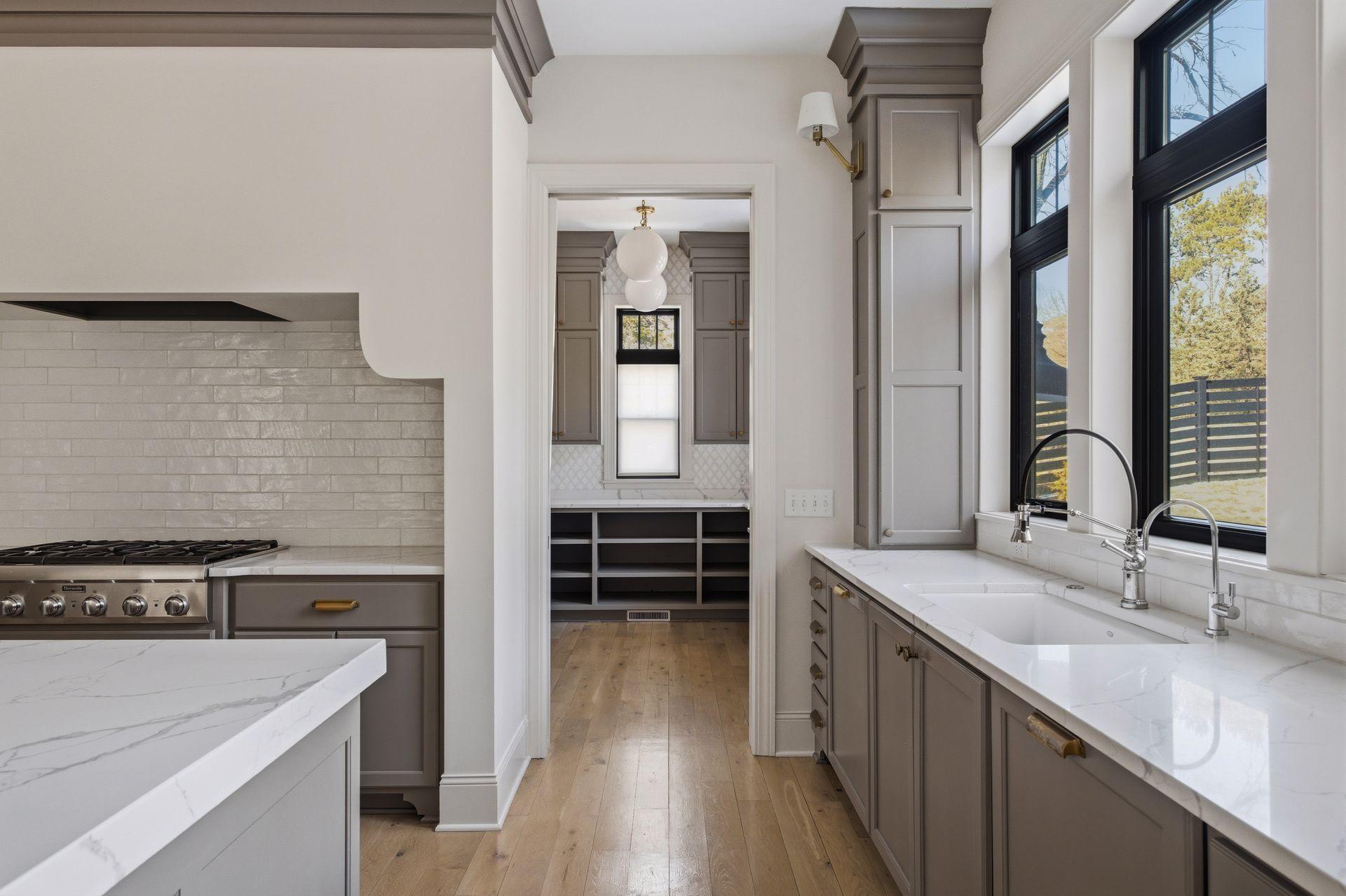 island, plus a walk-in pantry with workspace. The main-level primary suite includes a spacious walk-in