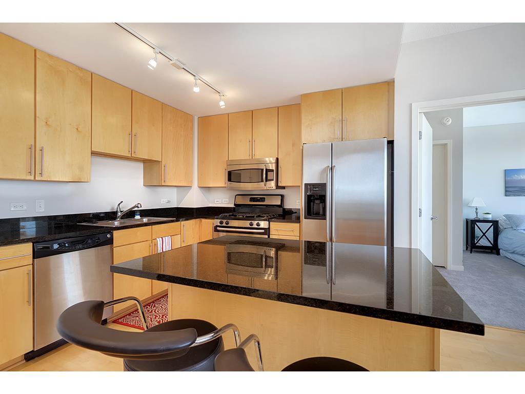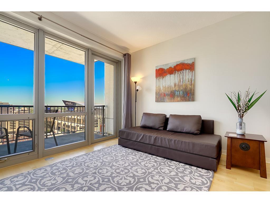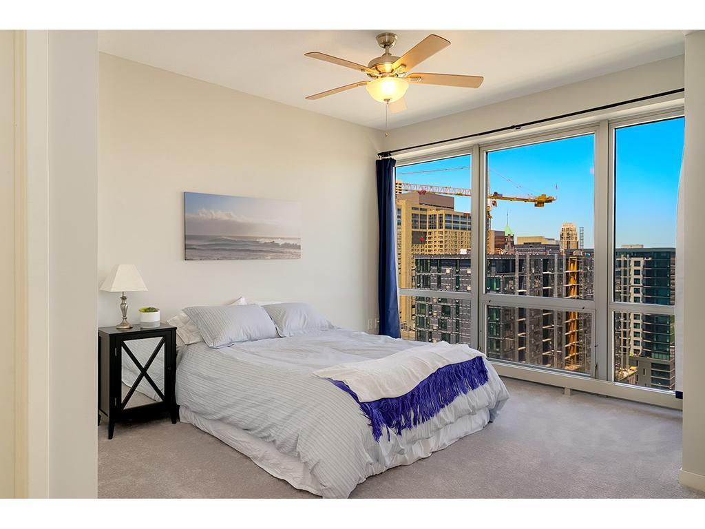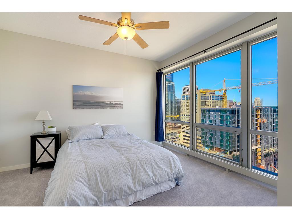 Live in the sky in this beautiful 17th floor Skyscape 1BR with 1 pkg stall included & amazing panoramic views of downtown. This spacious condo features floor-to-ceiling windows, huge balcony, hardwood flooring, stainless steel appliances, granite countertops, gas range, kitchen island, and walk-in closet. Skyscape Condos amenities include 24 hr. front desk, secure access, free indoor guest parking, large fitness center, hot tub & sauna, community room, outdoor community rooftop patio with grills and greenspace. Included in rent: 1 indoor heated parking stall, water/sewer/trash, and gas. Tenant responsible for electricity and elective cable & internet. App Fee: $78; Admin Fee: $150; move-in fee: $350. Security Deposit is one month's rent.