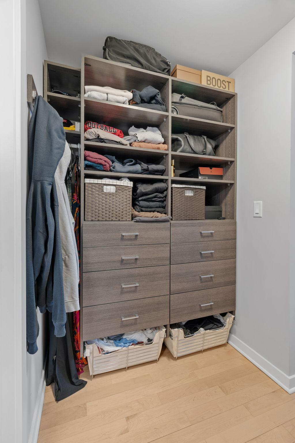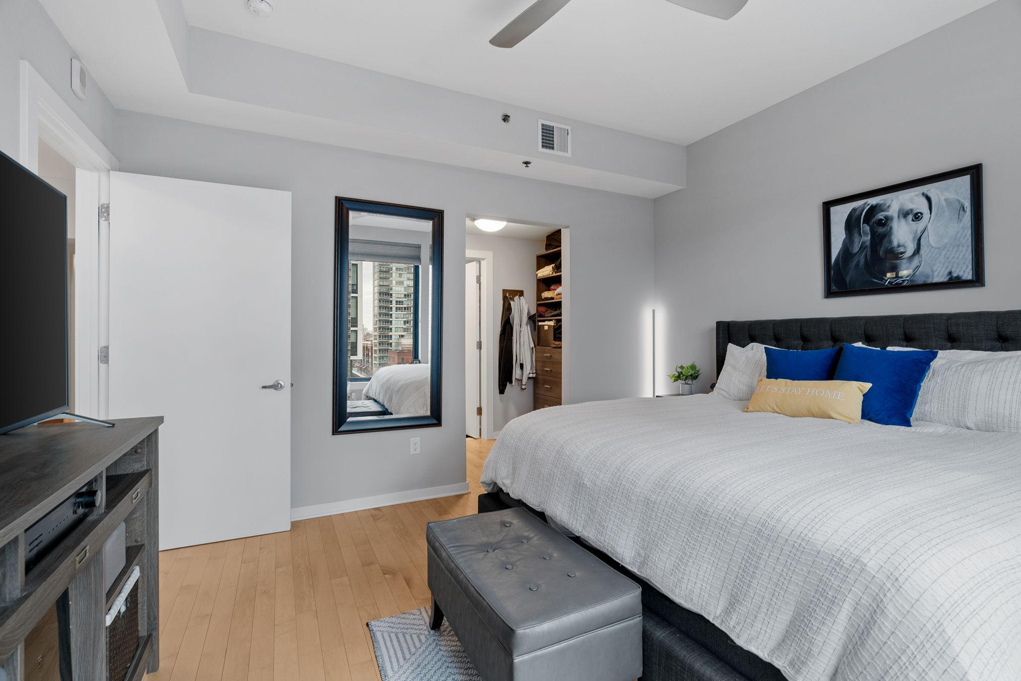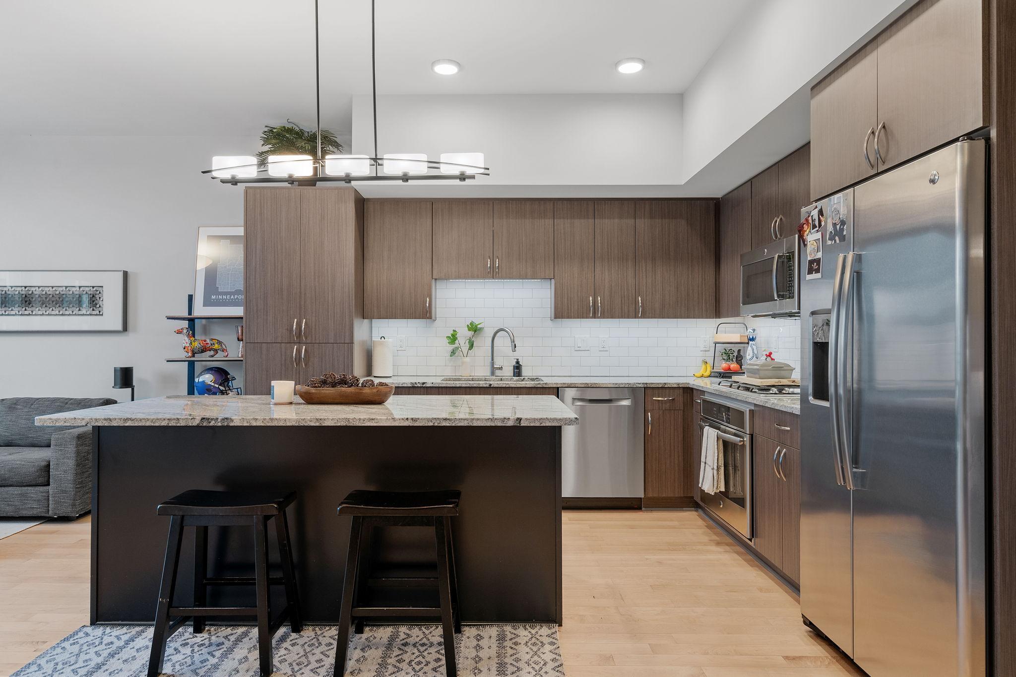 Incredible finishes, amazing convenience and 2 parking stalls available at this Portland Tower 2BR condo. Unit features updated hardwood flooring (even in the owner’s suite,) amazing custom built-ins, sunset-facing windows, and balcony with gas grill hook-up. Kitchen has stone countertops, tons of cabinetry and gas oven. Portland Tower residents enjoy the 6th floor patio, fitness center, community room, indoor guest parking, onsite staff, and living 1 block from Skyway access. Included with rent: 2 ramp parking stalls (1 stall has EV charger), storage unit, gas, water/sewer/trash, basic cable & internet. Tenant responsible for electricity. Application fee: $78 per person, Admin Fee: $150, Move-in Fee: $600. Security deposit is one month's rent.