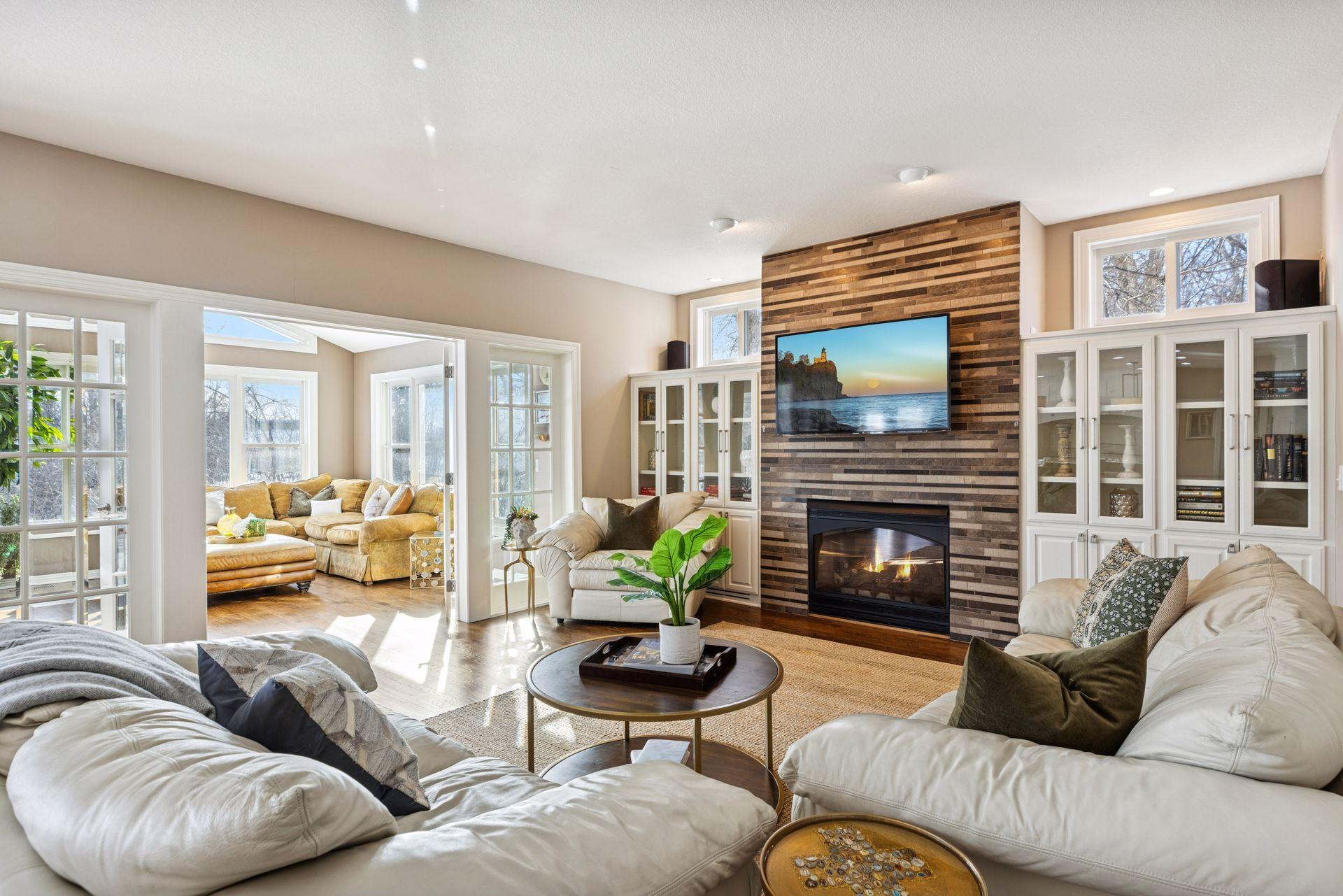Additional highlights: double office space on the main level, 4-season porch, upper level laundry room