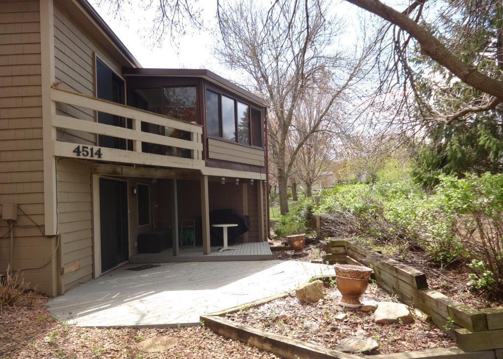 Available 05/01/2026. NO PHONE CALLS. Request showing in Showing Time and we will respond with prescreening questions. This two bedroom end unit townhome has amazing views of Turtle Lake. Three-season porch, full wall brick fireplace in lower level family room, walk-out lower level to private patio. Three season porch to enjoy the view and summer nights. Close to parks, trails, shopping and easy freeway access. 1st months rent and security deposit due at lease signing. Application fee is $65 per each tenant. Owner may consider 1 small non-shedding DOG only. Additional $500 pet deposit and $50 per month pet fee applies. 1st month's rent and security deposit due at lease signing.