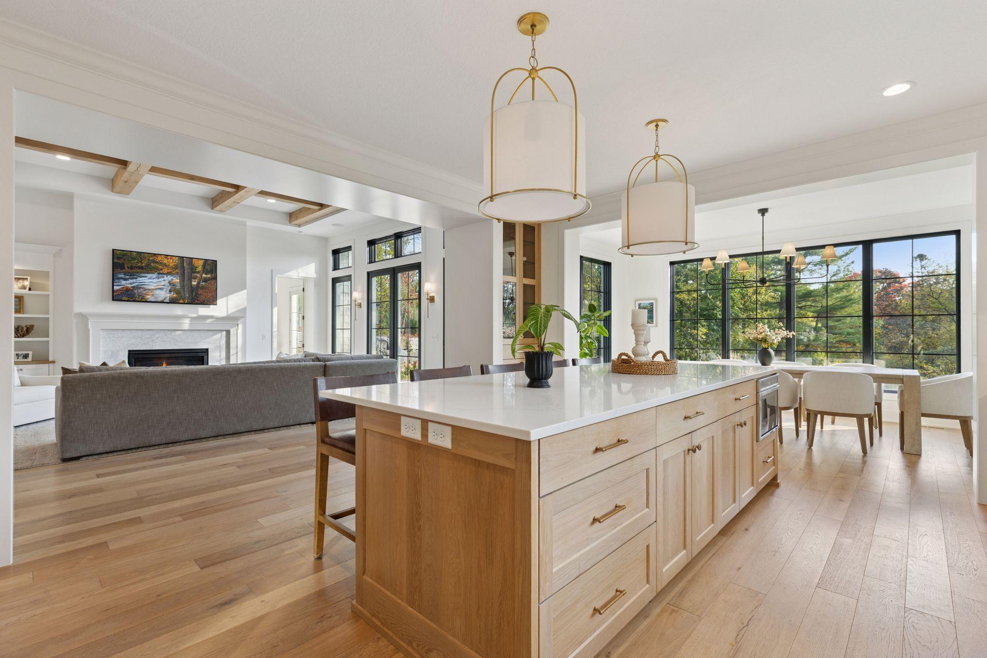 Situated in close-in Orono, just minutes from Downtown Wayzata, this home exemplifies thoughtful design with a seamless blend of elegance and everyday functionality. Upon entering, you'll be welcomed by archways and transom windows that create an open, airy atmosphere. The great room features beamed ceilings and the gourmet kitchen impresses with a striking combination of enameled cabinetry and natural wood. Adjacent to the kitchen, a well-appointed scullery enhances the home's function. Throughout the home, curated accents include wallpaper, textured tile selections, and a harmonious blend of crisp white walls and countertops with natural wood details, crafting a cohesive and fresh aesthetic. The main level's primary suite offers a vaulted ceiling and double doors leading to the back patio, providing a perfect view of the private backyard. The suite also includes a luxurious full bathroom with a double vanity, makeup vanity, soaking tub, and walk-in shower. The mudroom, which has exterior access, features a convenient dog wash, ideal for pet owners. On the upper level, the home provides three additional bedrooms and a laundry room. The finished lower level offers ample space with flexible uses and is ready for future enhancements, such as a bar, theater, or additional bedroom. The expansive fenced backyard features a paver patio level with the yard and is prepped for a future pool installation, adding further potential to this exceptional property. Idyllic location within Orono School District, 1/2 block bike ride to hop on the trail system and downtown Wayzata's dining and shopping district just minutes away!