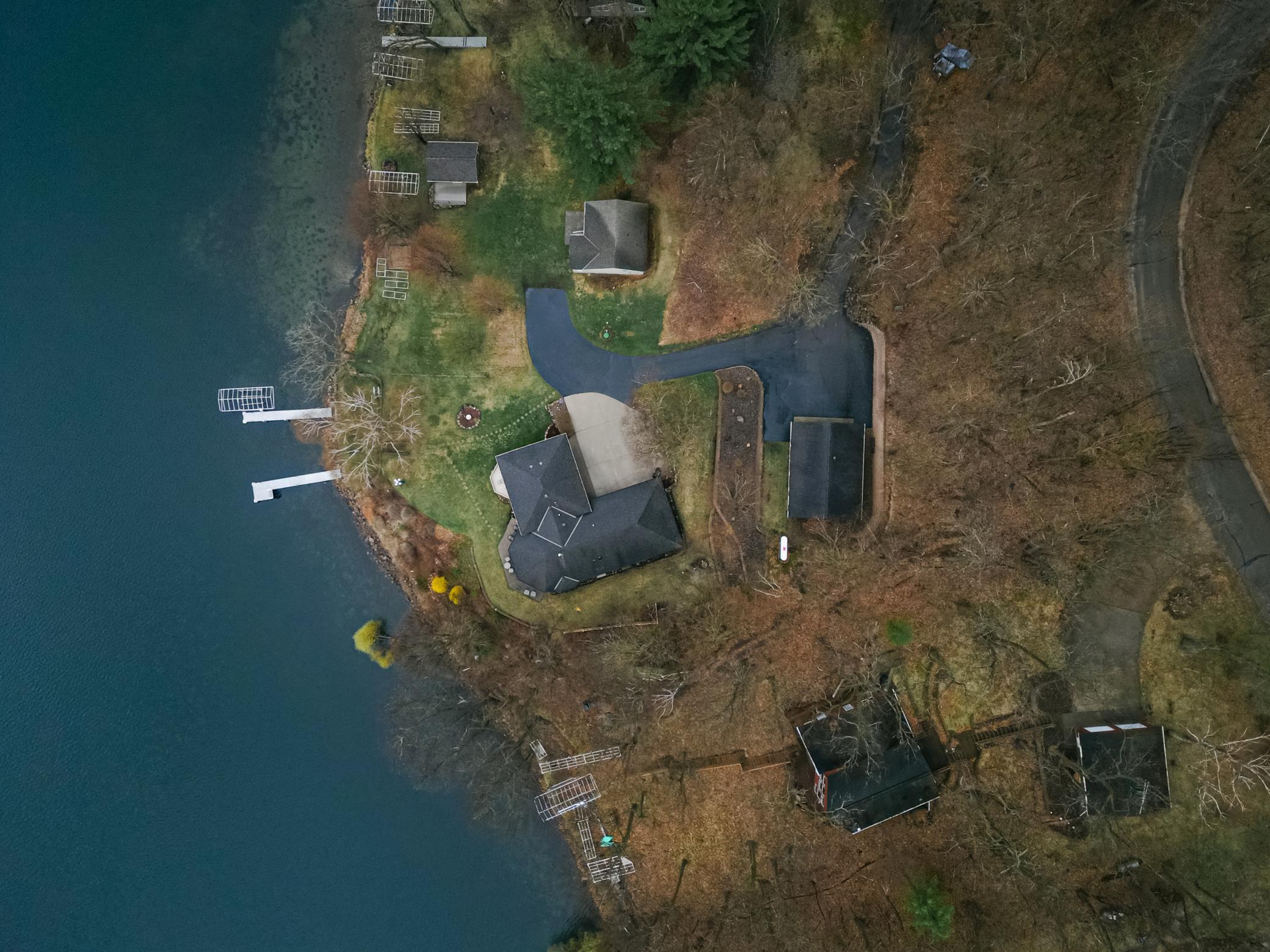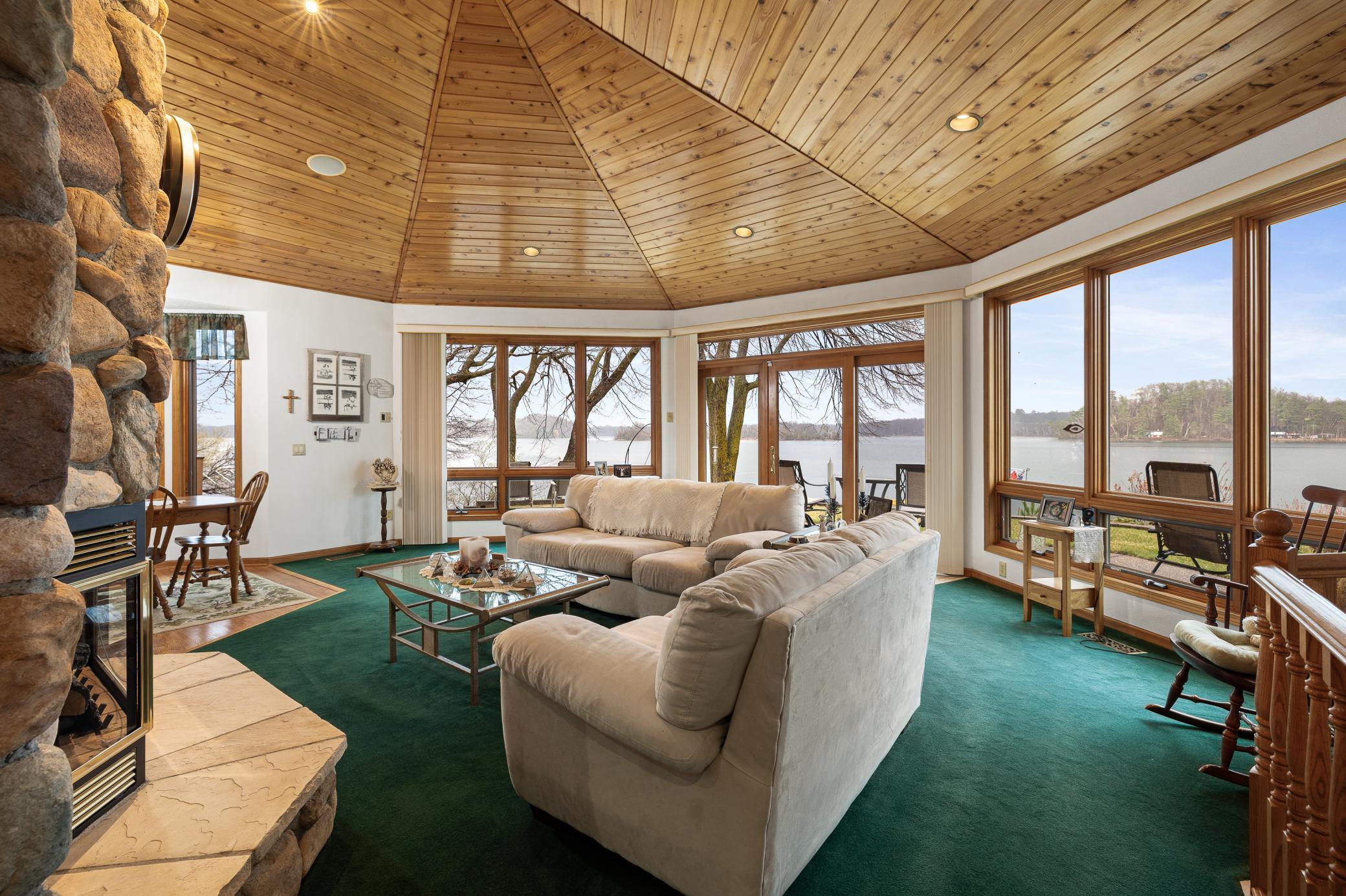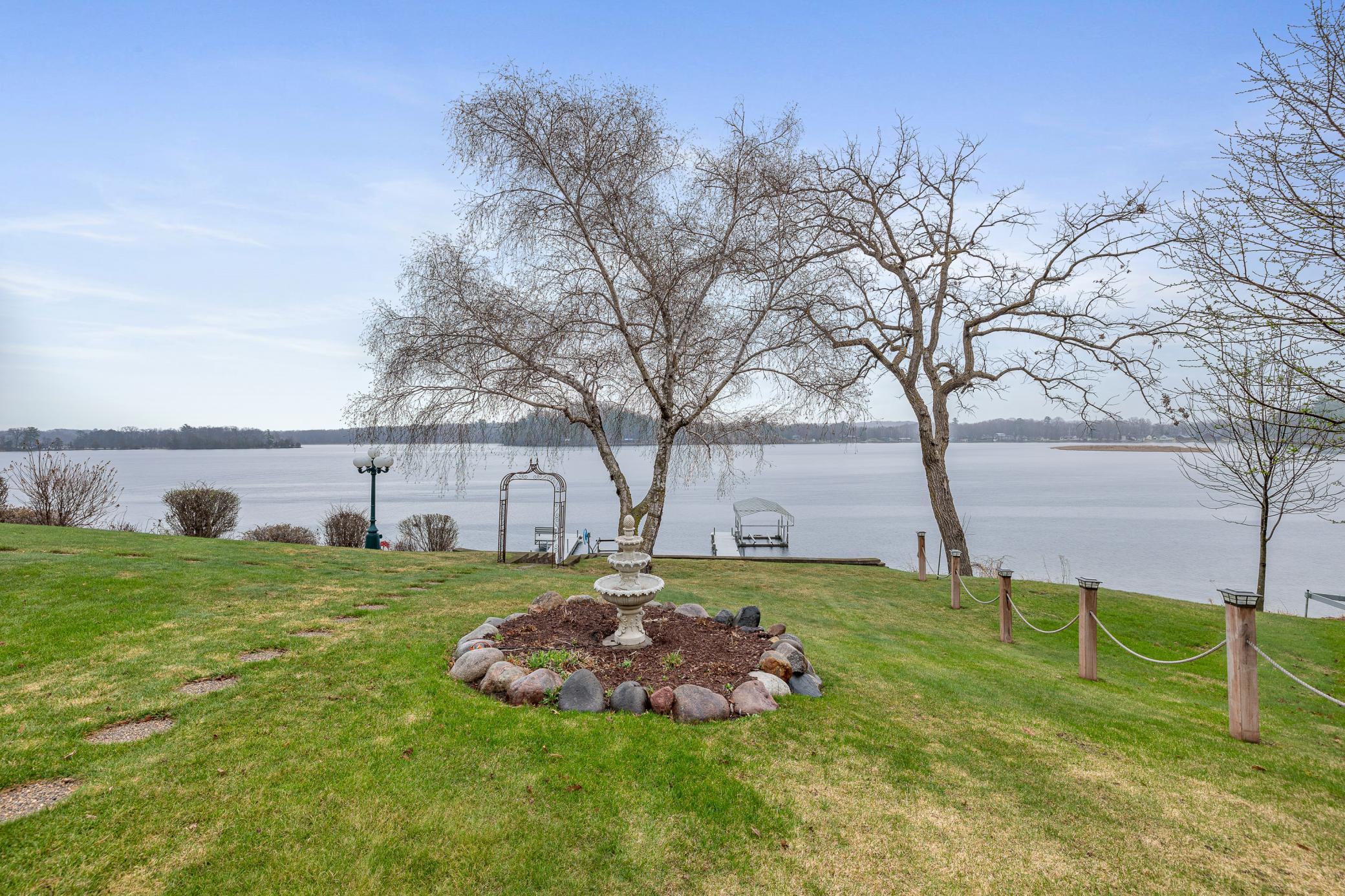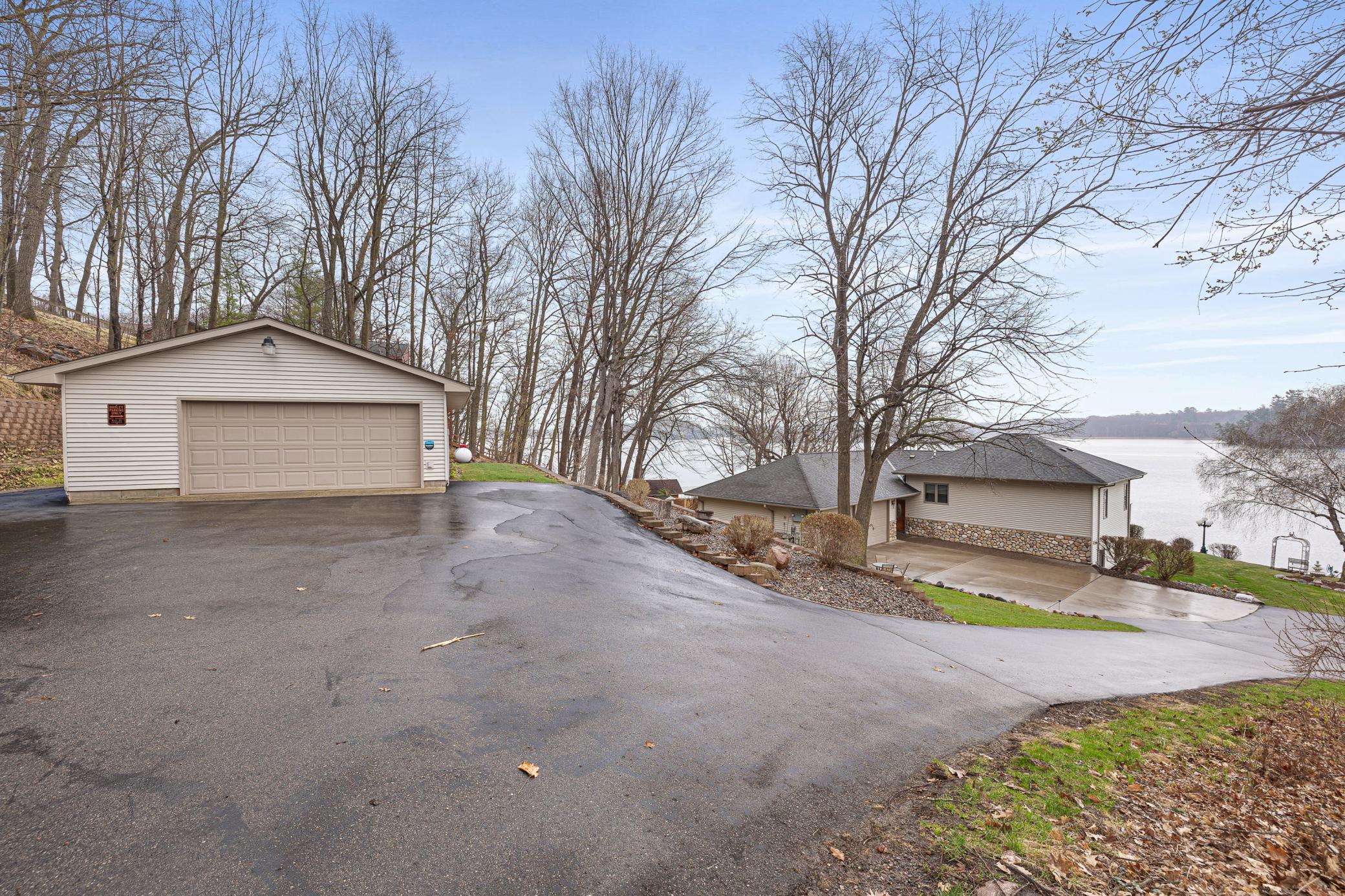 Experience elevated lakefront living on the shores of Fish Trap Lake. Set on an impressive 148 feet of pristine shoreline, this exceptional 3 bedroom/3 bath year-round retreat offers sweeping panoramic views, remarkable privacy, and the kind of natural beauty that turns everyday life into a getaway. From world-class walleye fishing right off your dock to the awe-inspiring sight of eagles soaring overhead, this is lake living at its finest. Inside, the home showcases timeless craftsmanship and thoughtful design, where no detail has been overlooked. A stunning floor-to-ceiling stone fireplace anchors the great room, complemented by granite countertops, a premium kitchen, and a whole-home hardwired surround sound system designed for effortless entertaining inside and out. Dual-fuel heating with in-floor heat, and central A/C throughout, ensures year-round comfort and efficiency. The spacious primary suite is a true sanctuary, featuring dual cedar walk-in closets with custom dressers, a maintenance free fiberglass balcony, and a luxurious spa-inspired bathroom complete with a Japanese soaking tub, glass block walk-in shower, and a double sink vanity. Outdoors, the property is equally impressive. Enjoy a fully equipped docking system, including two aluminum roll-in docks, permanent docking stations, and a 3,000 lb winch, along with a newer electric boat lift (2021). The patio provides endless opportunities to enjoy the beautiful lake views with friends and family. Attractively designed retaining walls, an in-ground sprinkler system, and hot/cold outdoor water spigots add both beauty and functionality to the landscape. Storage is abundant with an attached, heated and insulated two-stall garage, as well as a detached 24’x36’ garage capable of accommodating up to four vehicles - perfect for your lake toys and hobbies. Significant updates include new Marvin windows throughout (2018), a full kitchen appliance suite (2020), and a new water softener (2023), ensuring peace of mind for years to come. This is more than a home - it’s a lifestyle. Schedule your private showing and discover the rare opportunity to own a truly serene lakefront property.