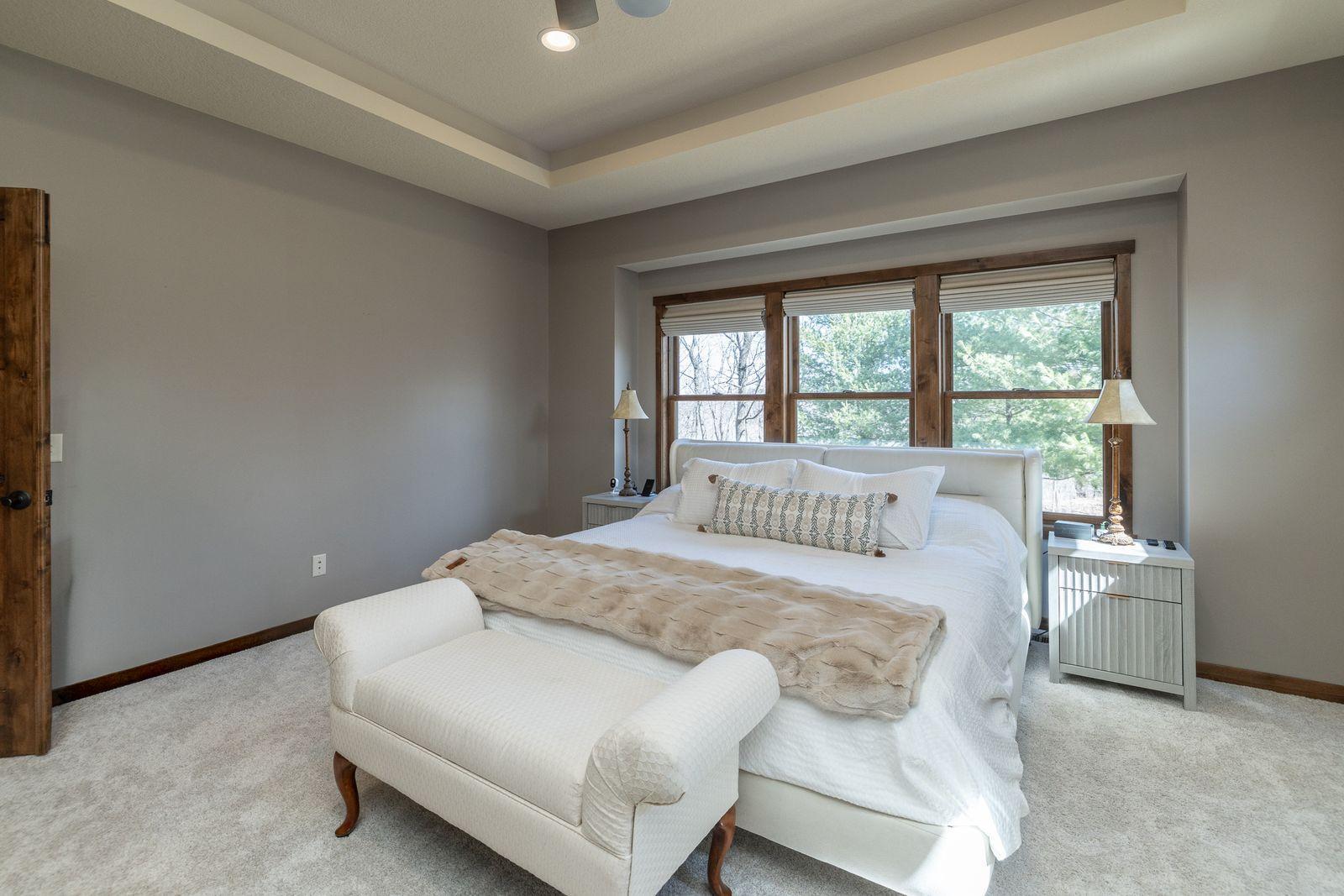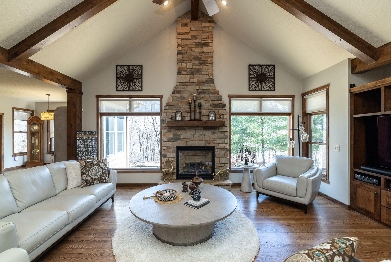 Extraordinary residence in sought-after Trumpeter Valley—available due to relocation. Perfectly positioned for exceptional privacy, this stunning home is nestled on 5.9 beautifully landscaped acres that showcase the natural beauty of the surrounding setting. Thoughtfully designed with both elegance and comfort in mind, the home features an open-concept layout enhanced by the rich warmth of Alder wood throughout. A spacious foyer welcomes you into the impressive vaulted Great Room, where expansive windows bring the outdoors in and create a seamless connection to nature. The gourmet kitchen is truly a chef’s dream, offering new quartz countertops, a large center island, high-end appliances, and a well-appointed butler’s pantry. The adjoining dining area is bright and airy, highlighted by oversized windows and access to a screened porch—perfect for relaxing and enjoying the peaceful, private surroundings. A warm and inviting office with custom built-ins provides the ideal work-from-home space. The luxurious primary suite features its own fireplace for added ambiance, along with a spacious private bath designed for comfort and retreat. An open staircase with custom ironwork leads to the expansive lower level, where you’ll find a beautifully designed wet bar with custom cabinetry and ambient lighting. The walkout family room features a stunning fireplace and access to the outdoors, while the recreation room—open to a dedicated workout area—is ideal for entertaining and everyday living. Two additional bedrooms and two baths complete this level. Car enthusiasts and hobbyists will appreciate the finished and heated 4-car attached garage, as well as the separate finished and heated 2-car detached garage. Trumpeter Valley offers a truly unique lifestyle, featuring 288 acres of preserved natural beauty and approximately 9 miles of groomed trails—exclusively available to residents. This exceptional property is a rare opportunity and truly a must-see.