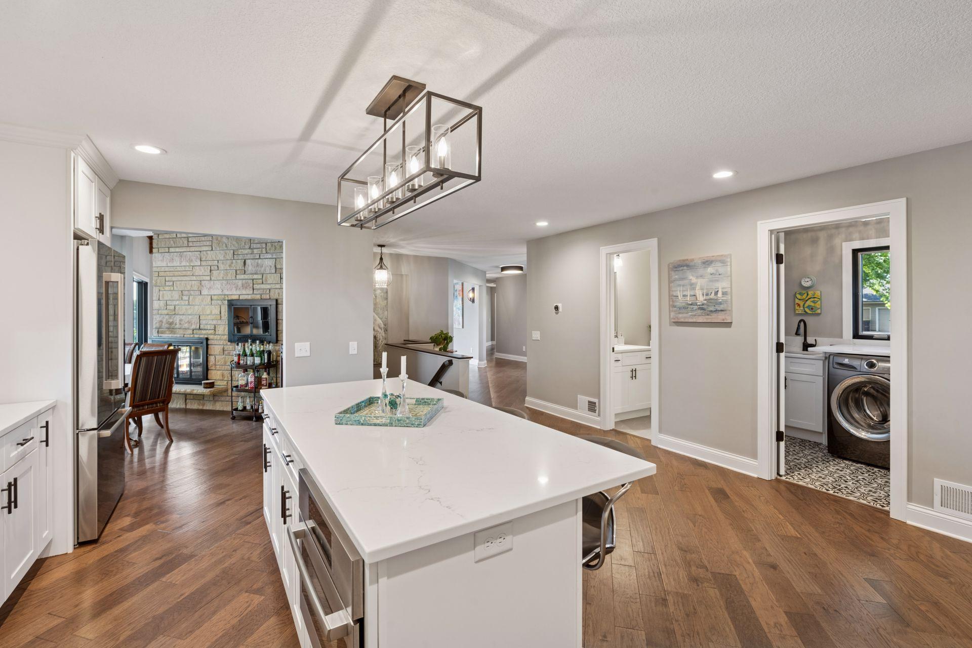 Stunning property on Upper Prior Lake. Enjoy peace and serenity on Crystal Bay which boasts amazing fishing (large mouth bass, pan fish, crappie, northern pike) and glorious sunrises. Kayak, paddle board, canoe, jet ski and swim without busy lake traffic. Conveniently situated close to Charlie's on Prior and Knotty Oar Marina. Prime viewing of July 4th firework displays from your deck. Breathtaking views from this walkout rambler which was renovated in 2021 and exquisitely landscaped in 2022. Waterfall/koi pond, lawn irrigation and garden bed watering fed from the Lake. The 114' of waterfront, lives like 1000' with no other homes sharing the shoreline to the east. Eagles, various bird species, turtles and ducks have found their home here. Brazilian Walnut deck. Gourmet kitchen. Primary en suite sanctuary. Thoughtful floor plan with main level living. Walkout lower level equally as beautiful capturing lake views from every room. Super-sized workshop for the hobbyist and/or a great space for all your water toys. Once you settle-in, you won't want to leave and you don't have to with a large home gym! Live your vacation everyday on Prior Lake and experience the peace and tranquility only a Bay has to offer. This home comes with a ONE YEAR home warranty for the buyer!