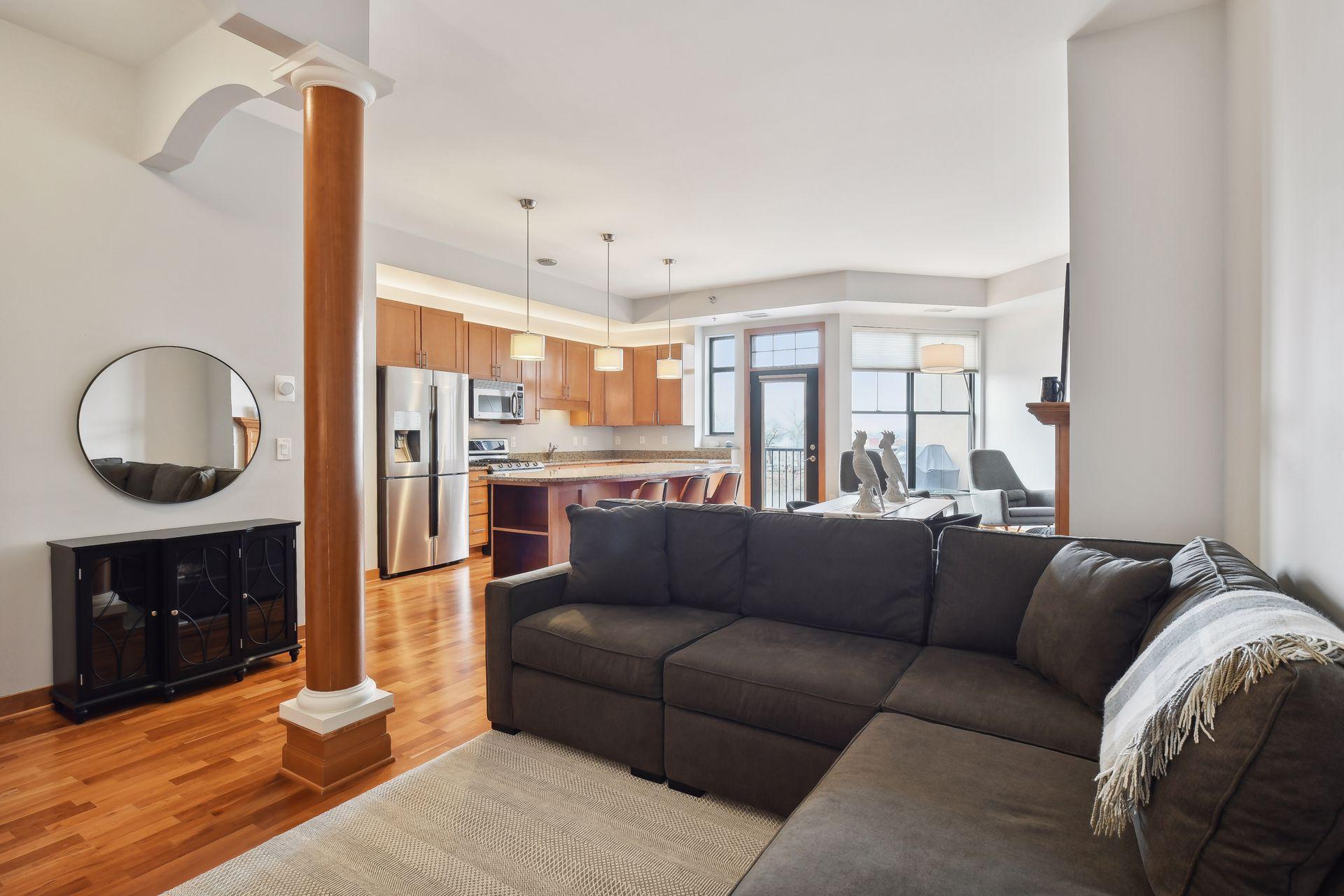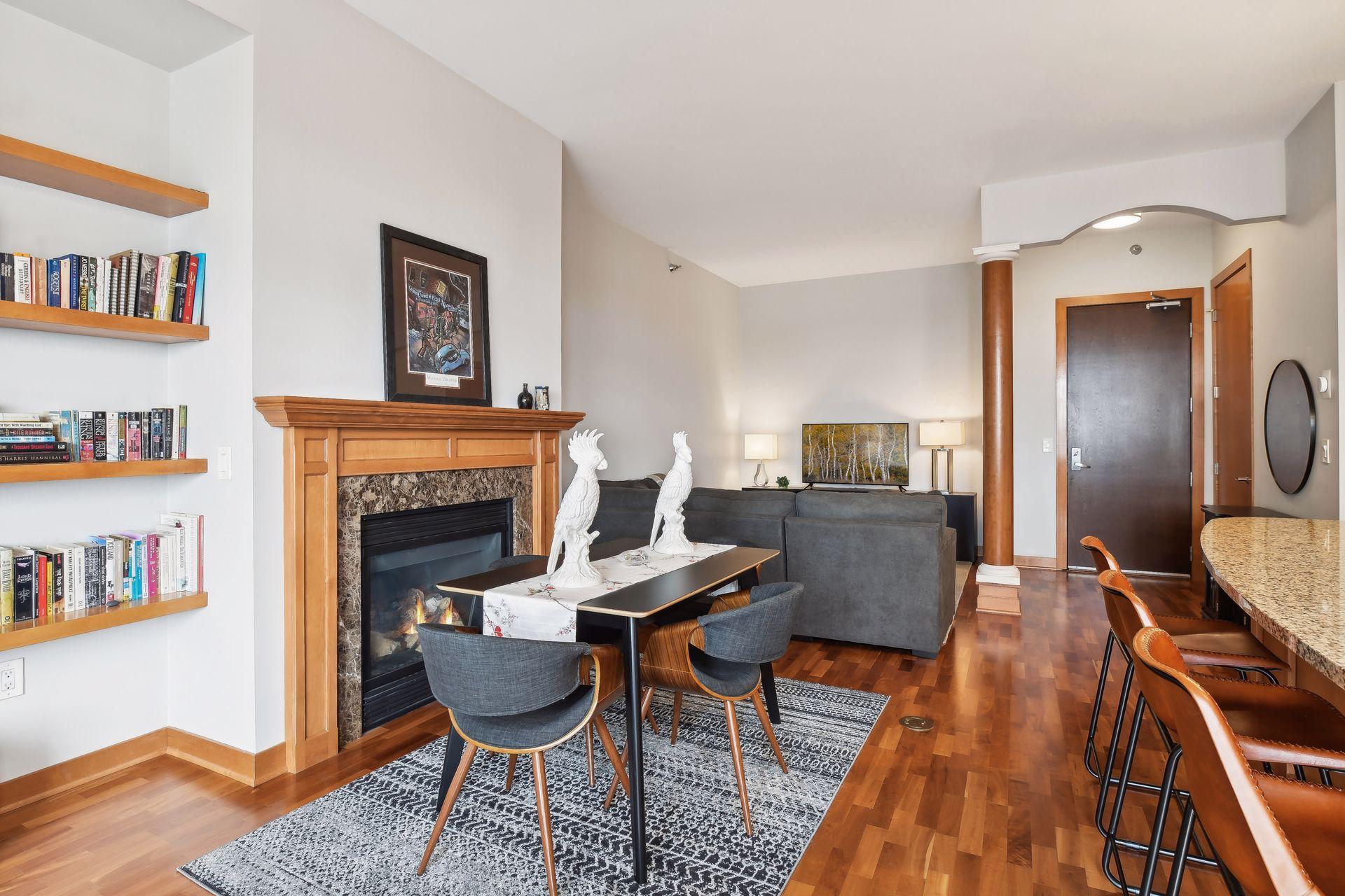 Beautiful top floor condo at The Groveland. Located in the heart of Loring Park, this spacious 1-bedroom/1-bathroom/1-parking condo boasts a large center island, granite counters, stainless steel appliances, owner's suite with custom walk-in closet, entry custom closet, hardwood floors, tiled bathroom, in-unit laundry, gas burning fireplace and tons of natural light. Cute nook perfect for your dining room table. Building amenities include rooftop deck, two fitness rooms, community room, outdoor plaza and heated guest parking garage. Walk/bike to Loring Park, Sculpture Gardens, Lake of the Isles and downtown Minneapolis. Easy highway access and easy access to public transit. Included with rent: 1 indoor heated parking stall, gas, water/sewer/trash, basic cable & internet package.