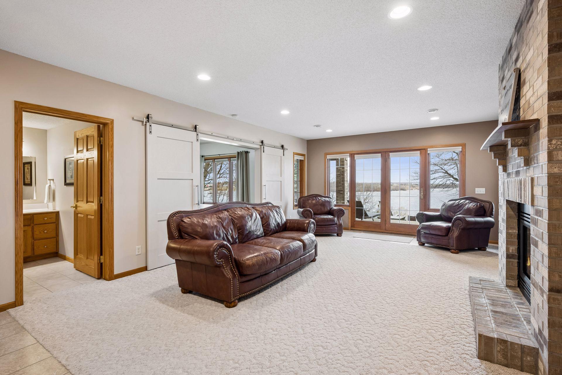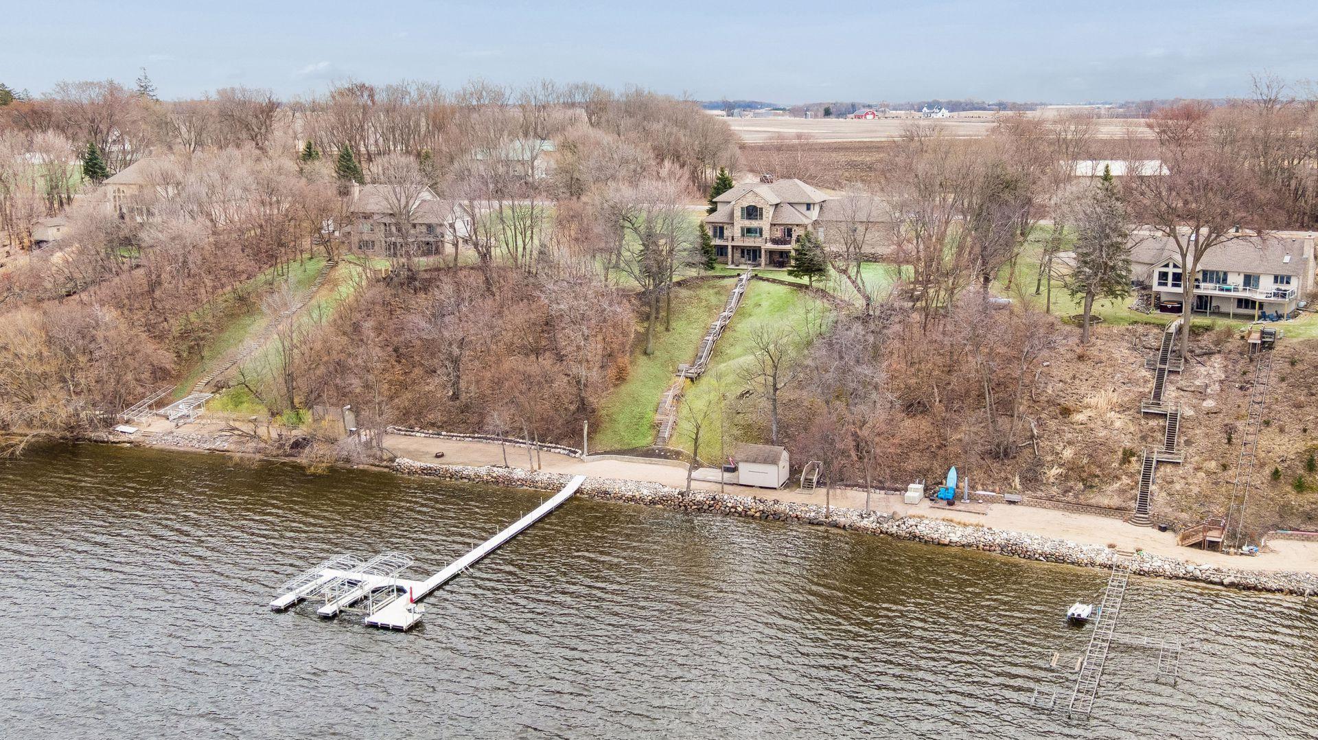 Welcome to this truly remarkable lake home where quality and comfort come together with panoramic western views, just 45 minutes west of the Twin Cities. Set on 1.43 meticulously maintained acres with 208 feet of hard sand shoreline, this property offers a rare opportunity to enjoy lake life at its finest. The setting is exceptional, both stairs and an elevator/lift providing effortless access to the expansive sandy beach. With its western exposure, you will enjoy unforgettable sunsets that never get old. Inside, the home strikes a perfect balance between relaxed and refined. Along with the main level living room and office, the great room serves as the centerpiece, featuring fireplace, vaulted ceilings and a stunning wall of windows that fill the space with natural light while highlighting peaceful lake views. The kitchen dining room combination opens to a massive deck perfect for grilling, dining and entertaining. The main-level primary suite offers the ease of one-level living and the feel of a private retreat, complete with fireplace, a spacious bath, walk-in closet, and direct access to the lakeside deck. Upstairs, three more bedrooms provide ample space for family and guests, including a private suite and two more bedrooms connected by a dual-entry bath. The walkout lower level has a large family room with fireplace, a walk-up bar and kitchenette, game area, theater room with fireplace, and a ¾ bath, creating a natural gathering space year-round. The oversized three-car garage offers plenty of room for vehicles, storage, and all your lake gear. Known for its clear water and recreational appeal, Lake Cokato provides the perfect backdrop for boating, swimming, fishing, or simply relaxing at the water’s edge. This is the kind of lake home that is hard to find, high quality, thoughtfully designed, and perfectly suited for making lasting memories.