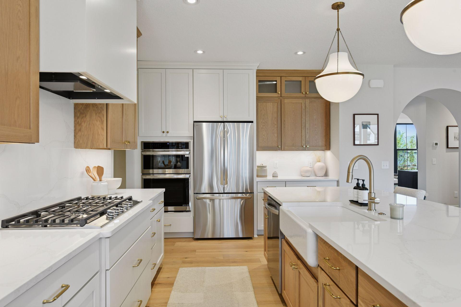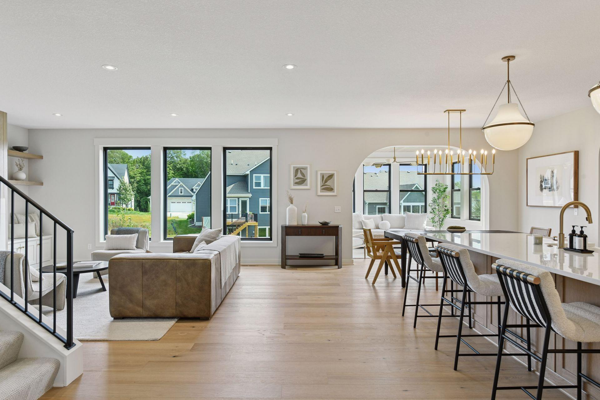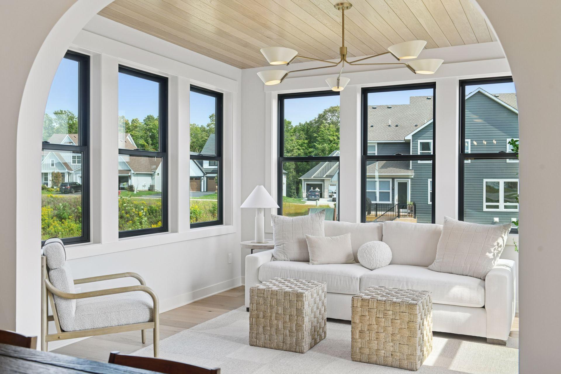THE EXCITING JEFFERSON FLOOR PLAN! 5 bedrooms, 5 baths and a large 3-car garage. The main level has an open floor plan complete with center-island gourmet kitchen, great room with fireplace, prep kitchen, flex room, sunroom, deck and much more! The upper level features a primary suite with luxurious bath, three family bedrooms, two additional baths – one en suite, a bonus room and a second-floor laundry. The walk-out lower level has an additional bedroom, bath, family room, game room, exercise room, a wet bar and fabulous golf simulator room with a lounge and seating. Meticulous attention to detail in the fit and finishes. Lovely landscaped yard. The Meadows on Halstead’s Bay features a clubhouse and pool and access to 12 miles of blacktopped trails.