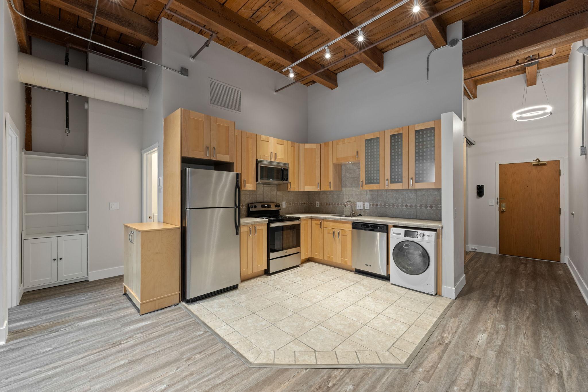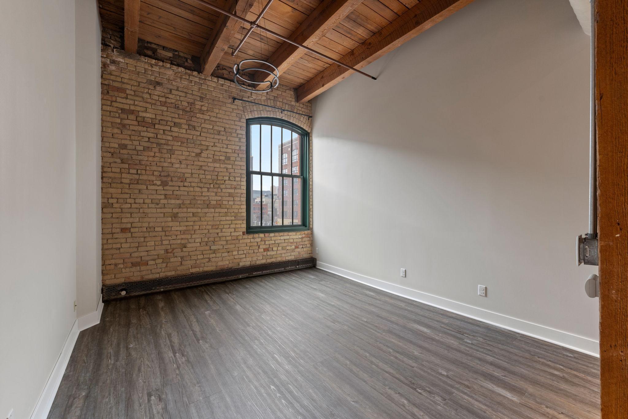 Welcome home to your newly updated Riverwalk Lofts 1BR with most utilities and parking included with rent. Riverwalk Lofts is a historic converted warehouse nestled steps from riverfront parks and trails, but walkable to the North Loop's signature restaurants, retail and nightlife. Stepping in you’ll love the 14 ft ceilings, exposed exterior brick, and timber beams. Smart updates include plenty of closet space & cabinetry, updated lighting, stone countertop & tiled backsplash in the kitchen, and in-unit 2-in-1 washer/dryer. Included with rent: 1 indoor/heated pkg stall, 1 storage unit, basic internet, gas, and water/sewer/trash. Tenant responsible for electricity. App Fee: $78 per adult; Admin Fee $150; HOA move-in fee: $350; Security Deposit is One Month’s Rent.