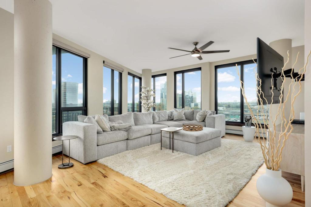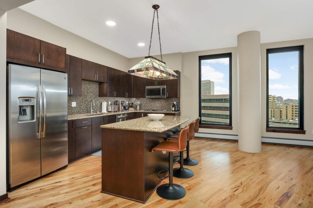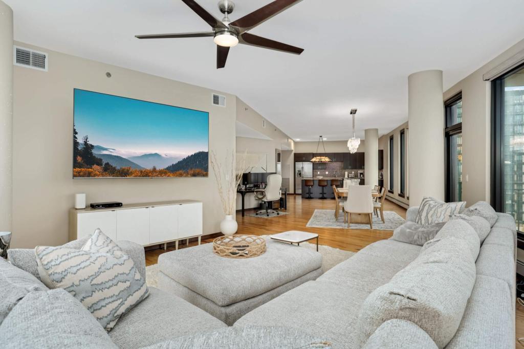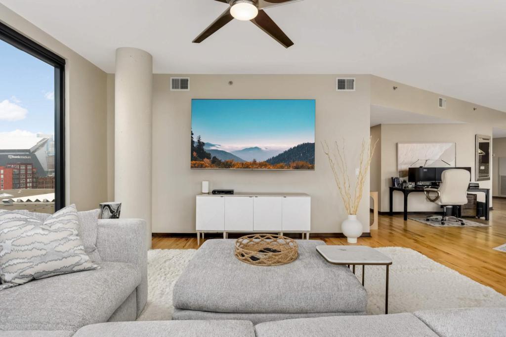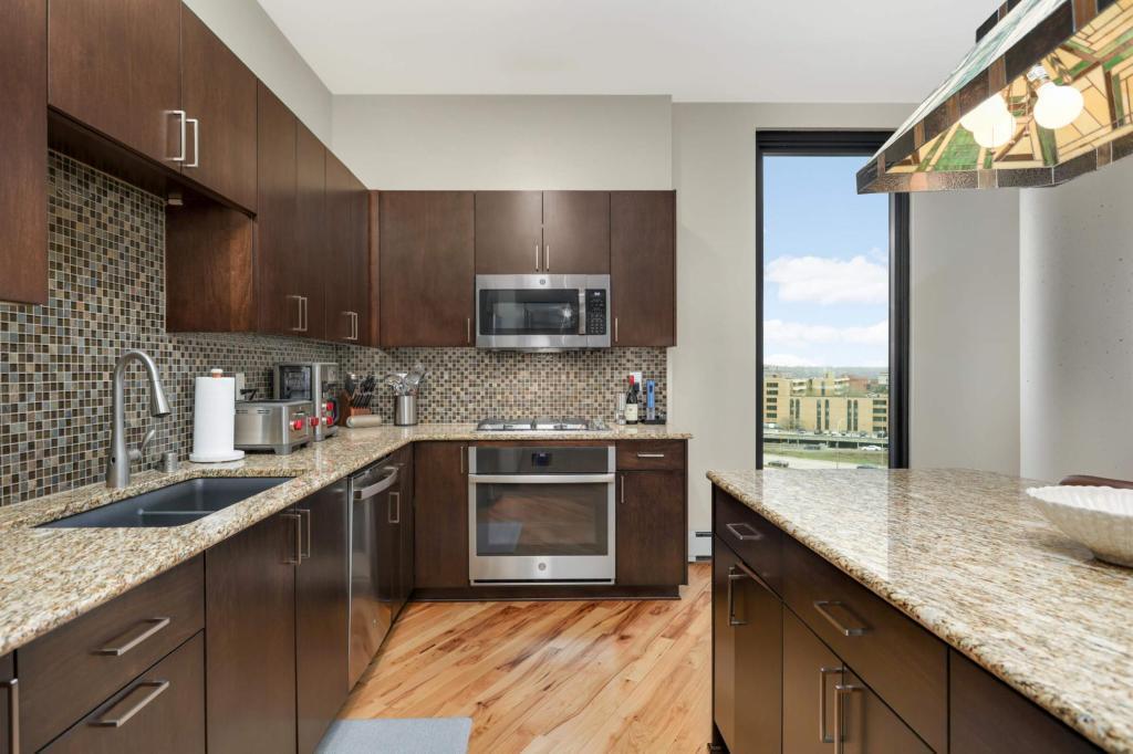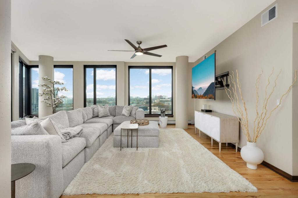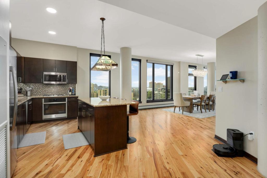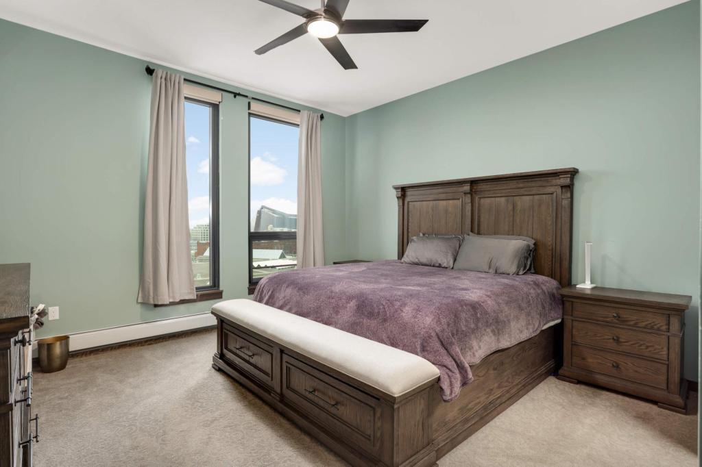 Welcome home to your sunny and massive corner 2BR in the Mill District with over 1900 sq ft and amazing views. You’ll love the details: tons of natural light throughout the day, blackout shades on remote, large ceiling fans, custom closet organizers, diagonal hardwood flooring, 10’ ceilings, balcony with gas grill hook-up, and more. Kitchen features granite countertops, gas oven, large island, tiled backsplash and stainless-steel appliances. Legacy Condos are steps from Gold Medal Park and provide unparalleled amenities: guest parking, secure access, 24/7 front desk, community room, community patio, outdoor pool & jacuzzi, cardio center, separate weight room, game room w/golf simulator, pet washing stations, dog run, playground and more! Included with rent: 2 indoor heated parking stalls, 1 climate-controlled storage unit, water/sewer/trash, gas, basic cable & internet; tenant responsible for electricity. App Fee: $78, Admin Fee $150, HOA Move-in fee: $700; HOA Occupancy fee: $175; Security Deposit is one month's rent.
