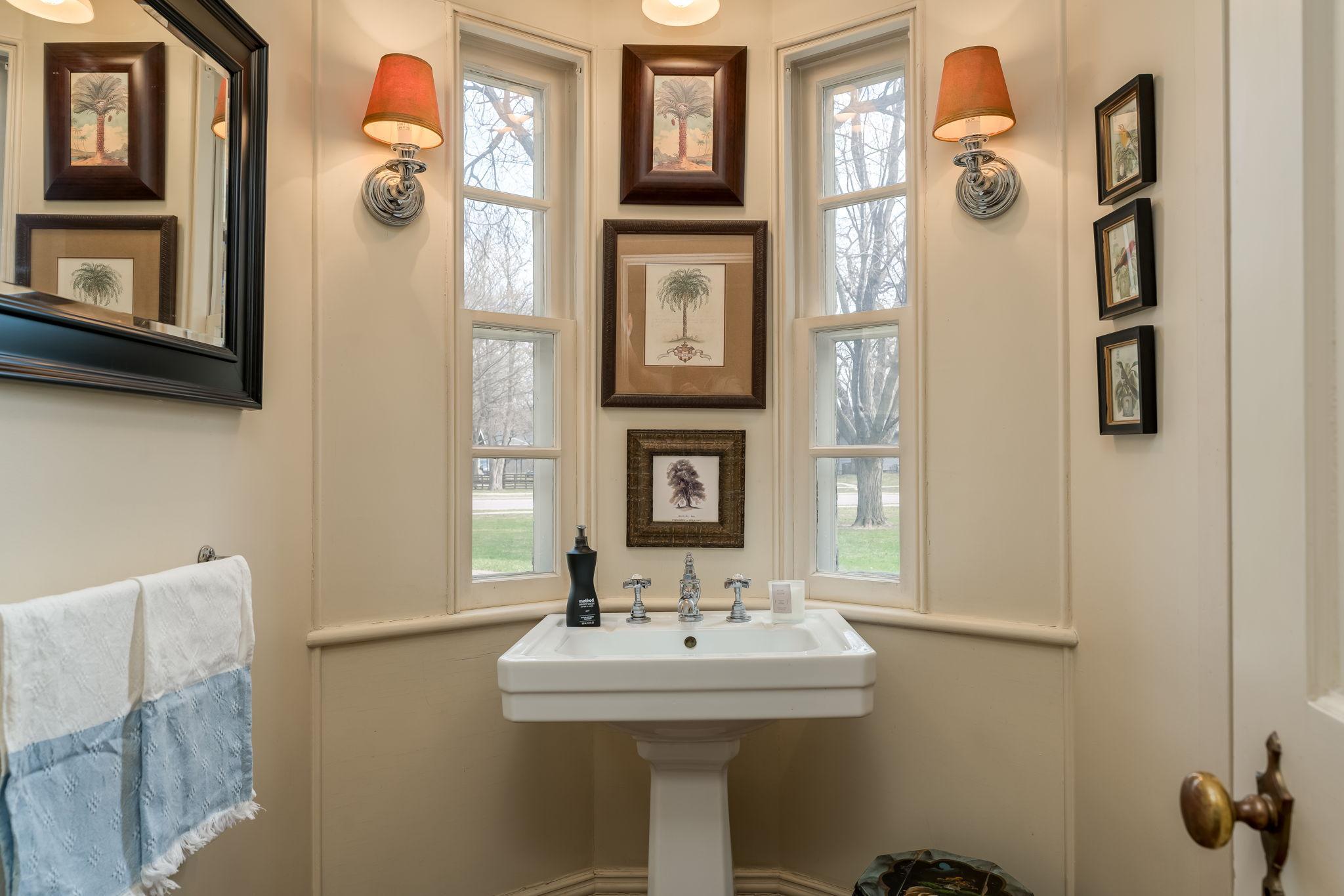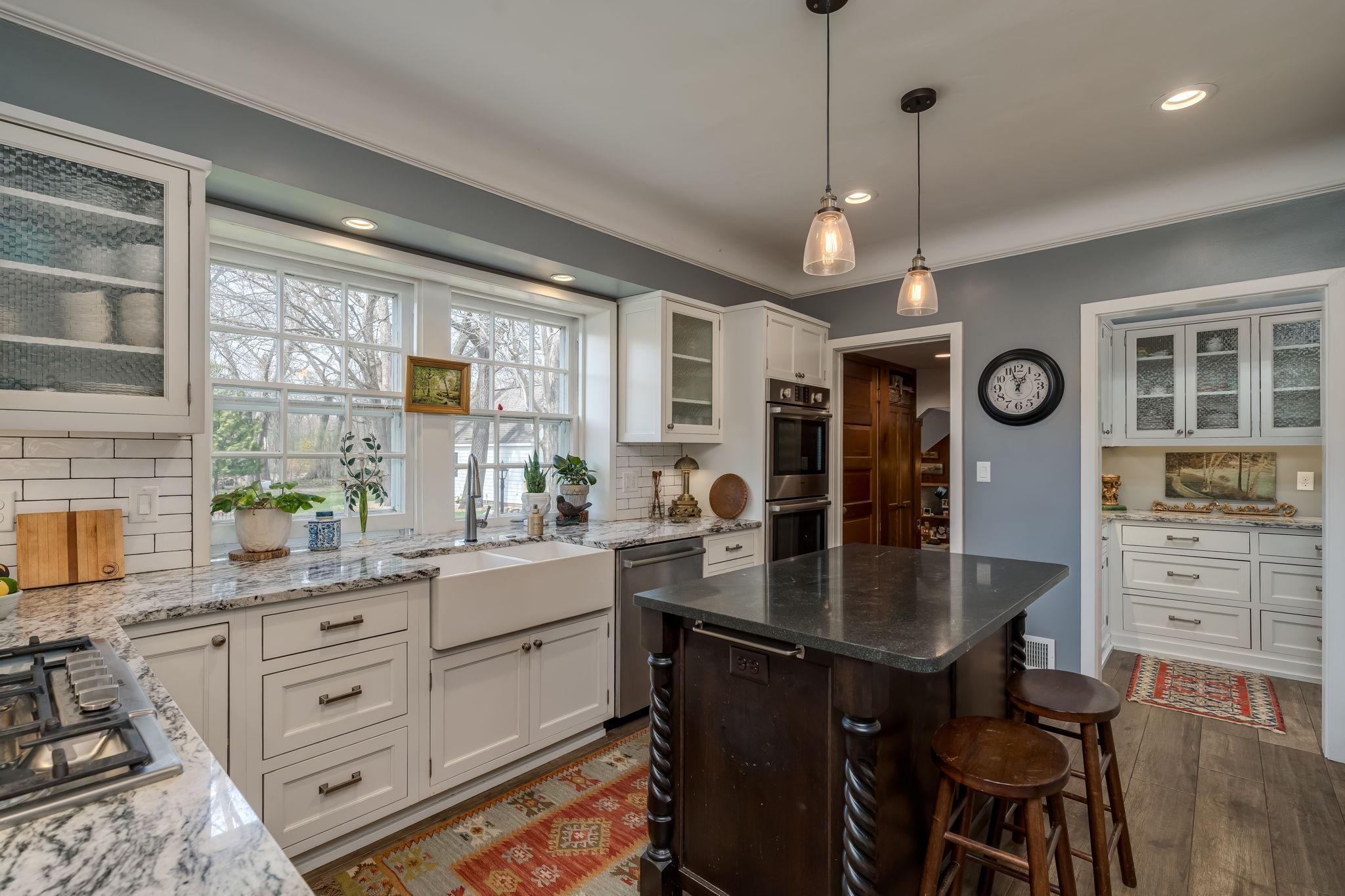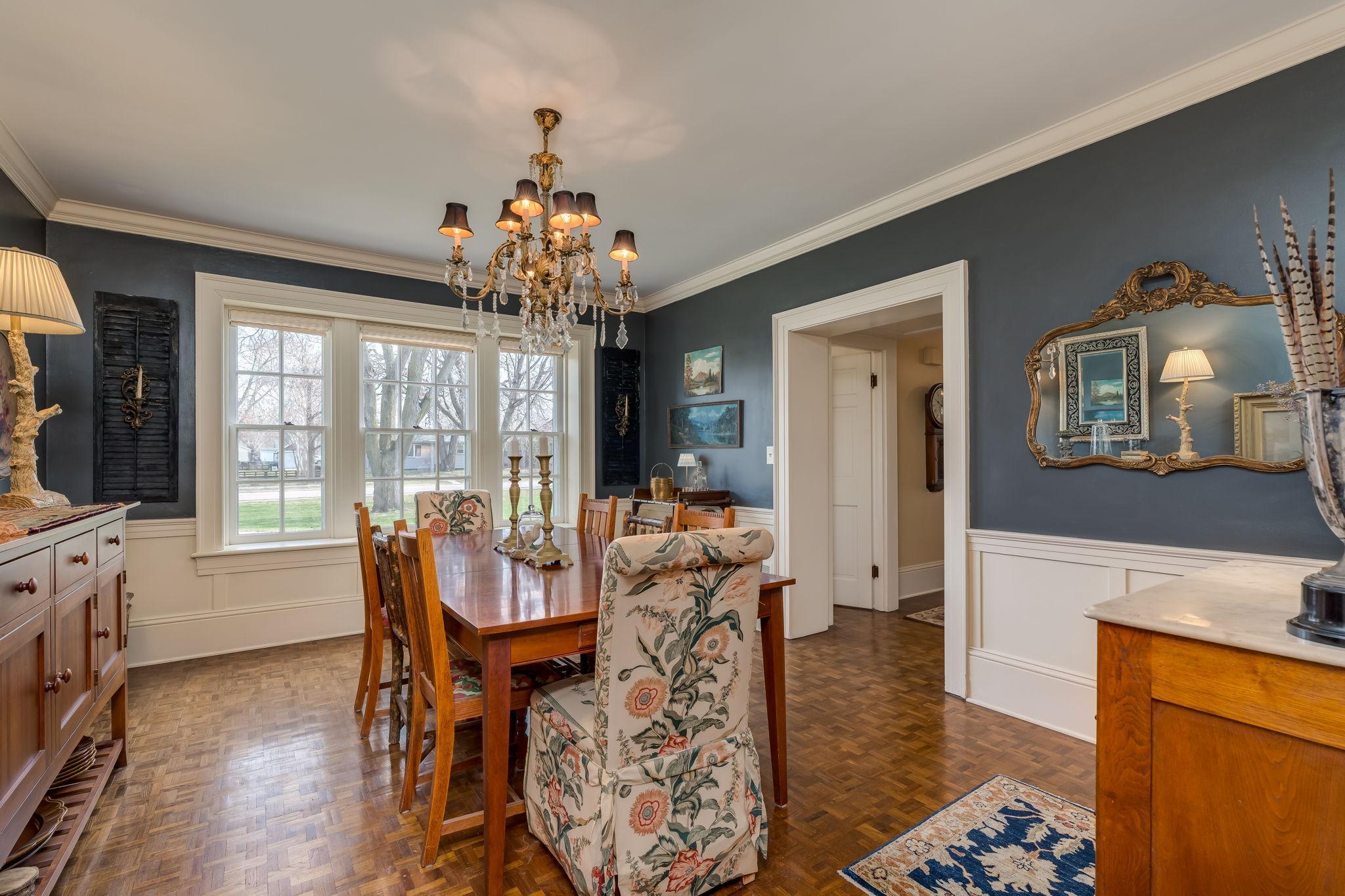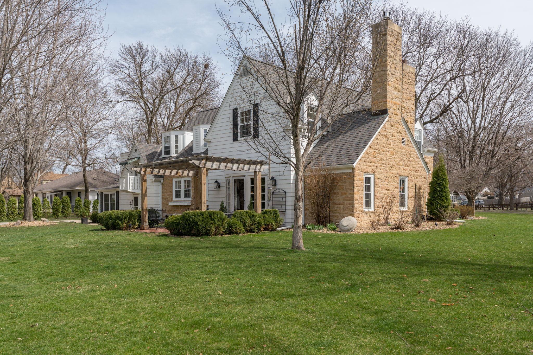 Some homes hold history in their walls. 1128 Carney Avenue is one of them! Designed in 1939 by noted architect Henry C. Gerlach, this Kasota stone-and-wood Colonial Revival has been thoughtfully restored by owners who truly understood its significance. Walk through the front door, and you feel it immediately, the warmth of original hardwood, the detailed original trim and doors that have greeted generations, along with a quiet confidence that comes from craftsmanship built to last generations. The formal living room is both warm and striking, featuring a white fireplace flanked by floor-to-ceiling bookshelves. Step through the den, on original African Teak wood, to a richly paneled retreat with coffered ceilings, a billiard area, a granite wet bar, and French doors that open to the grounds. In the family room, a remarkable piece of the home’s history remains: an original artwork gifted to Harry Carney by architect Henry Gerlach, staying with the house as it has for generations. The 2018 custom kitchen renovation honors the home’s character while enhancing everyday functionality, featuring a farmhouse sink, granite countertops, a butler’s pantry, and high-end appliances, all centered around a timeless island. Outside, 1.15 acres unfold into something rare for in-town living: an apple orchard, raspberry patch, tended flower and vegetable gardens, mature trees, and room for a future pool. The property includes both an attached 2-stall garage and an extra-deep 2-stall detached garage with above storage. Additional features include an overabundance of storage, 2 cedar closets, laundry chutes on every level, in-floor heat in the mudroom, invisible fencing, and Class 4 architectural shingles. All original hardwood flooring throughout, along with all original light fixtures, except in the renovated custom kitchen. This is more than a home—it’s a legacy property with a story to carry forward.