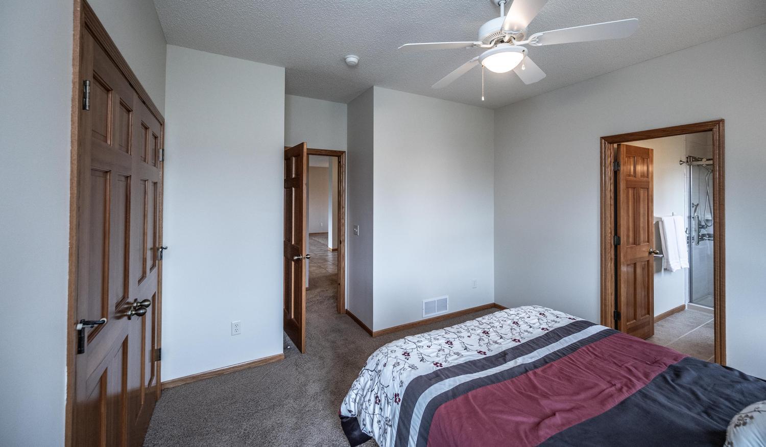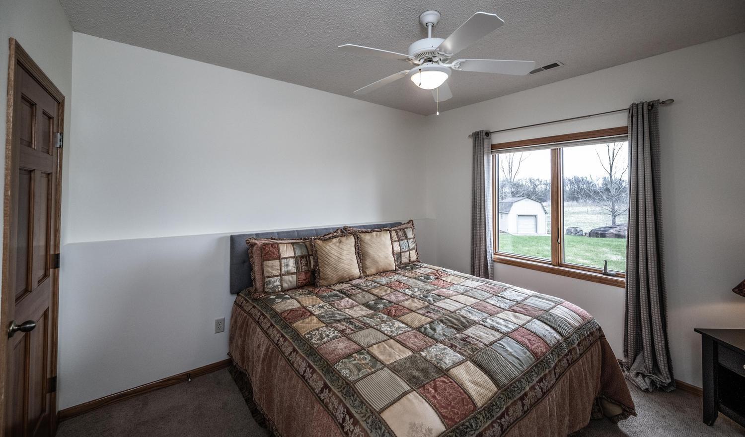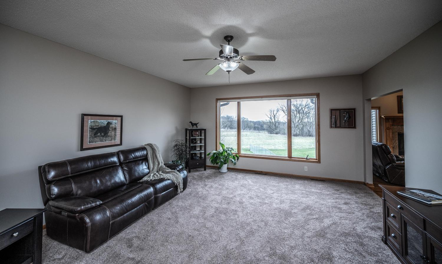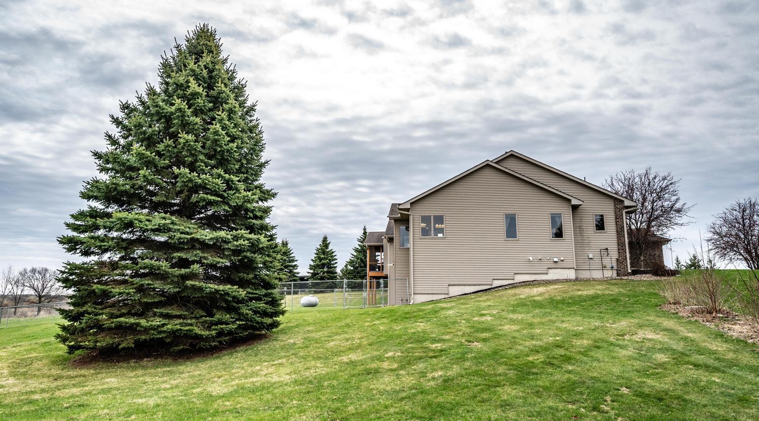 This beautiful 2003-built McDonald custom home, situated on 12 gently rolling acres with incredible views in every direction, offers exceptional features both inside and out. The main level includes a spacious formal dining room and a living room that lead into a den and an updated gourmet kitchen. The kitchen is equipped with granite countertops, stainless steel appliances, and a walk-in pantry, providing convenient access to a fully screened deck. In the north wing, you will find a primary suite featuring a large walk-in shower, a soaking tub, and multiple closets. This wing also houses a third bedroom currently used as an office, as well as a spare bedroom with a private, updated three-quarter bathroom. The lower level offers a family room with a bar and a large entertainment space, complete with a full-size pool table, a fourth bedroom, an additional three-quarter bathroom, and ample storage. The well-maintained mechanical systems are easily accessible and include a forced-air furnace, an in-floor boiler system, and geothermal equipment. Attached you'll find the three-car heated garage and a highly functional 50 x 80 pole shed. The shed contains a finished 23 x 24 office with a half bath, a front shop/wash bay, and heated rear area with a full mezzanine. Additionally, a full home and shop generator is included to ensure uninterrupted power.