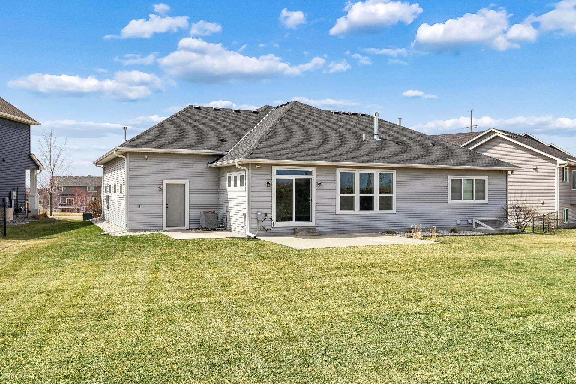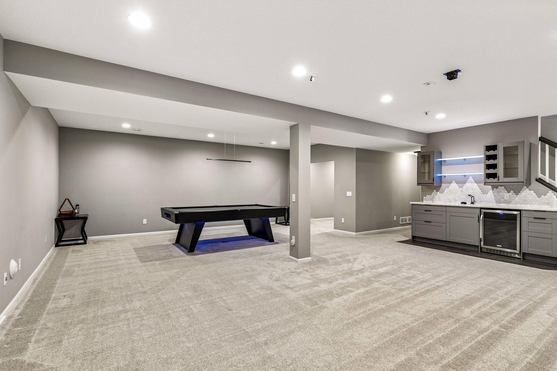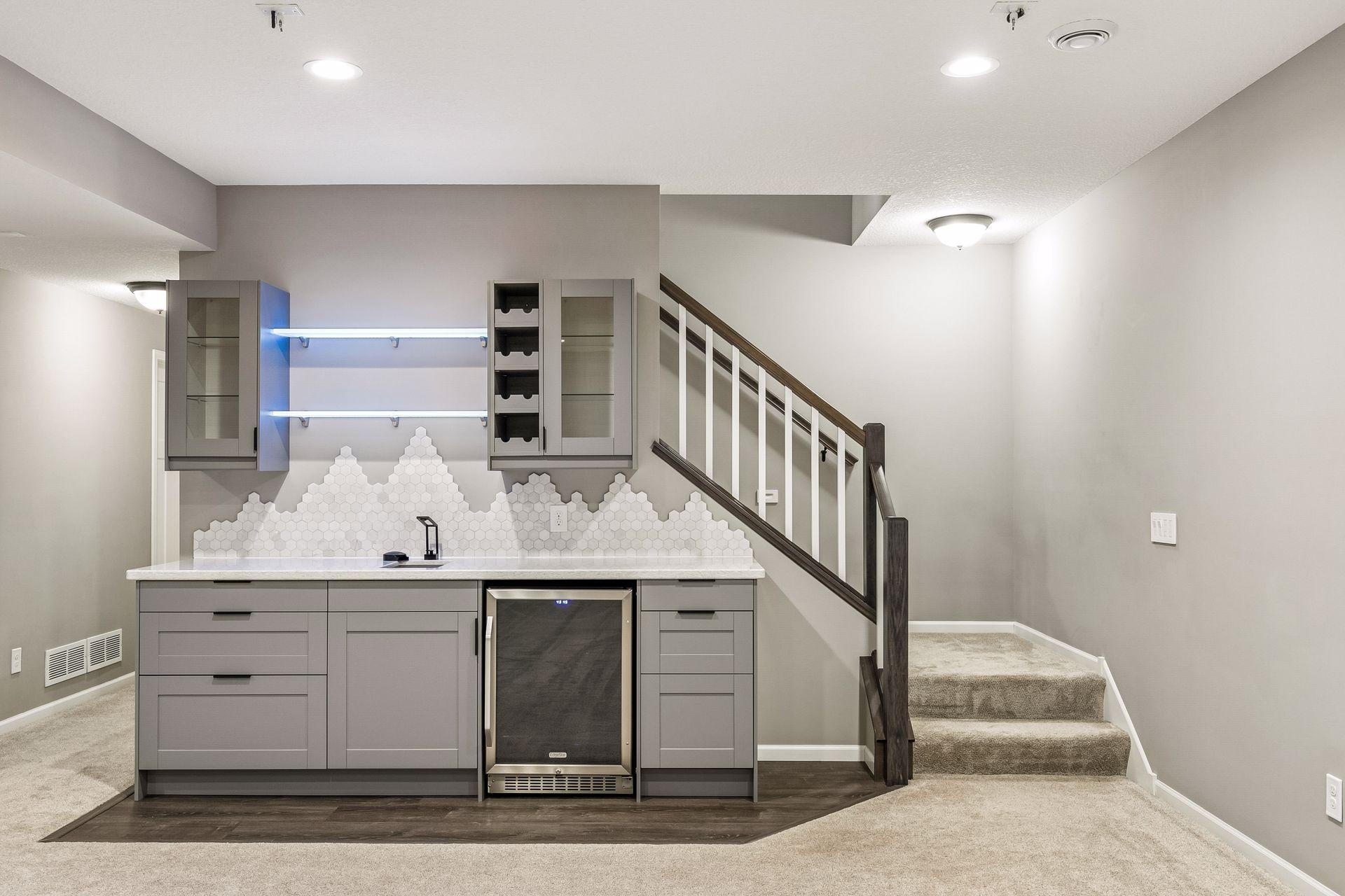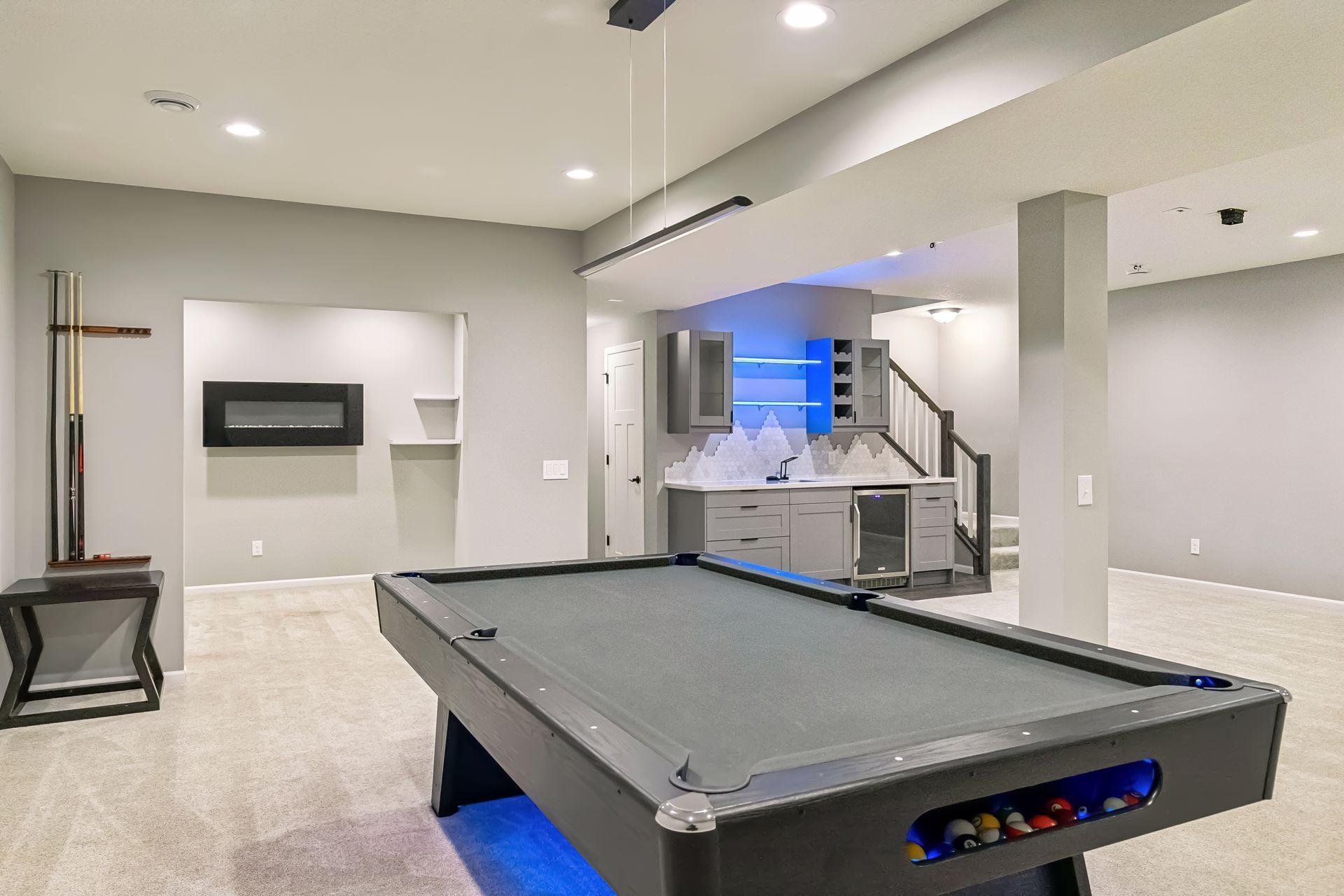 This beautifully designed 3,200 sq ft rambler, built in 2017, features 3 bedrooms and 3 baths with most living on the main level. The bright, open layout includes engineered wood floors, a chef’s kitchen with island seating, stone countertops, glass upper cabinets, and a walk-in pantry, plus a cozy fireplace. The main suite offers vaulted ceilings and a spa-like bath with dual sinks and a multi-zone shower. Enjoy a finished lower-level entertainment space with wet bar and wine fridge, a fully equipped laundry room, built-ins throughout, and a 3-car garage with epoxy floors. All set on a spacious, open backyard perfect for relaxing or entertaining.