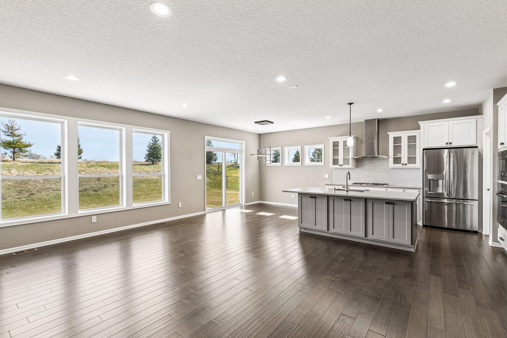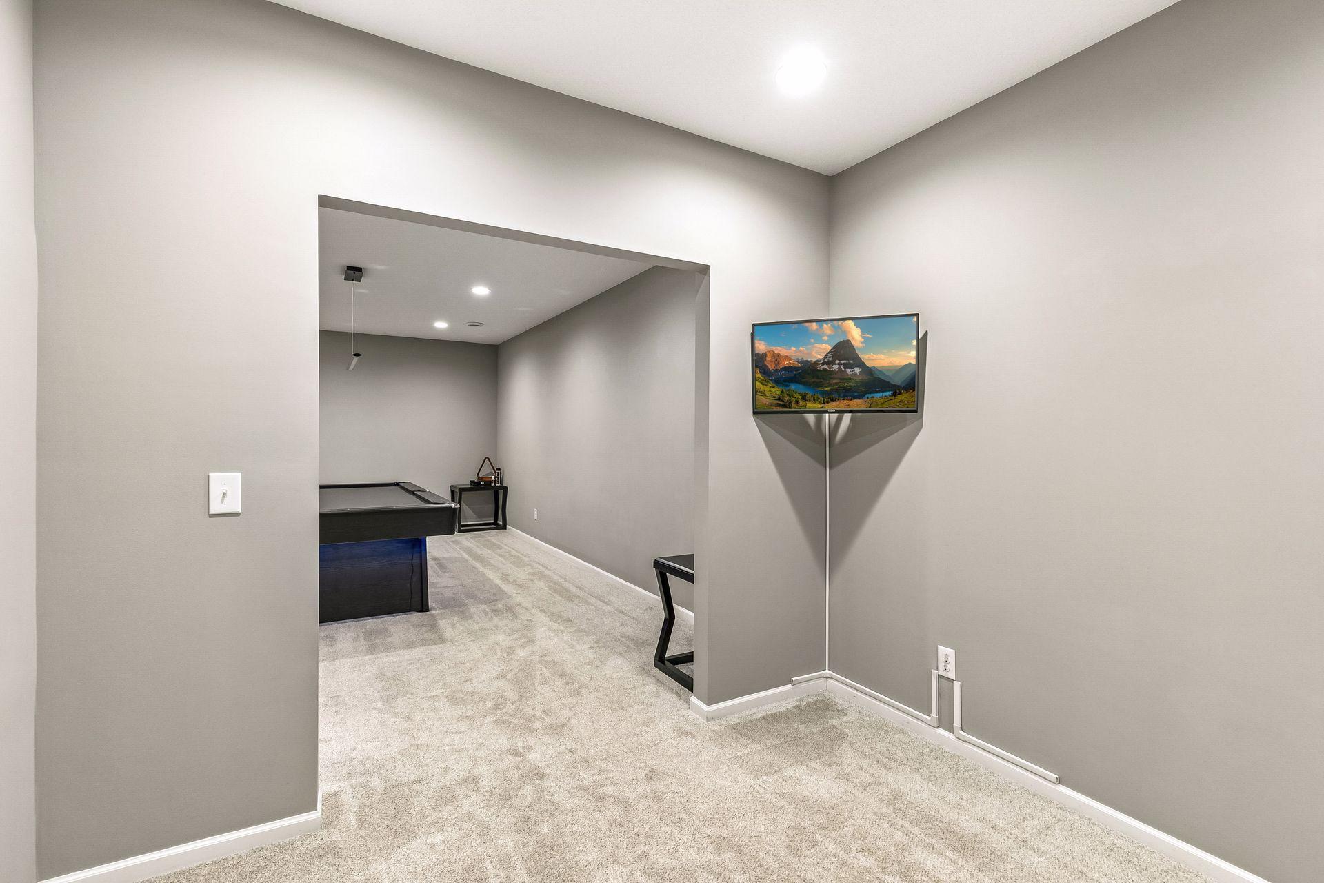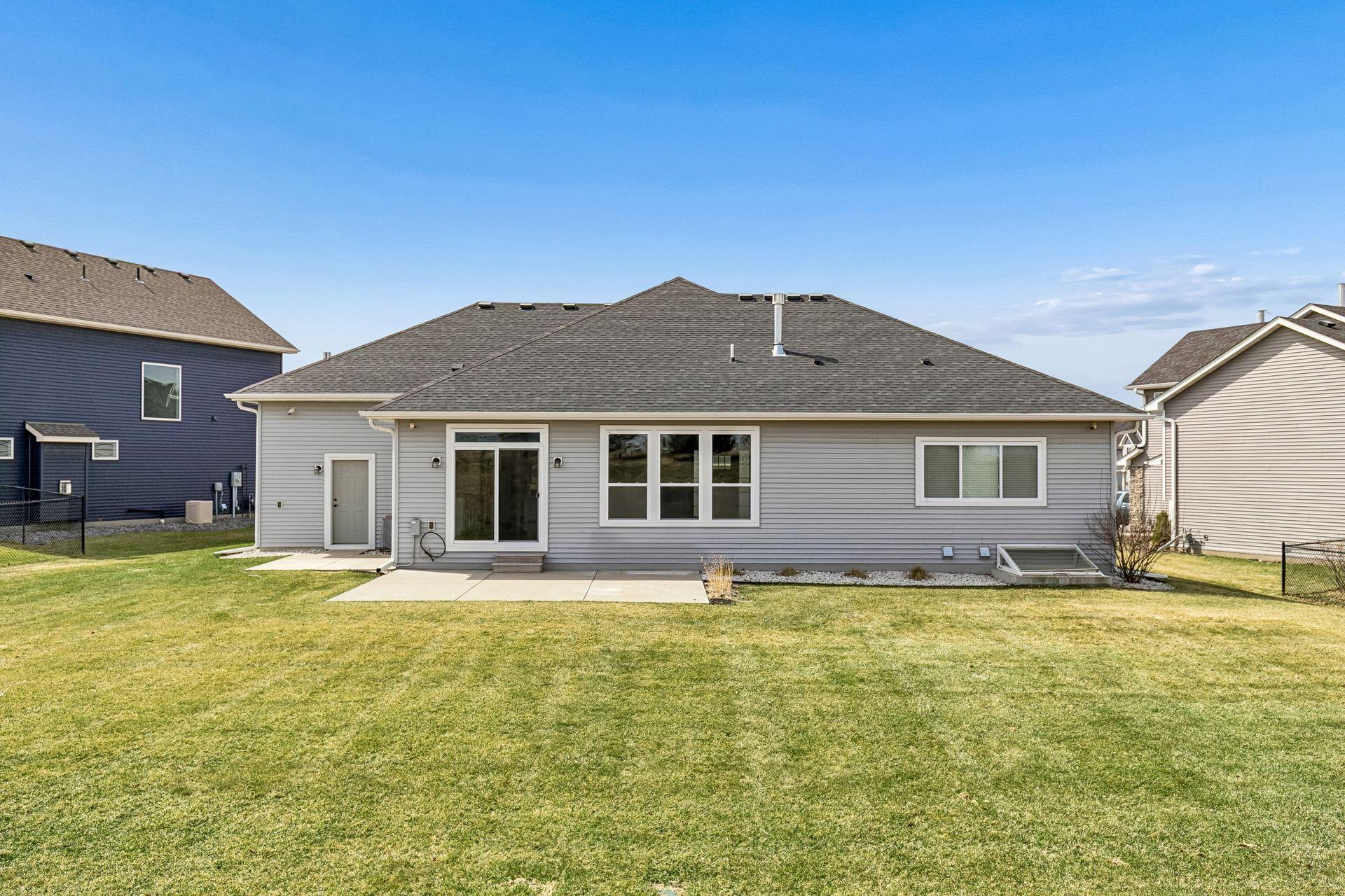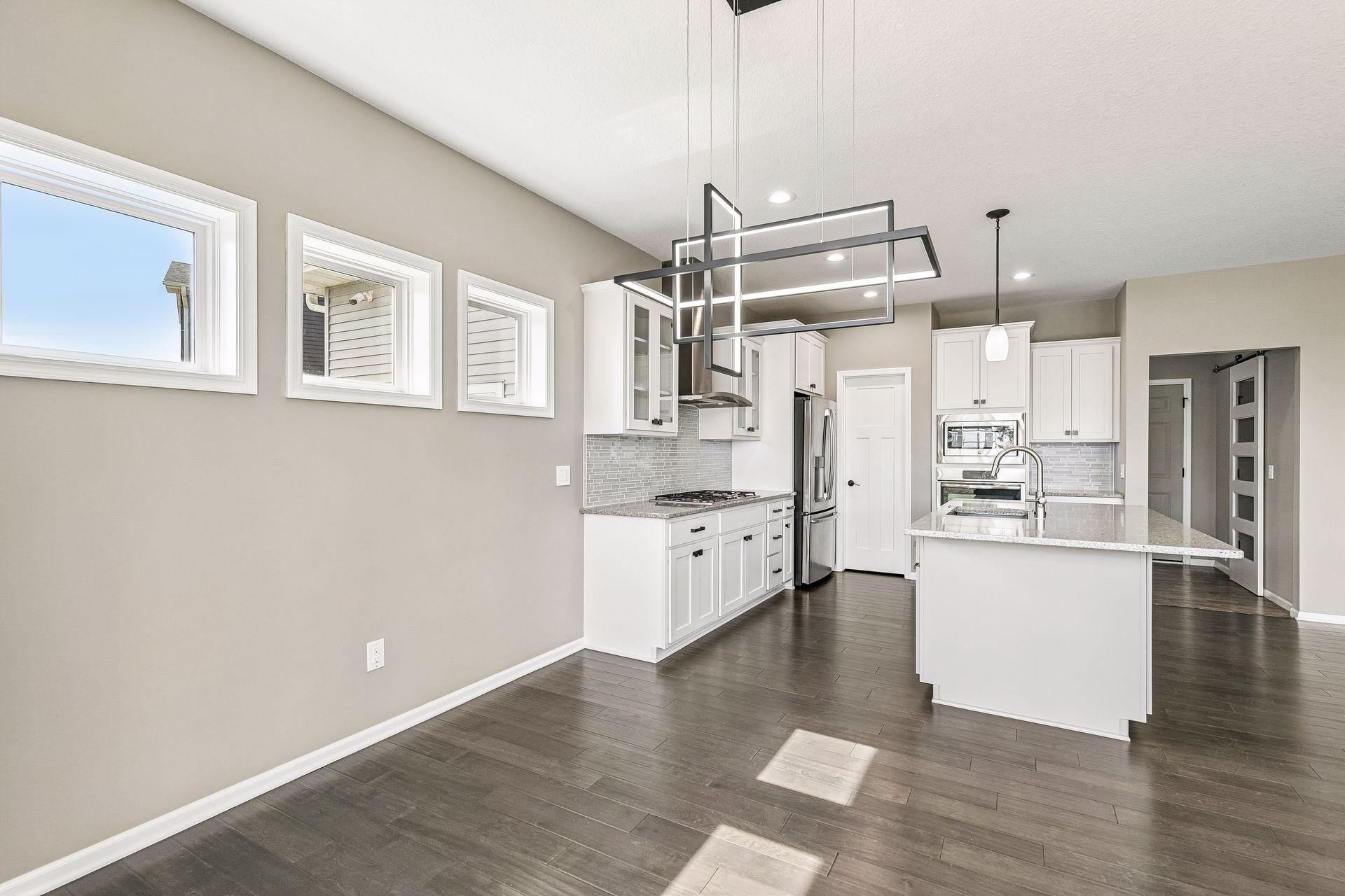 This beautifully designed 3,200 sq ft rambler, built in 2017, features 3 bedrooms and 3 baths with most living on the main level. The bright, open layout includes engineered wood floors, a chef’s kitchen with island seating, stone countertops, glass upper cabinets, and a walk-in pantry, plus a cozy fireplace. The main suite offers vaulted ceilings and a spa-like bath with dual sinks and a multi-zone shower. Enjoy a finished lower-level entertainment space with wet bar and wine fridge, a fully equipped laundry room, built-ins throughout, and a 3-car garage with epoxy floors. All set on a spacious, open backyard perfect for relaxing or entertaining.