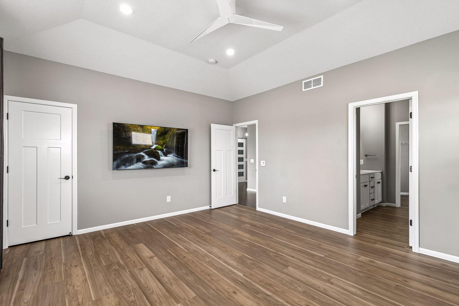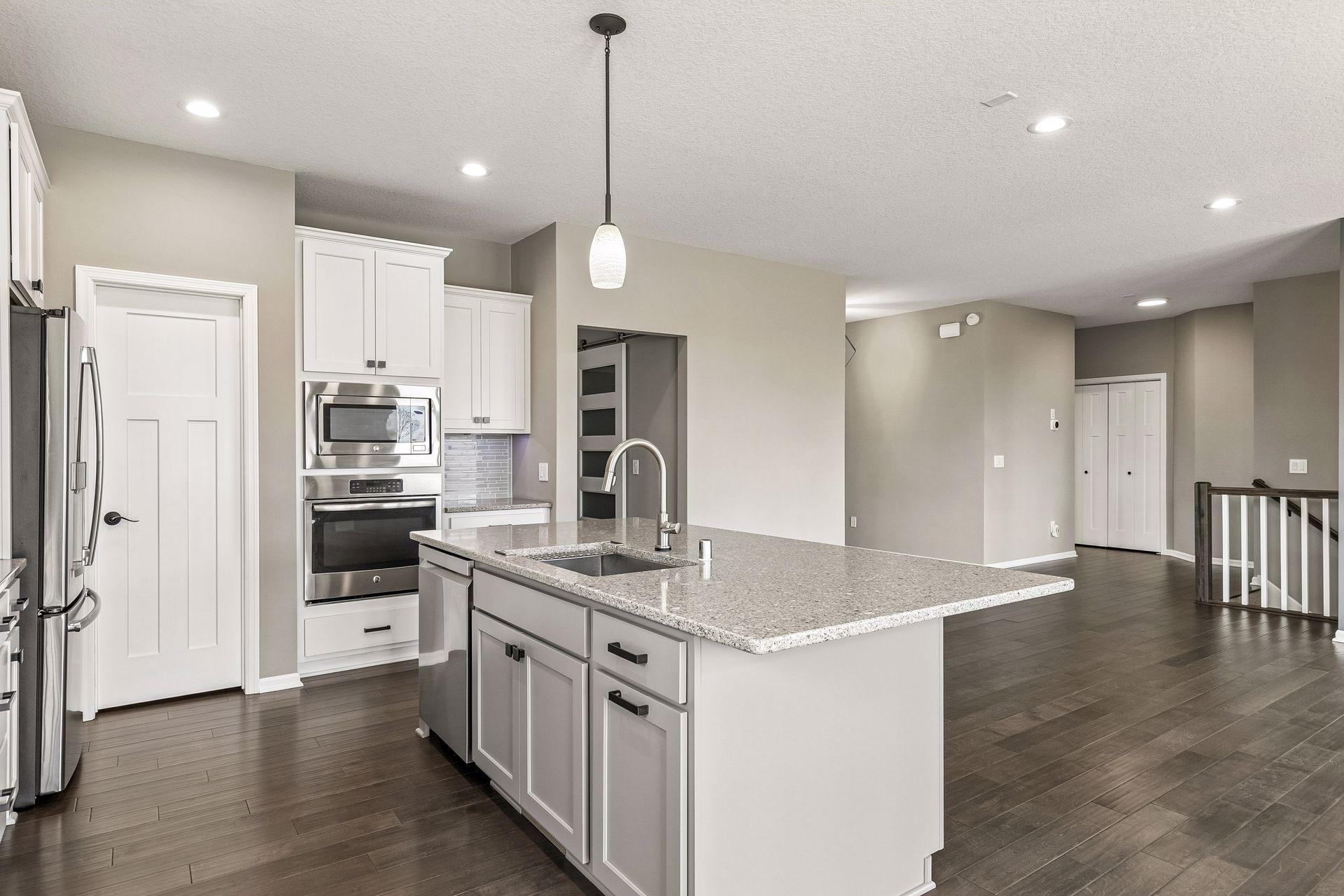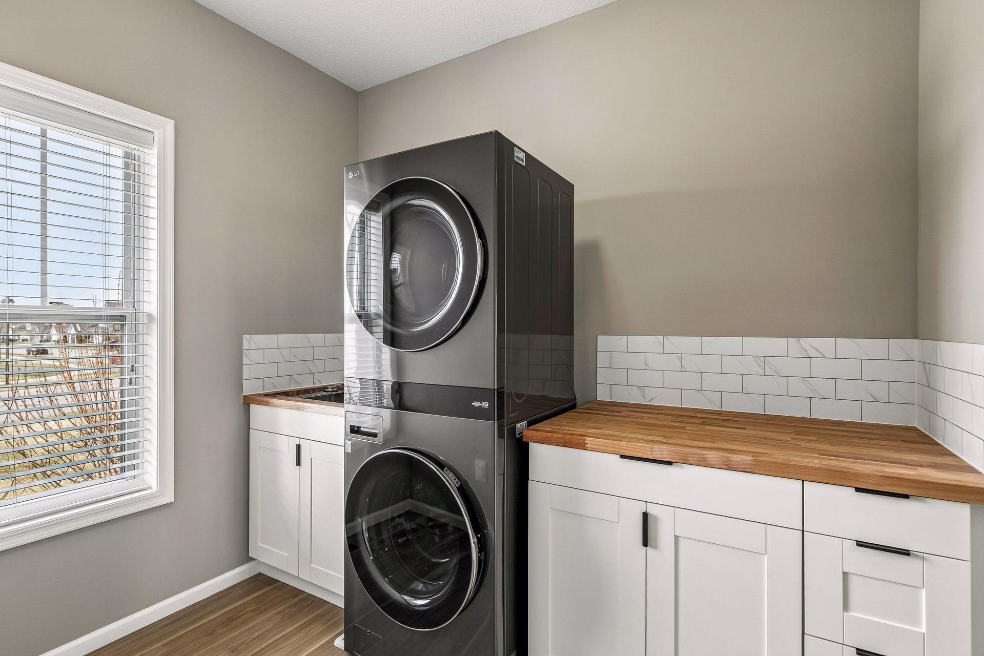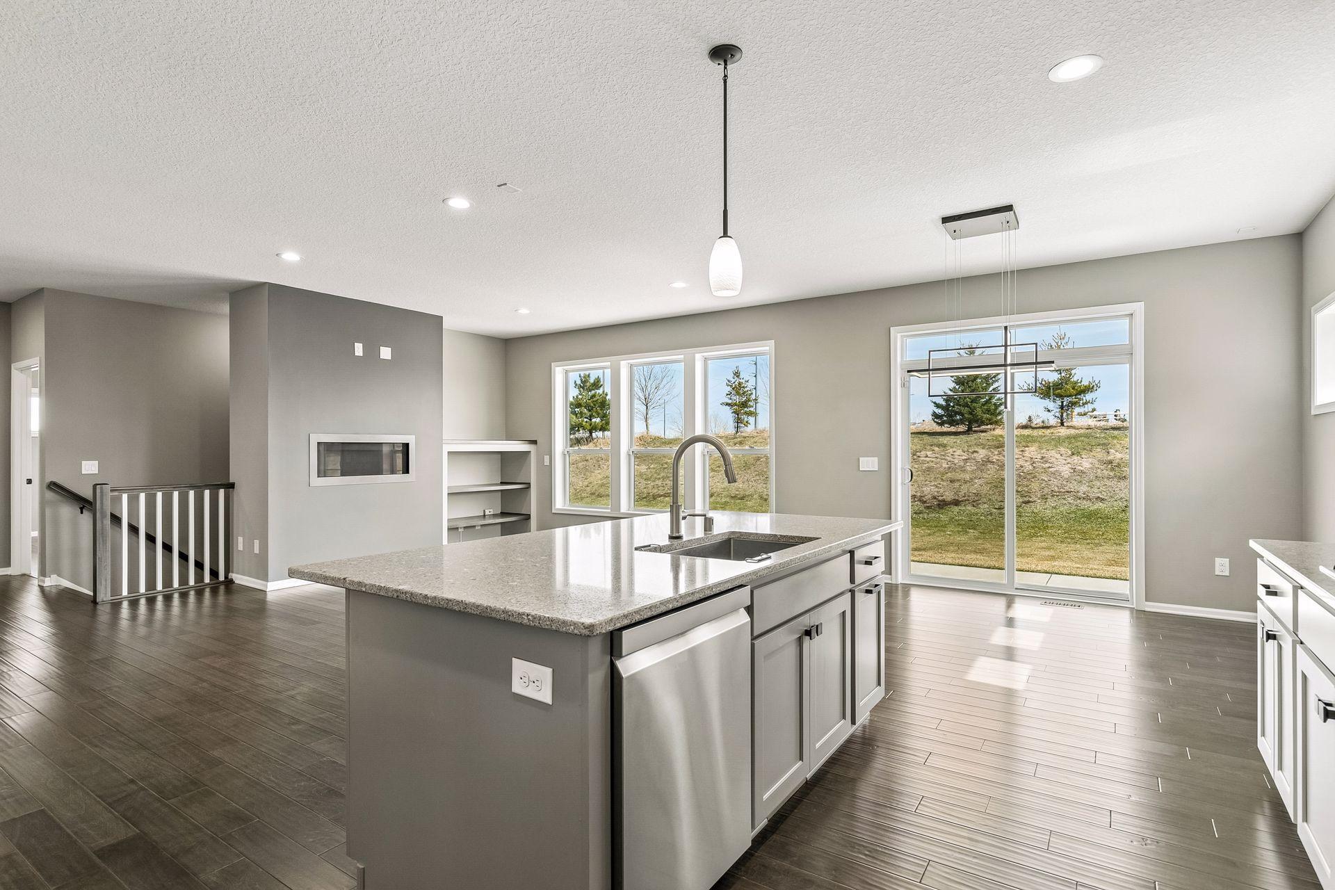 This beautifully designed 3,200 sq ft rambler, built in 2017, features 3 bedrooms and 3 baths with most living on the main level. The bright, open layout includes engineered wood floors, a chef’s kitchen with island seating, stone countertops, glass upper cabinets, and a walk-in pantry, plus a cozy fireplace. The main suite offers vaulted ceilings and a spa-like bath with dual sinks and a multi-zone shower. Enjoy a finished lower-level entertainment space with wet bar and wine fridge, a fully equipped laundry room, built-ins throughout, and a 3-car garage with epoxy floors. All set on a spacious, open backyard perfect for relaxing or entertaining.