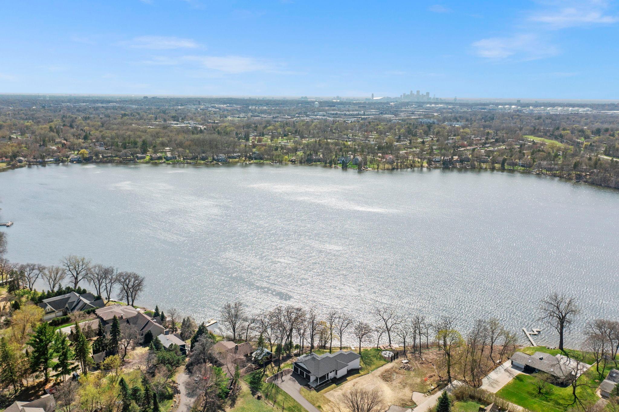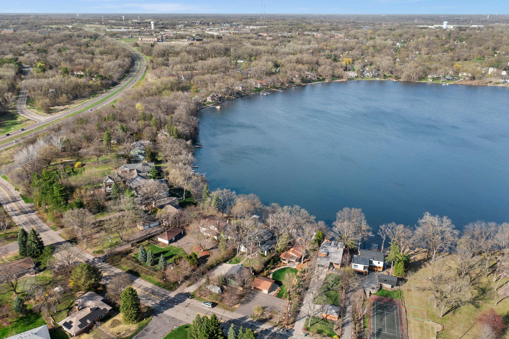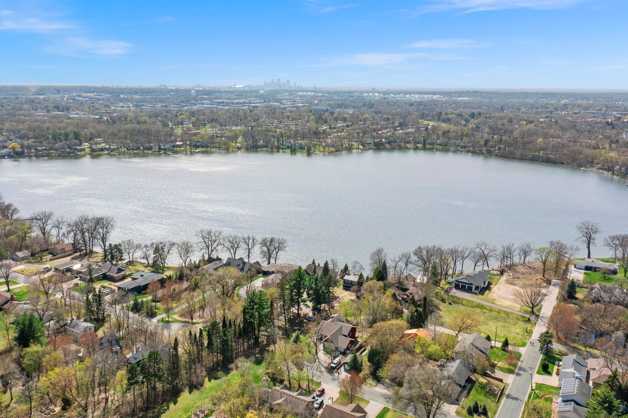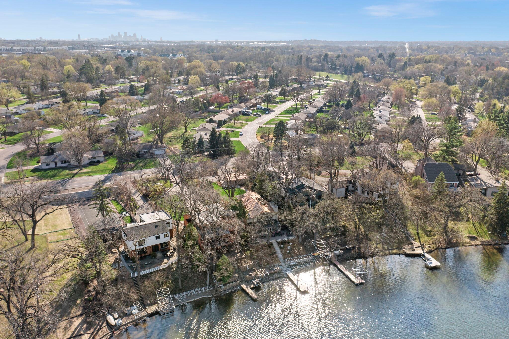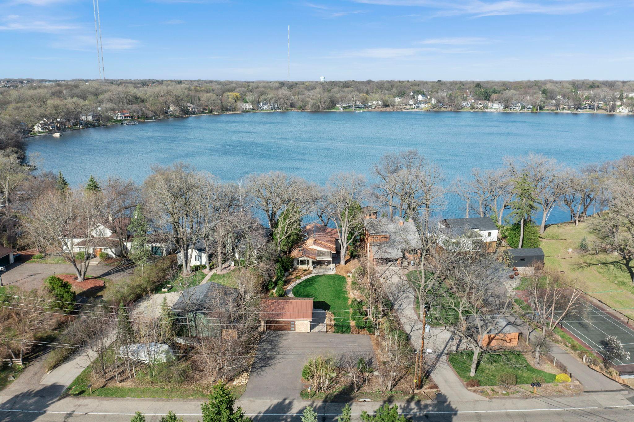 Stunning mid-century rambler on Lake Josephine—an exceptionally rare opportunity in the sought-after 621 school district. This 4-bedroom + office, 3-bath, 2+ car home is perfectly designed for effortless living, low maintenance, and unforgettable entertaining—an uncommon combination for lakefront property. Perched among the trees, the home offers breathtaking lake views from nearly every room, while still being just 12 minutes from both downtowns. Lovingly restored over time by a long-term owner, every detail reflects thoughtful upgrades and high-quality craftsmanship intended for forever living. Custom woodwork shines throughout, featuring hickory and original peg hardwood floors on the main level, along with a striking walnut mantle in the great room and office. The upper-level walnut bar includes separate wine and beverage fridges, while the lower level boasts a maple bar and custom walnut built-ins in the primary suite. The kitchen’s original pink metal cabinetry delivers iconic mid-century “Mad Men” charm, complemented by a versatile main floor layout and a dramatic full wall of Kasota stone. Two bedrooms and a beautifully designed ¾ bath complete the main level. The walkout lower level lives like anything but a basement, featuring a spacious family room, custom wet bar, and serene primary suite with panoramic lake views. The suite includes dual closets and a spa-like bath with custom tilework, steam shower, soaking tub, and dual vanities. A fourth bedroom, additional ¾ bath, laundry room with custom dog shower, and workout/storage space complete the level. Major updates include a metal roof, updated windows, fully redone plumbing and electrical, Kinetico water filtration system, and radon mitigation. The heated, insulated, and finished garage features custom epoxy floors. Outdoors, over $250K has been invested in professionally designed landscaping, including custom stonework, new driveway, metal fencing with four gates, paver walkways, patio, lakeside deck, putting green, and extensive low-voltage lighting. An attached storage hut provides ample space for all your lake gear. This is a one-of-a-kind property that truly has it all.