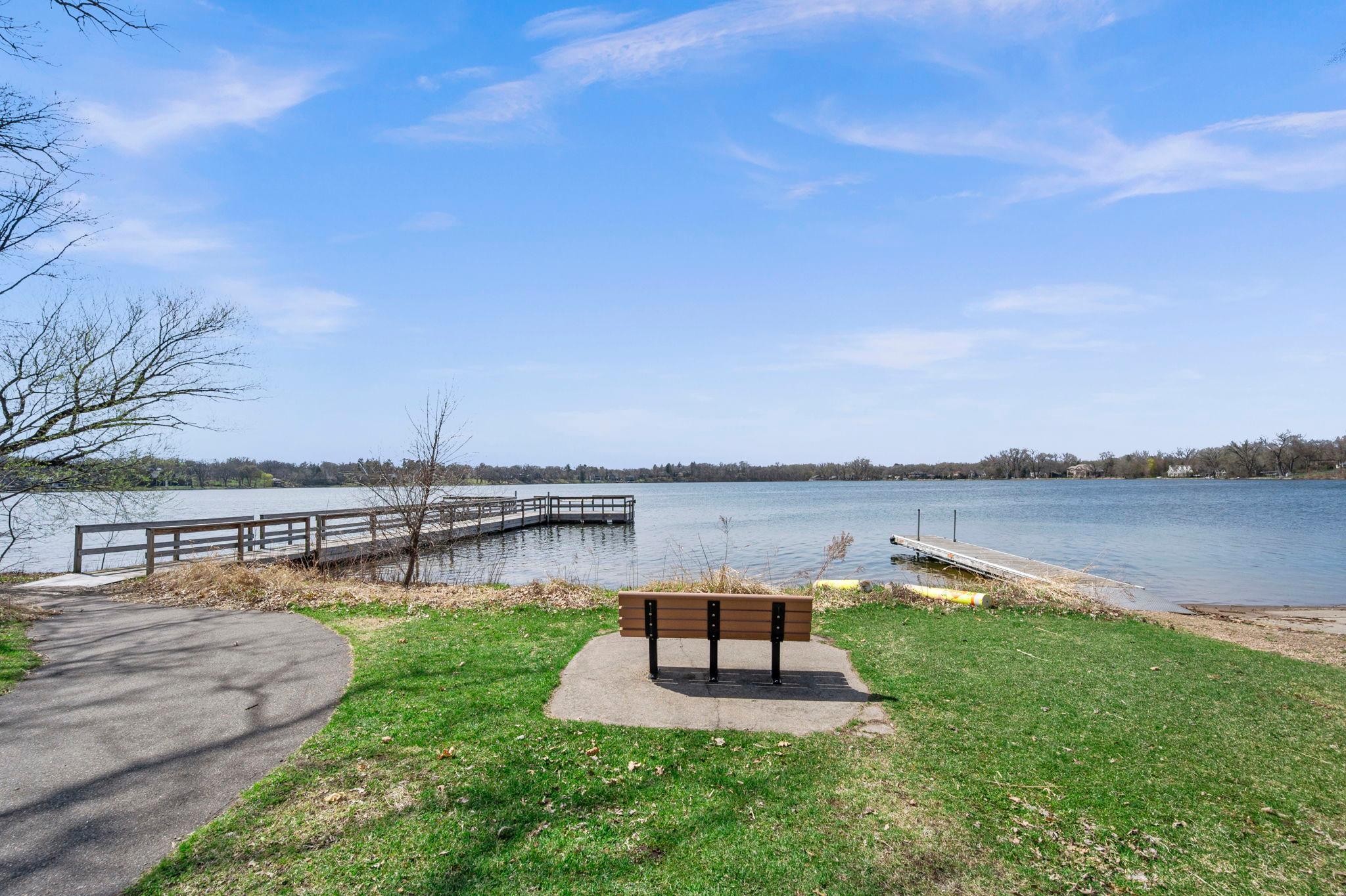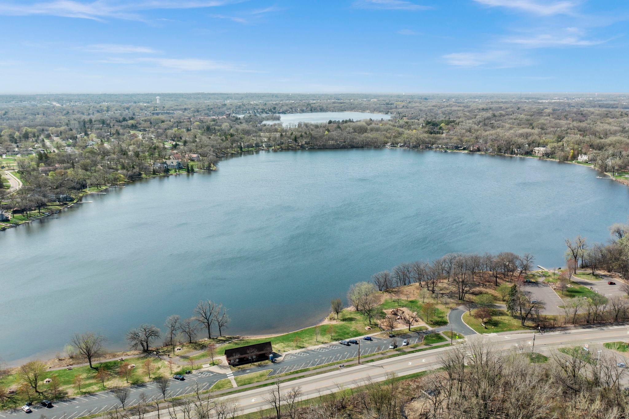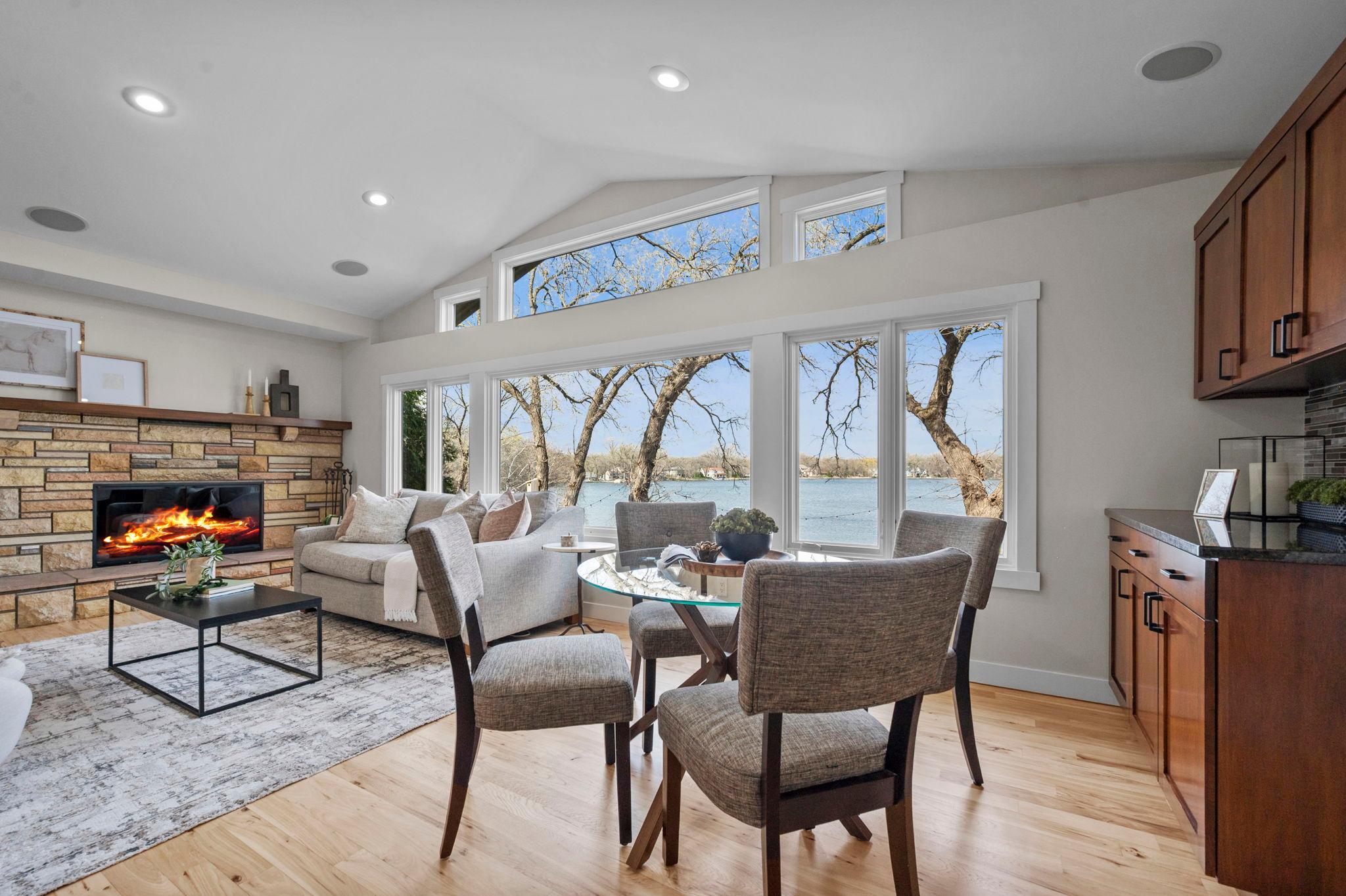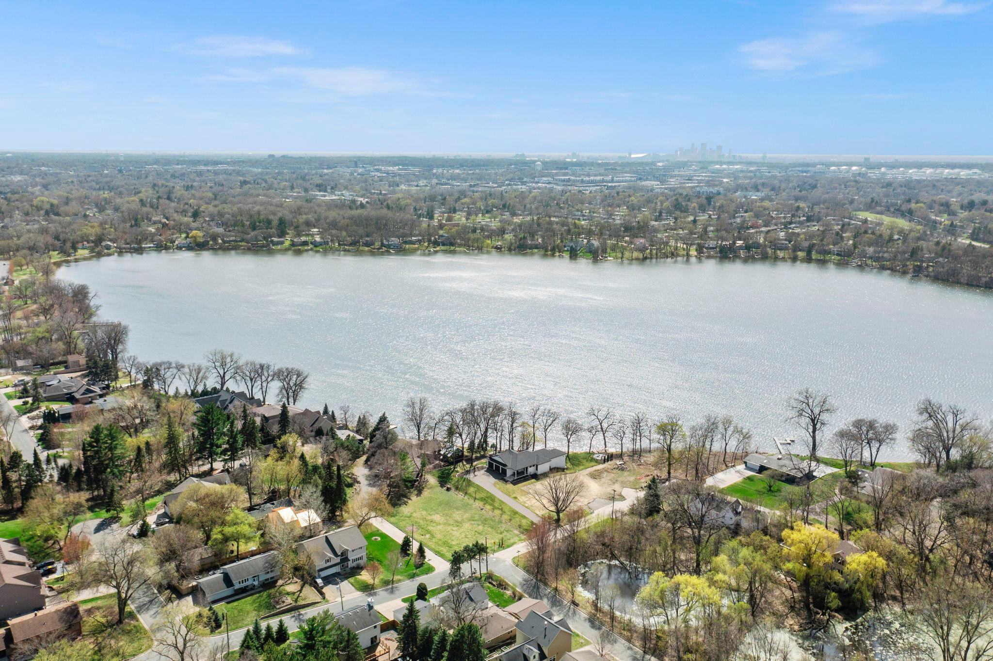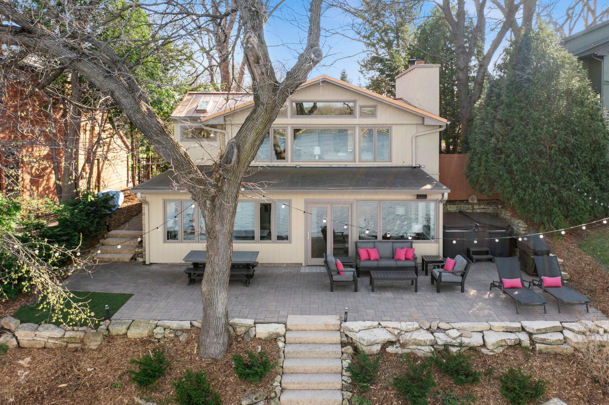 Stunning mid-century rambler on Lake Josephine—an exceptionally rare opportunity in the sought-after 621 school district. This 4-bedroom + office, 3-bath, 2+ car home is perfectly designed for effortless living, low maintenance, and unforgettable entertaining—an uncommon combination for lakefront property. Perched among the trees, the home offers breathtaking lake views from nearly every room, while still being just 12 minutes from both downtowns. Lovingly restored over time by a long-term owner, every detail reflects thoughtful upgrades and high-quality craftsmanship intended for forever living. Custom woodwork shines throughout, featuring hickory and original peg hardwood floors on the main level, along with a striking walnut mantle in the great room and office. The upper-level walnut bar includes separate wine and beverage fridges, while the lower level boasts a maple bar and custom walnut built-ins in the primary suite. The kitchen’s original pink metal cabinetry delivers iconic mid-century “Mad Men” charm, complemented by a versatile main floor layout and a dramatic full wall of Kasota stone. Two bedrooms and a beautifully designed ¾ bath complete the main level. The walkout lower level lives like anything but a basement, featuring a spacious family room, custom wet bar, and serene primary suite with panoramic lake views. The suite includes dual closets and a spa-like bath with custom tilework, steam shower, soaking tub, and dual vanities. A fourth bedroom, additional ¾ bath, laundry room with custom dog shower, and workout/storage space complete the level. Major updates include a metal roof, updated windows, fully redone plumbing and electrical, Kinetico water filtration system, and radon mitigation. The heated, insulated, and finished garage features custom epoxy floors. Outdoors, over $250K has been invested in professionally designed landscaping, including custom stonework, new driveway, metal fencing with four gates, paver walkways, patio, lakeside deck, putting green, and extensive low-voltage lighting. An attached storage hut provides ample space for all your lake gear. This is a one-of-a-kind property that truly has it all.
