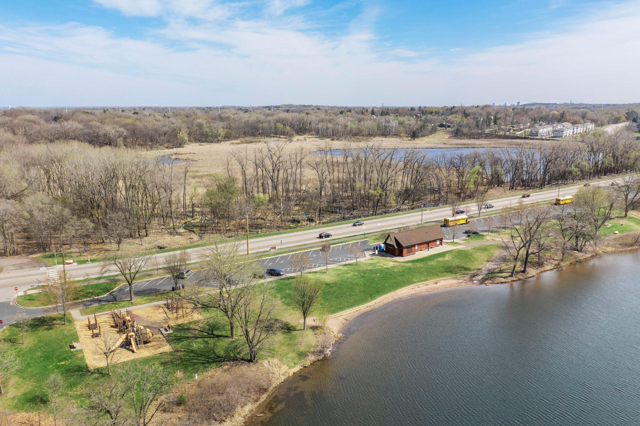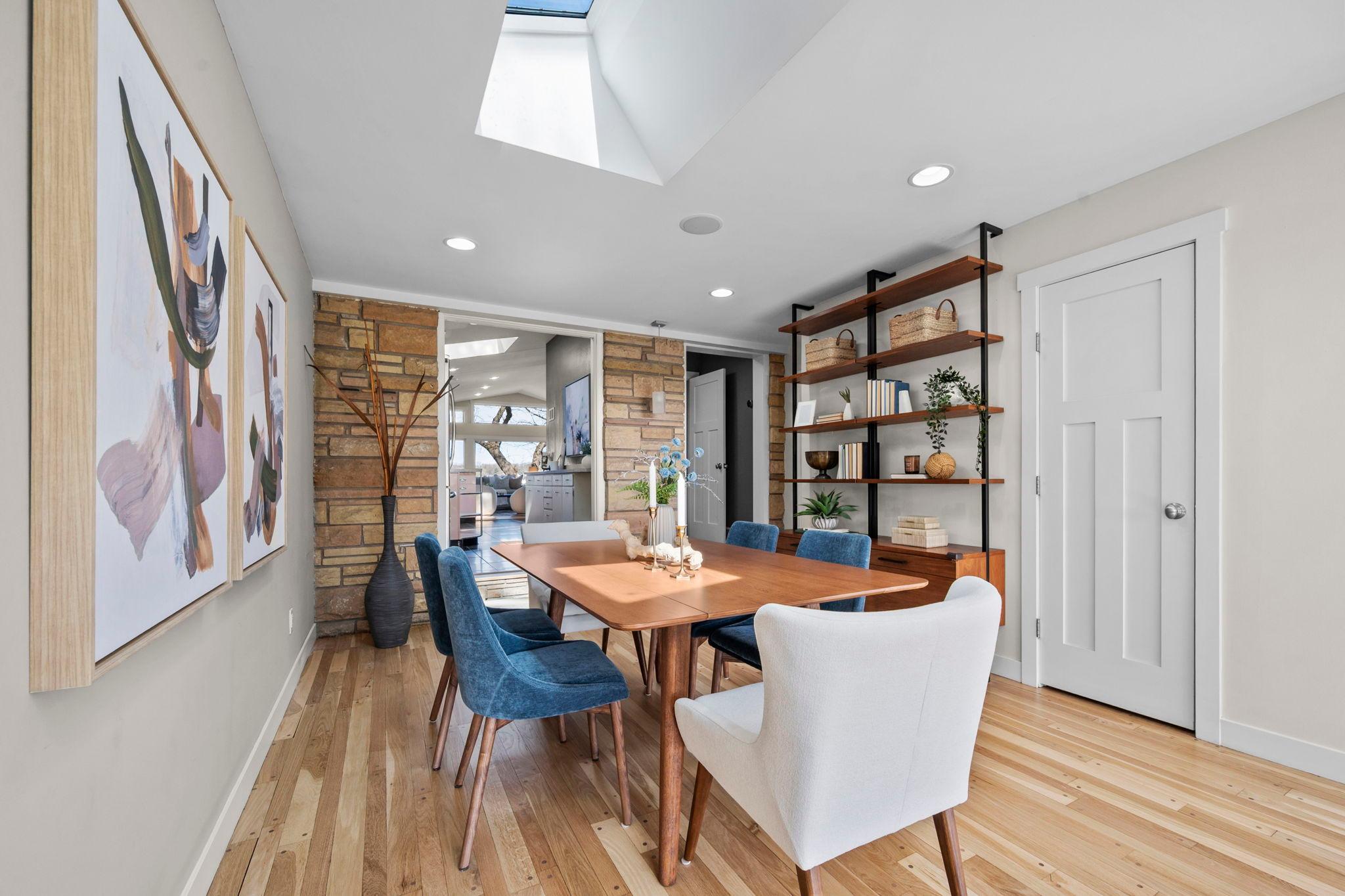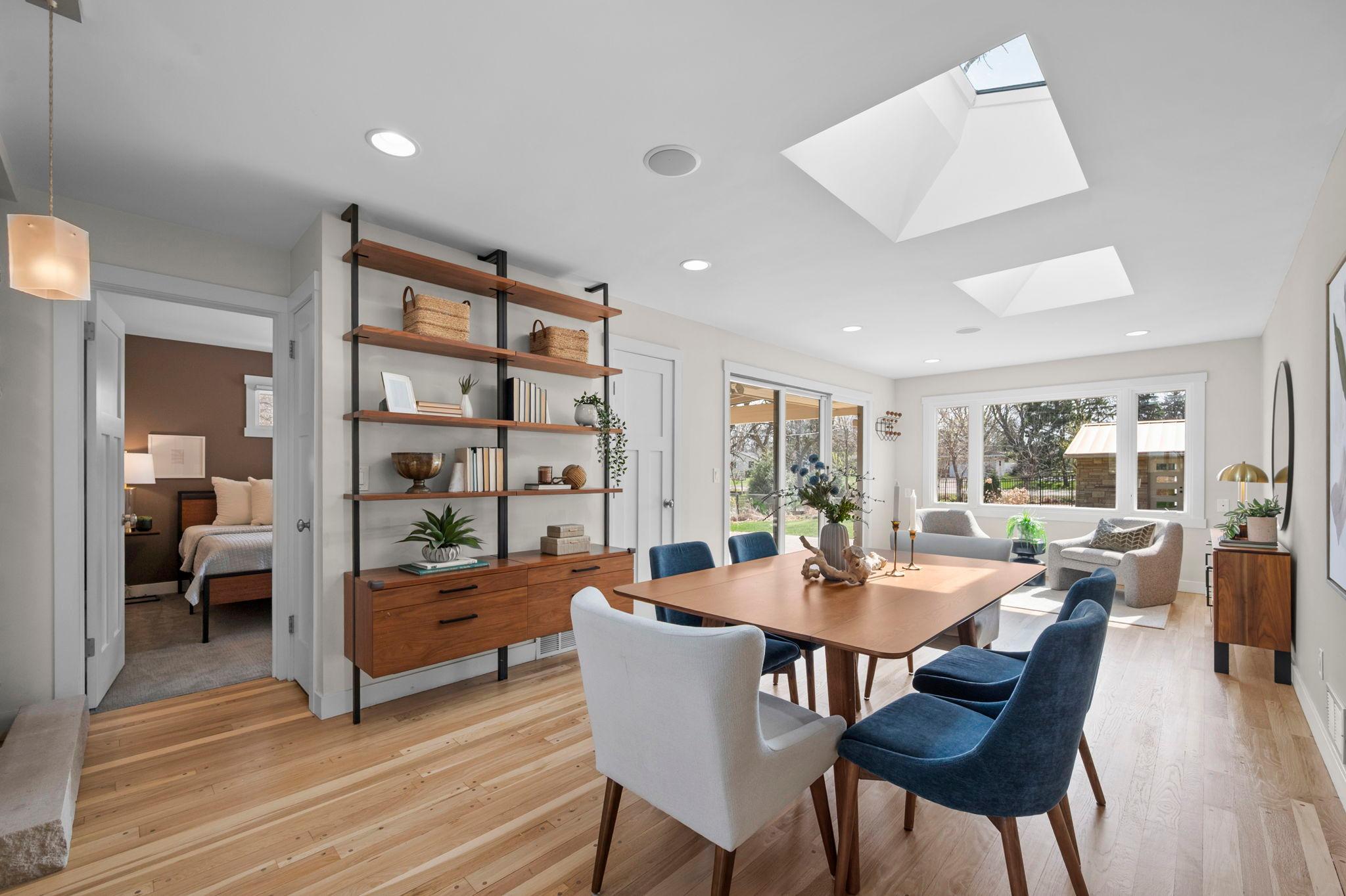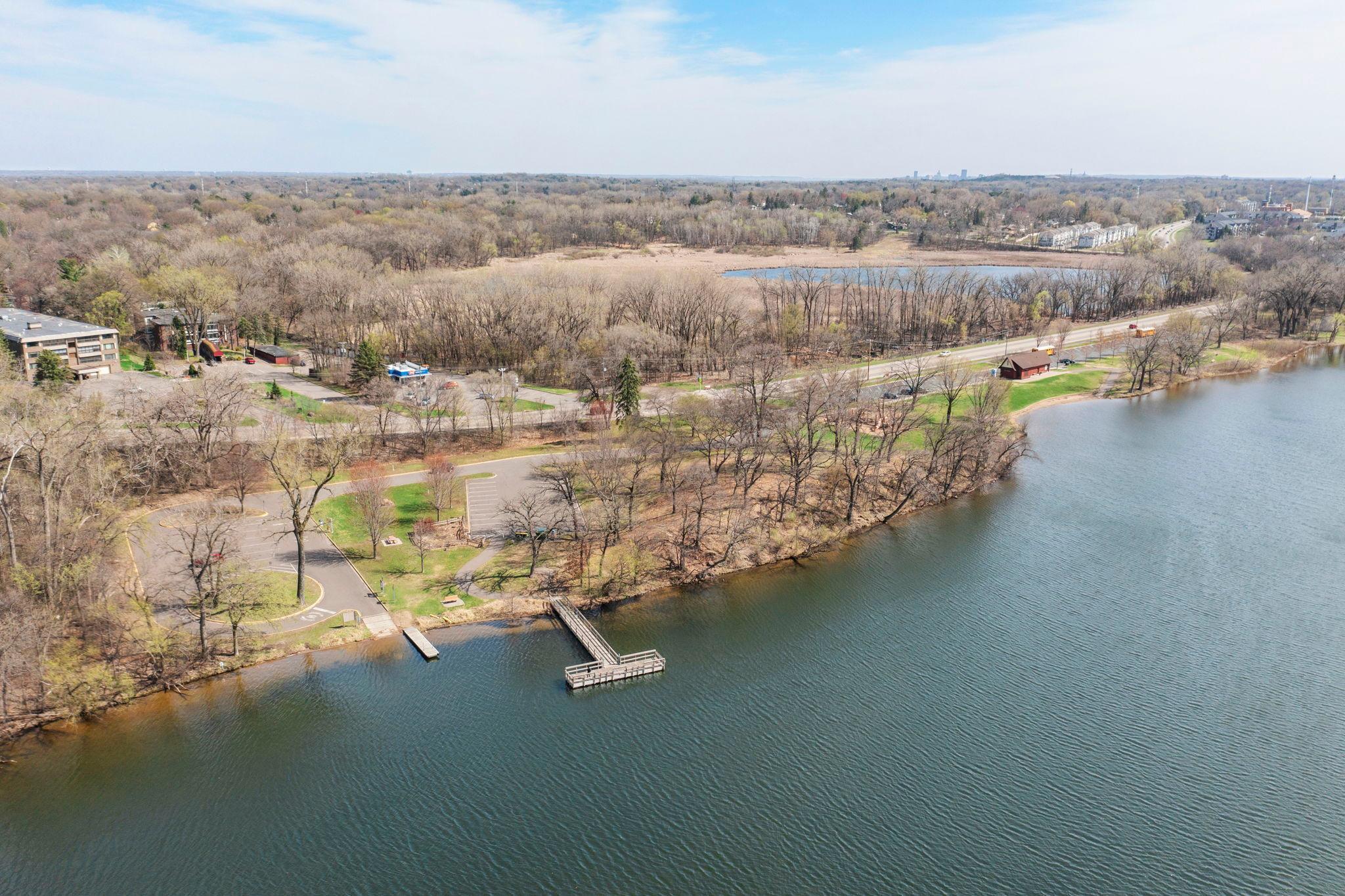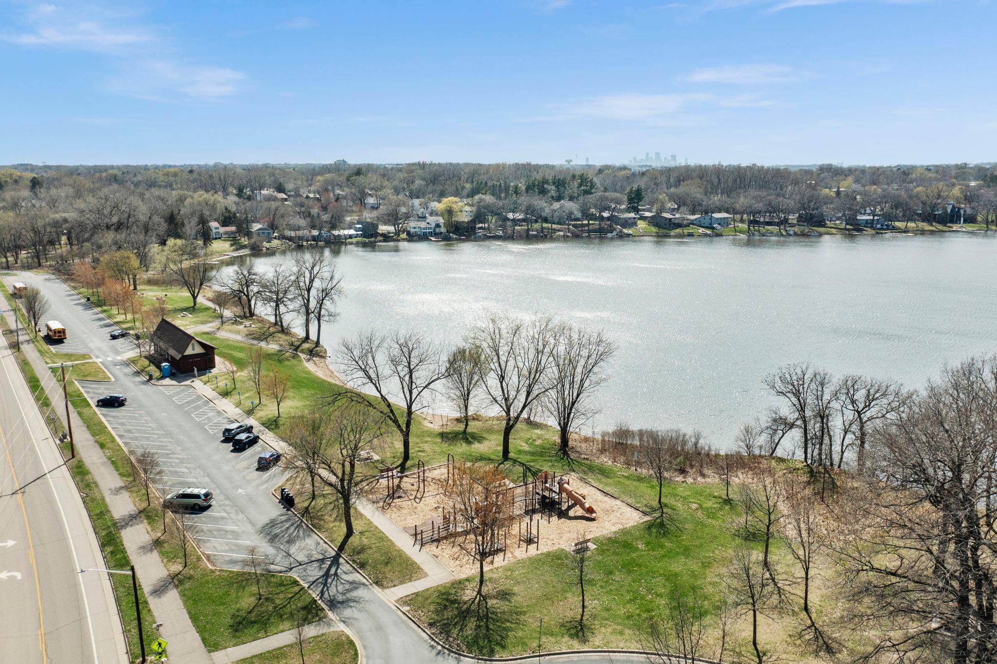 Stunning mid-century rambler on Lake Josephine—an exceptionally rare opportunity in the sought-after 621 school district. This 4-bedroom + office, 3-bath, 2+ car home is perfectly designed for effortless living, low maintenance, and unforgettable entertaining—an uncommon combination for lakefront property. Perched among the trees, the home offers breathtaking lake views from nearly every room, while still being just 12 minutes from both downtowns. Lovingly restored over time by a long-term owner, every detail reflects thoughtful upgrades and high-quality craftsmanship intended for forever living. Custom woodwork shines throughout, featuring hickory and original peg hardwood floors on the main level, along with a striking walnut mantle in the great room and office. The upper-level walnut bar includes separate wine and beverage fridges, while the lower level boasts a maple bar and custom walnut built-ins in the primary suite. The kitchen’s original pink metal cabinetry delivers iconic mid-century “Mad Men” charm, complemented by a versatile main floor layout and a dramatic full wall of Kasota stone. Two bedrooms and a beautifully designed ¾ bath complete the main level. The walkout lower level lives like anything but a basement, featuring a spacious family room, custom wet bar, and serene primary suite with panoramic lake views. The suite includes dual closets and a spa-like bath with custom tilework, steam shower, soaking tub, and dual vanities. A fourth bedroom, additional ¾ bath, laundry room with custom dog shower, and workout/storage space complete the level. Major updates include a metal roof, updated windows, fully redone plumbing and electrical, Kinetico water filtration system, and radon mitigation. The heated, insulated, and finished garage features custom epoxy floors. Outdoors, over $250K has been invested in professionally designed landscaping, including custom stonework, new driveway, metal fencing with four gates, paver walkways, patio, lakeside deck, putting green, and extensive low-voltage lighting. An attached storage hut provides ample space for all your lake gear. This is a one-of-a-kind property that truly has it all.