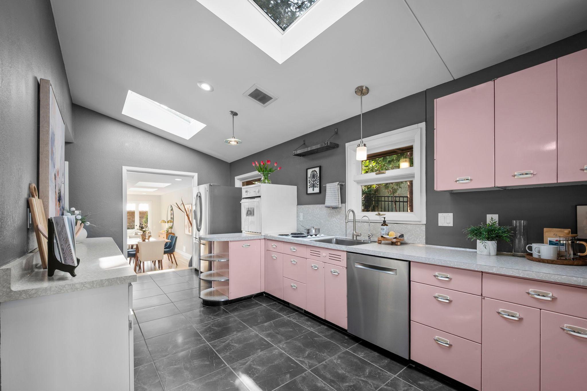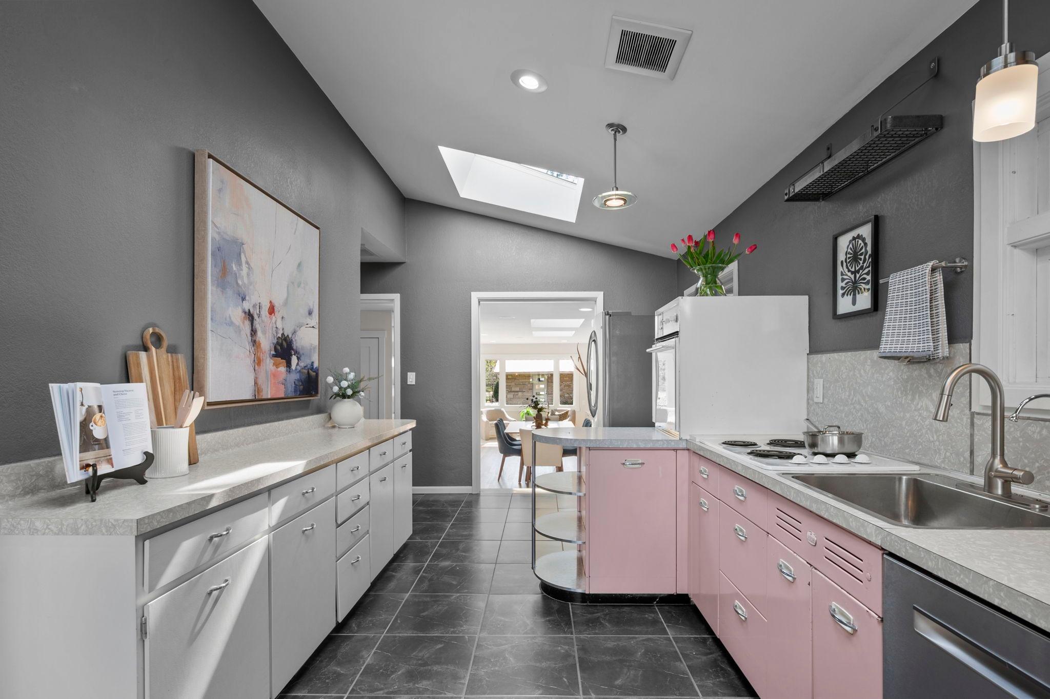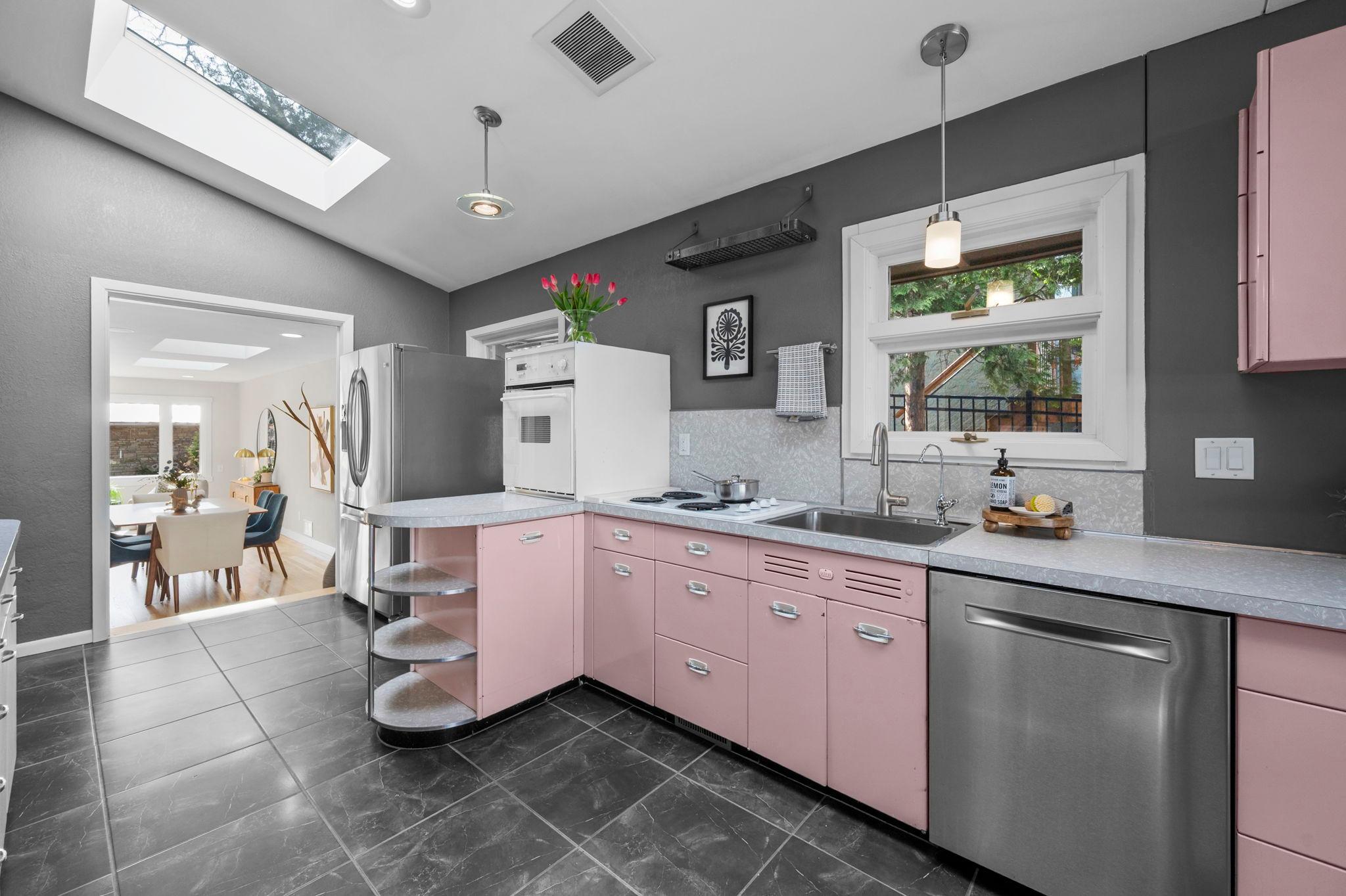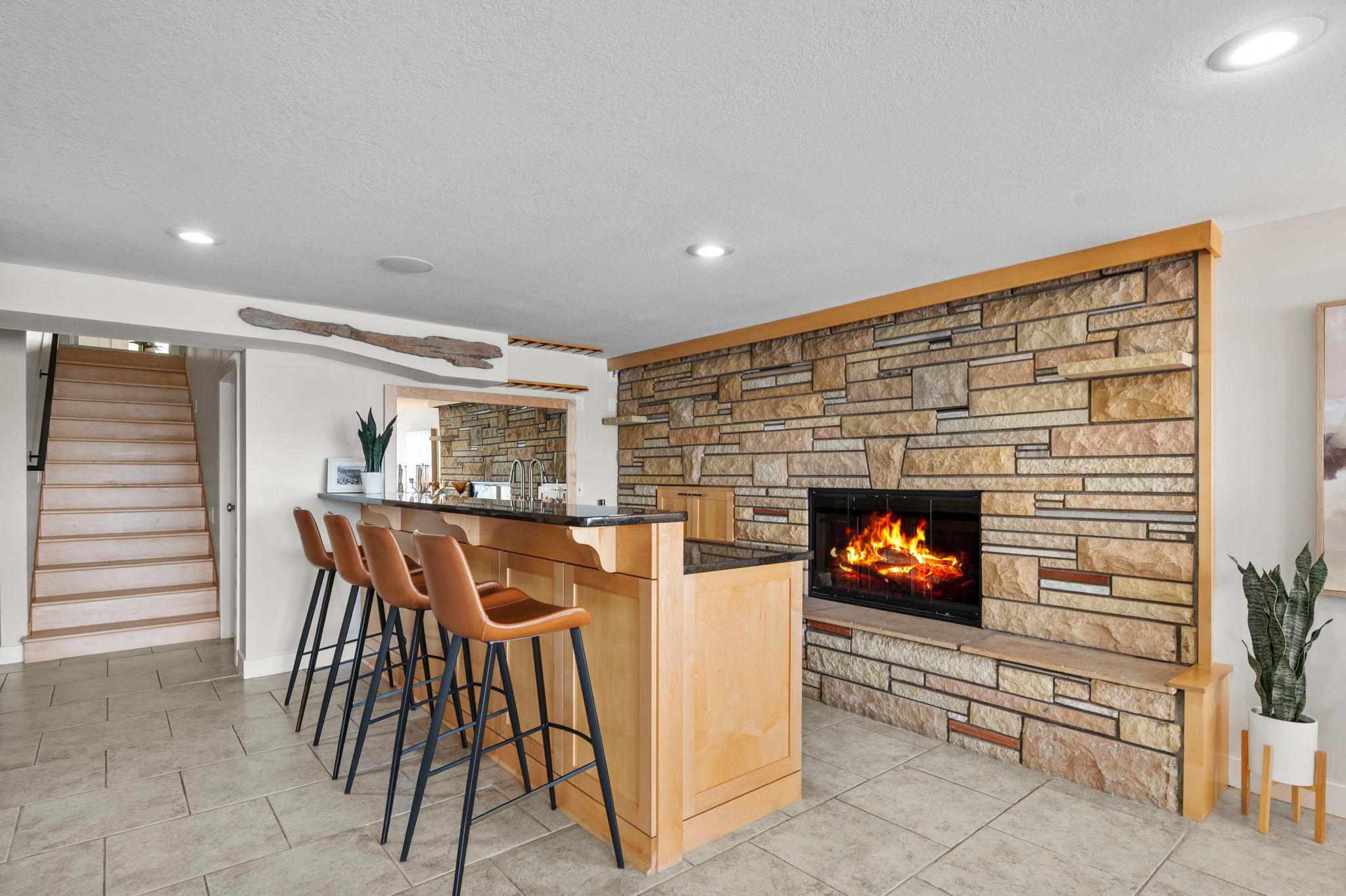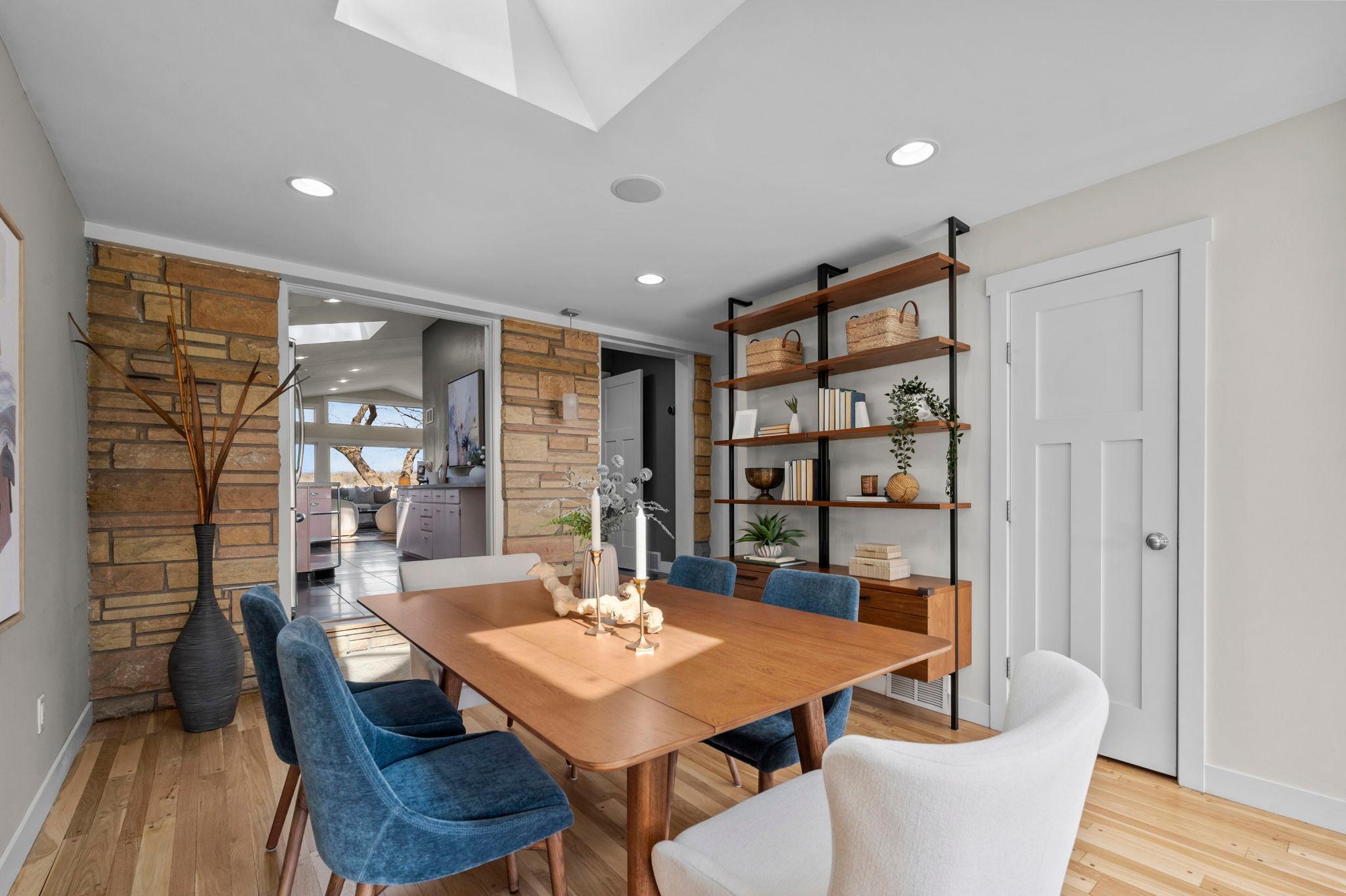 Stunning mid-century rambler on Lake Josephine—an exceptionally rare opportunity in the sought-after 621 school district. This 4-bedroom + office, 3-bath, 2+ car home is perfectly designed for effortless living, low maintenance, and unforgettable entertaining—an uncommon combination for lakefront property. Perched among the trees, the home offers breathtaking lake views from nearly every room, while still being just 12 minutes from both downtowns. Lovingly restored over time by a long-term owner, every detail reflects thoughtful upgrades and high-quality craftsmanship intended for forever living. Custom woodwork shines throughout, featuring hickory and original peg hardwood floors on the main level, along with a striking walnut mantle in the great room and office. The upper-level walnut bar includes separate wine and beverage fridges, while the lower level boasts a maple bar and custom walnut built-ins in the primary suite. The kitchen’s original pink metal cabinetry delivers iconic mid-century “Mad Men” charm, complemented by a versatile main floor layout and a dramatic full wall of Kasota stone. Two bedrooms and a beautifully designed ¾ bath complete the main level. The walkout lower level lives like anything but a basement, featuring a spacious family room, custom wet bar, and serene primary suite with panoramic lake views. The suite includes dual closets and a spa-like bath with custom tilework, steam shower, soaking tub, and dual vanities. A fourth bedroom, additional ¾ bath, laundry room with custom dog shower, and workout/storage space complete the level. Major updates include a metal roof, updated windows, fully redone plumbing and electrical, Kinetico water filtration system, and radon mitigation. The heated, insulated, and finished garage features custom epoxy floors. Outdoors, over $250K has been invested in professionally designed landscaping, including custom stonework, new driveway, metal fencing with four gates, paver walkways, patio, lakeside deck, putting green, and extensive low-voltage lighting. An attached storage hut provides ample space for all your lake gear. This is a one-of-a-kind property that truly has it all.