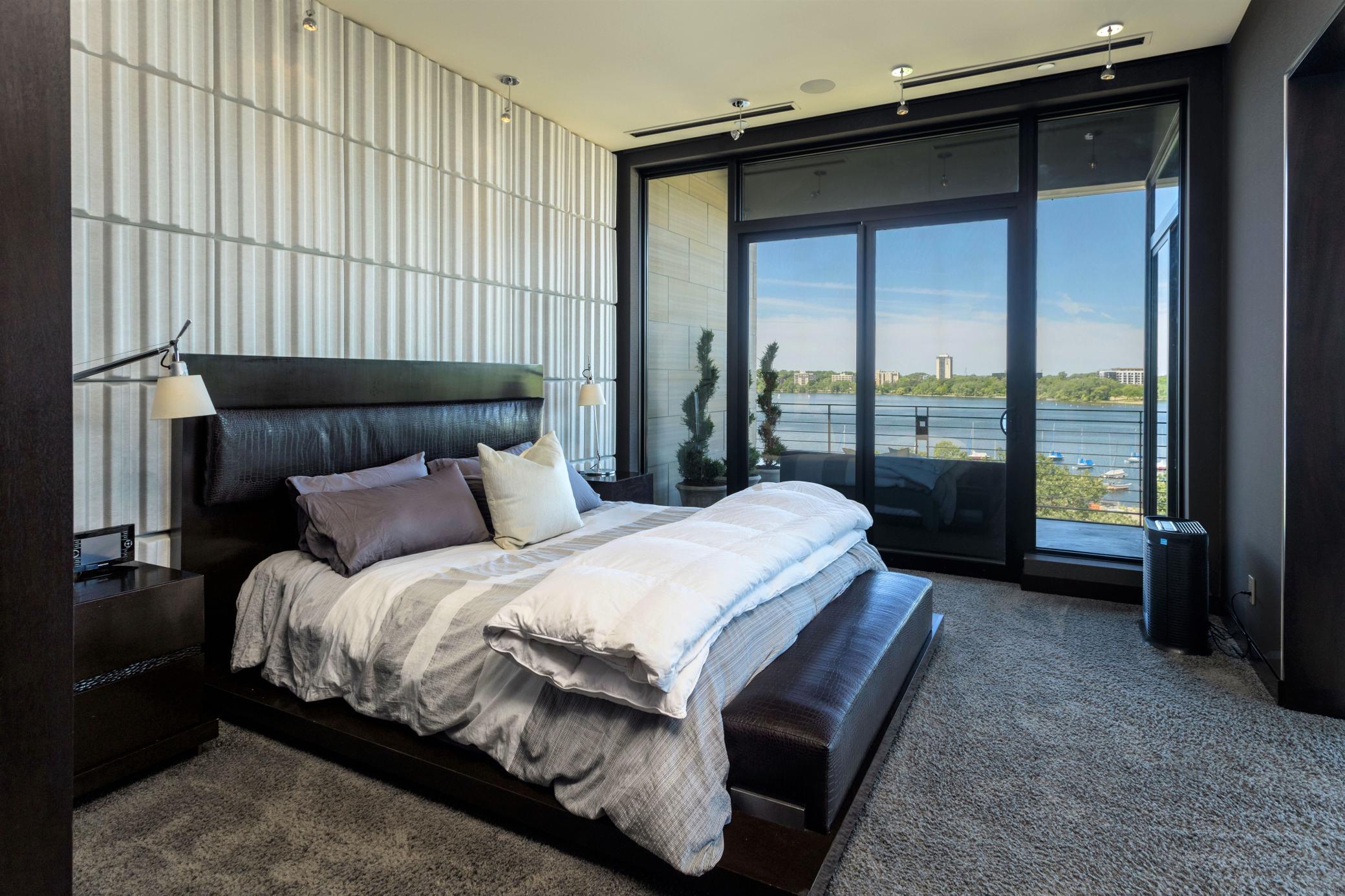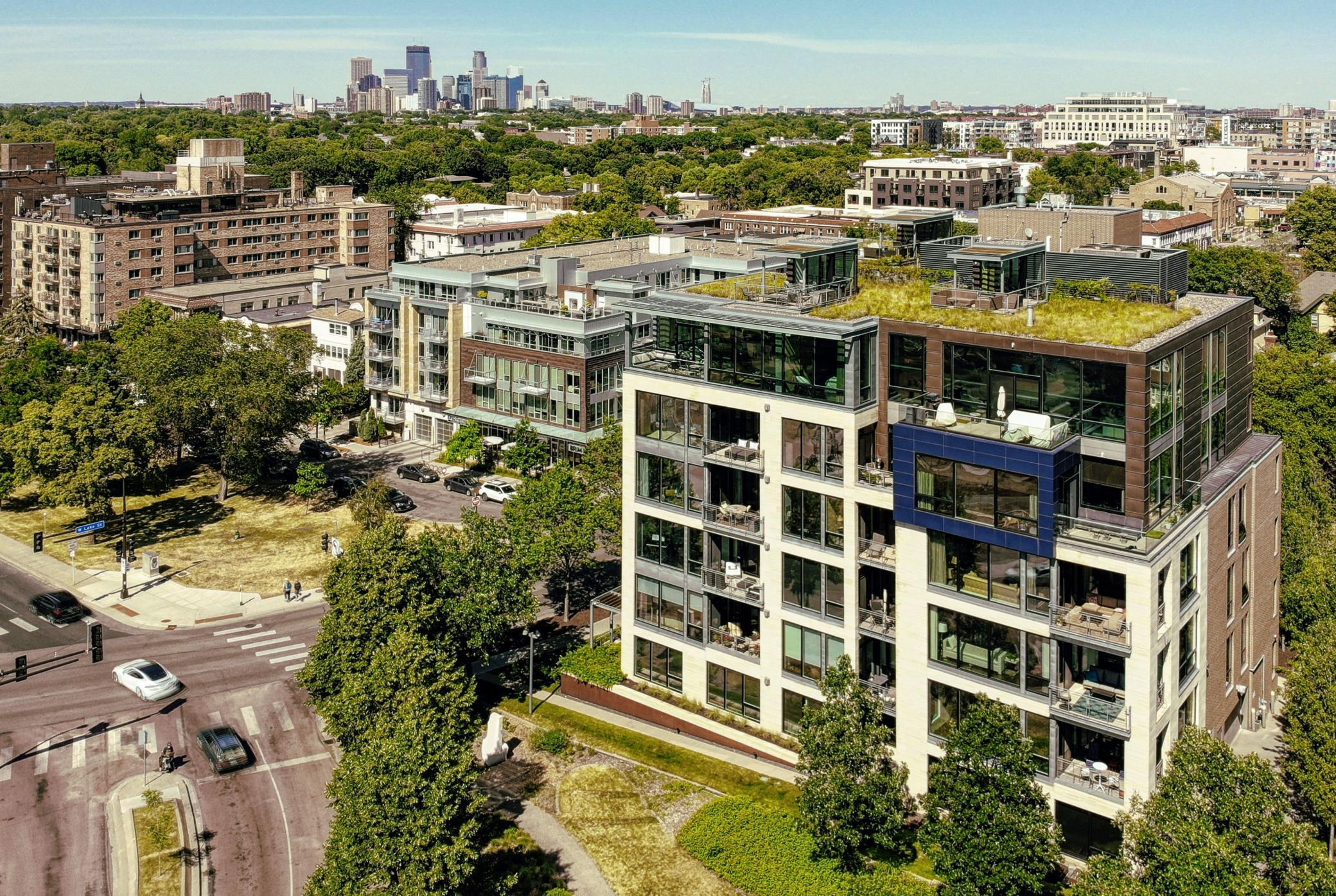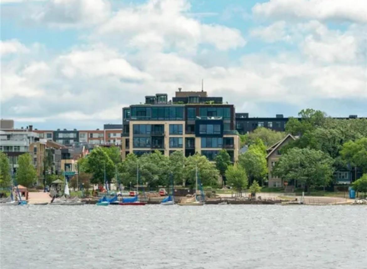 Experience unrivaled urban elegance in this custom-crafted corner residence at the iconic Edgewater. Wrapped in floor-to-ceiling glass, Unit #502 is a masterclass in transparency and light, offering a dual-aspect vantage point that captures both the serene waters of Bde Maka Ska and the shimmering Minneapolis skyline.