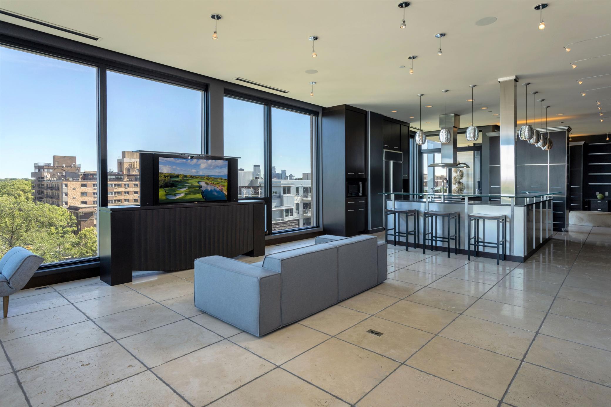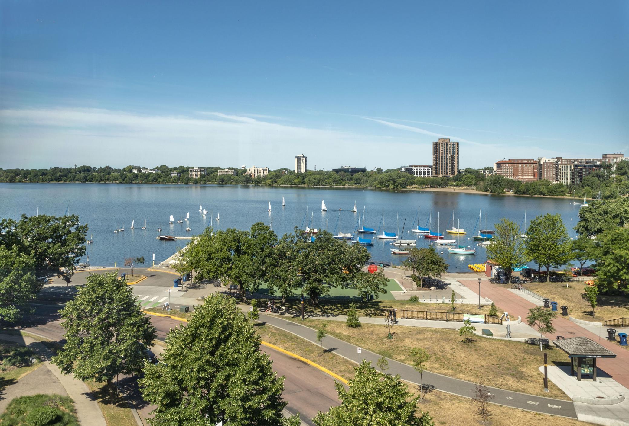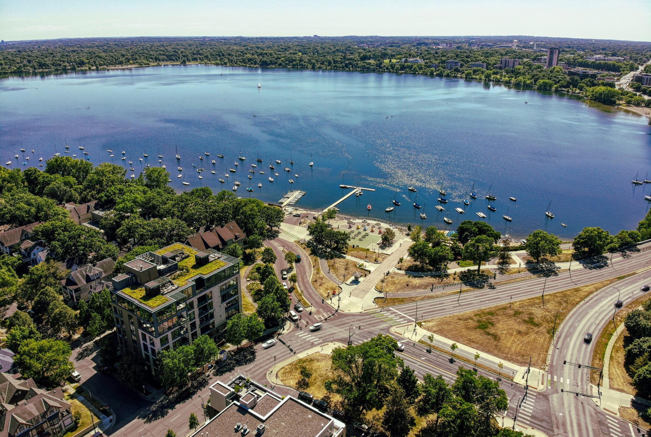 Experience unrivaled urban elegance in this custom-crafted corner residence at the iconic Edgewater. Wrapped in floor-to-ceiling glass, Unit #502 is a masterclass in transparency and light, offering a dual-aspect vantage point that captures both the serene waters of Bde Maka Ska and the shimmering Minneapolis skyline.