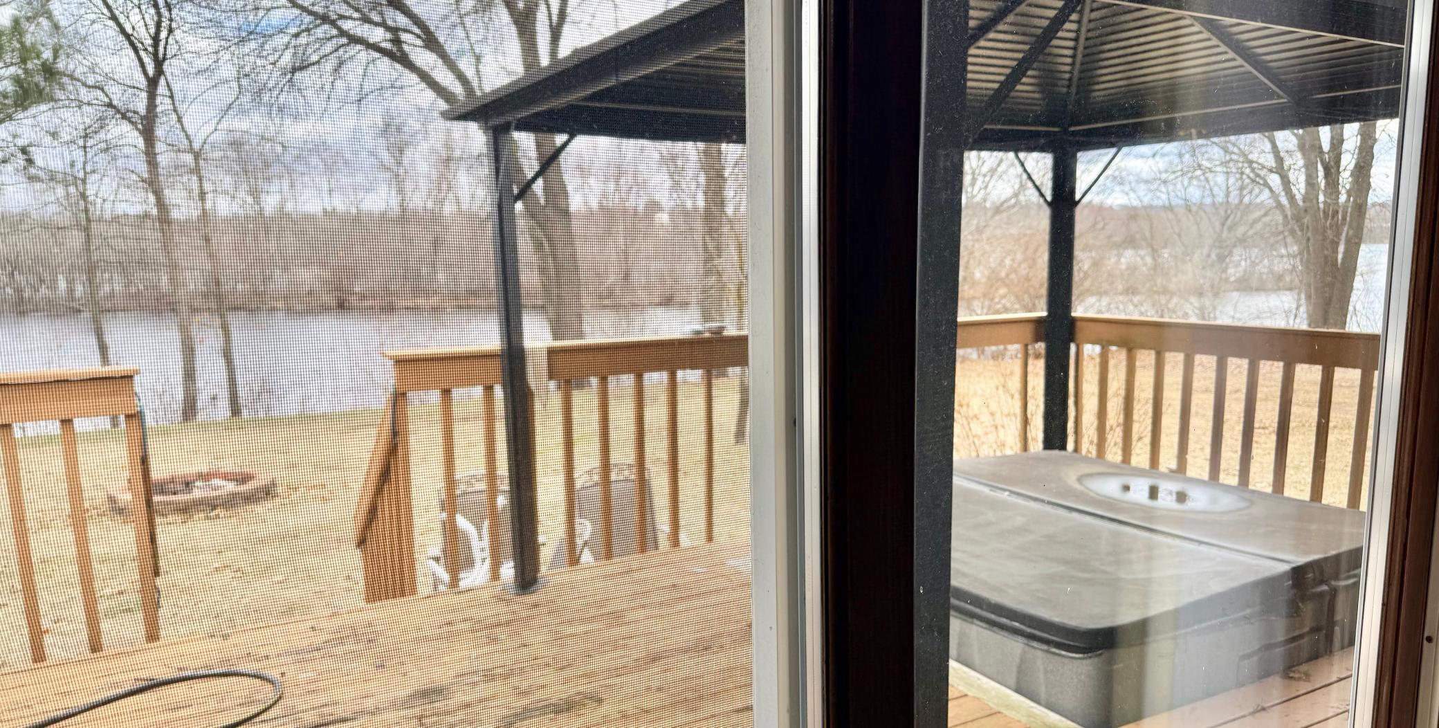 The Residence: A low-maintenance ranch style home situated on .93 acres with 116' of frontage, featuring a flat yard, hot tub, and fire pit.