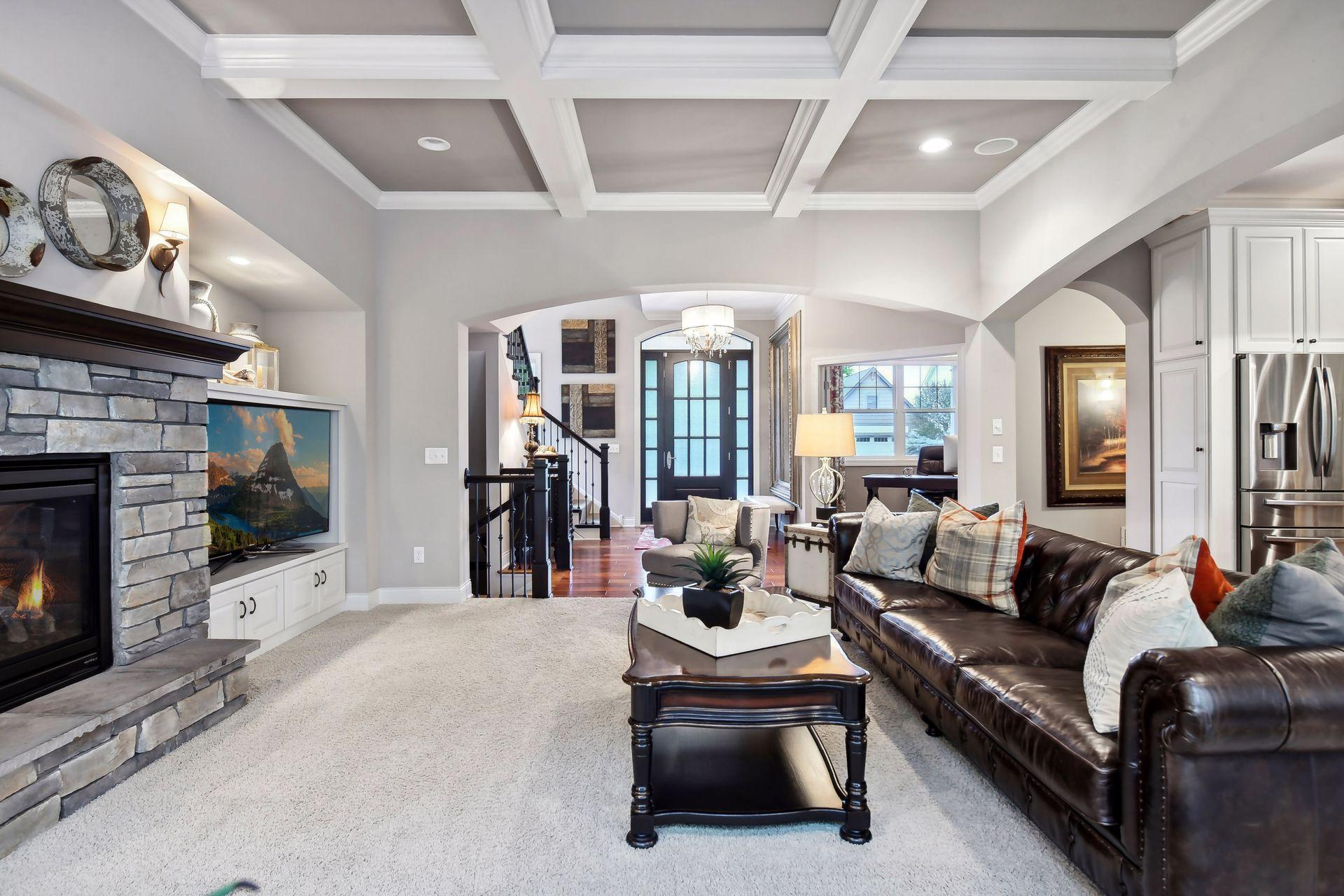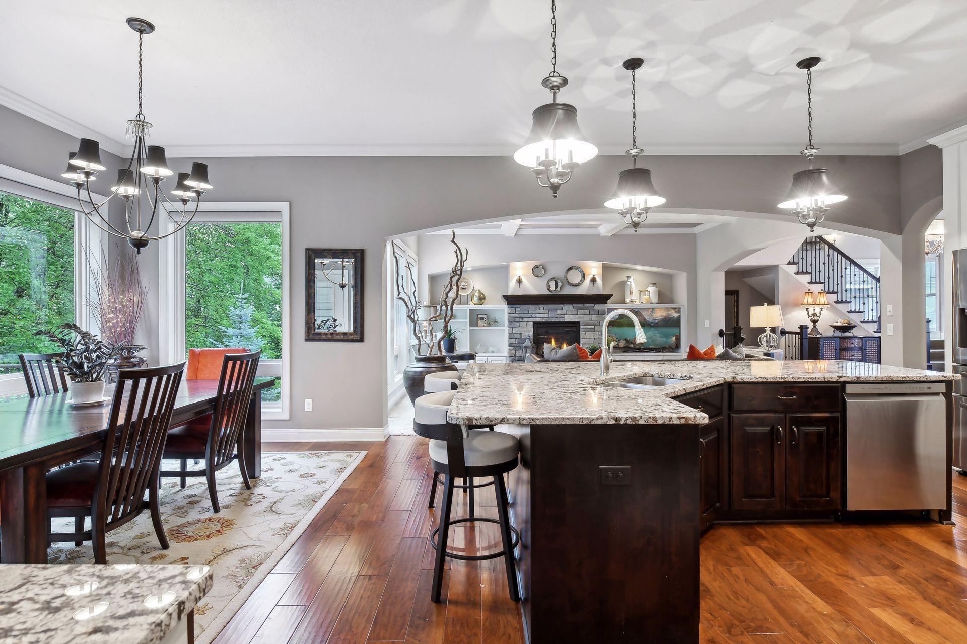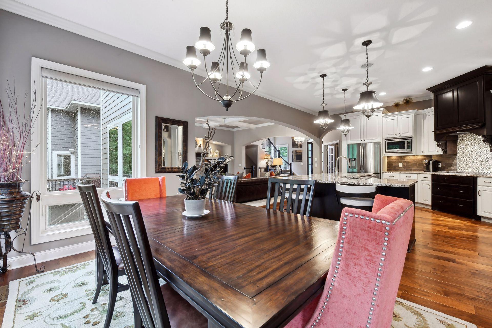 Discover refined luxury in this exceptional Gonyea custom-built home, ideally located in the prestigious Taylor Creek neighborhood within the highly sought-after Wayzata School District. Thoughtfully designed for both everyday living and entertaining, this residence offers an impressive blend of elegance, comfort, and modern convenience. The gourmet kitchen is a true centerpiece, featuring a spacious center island, granite countertops, beverage refrigerator, and a generous walk-in pantry. A dedicated technology hub keeps daily life organized and connected, while the open layout flows seamlessly into inviting living spaces. Designed with entertaining in mind, the lower level boasts a full wet bar, an indoor sport court and ample space for gatherings. Architectural details elevate the home throughout, including a coffered ceiling in the living room, custom window coverings and shutters, and built-in cabinetry. The luxurious primary suite serves as a private retreat, complete with a soaking tub, walk-in shower with heated tile floors, and expansive walk-in closets. Additional accommodations include a Jack-and-Jill full bath, an upper-level ¾ ensuite, and a ¾ bath on the lower level, offering comfort and convenience for family and guests alike. The extra-deep, three-car heated garage, offering ample space for vehicles, storage, and workshop potential while ensuring comfort during Minnesota winters. Additional highlights include a versatile flex room, gas fireplaces on both the main and lower levels, and access to outstanding community amenities such as a neighborhood pool and a nearby park just steps from your door.